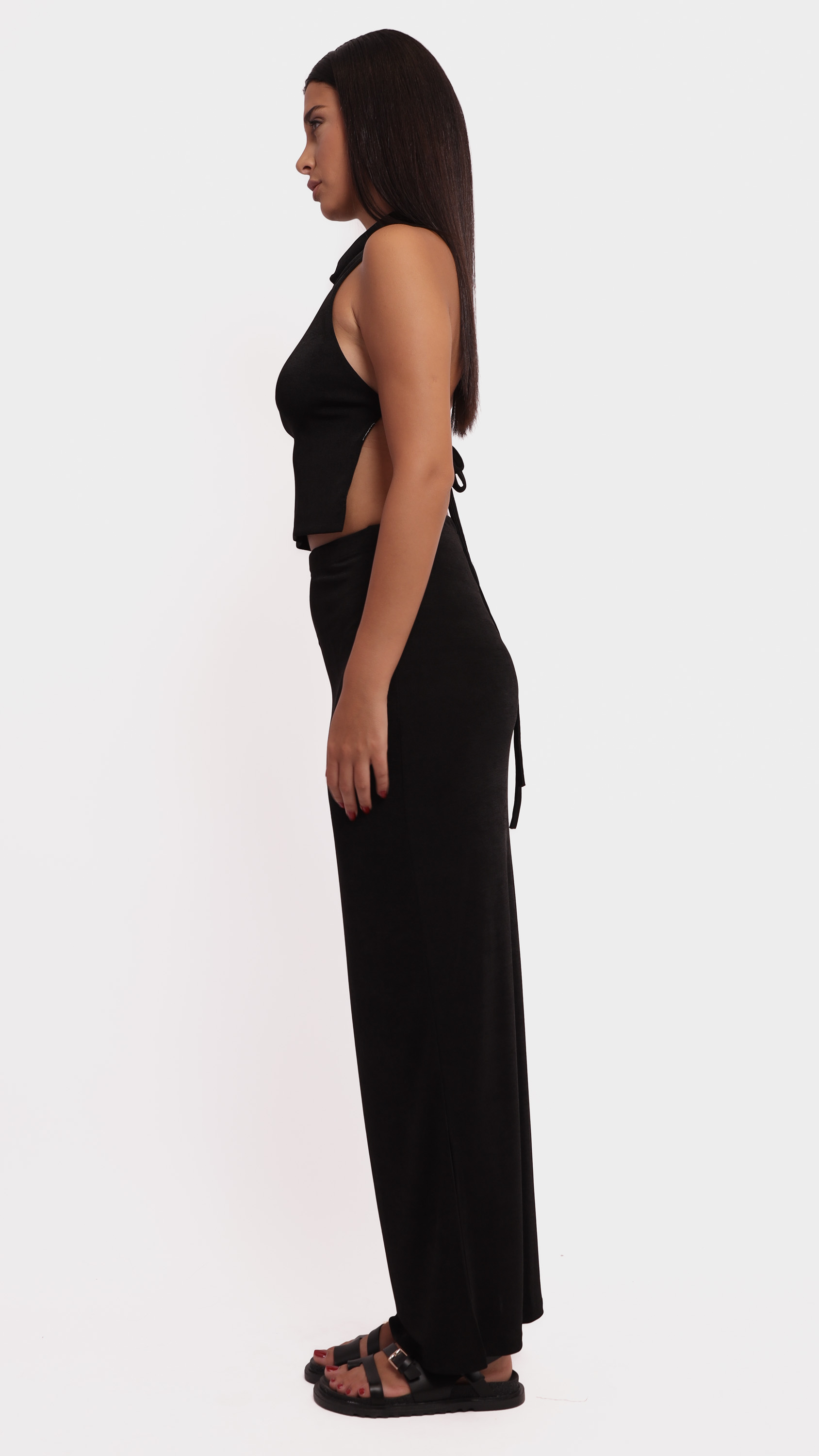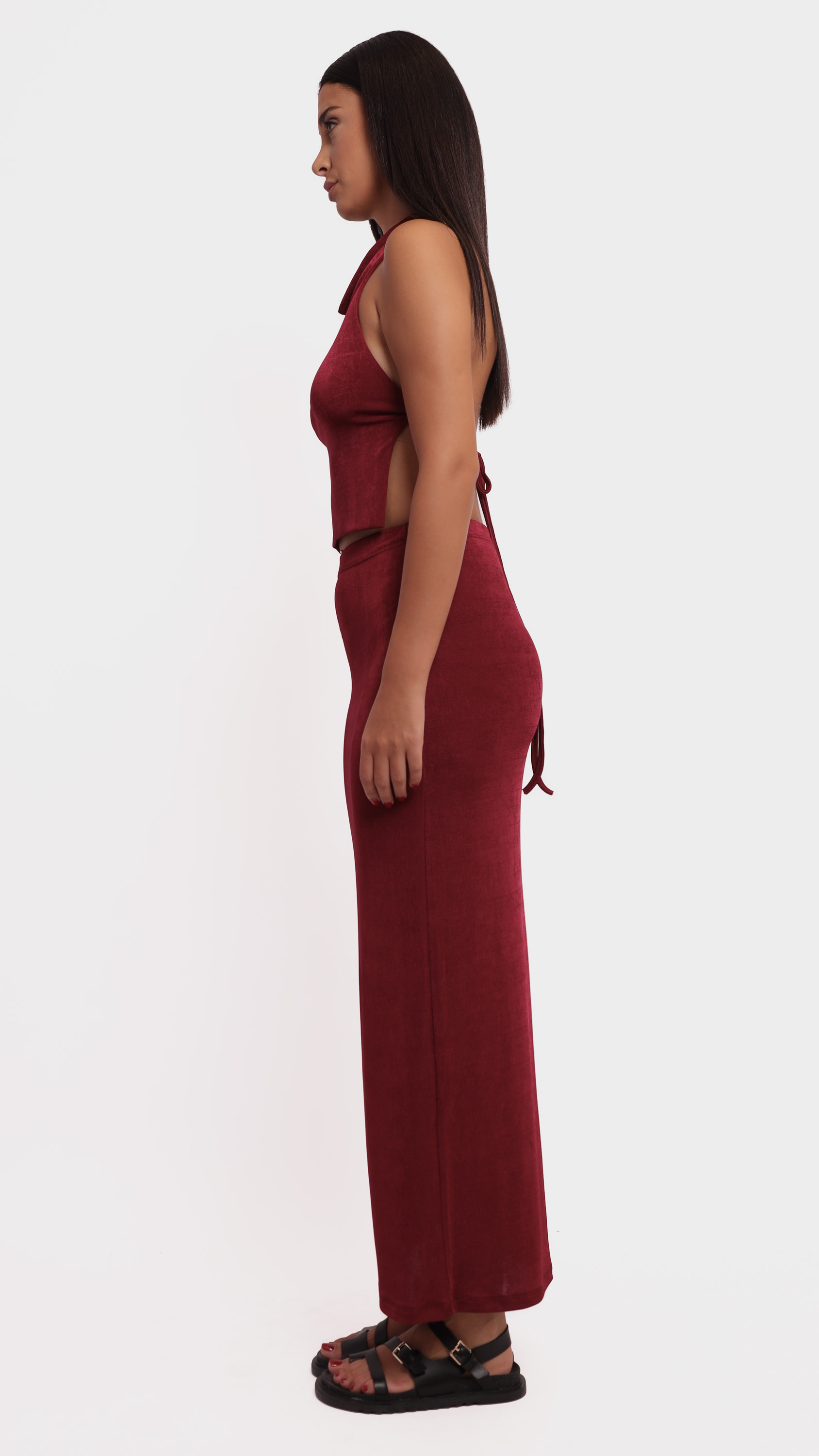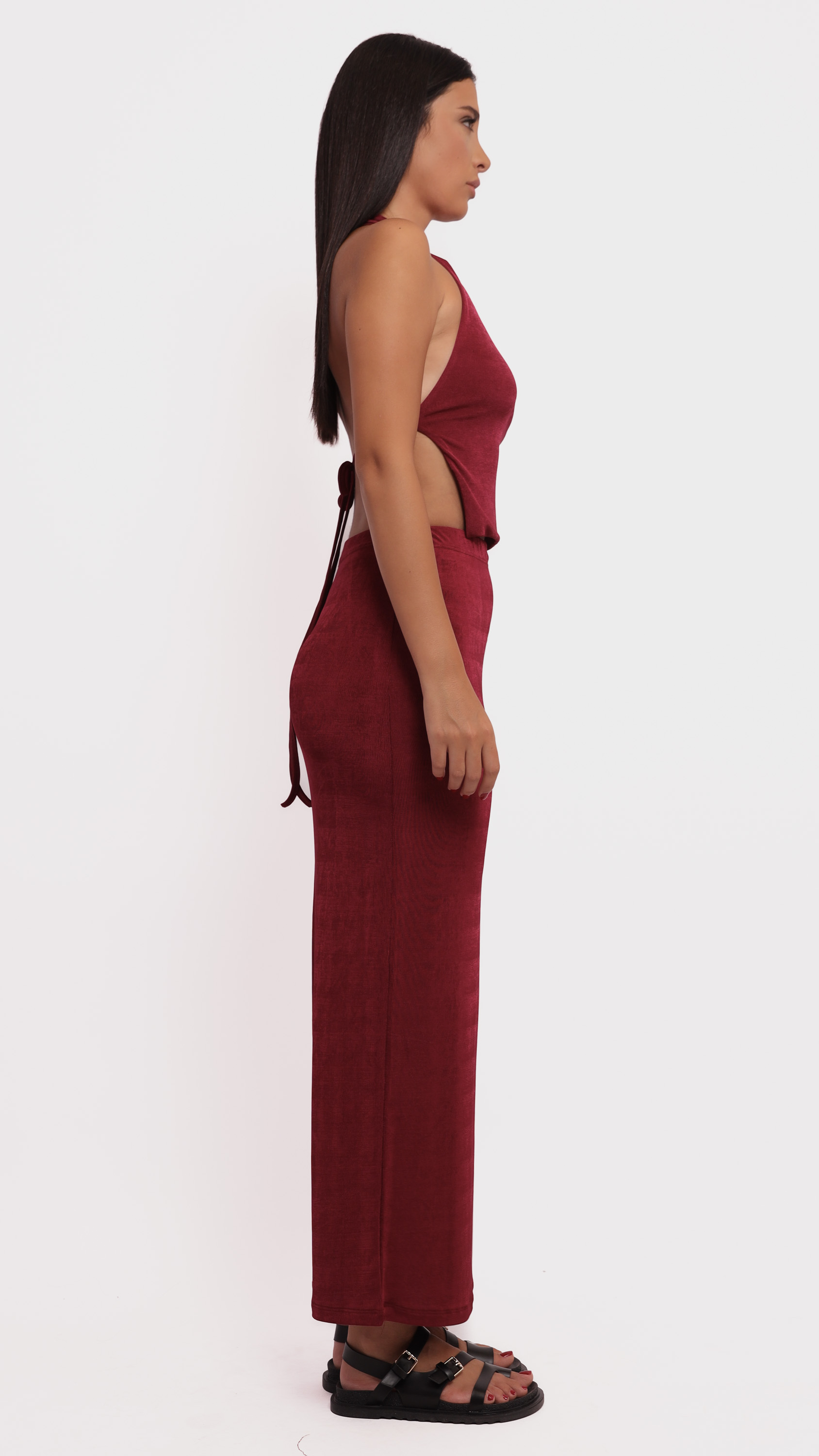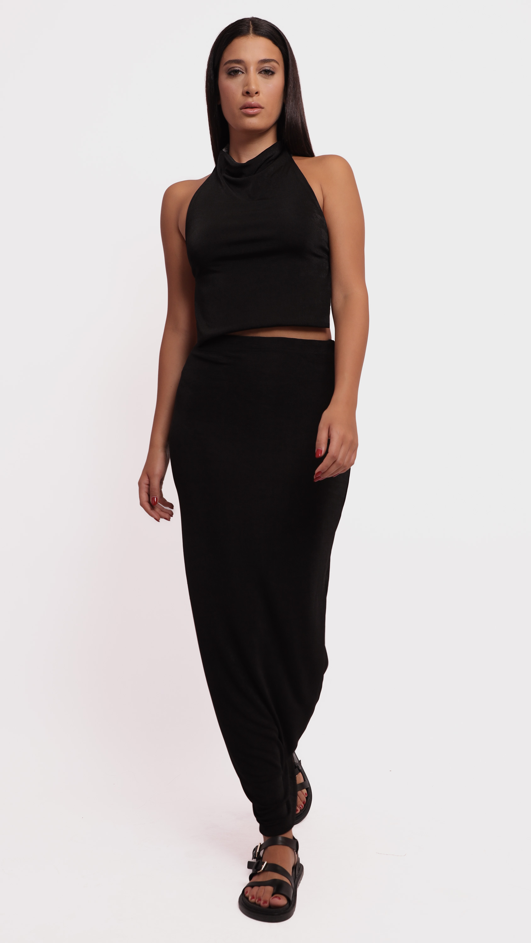 Make a statement with this abstract satin midi skirt, designed for fluid movement and artistic elegance.