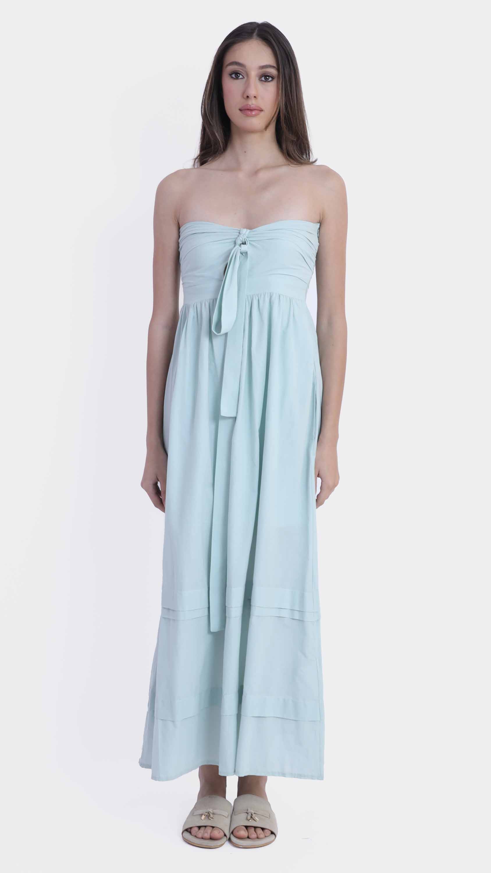 Stay effortlessly chic with this strapless tie-front maxi dress, featuring a flowy silhouette and a lightweight feel, perfect for sun-soaked days and breezy evenings.