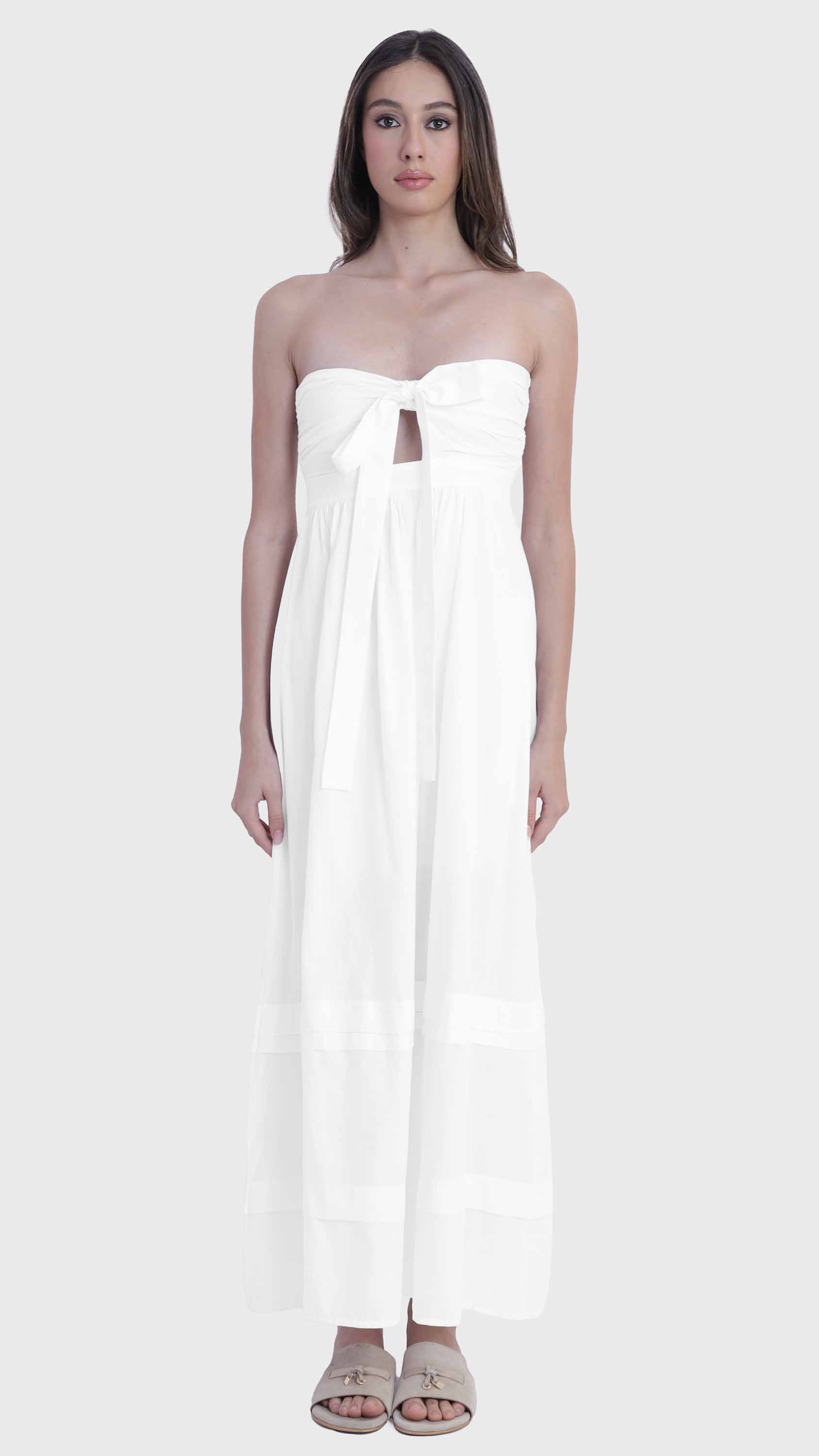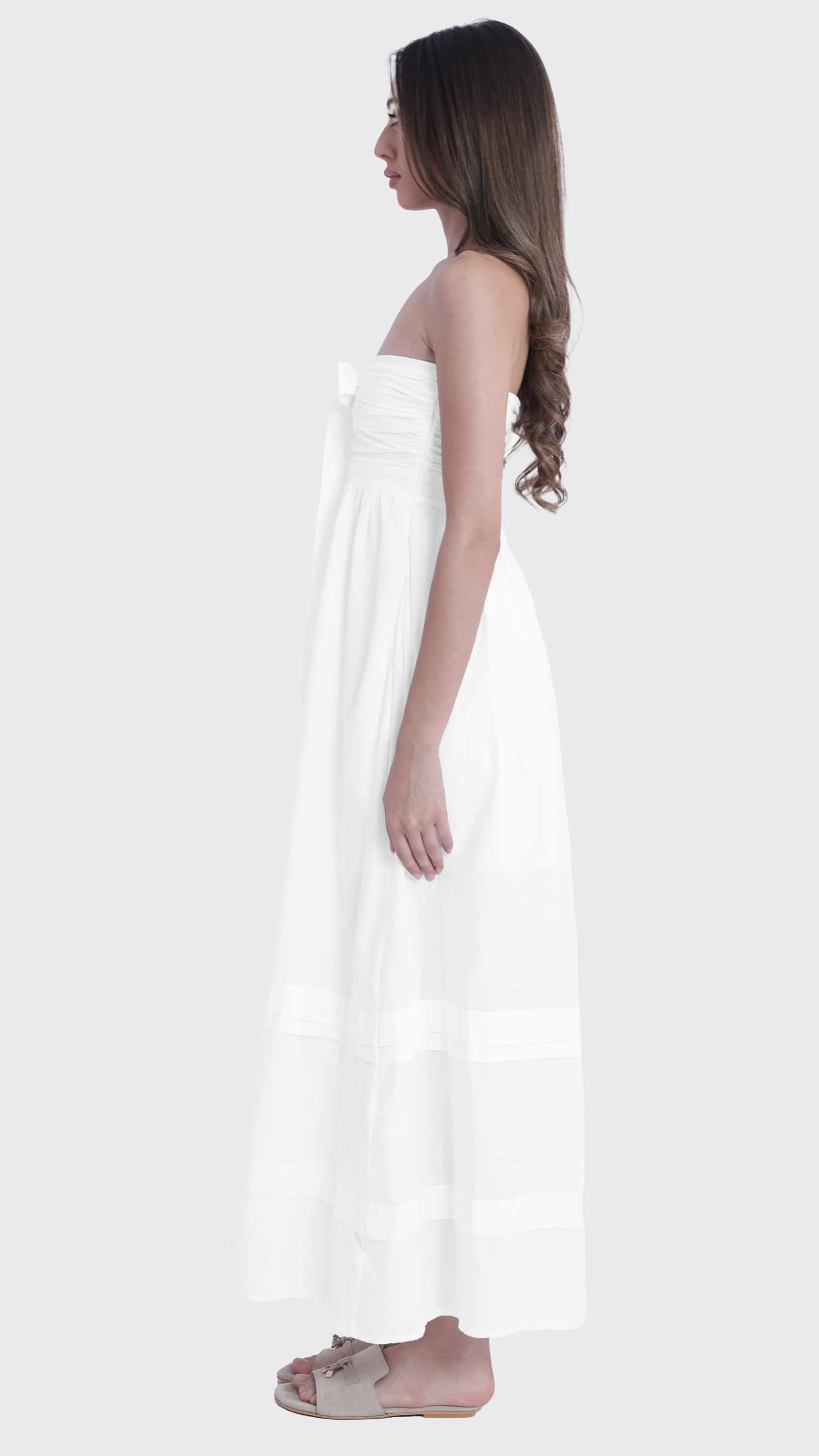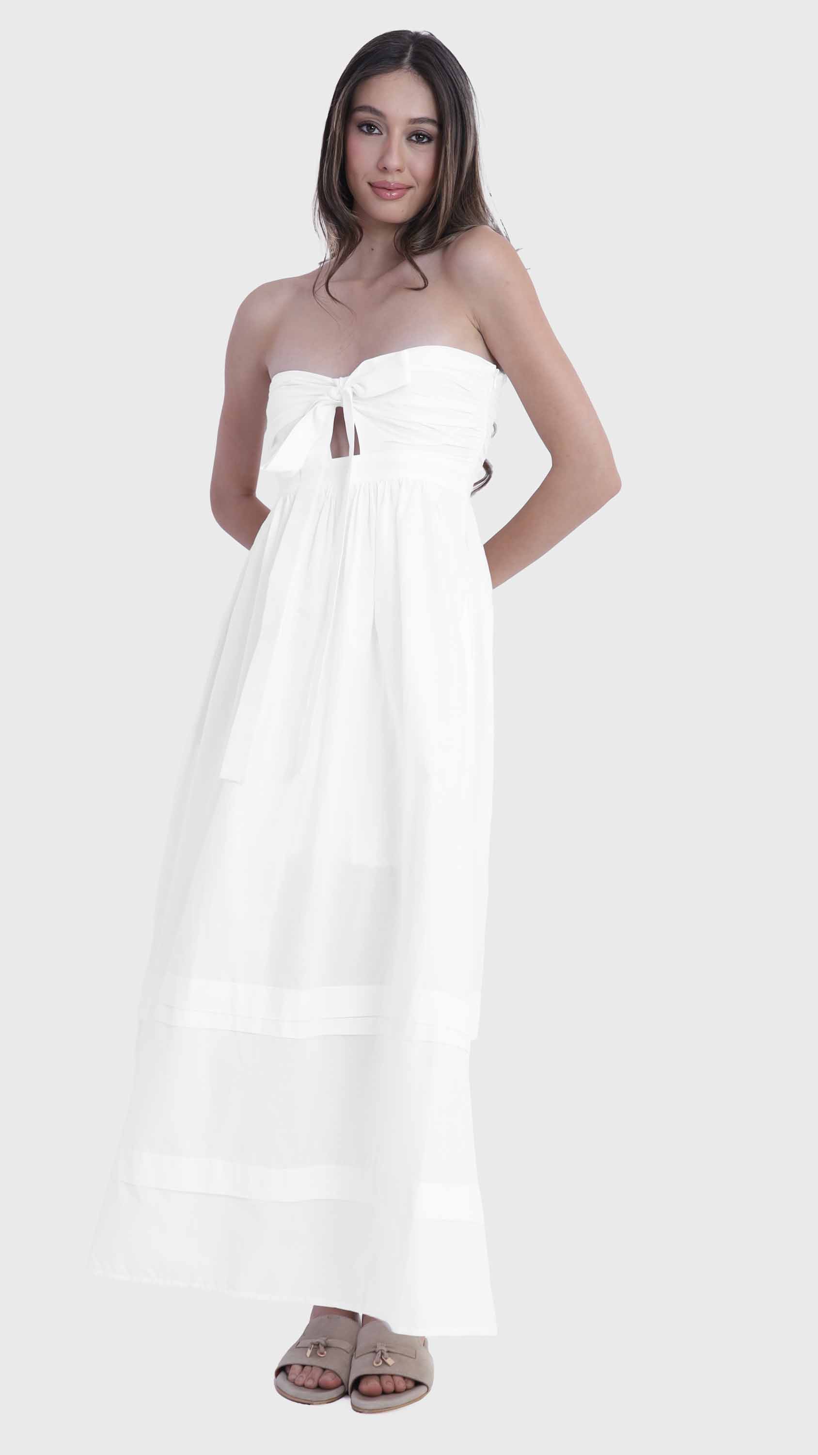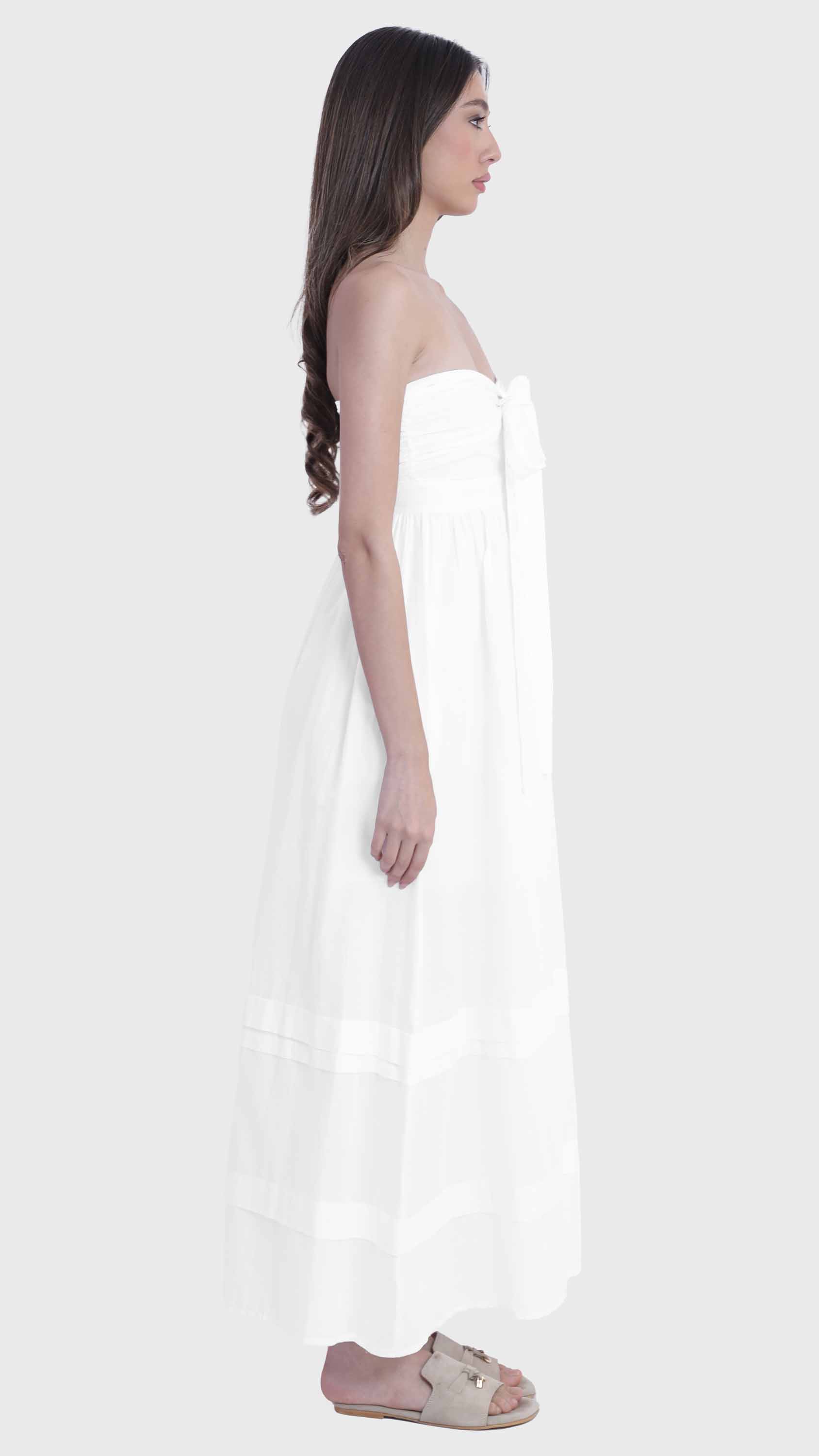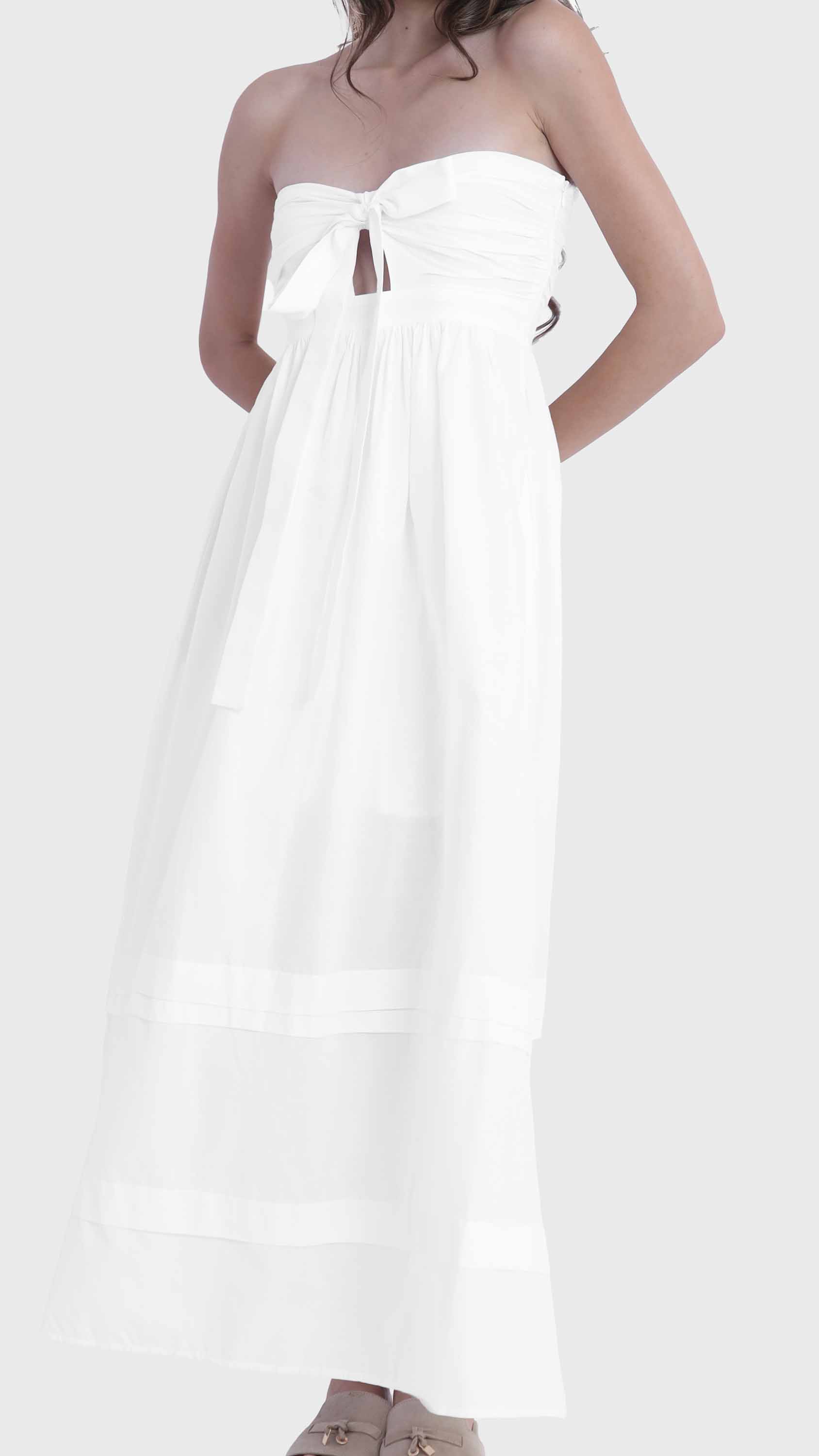 White Strapless Tie-Front Maxi Dress
