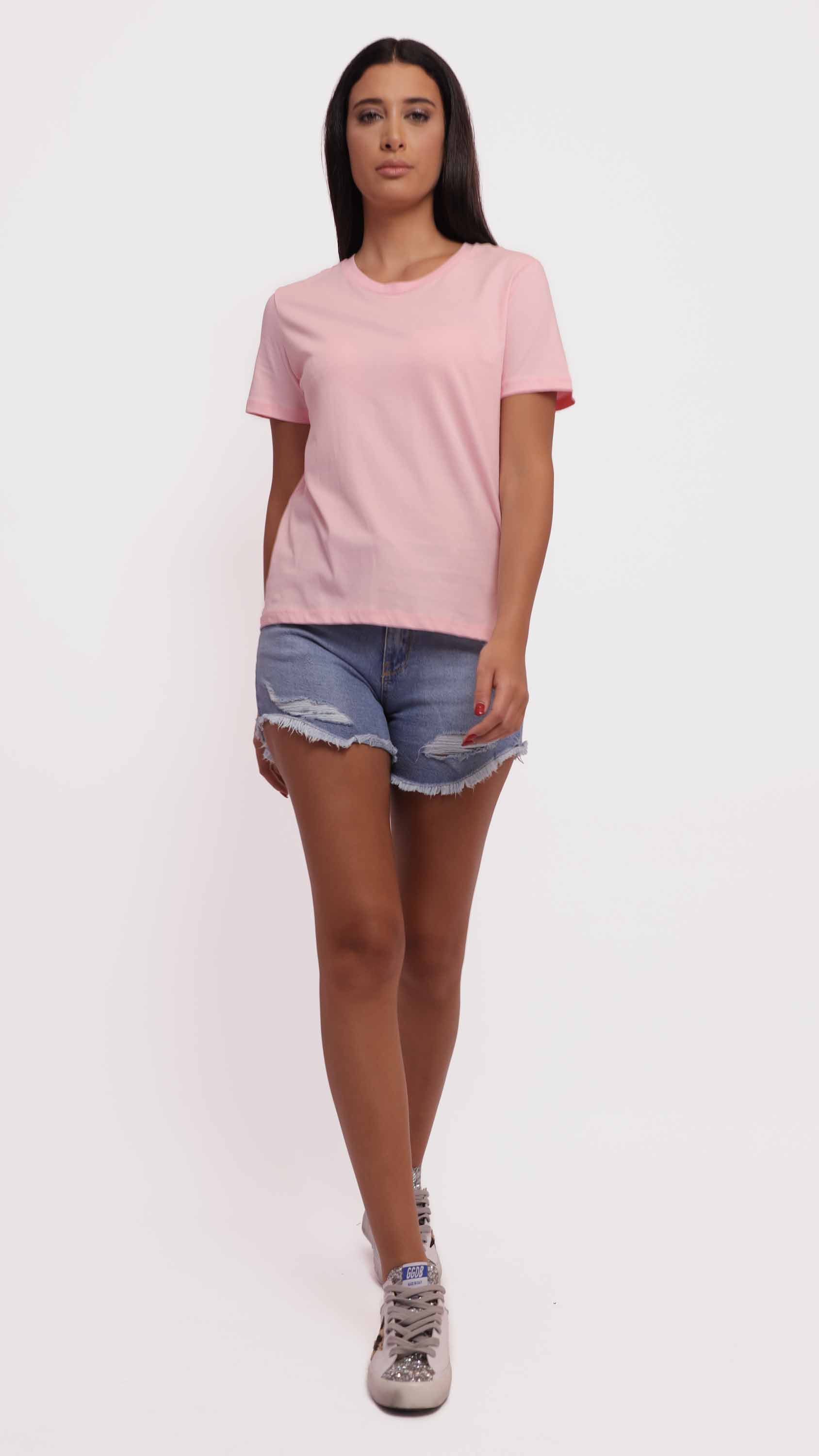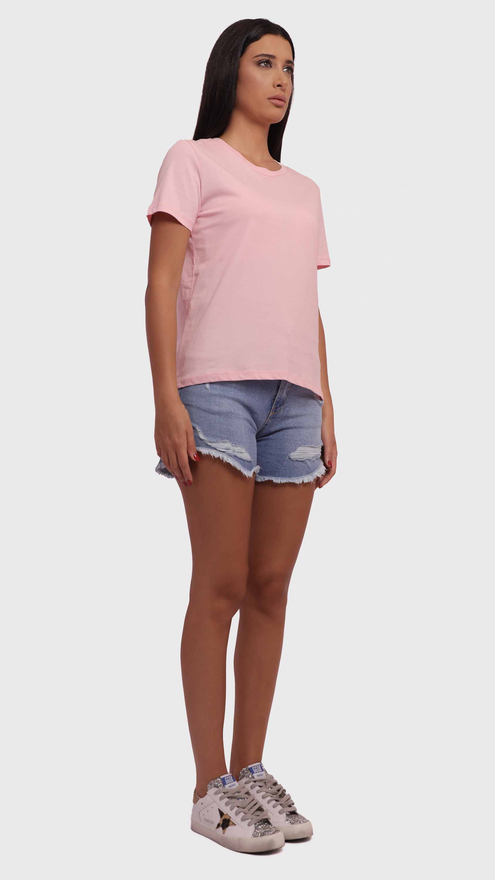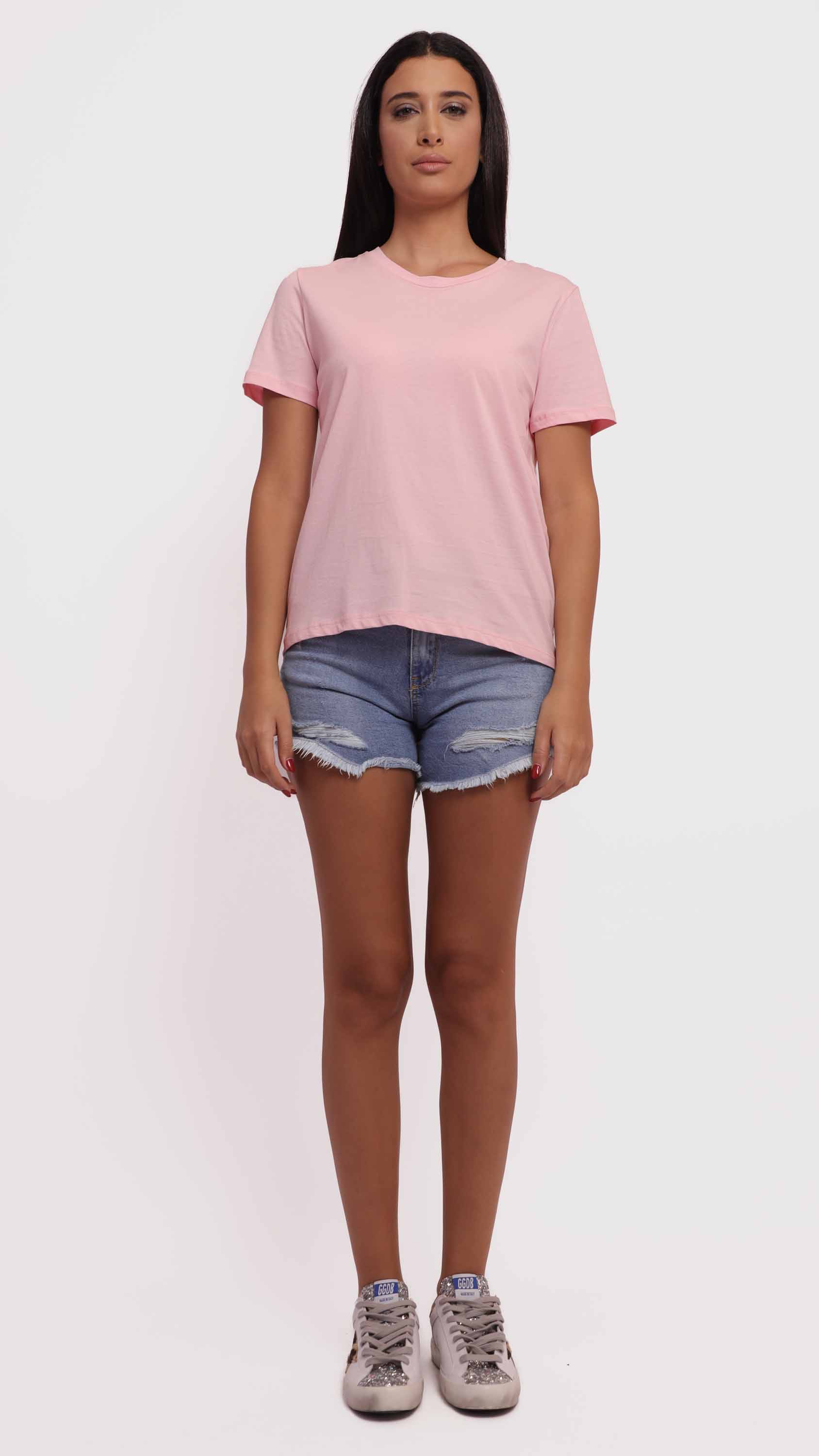 Stay effortlessly stylish with this raw-edge cotton t-shirt. Designed in a soft pastel pink shade, it features a casual crew neckline, short sleeves, and a trendy slightly high-low hem with raw detailing. Made from lightweight cotton, it offers a breathable feel and a relaxed silhouette that’s perfect for laid-back days.