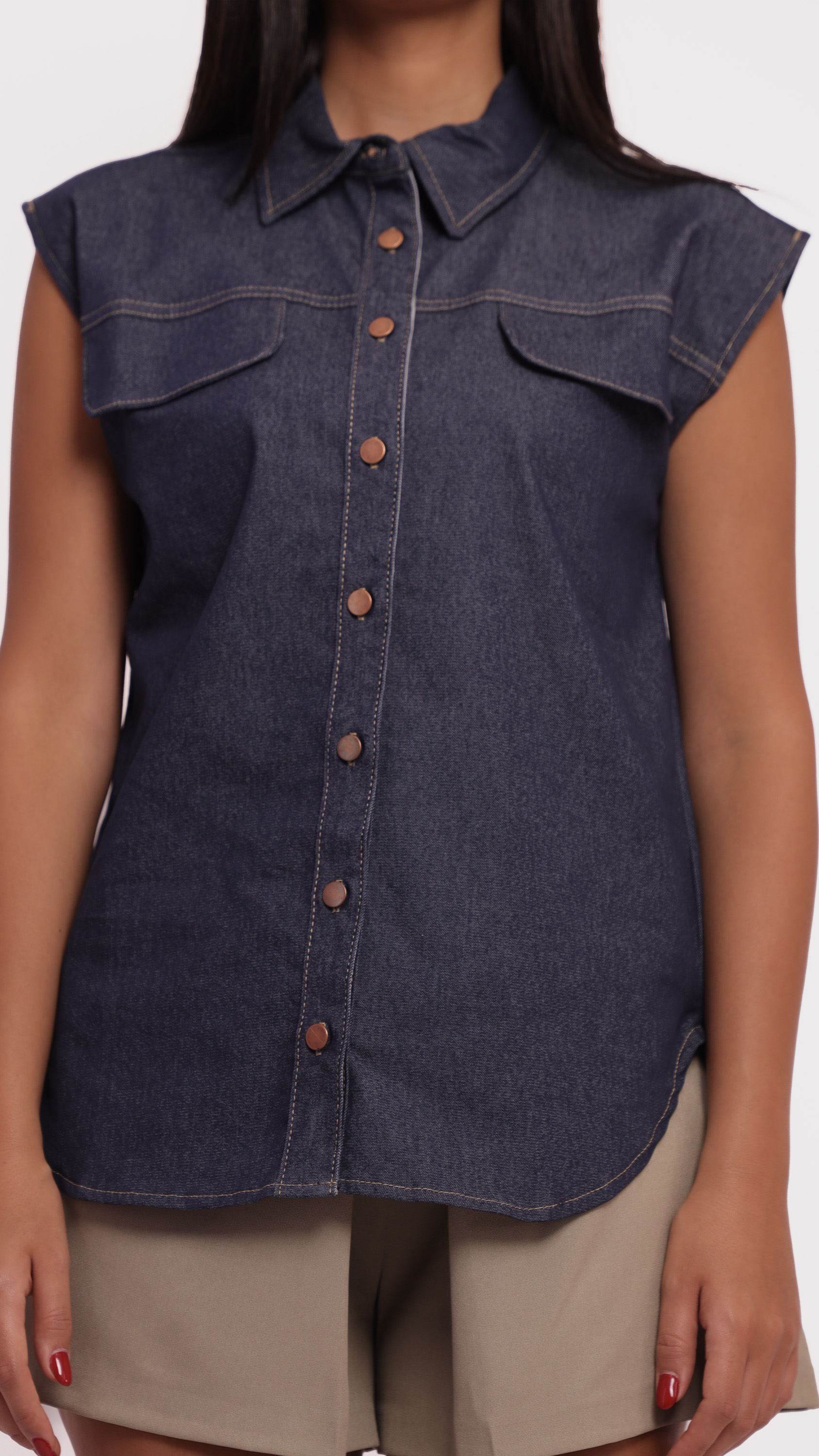 Elevate your everyday style with this sleeveless denim shirt, crafted for comfort and flair.