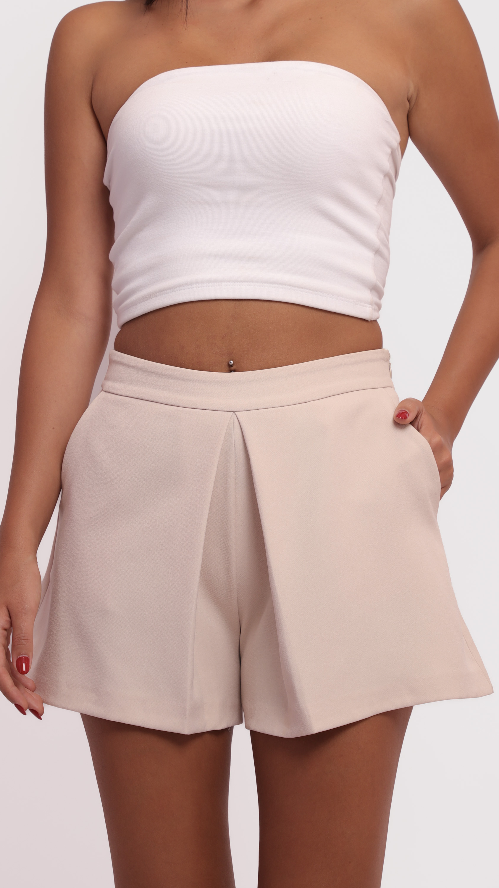 These Bermuda shorts are a refined take on summer essentials. Featuring a high-waisted fit, wide-leg silhouette, and front pleats, they’re made from a soft yet structured fabric that offers a clean, tailored finish. Perfect for warm-weather dressing with a touch of elegance.