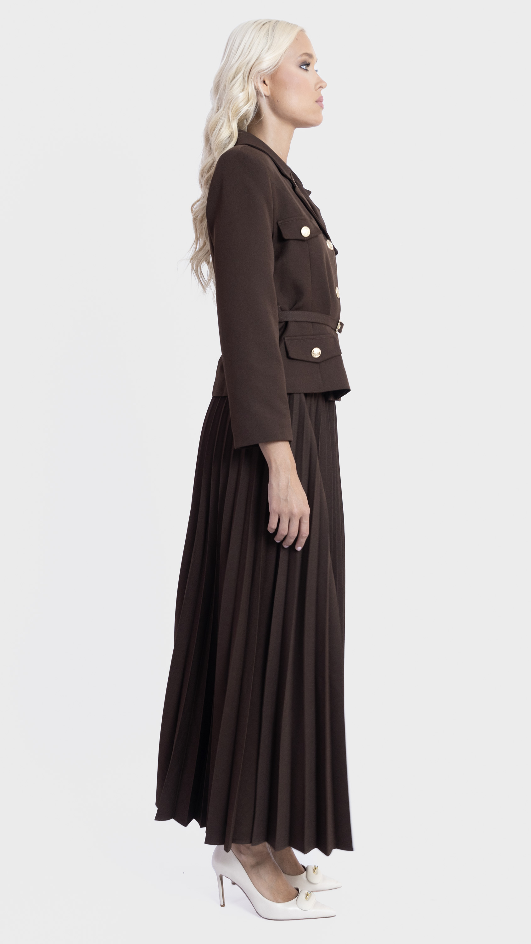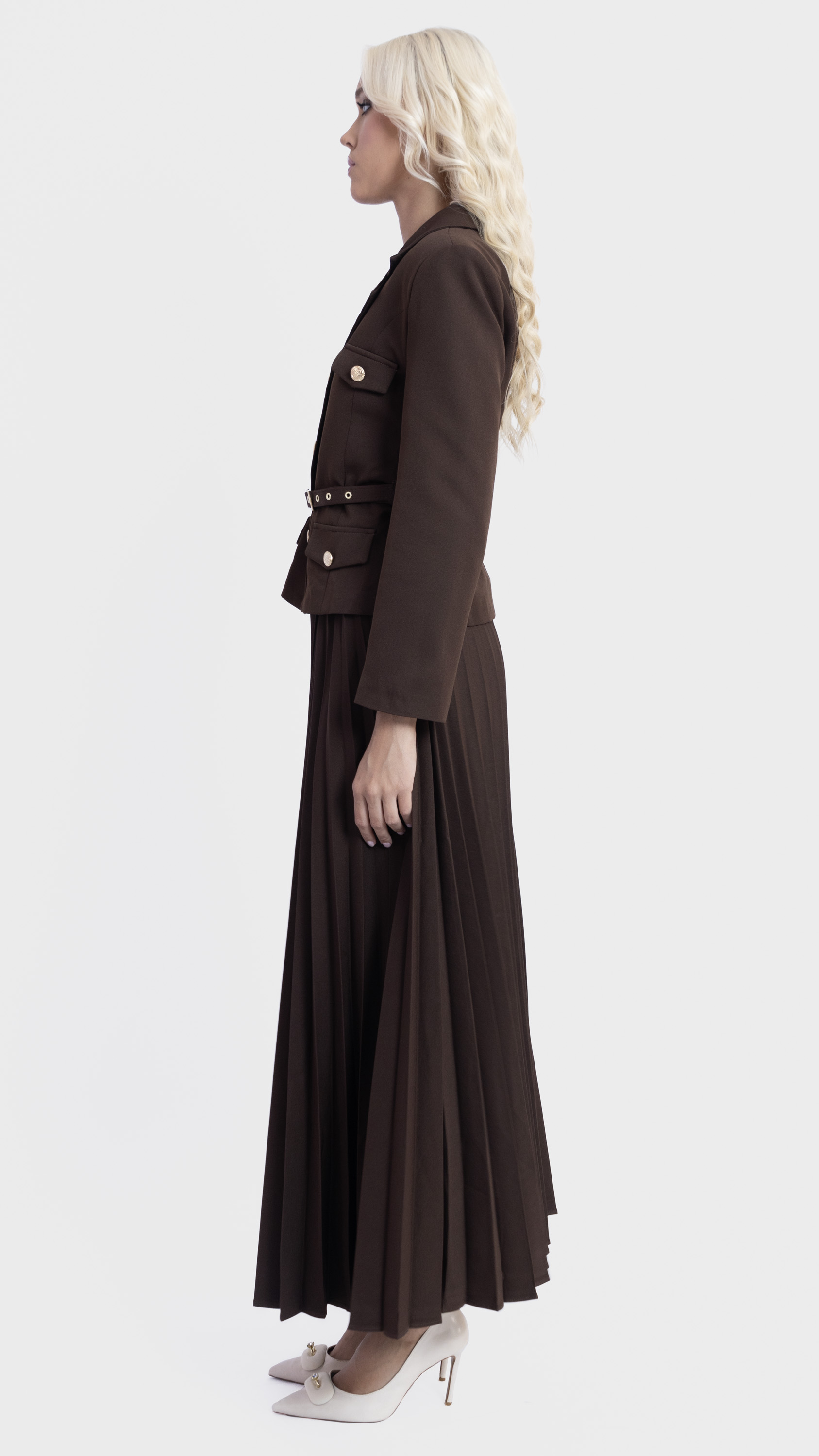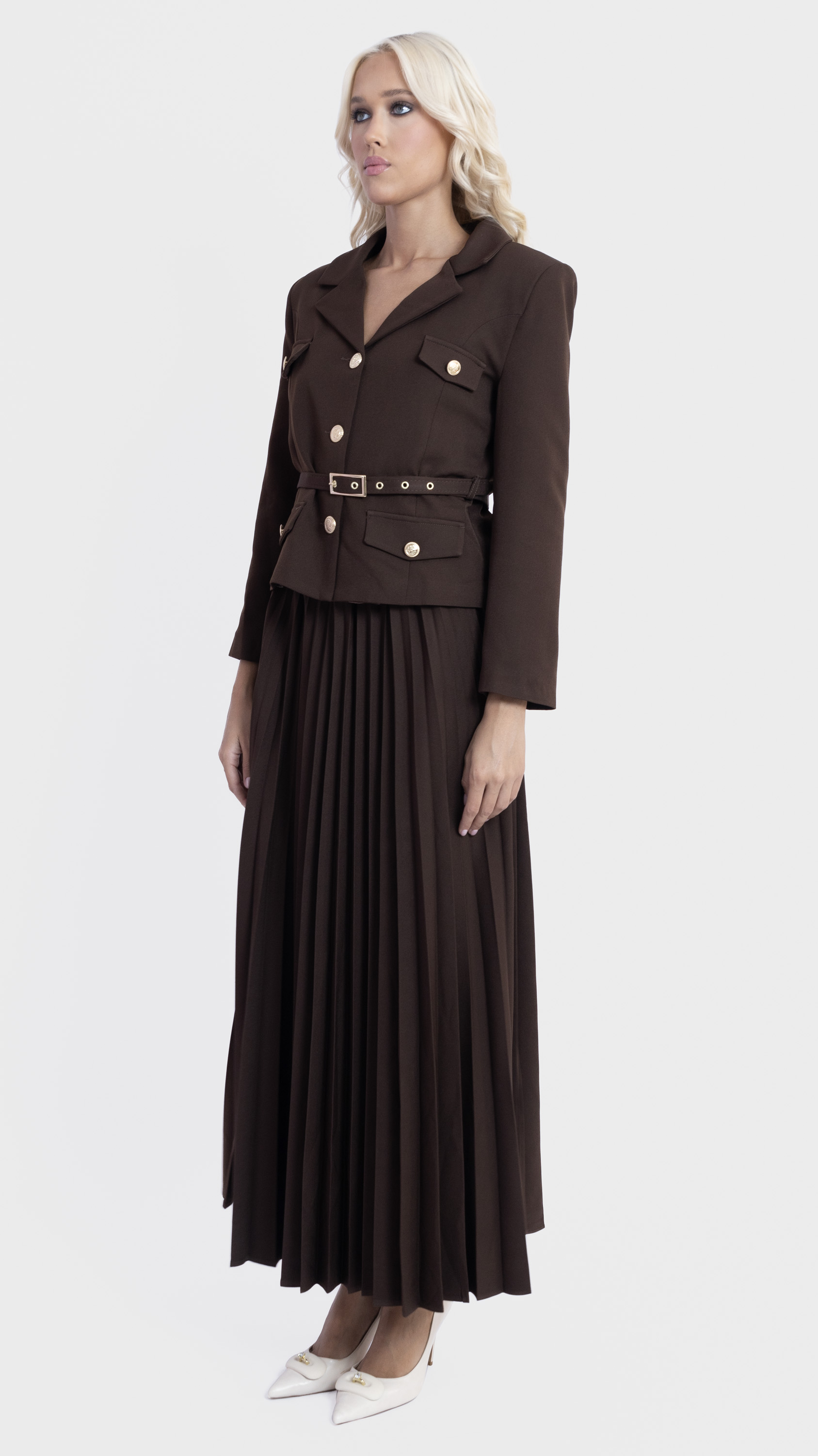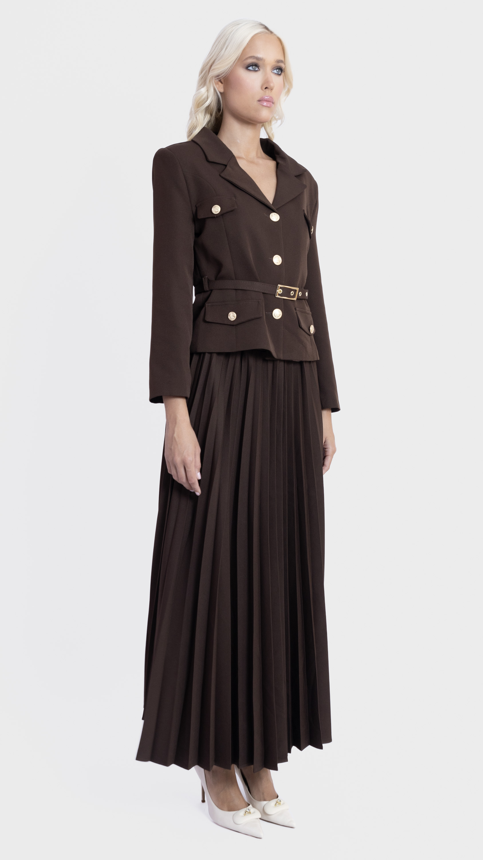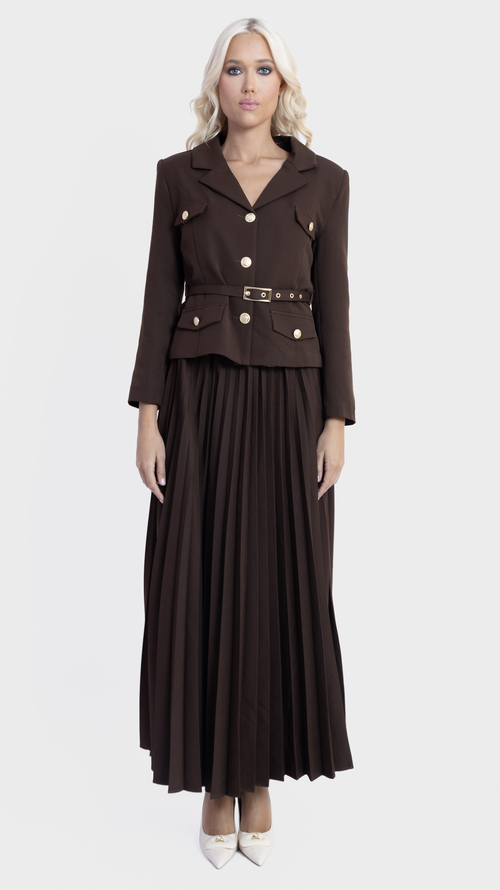 Pleated Midi Skirt and Utility Blazer Co-Ord Set