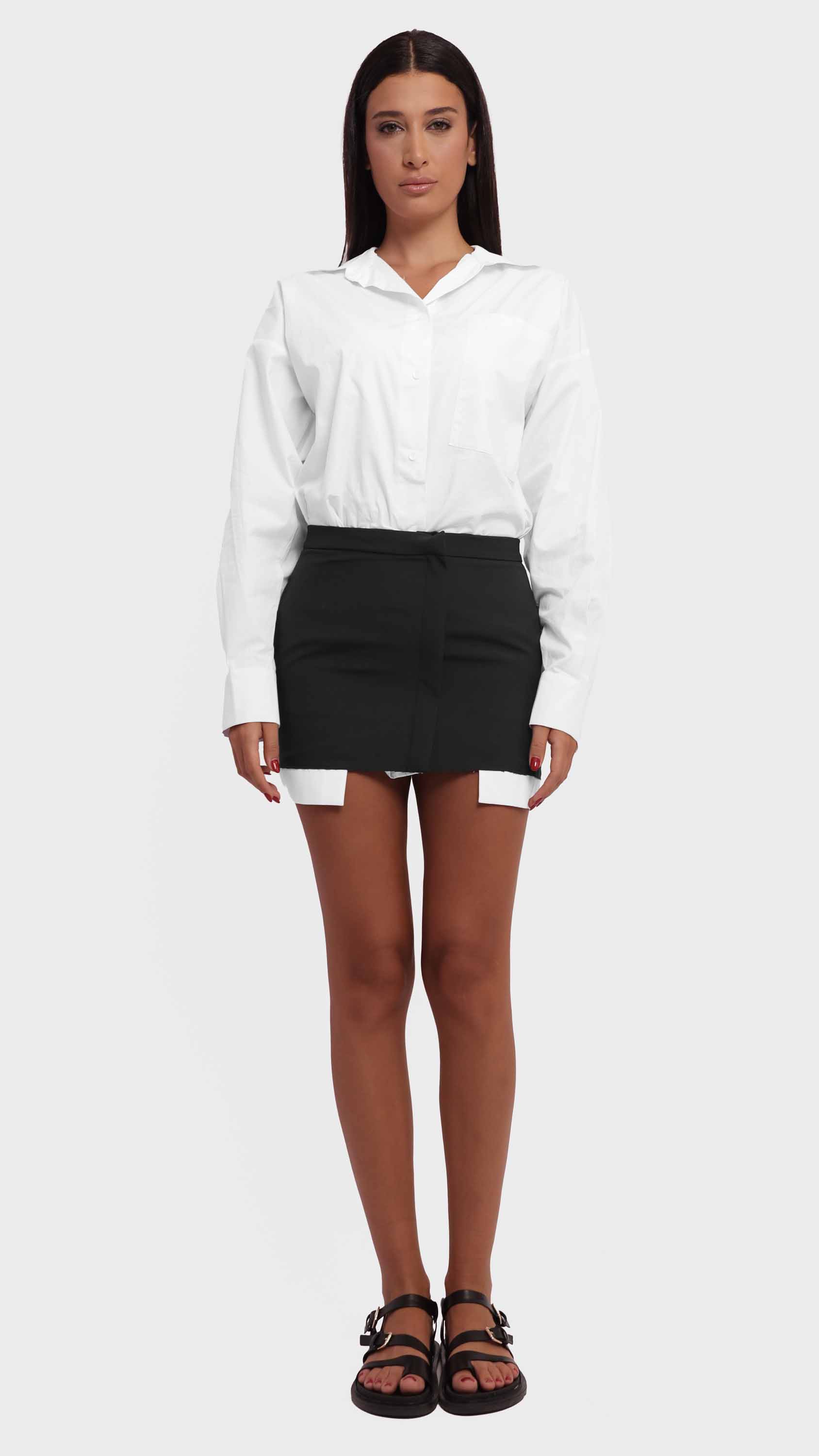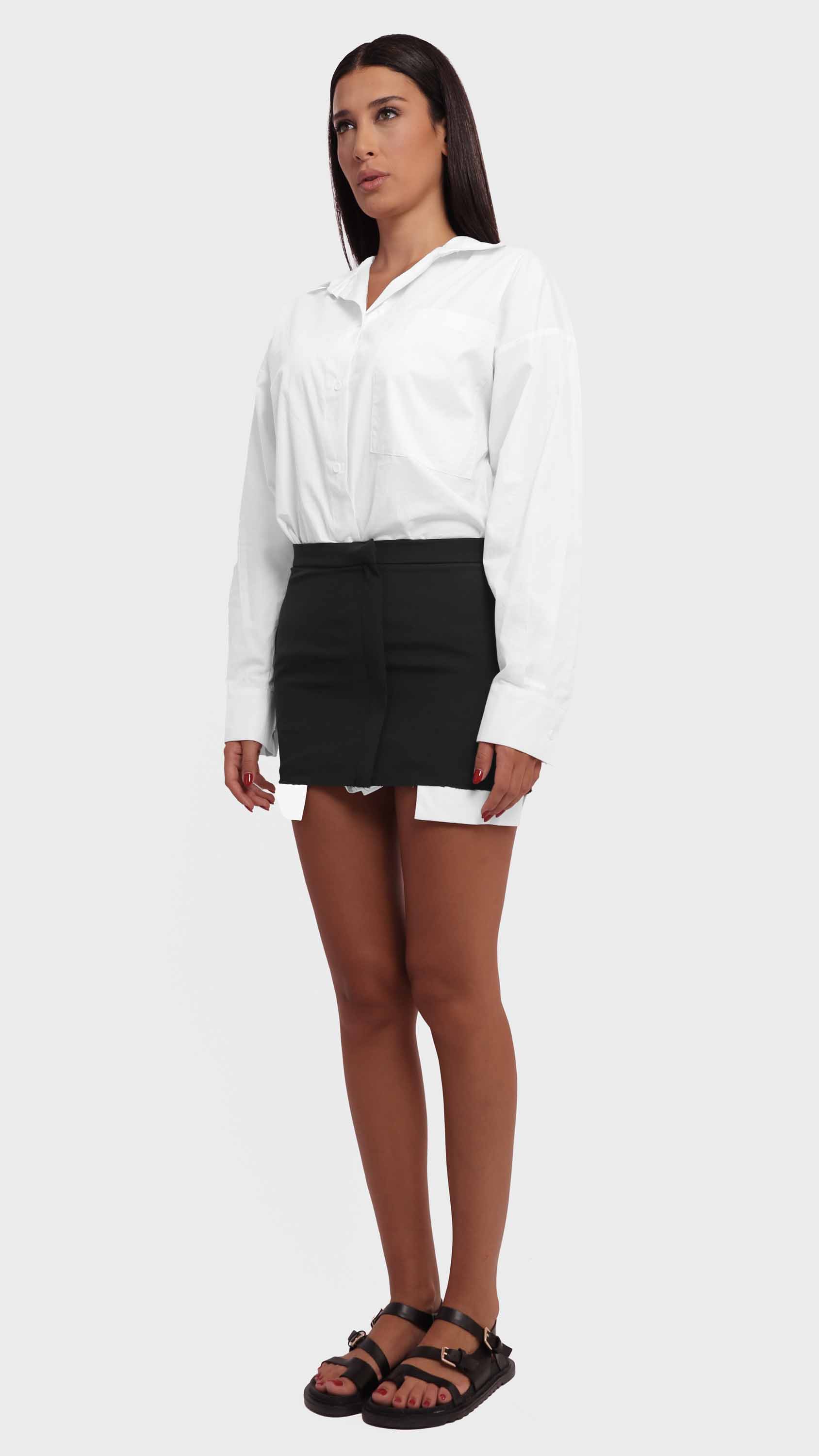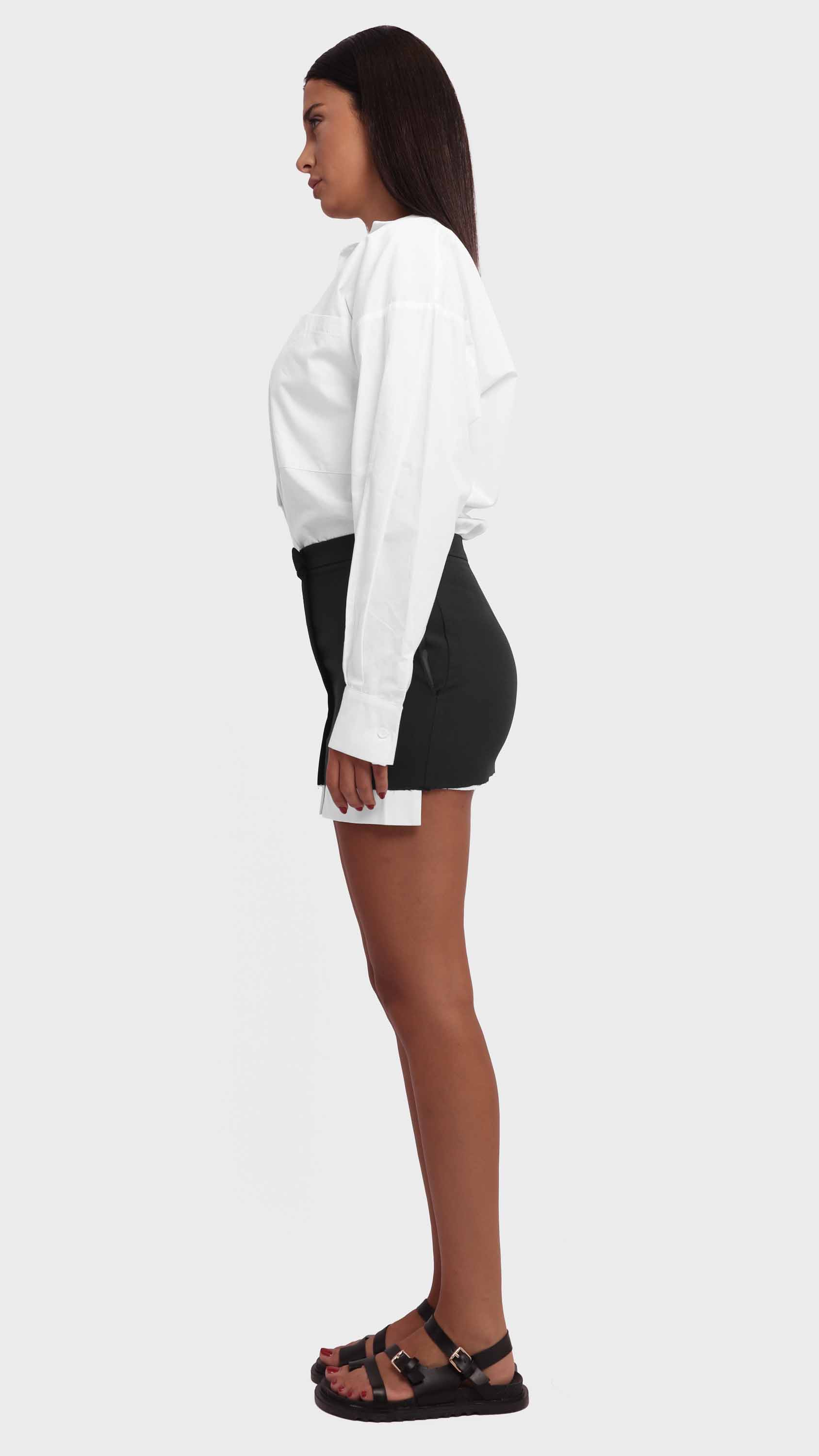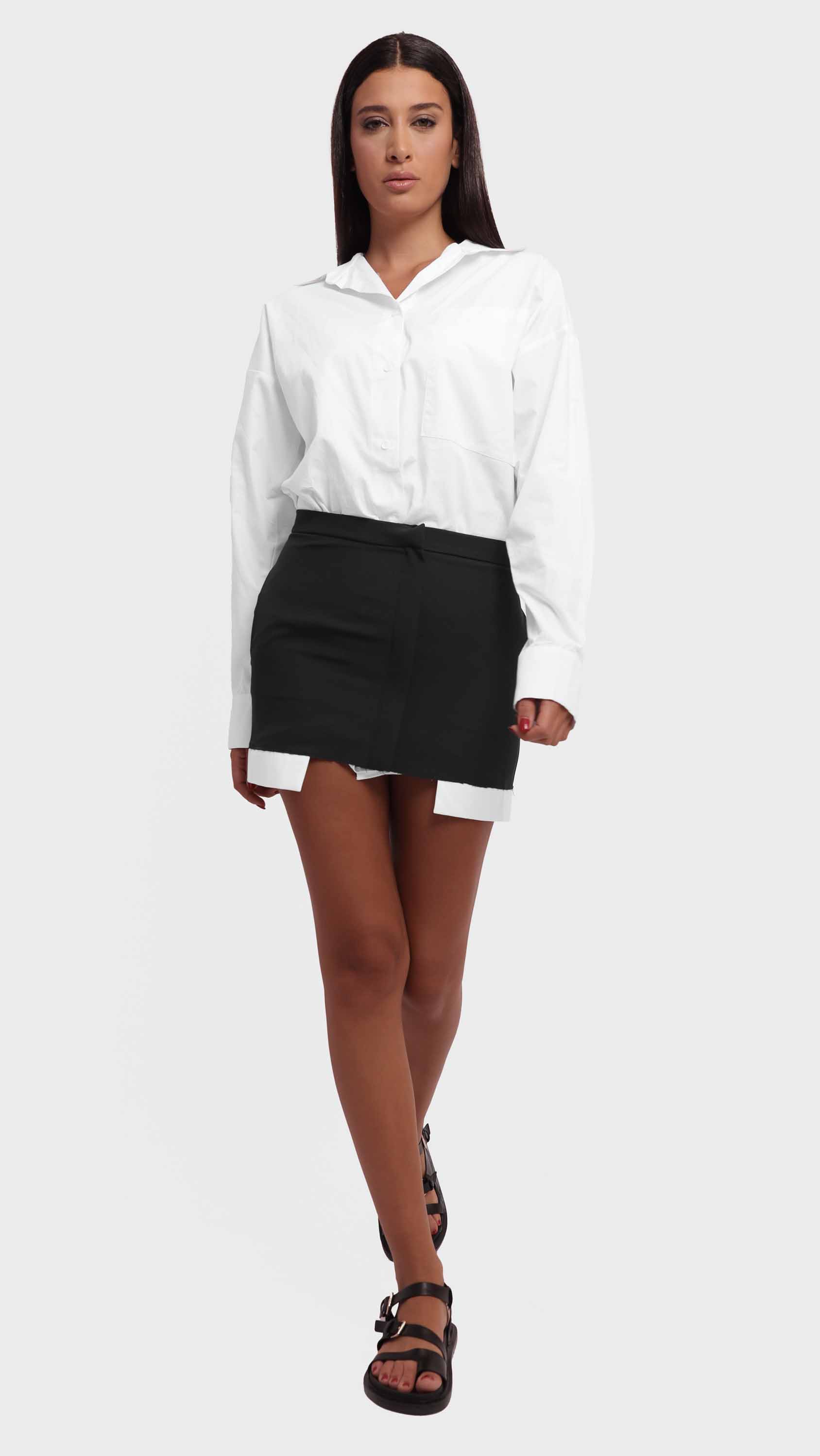 Make a bold statement with this two-tone contrast shirt featuring a maroon hem. Designed with an oversized, relaxed fit, this shirt combines classic tailoring with a modern, deconstructed twist. Crafted from a lightweight woven cotton blend, it features a crisp white upper, a single chest pocket, dropped shoulders, and raw-edge detailing, offering a perfect mix of casual comfort and edgy street style.