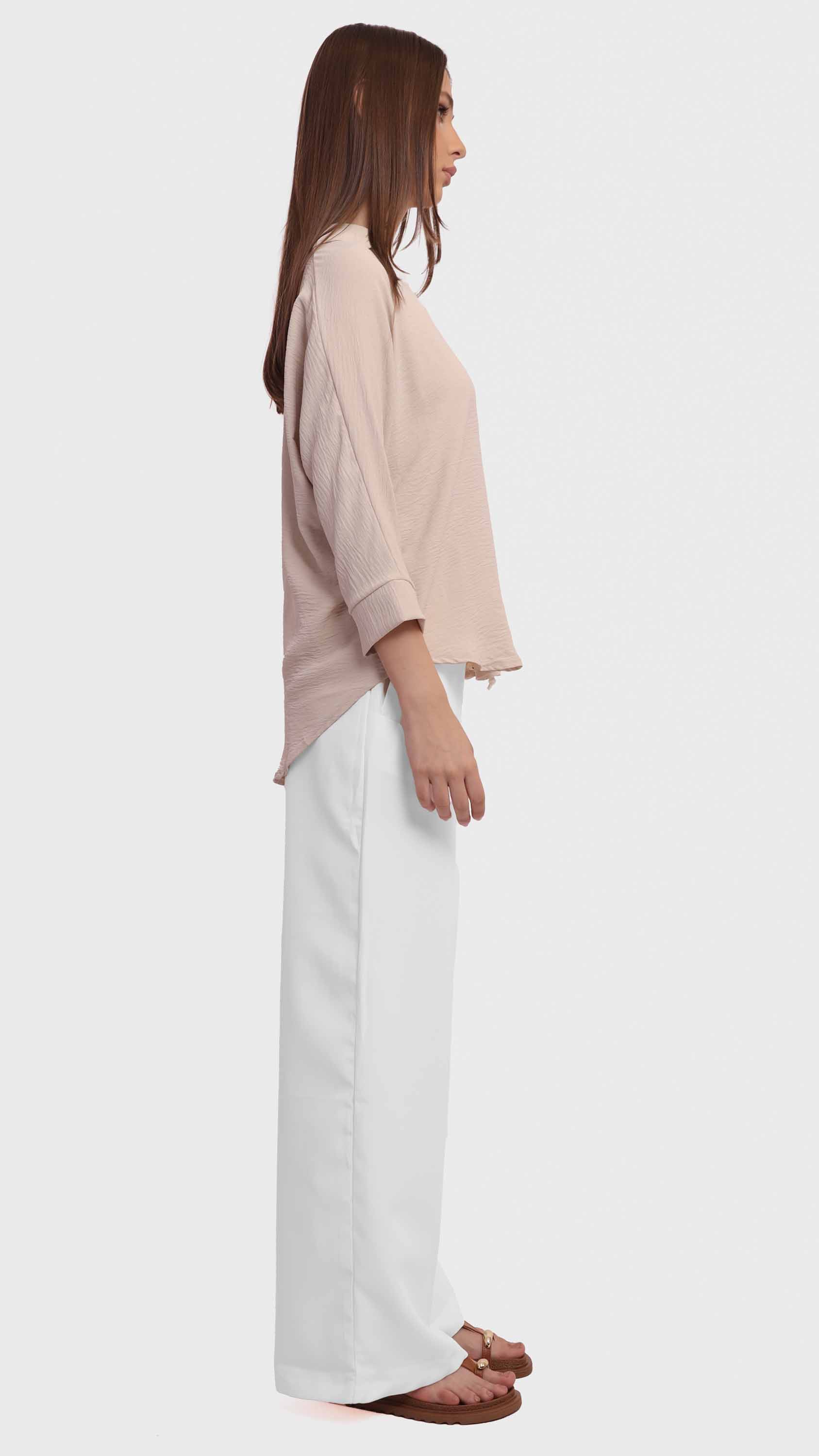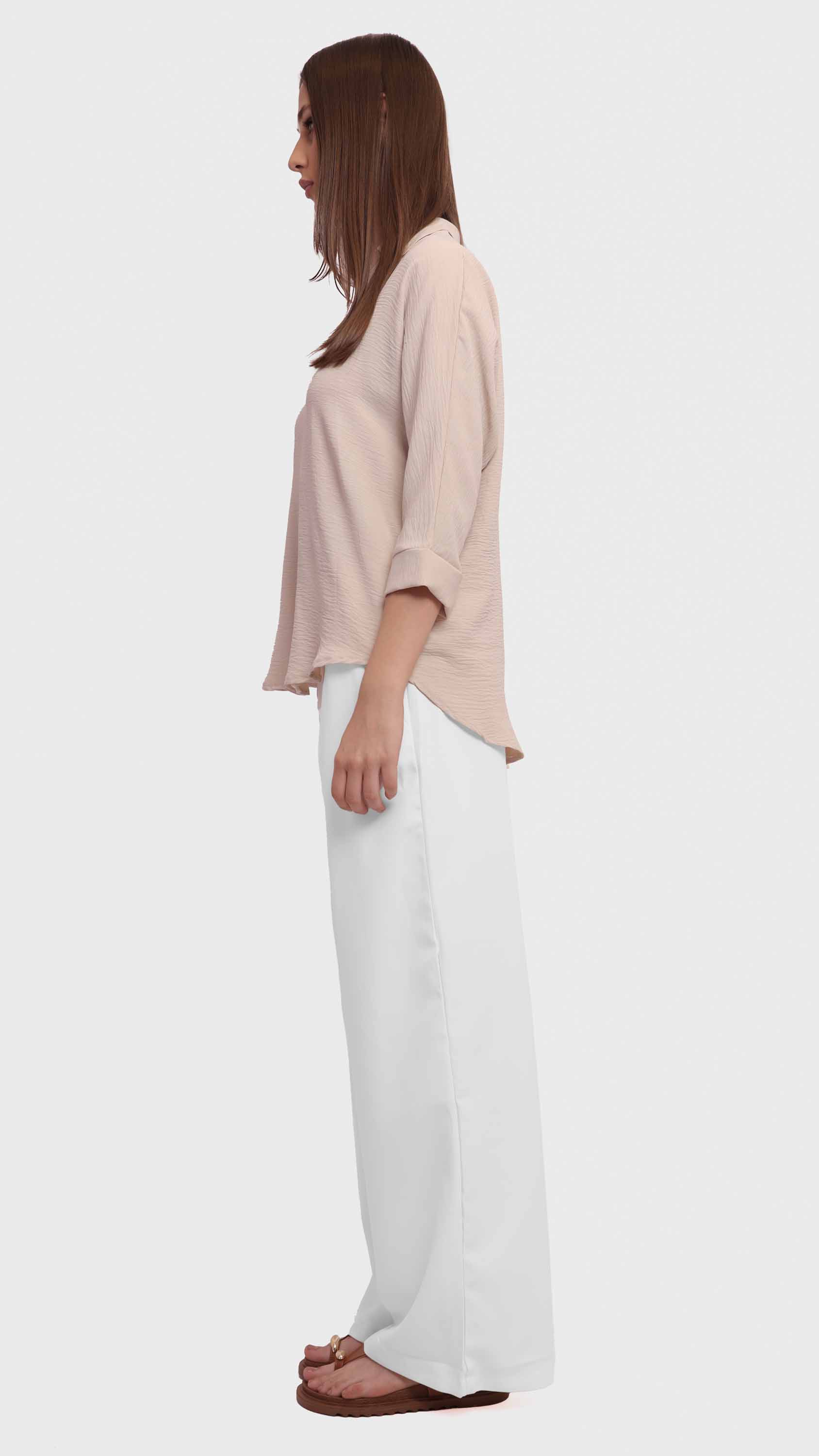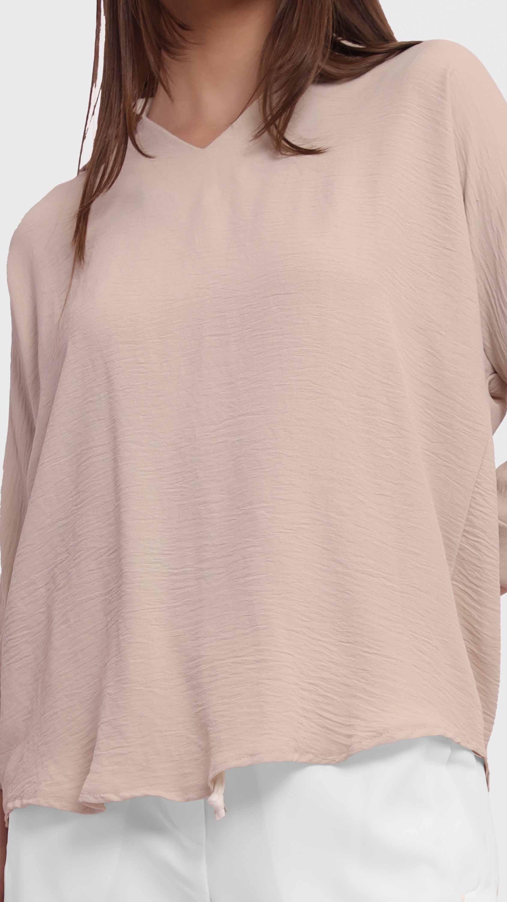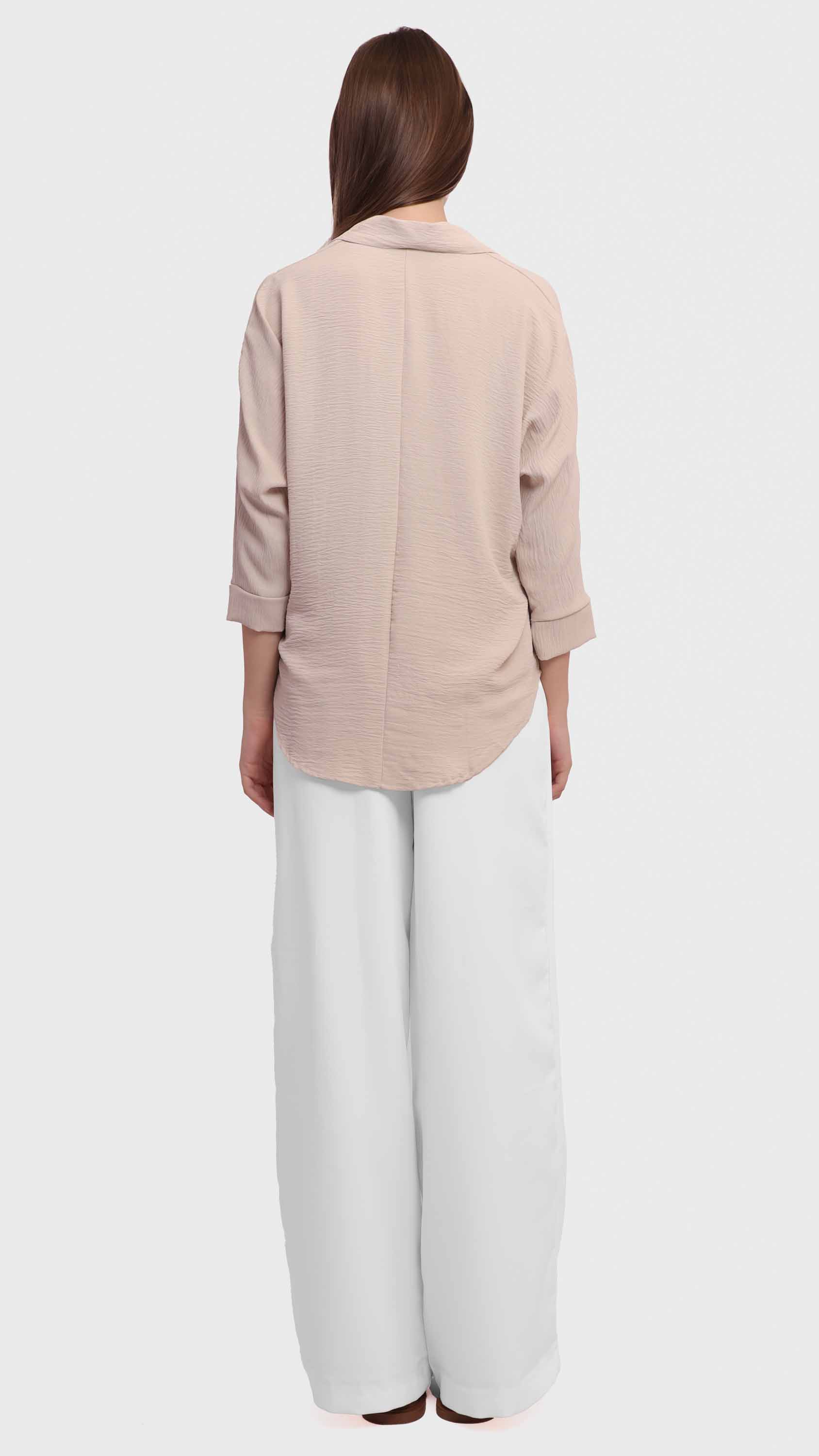 This black blouse features a lightweight crinkled fabric that adds texture and depth to your everyday look. Designed with a classic shirt collar and long relaxed sleeves, it offers a clean, minimal silhouette with a straight hem. The pull-on design makes it easy to wear, ideal for effortless styling and all-day comfort.