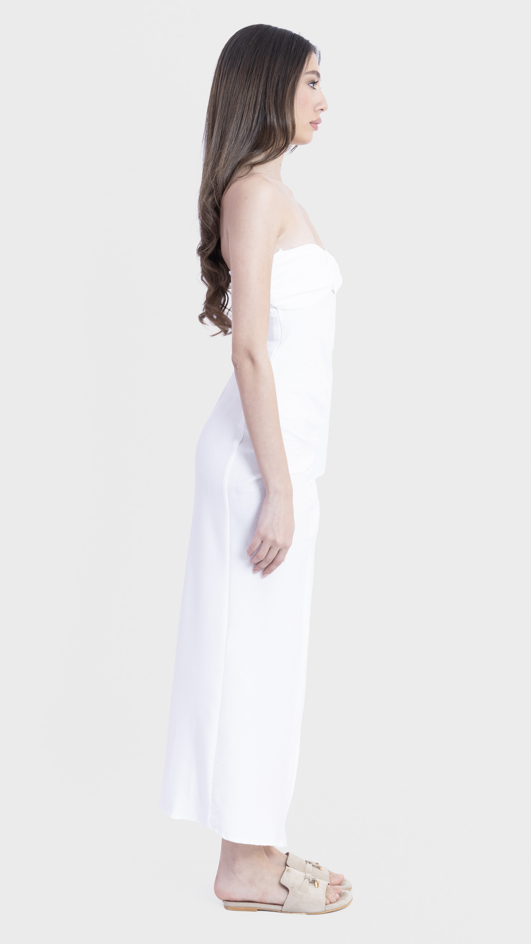 Turn heads in this elegant strapless bodycon dress, designed to hug the figure with a flattering ruched detail down the front. The maxi length and smooth, stretch fabric create a sleek silhouette perfect for evening events or chic summer outings.