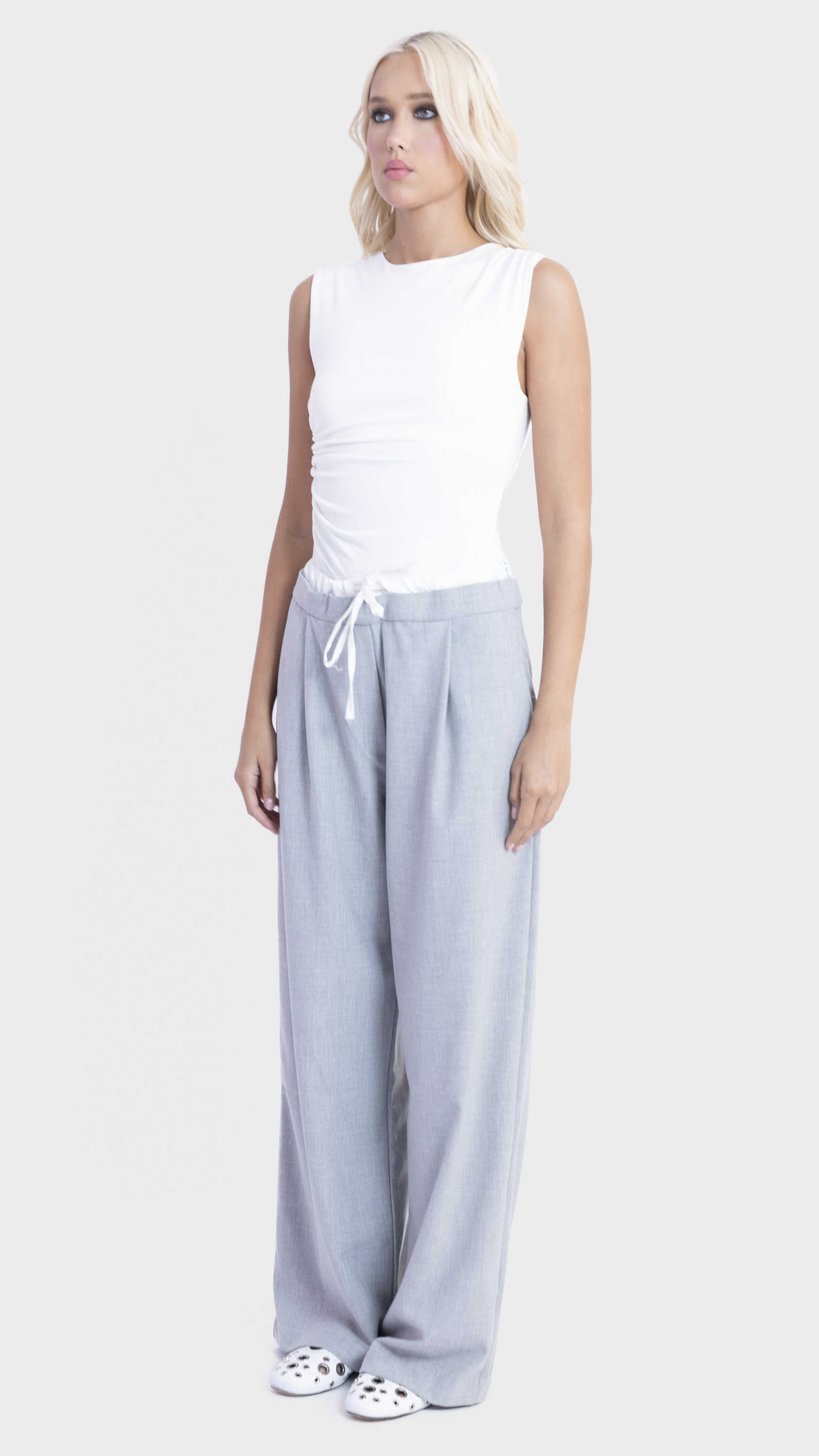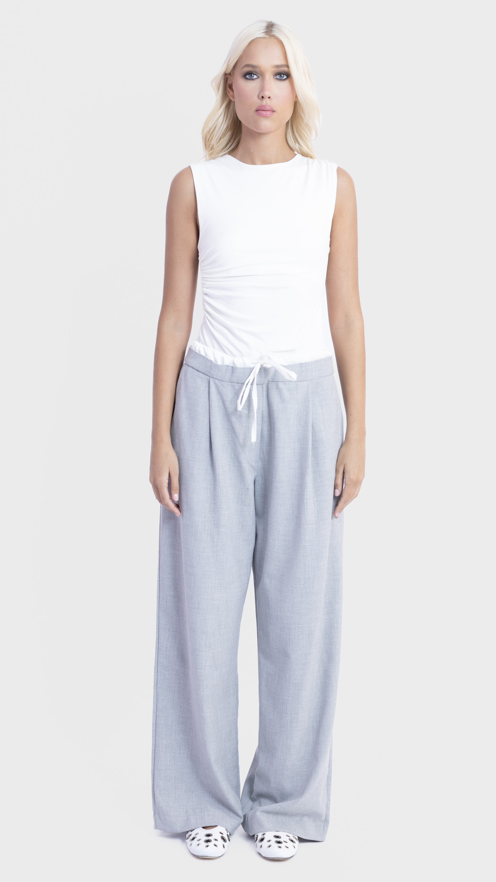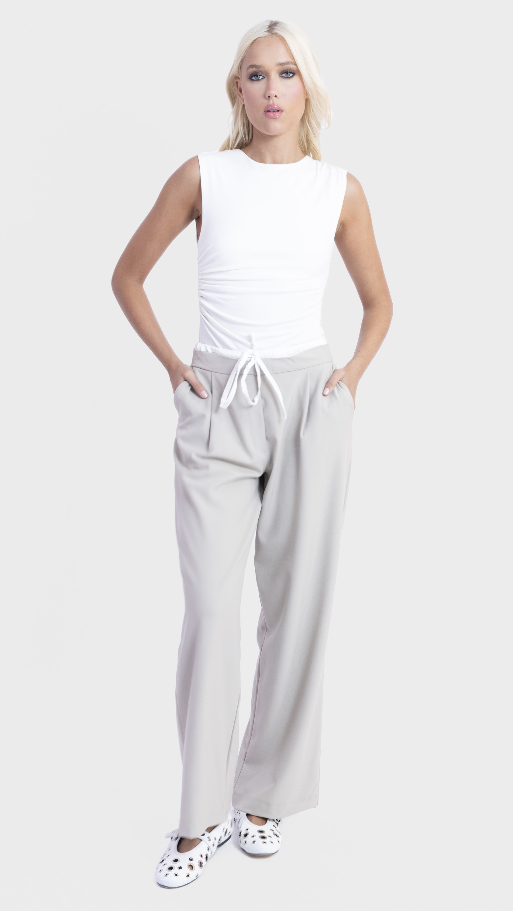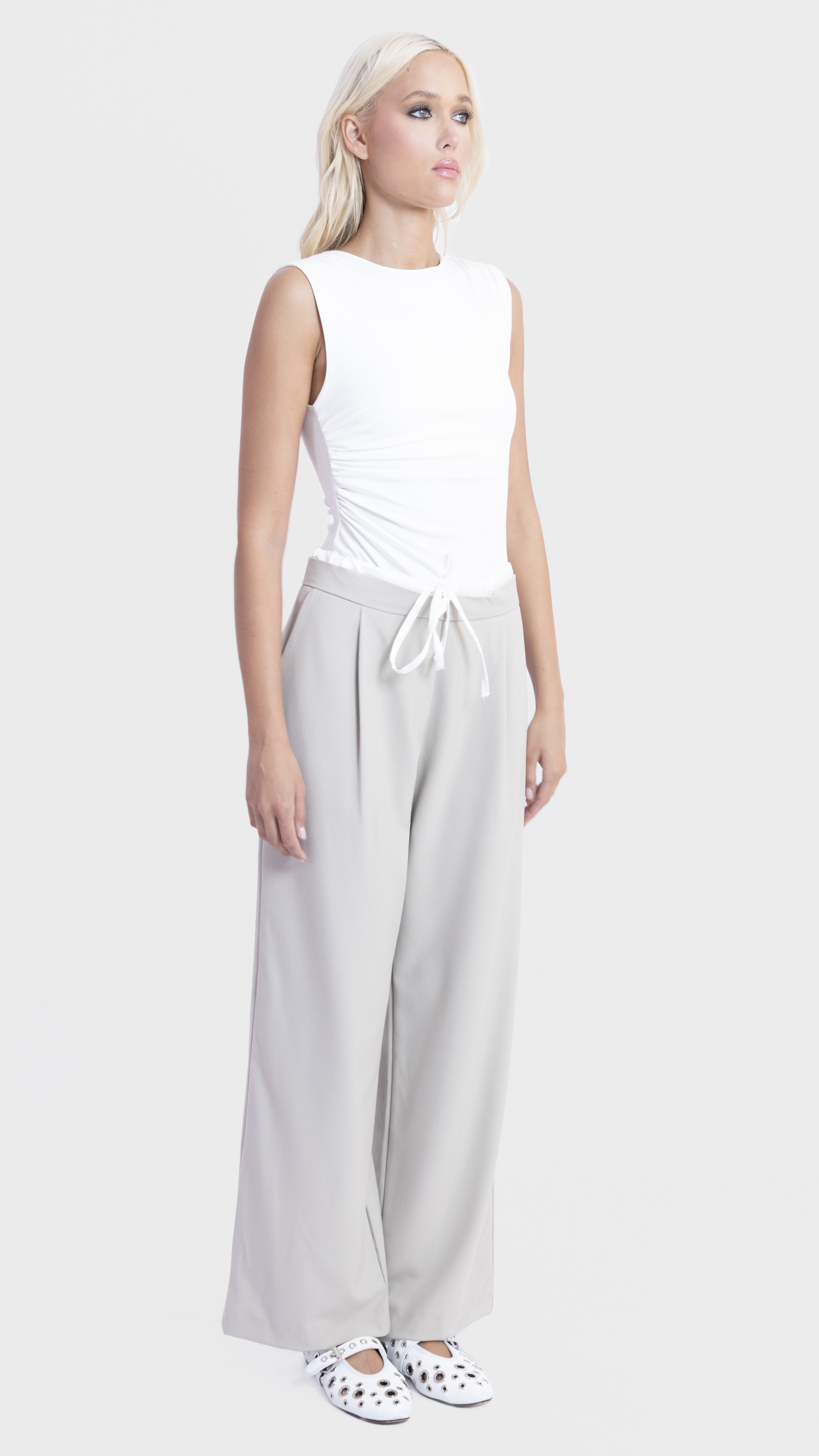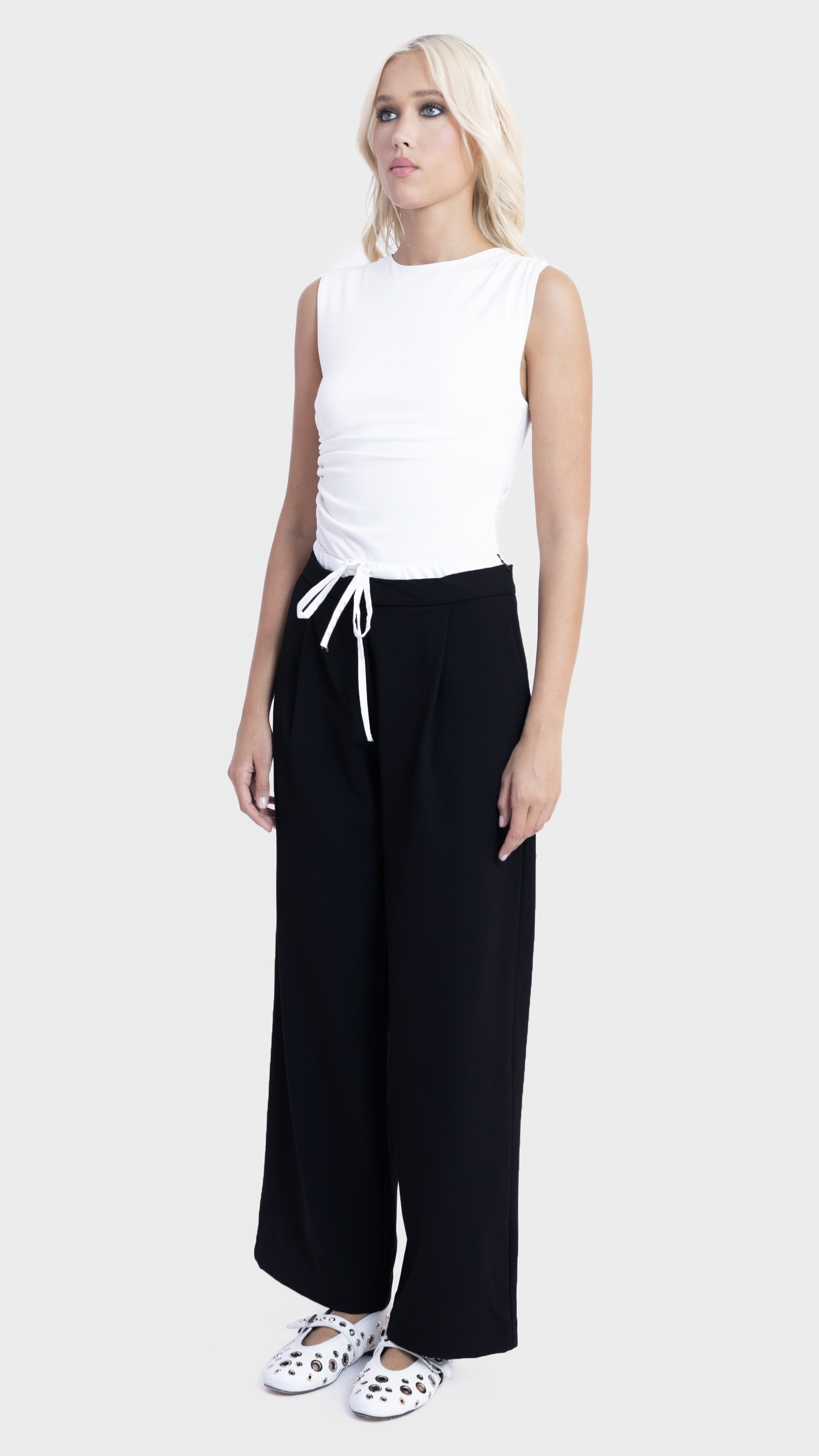 Contrast-Trim Drawstring Waist Wide-Leg Pants
