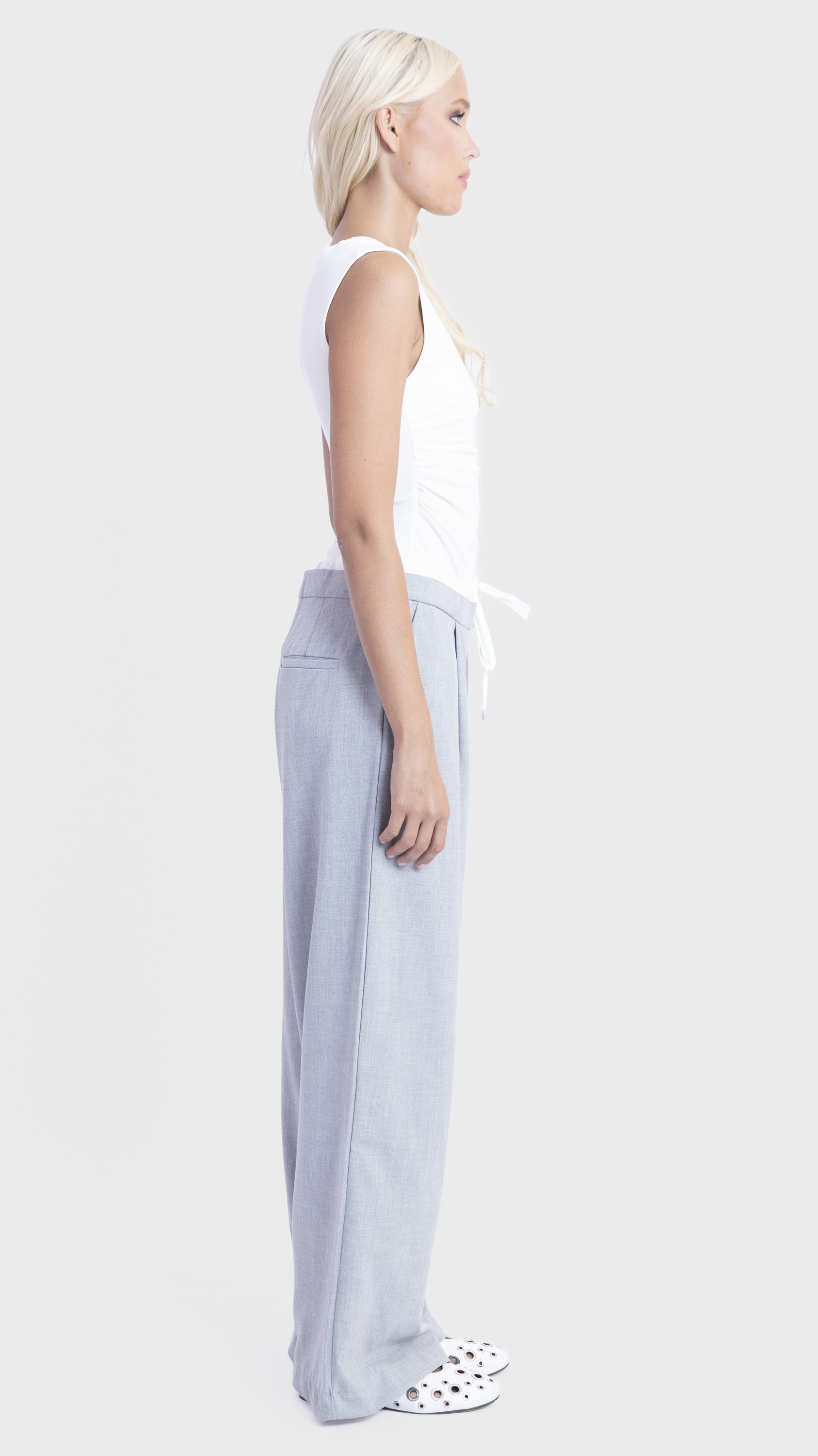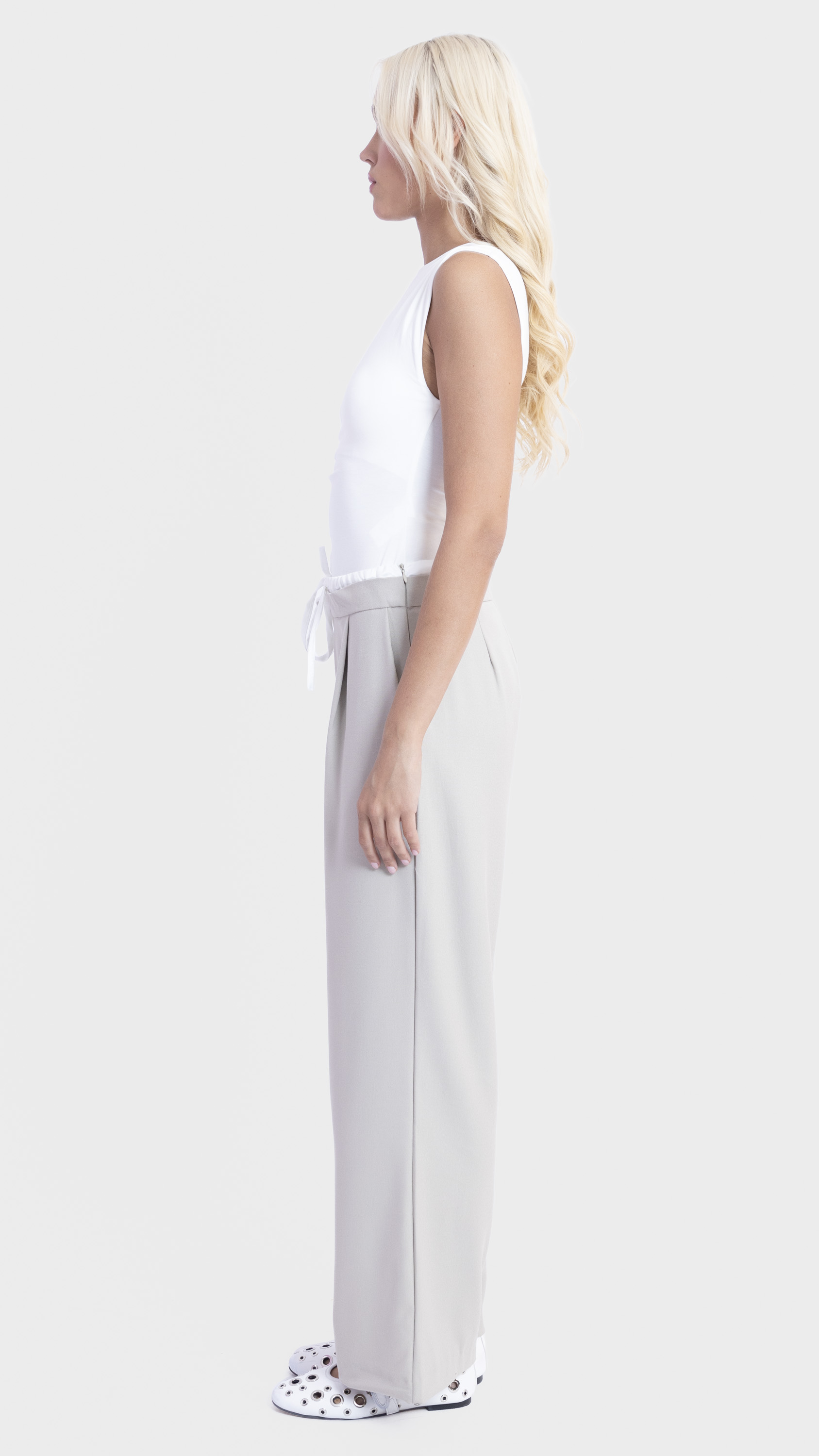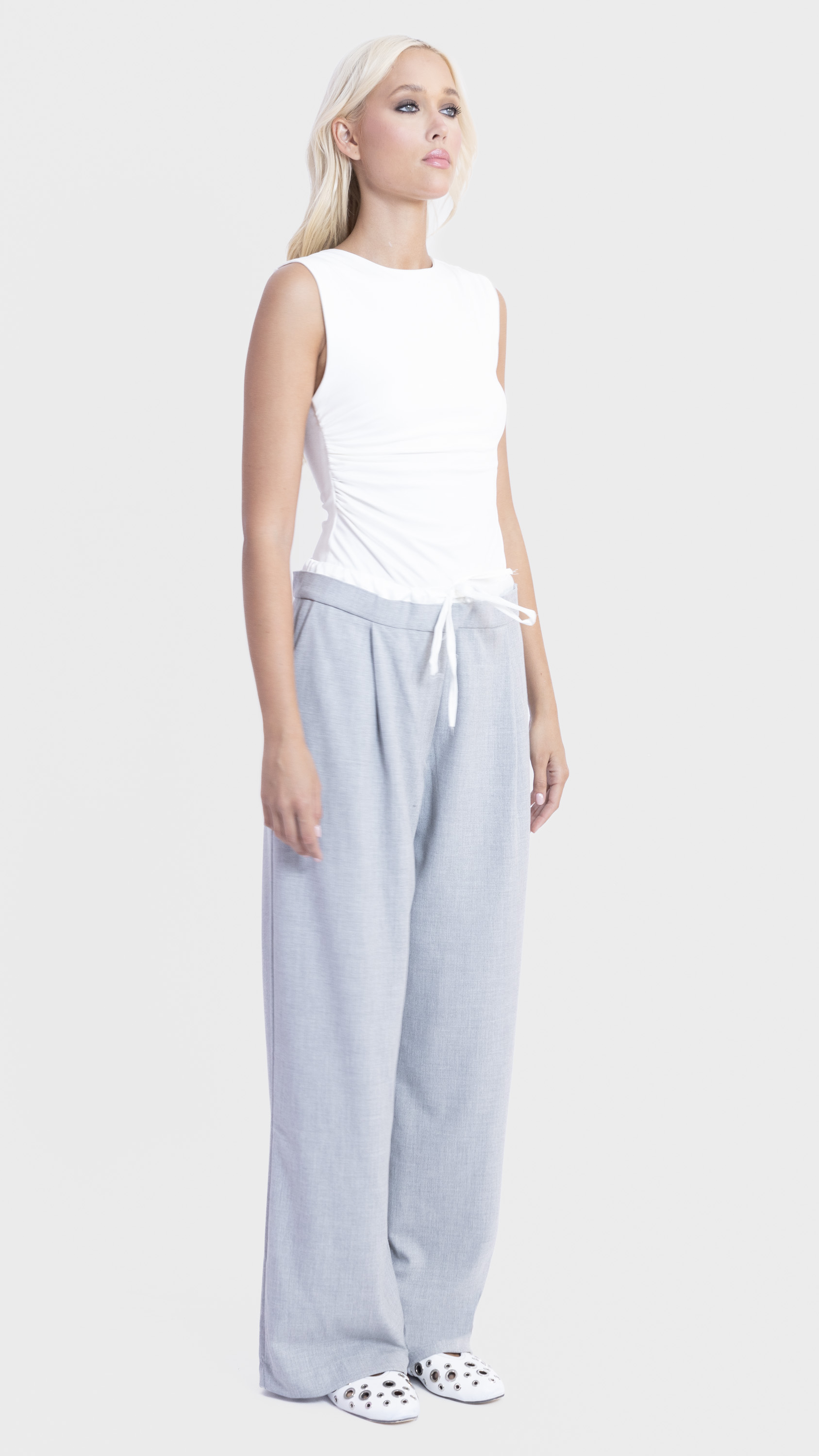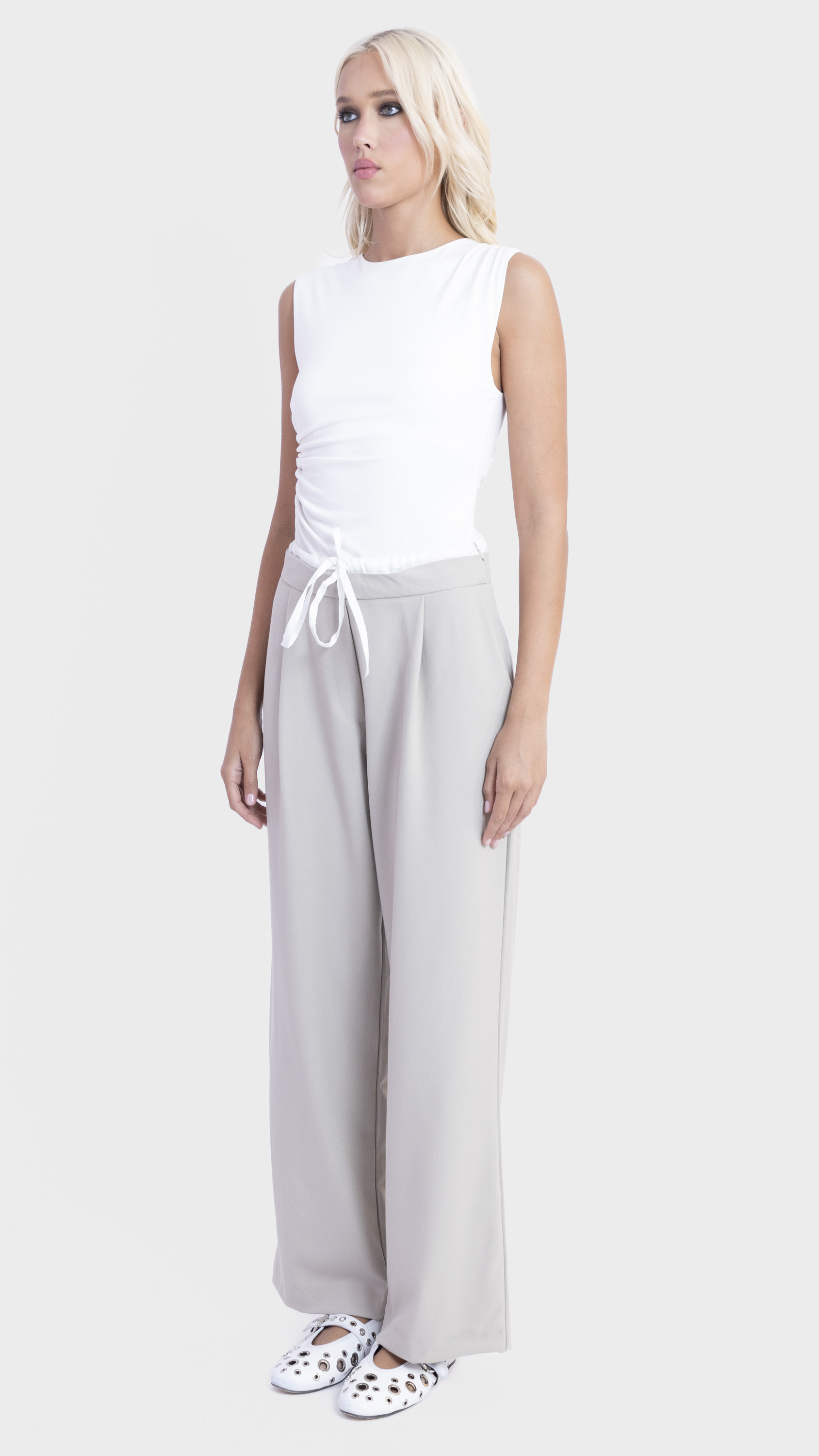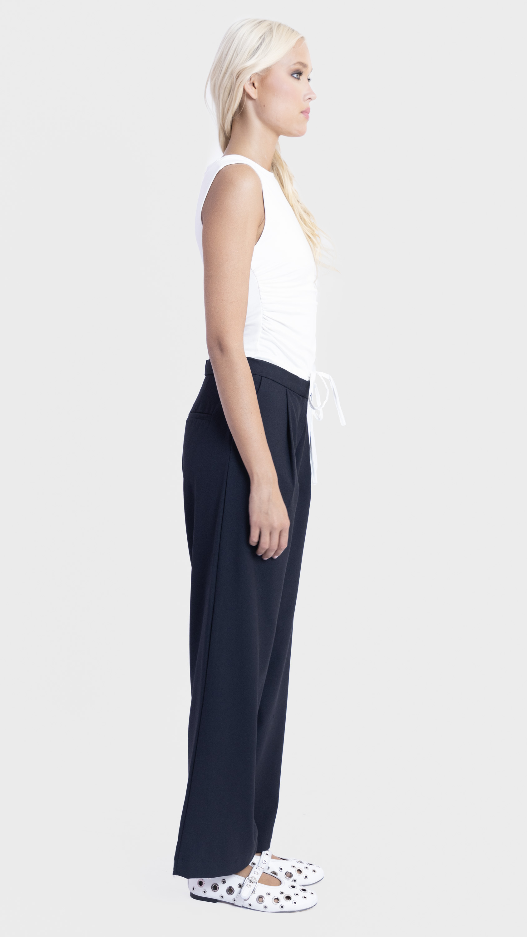 Contrast-Trim Drawstring Waist Wide-Leg Pants