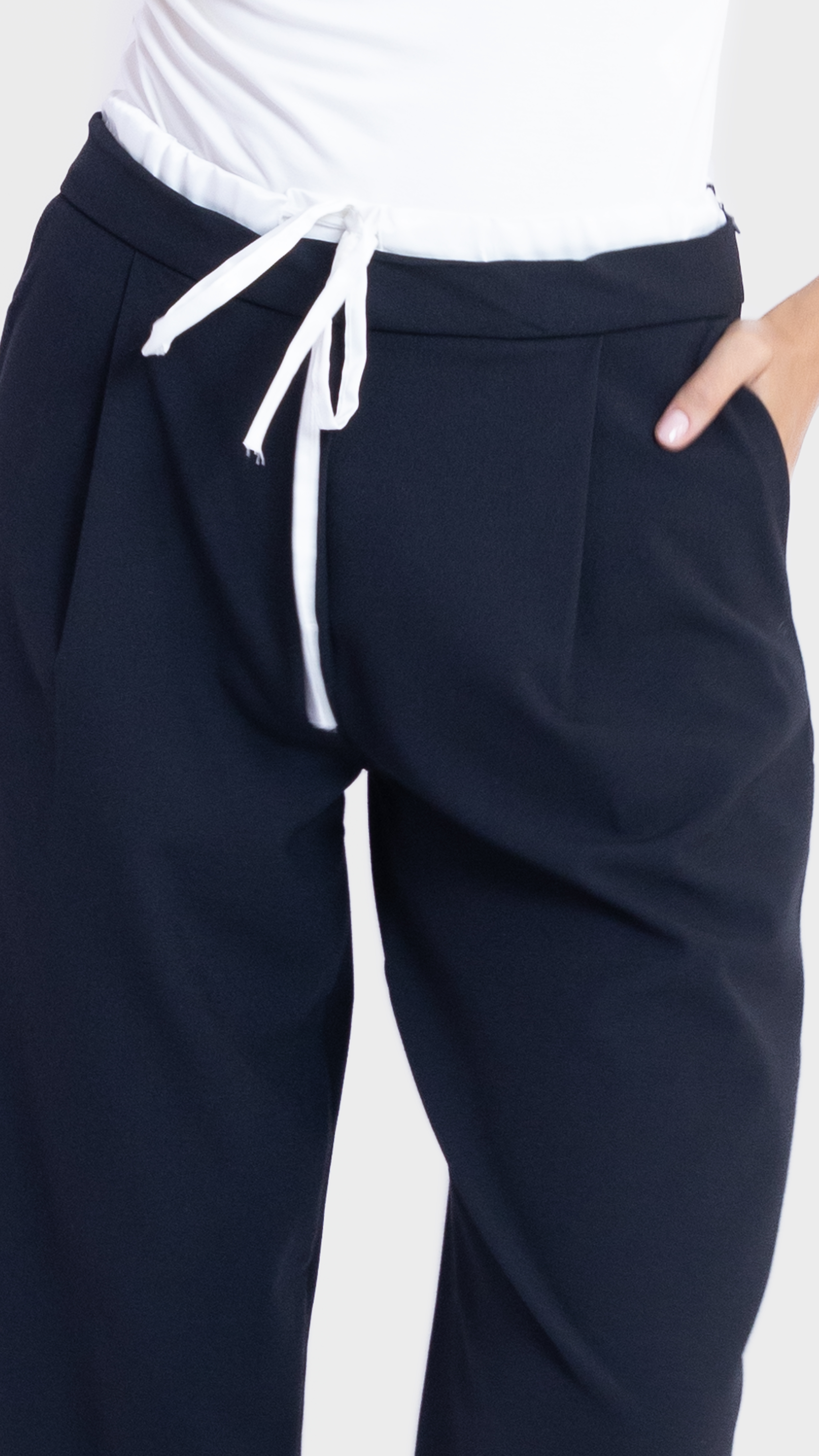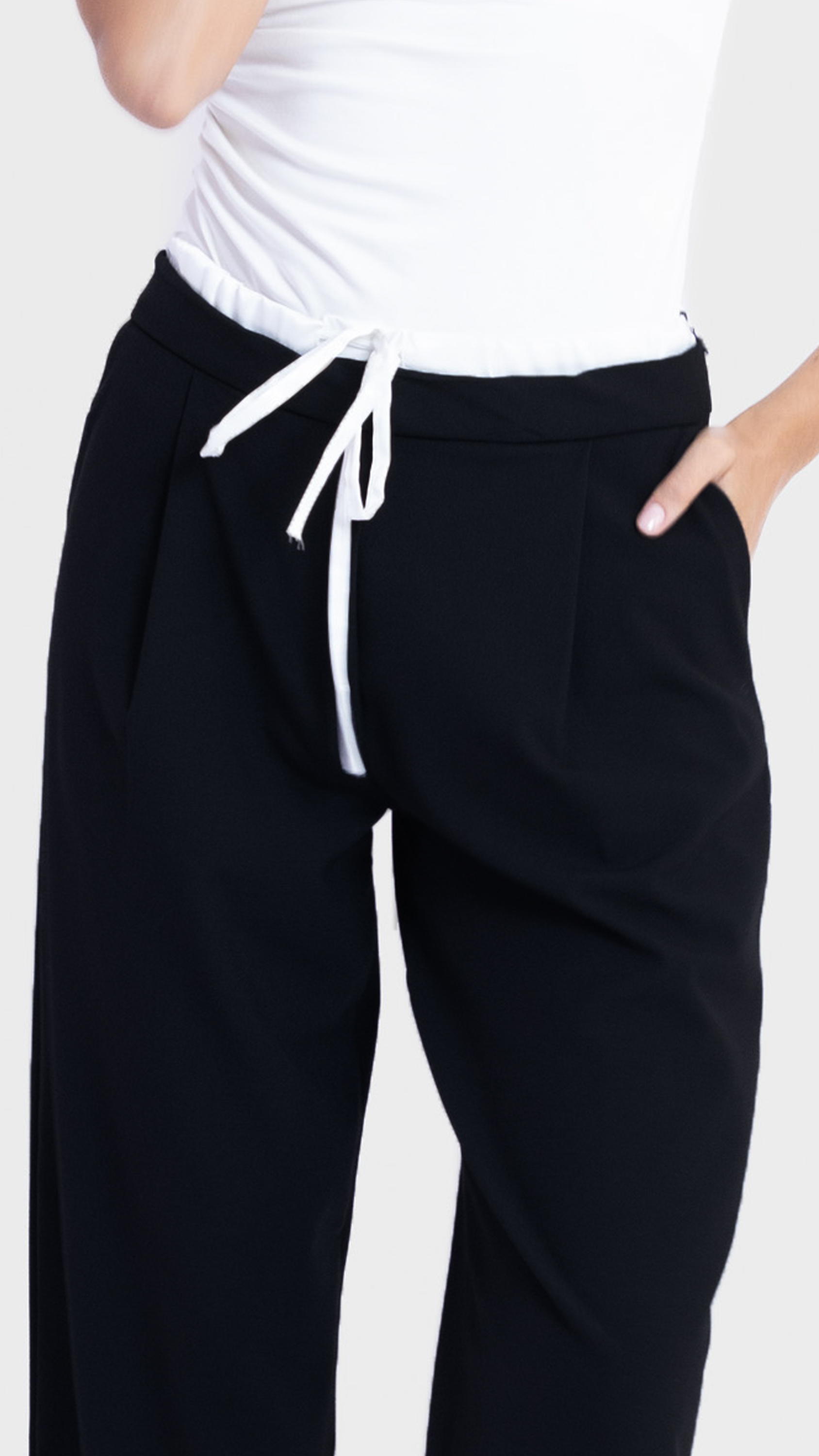 Stay effortlessly stylish with these contrast-trim drawstring pants, designed for all-day comfort and a modern edge.
