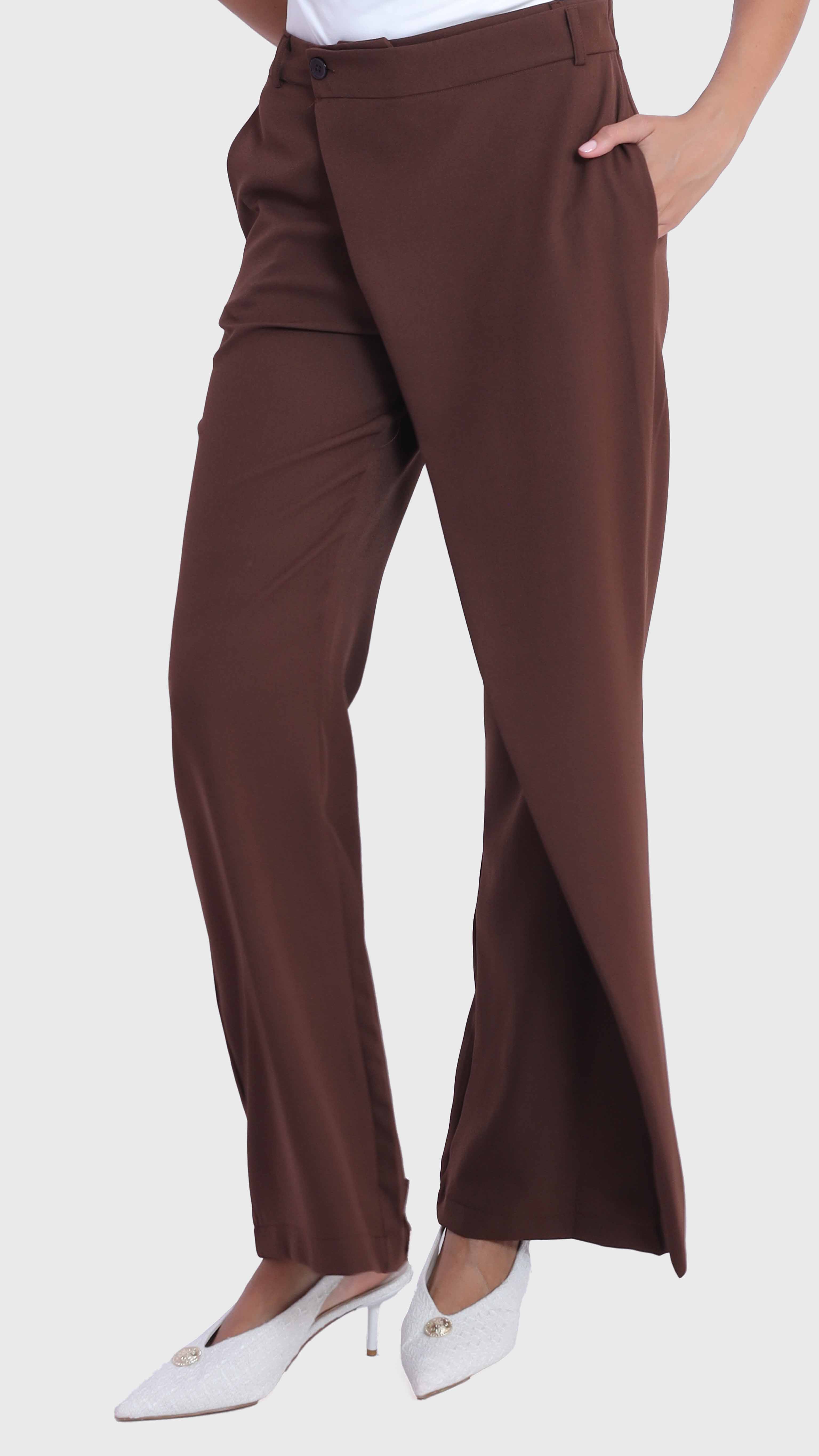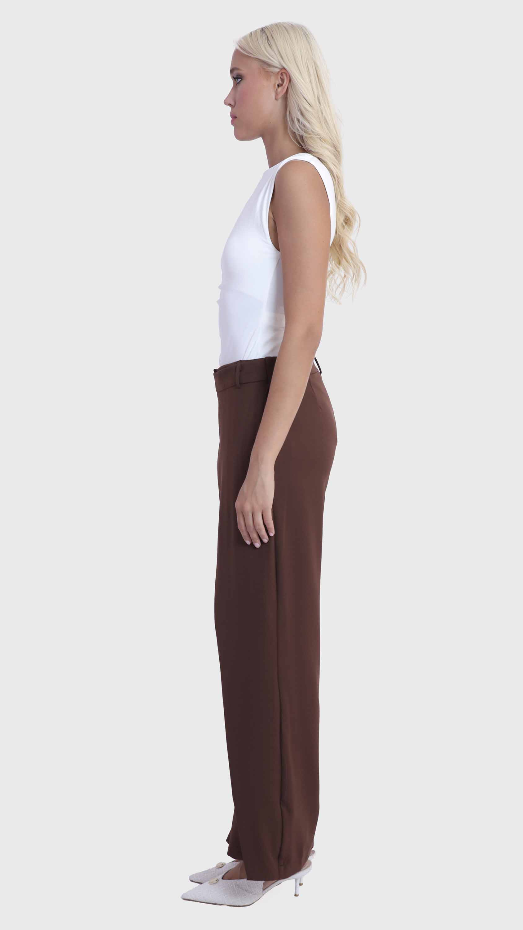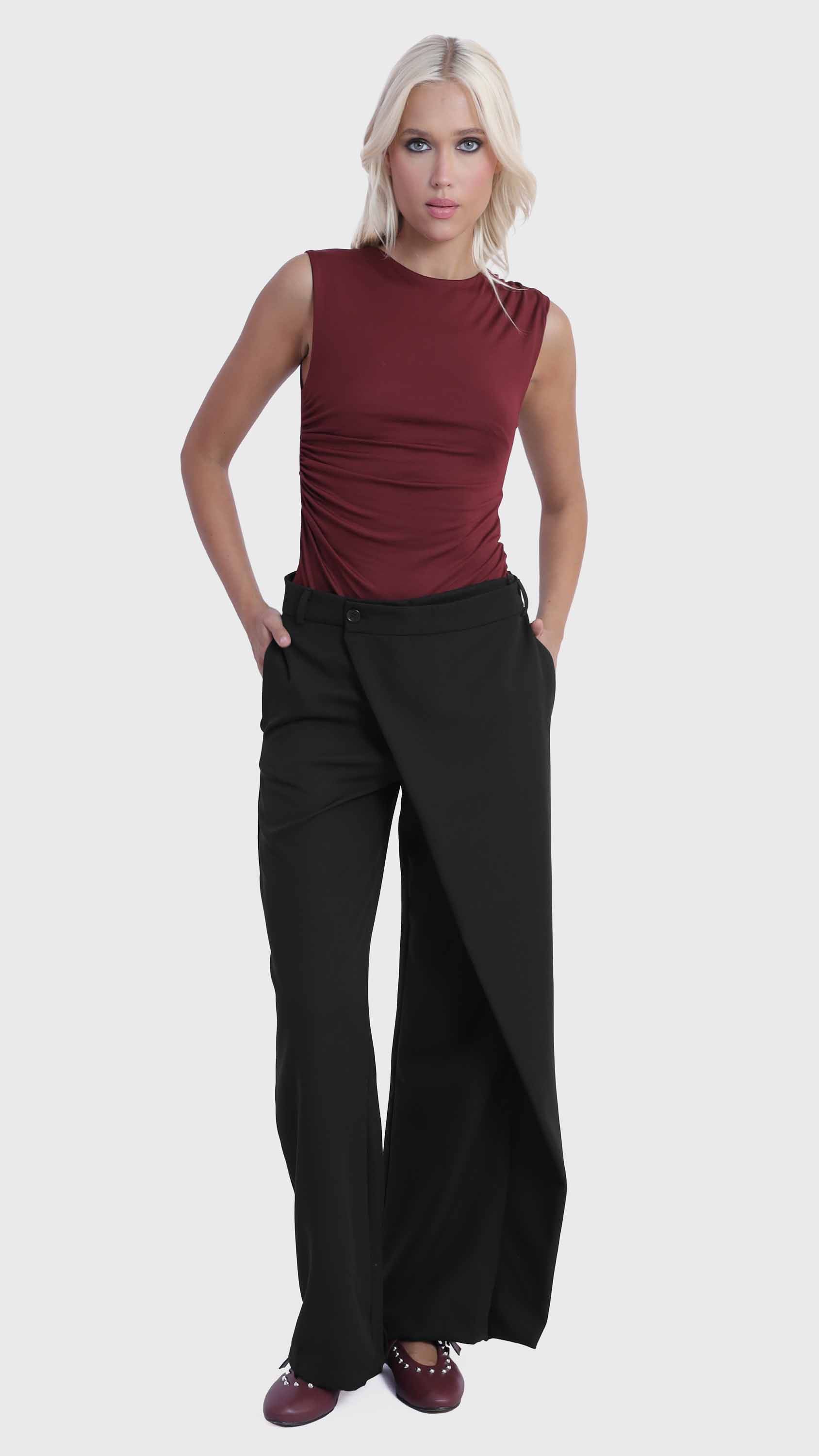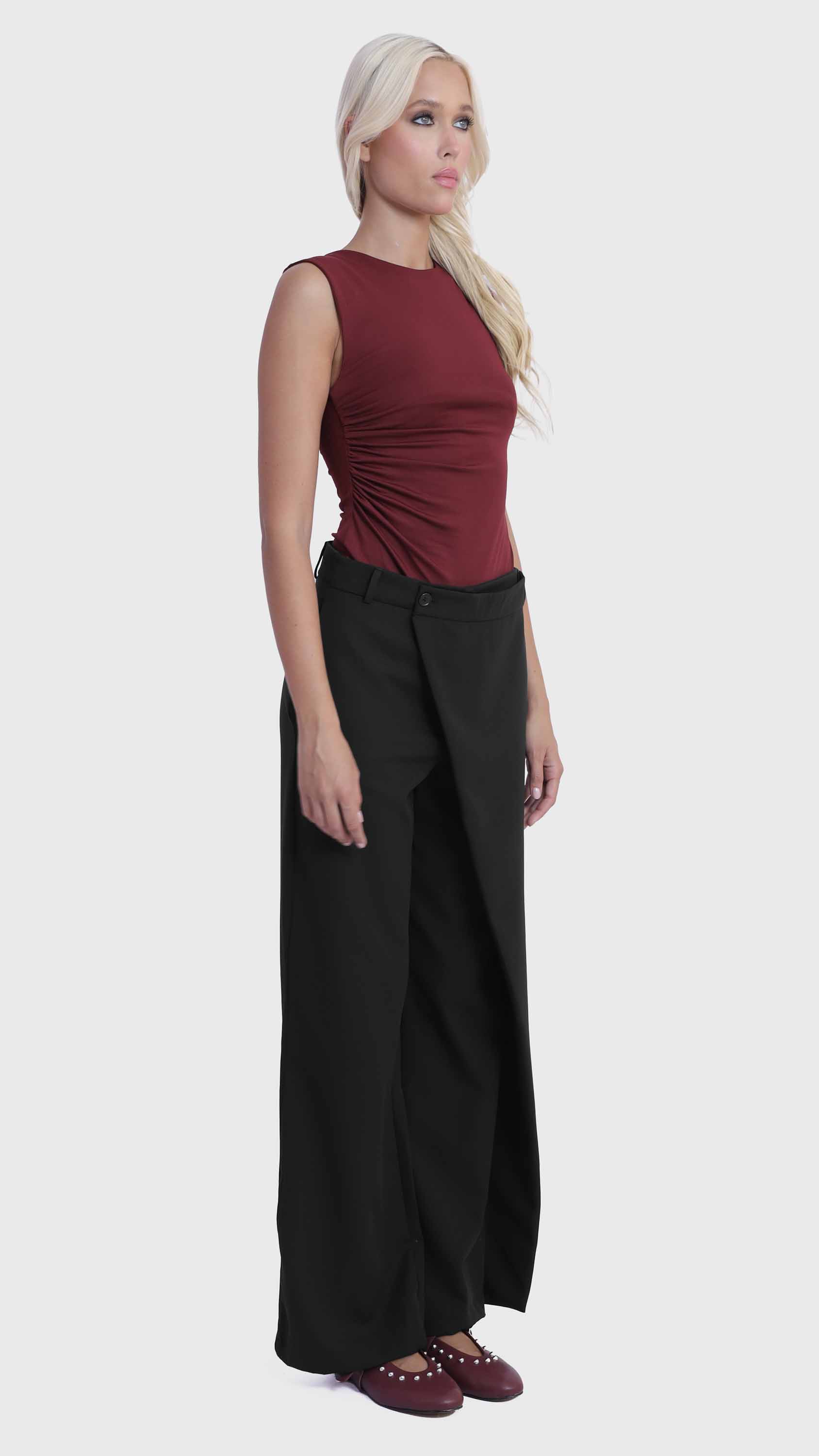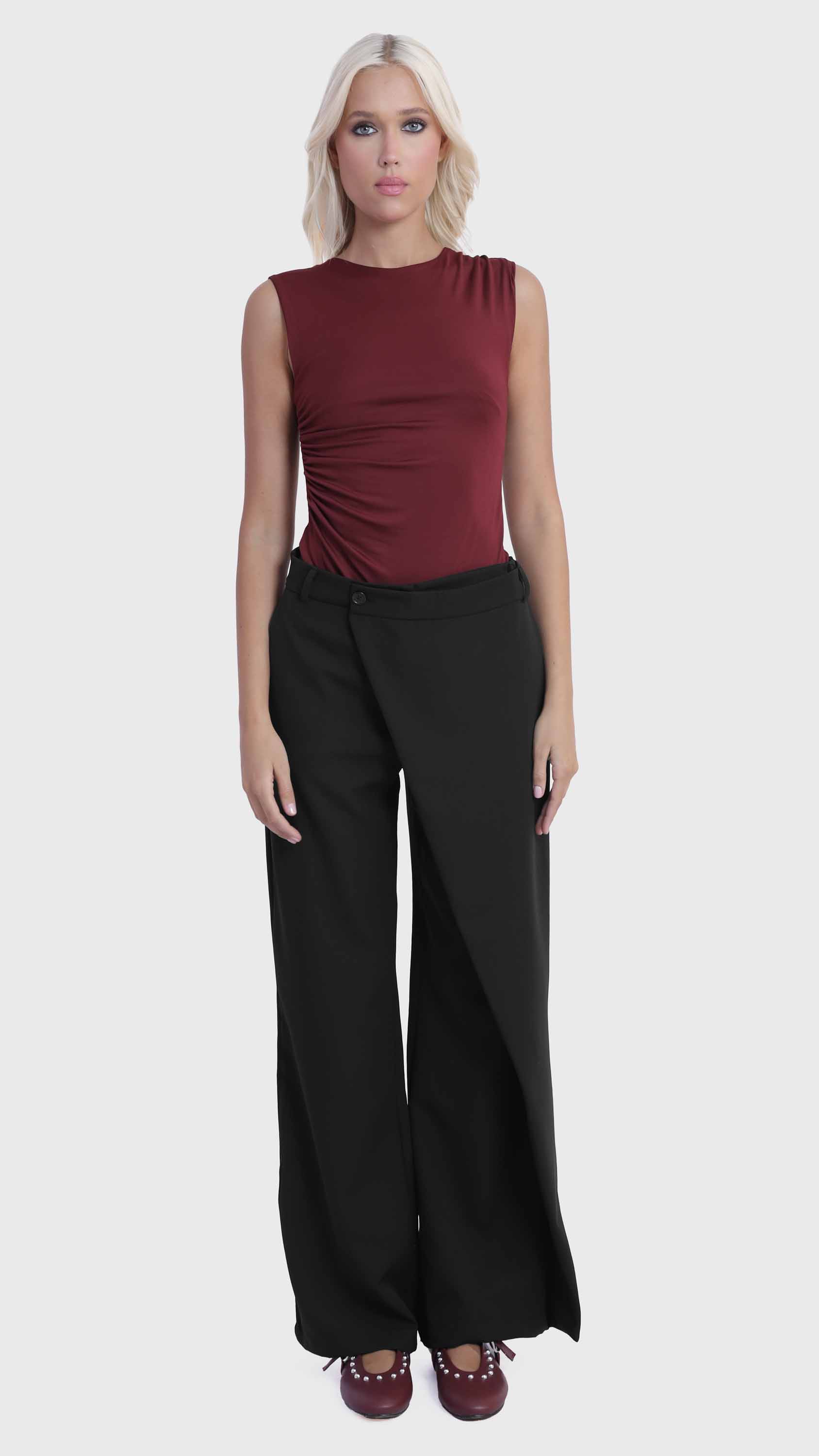 These high-waisted maroon trousers combine modern elegance with effortless flow. Designed with a wide-leg silhouette and crafted from soft, drapey fabric, they’re a go-to for refined daywear or elevated evening styling.