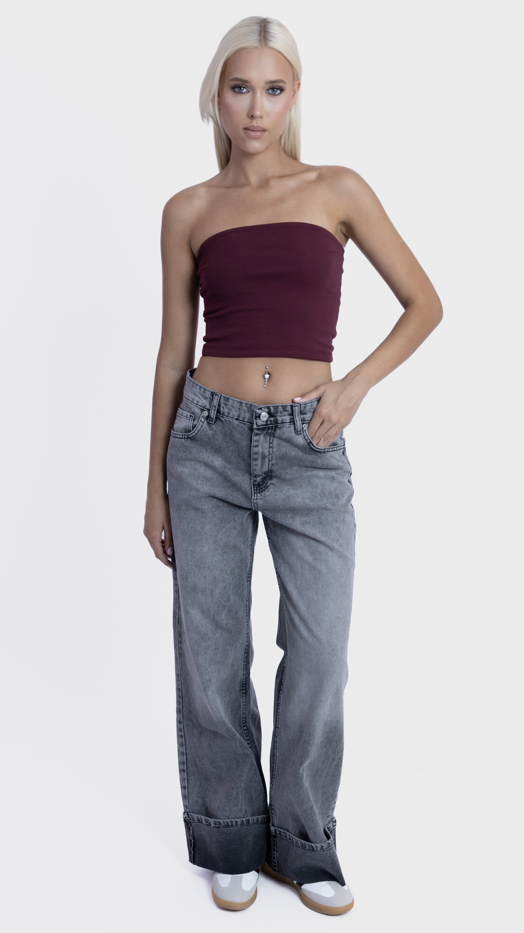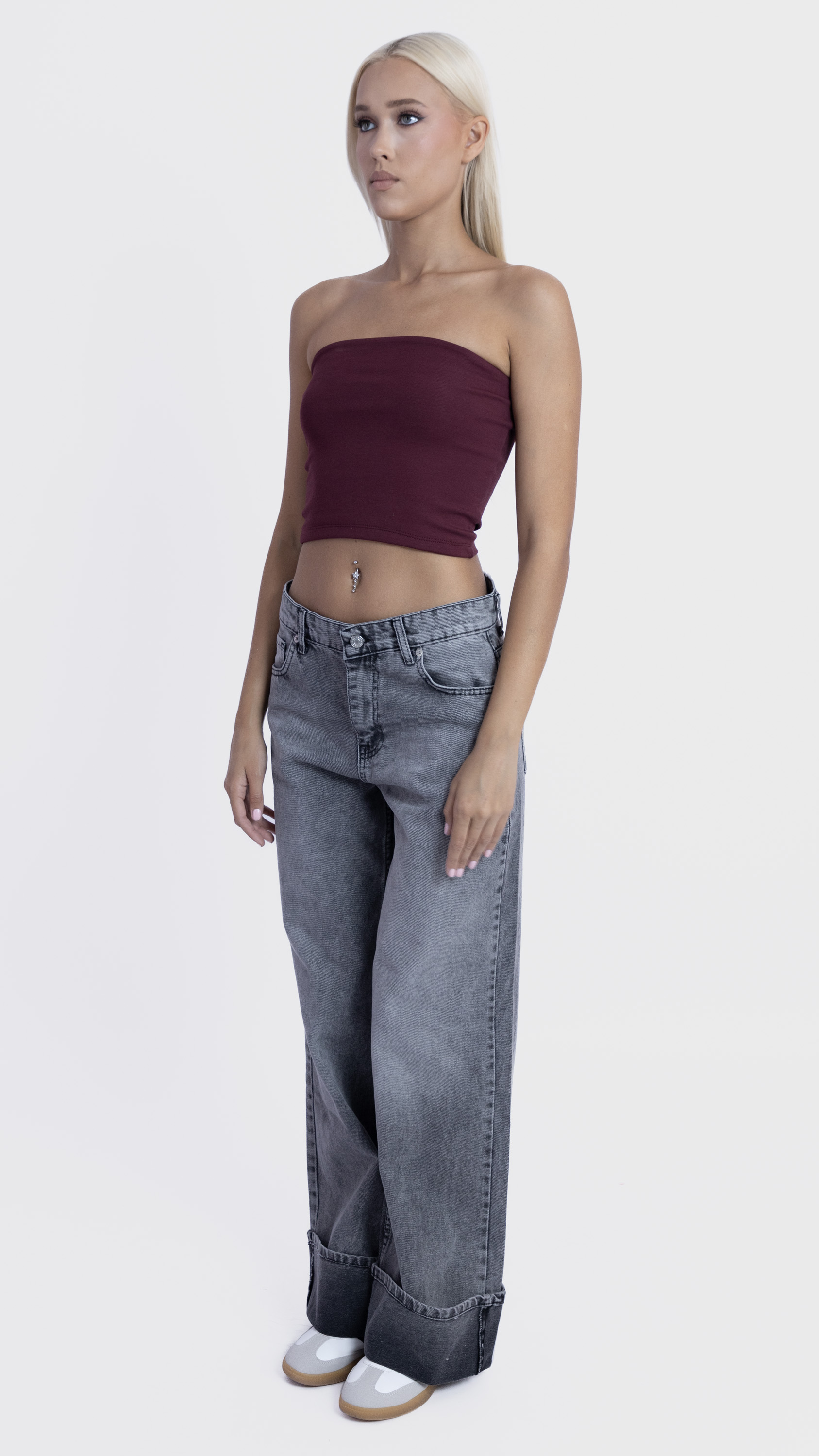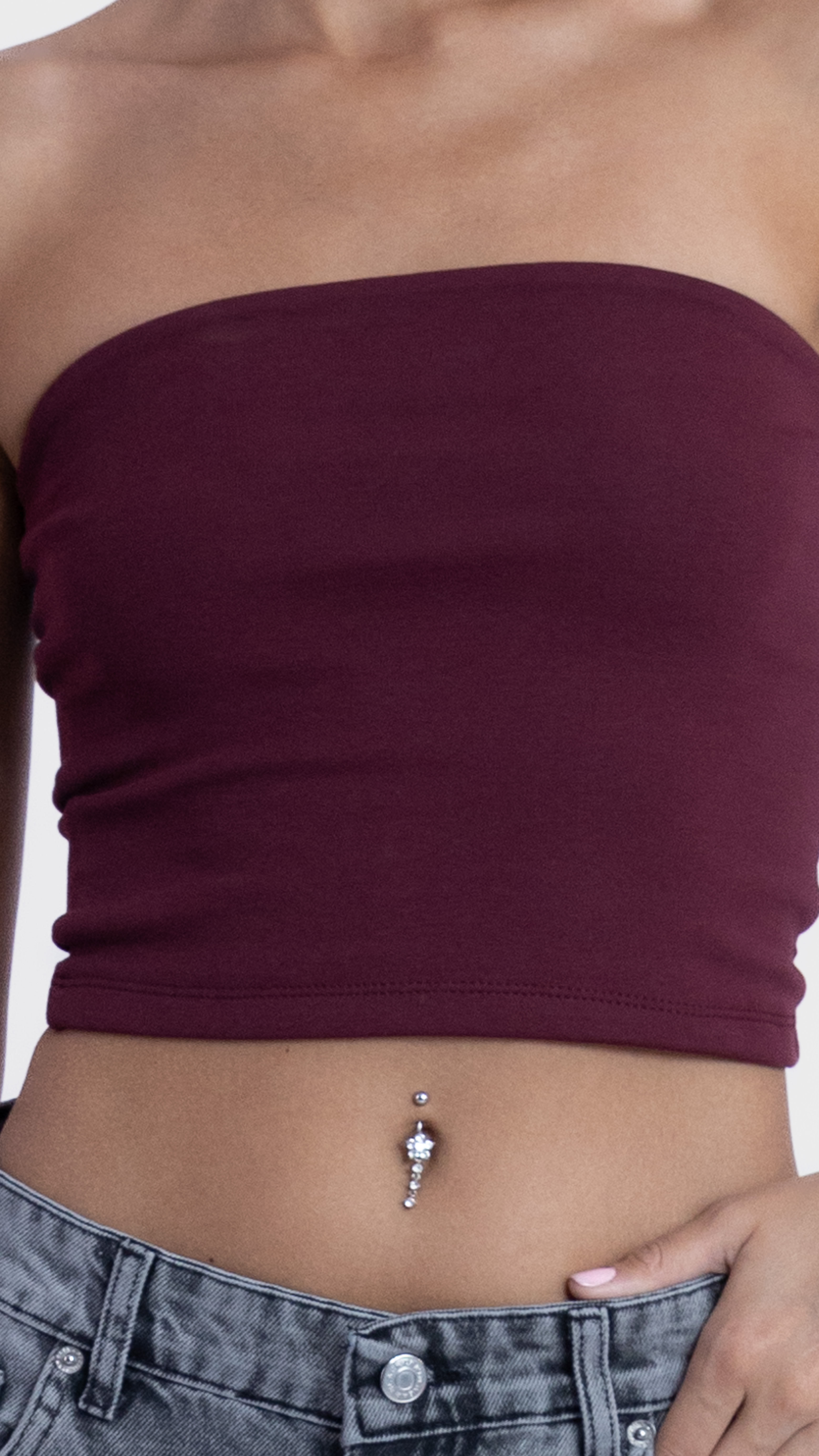Add a bold touch to your look with this Burgundy Drape Bandeau Top, designed for a sleek and flattering silhouette.