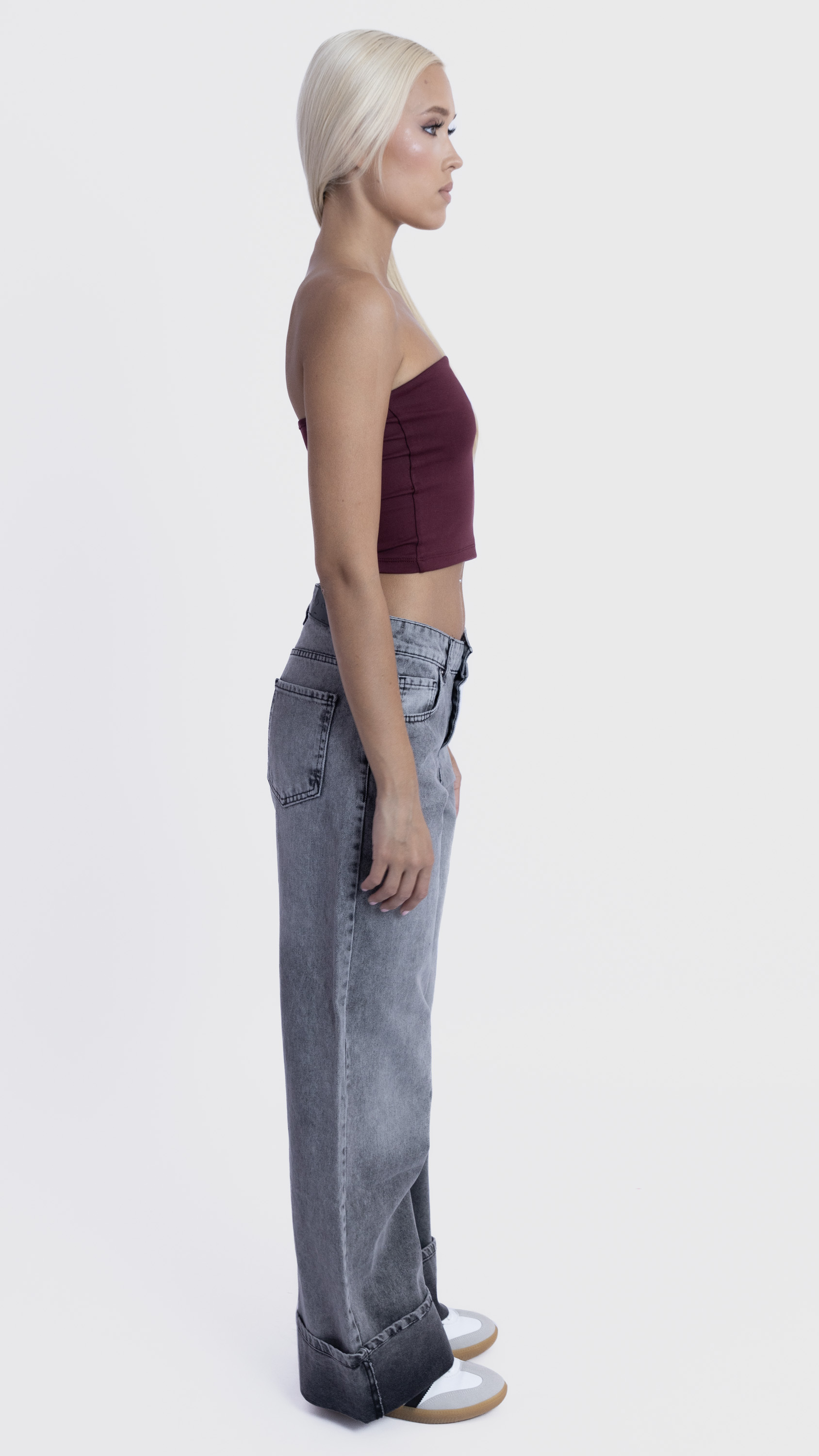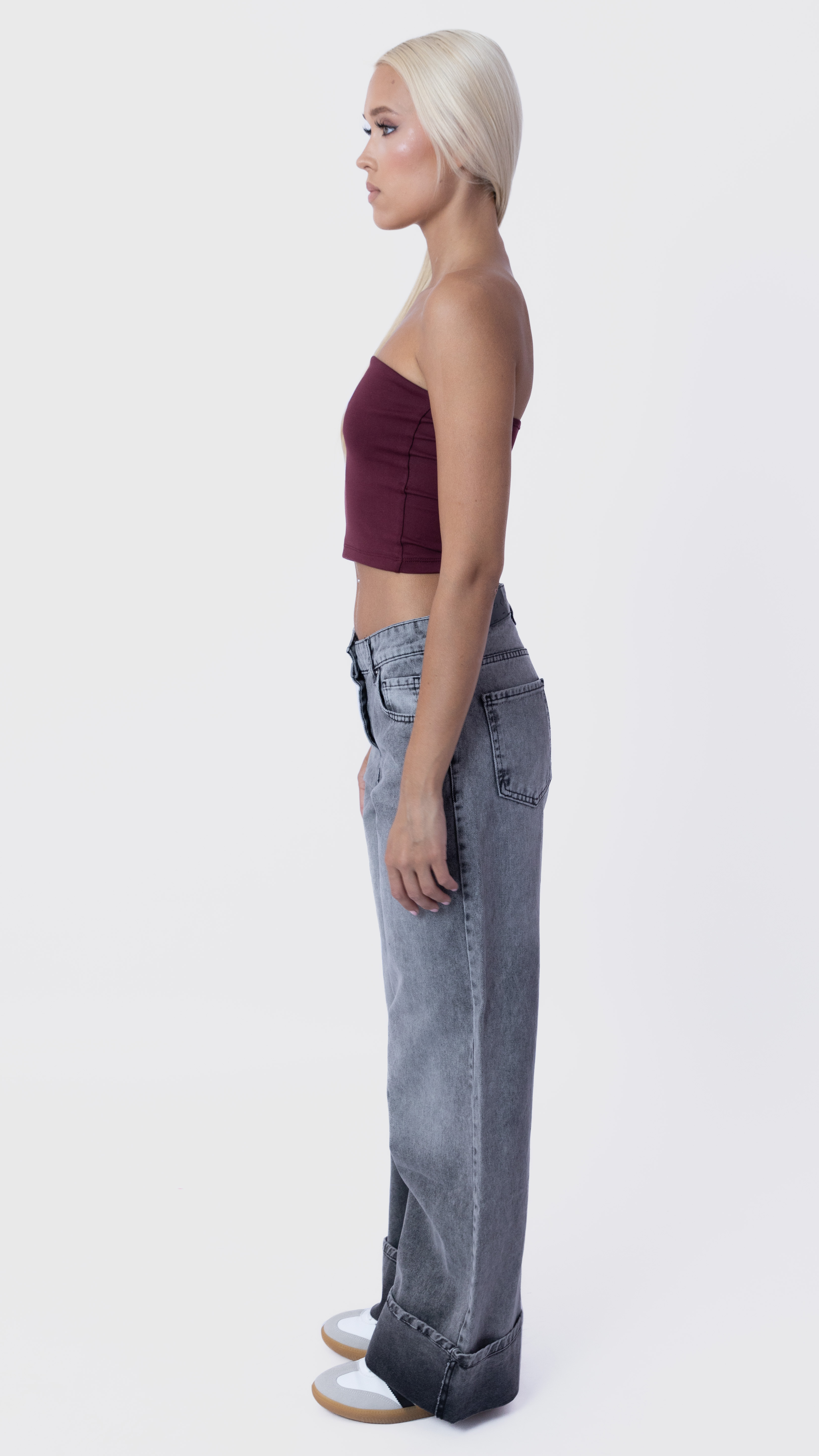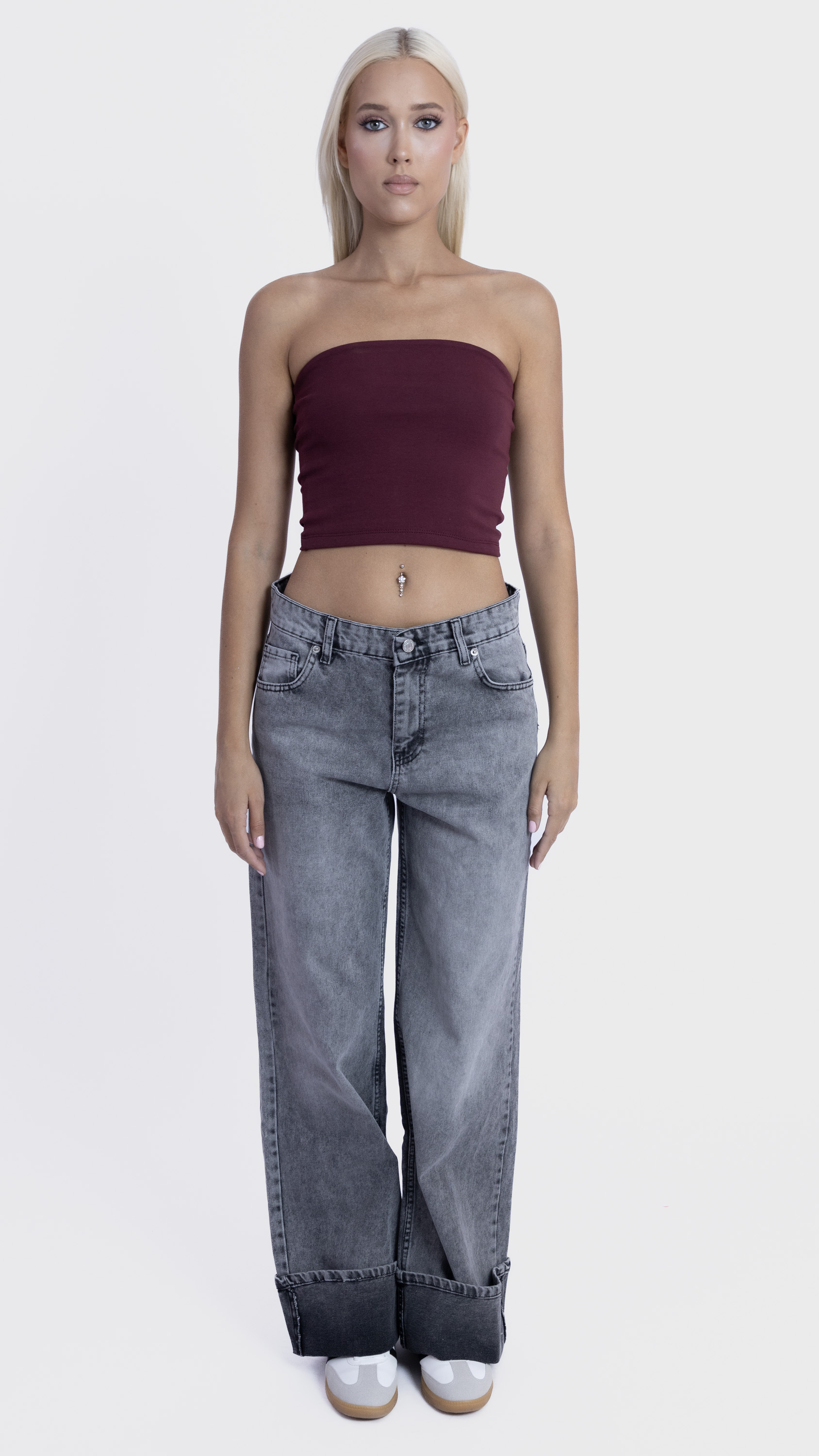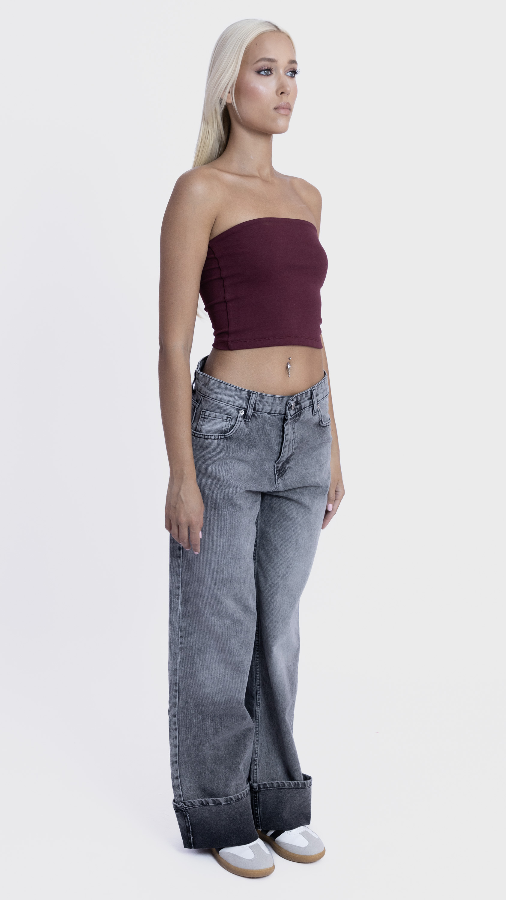 Add a bold touch to your look with this Burgundy Drape Bandeau Top, designed for a sleek and flattering silhouette.