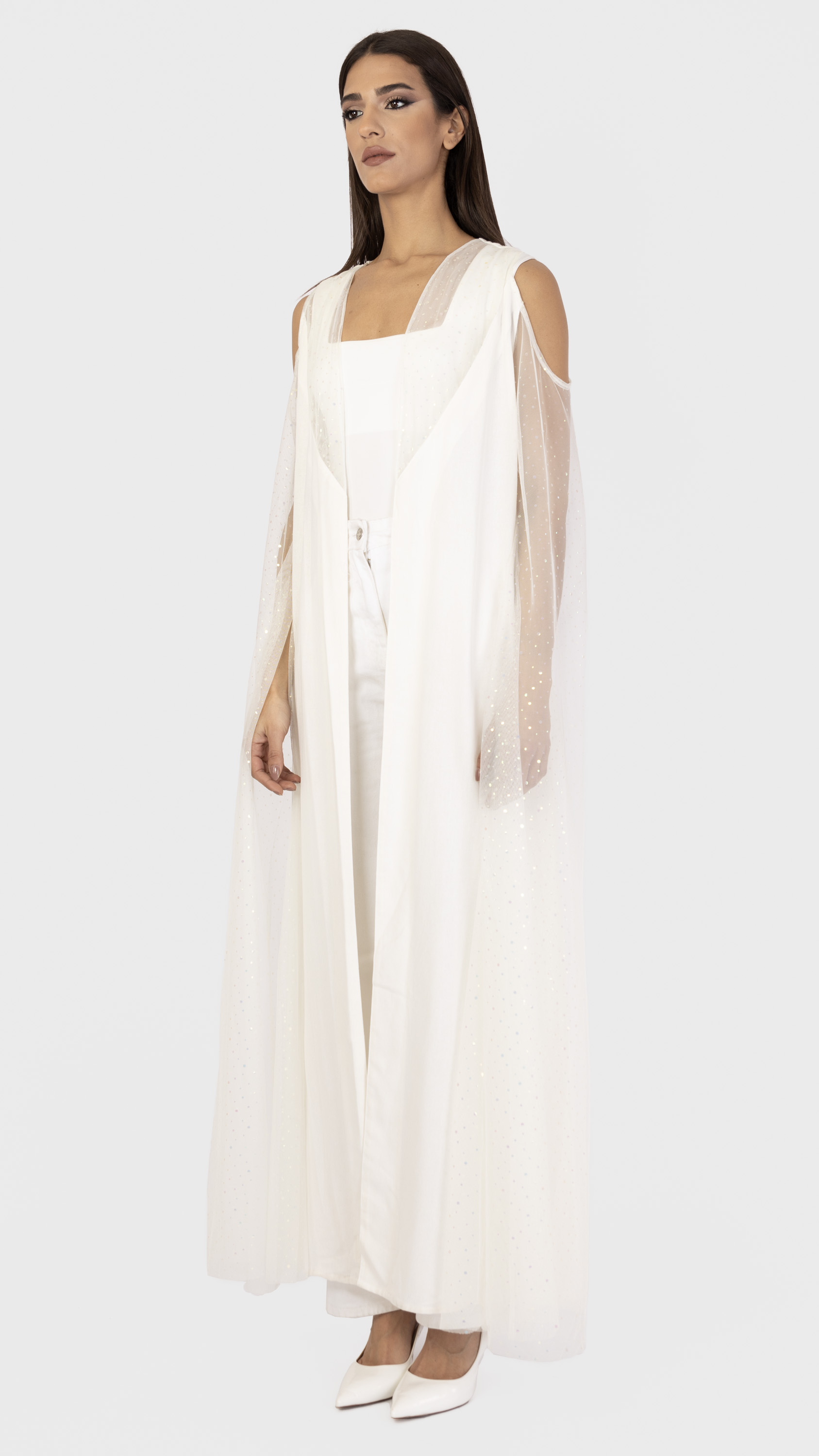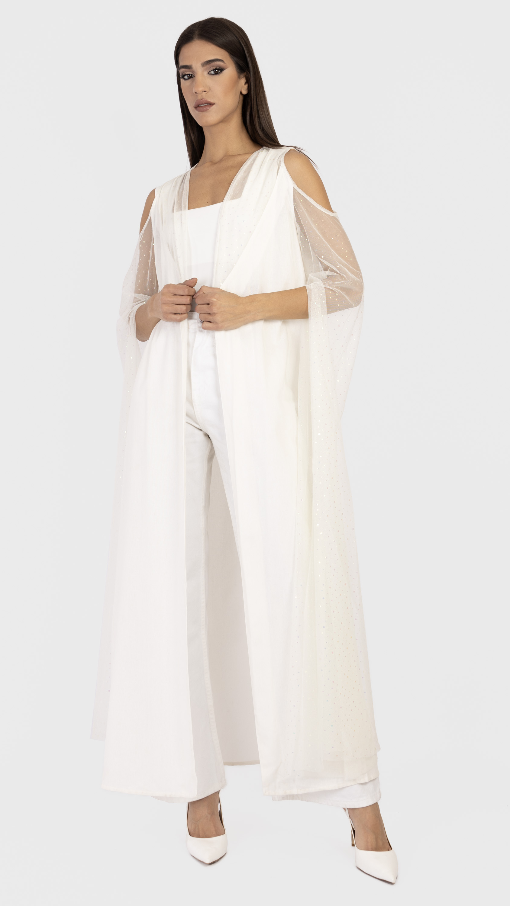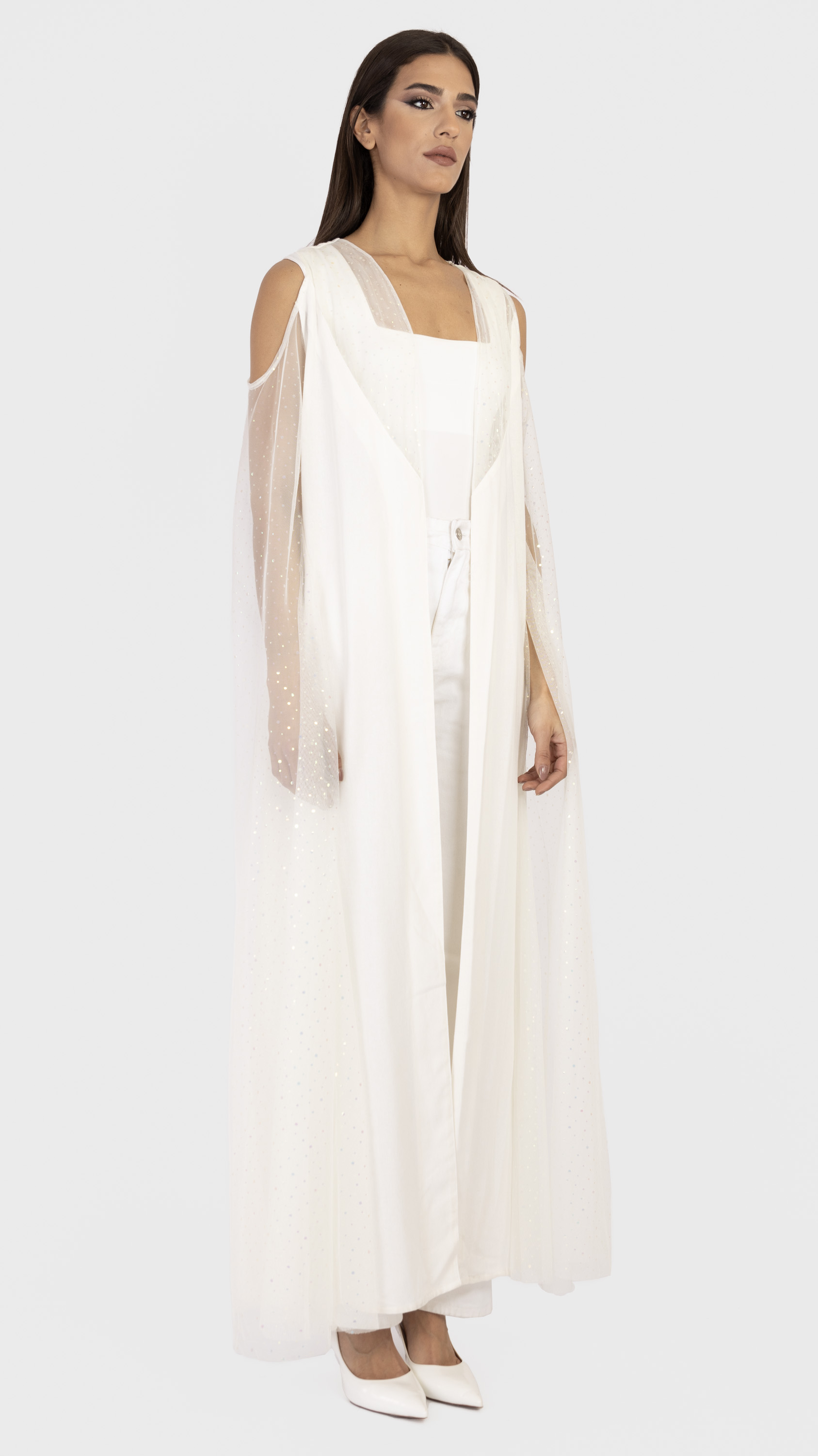 Linen tulle sleeve maxi abaya