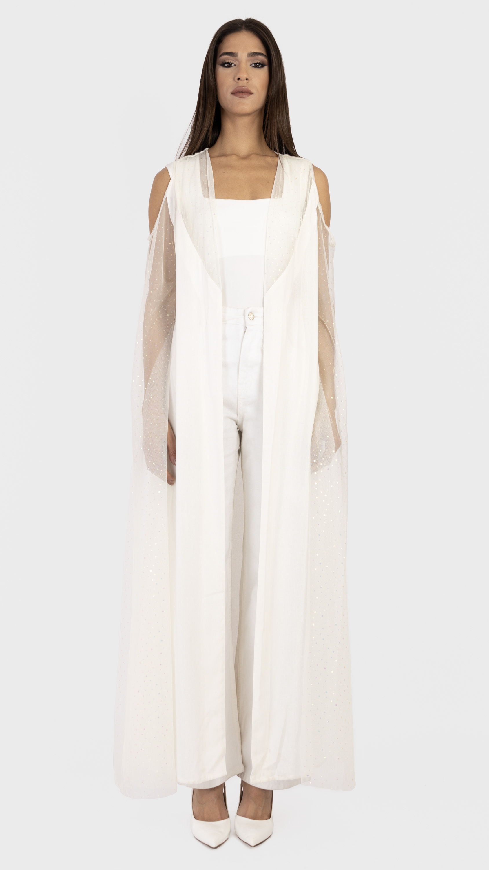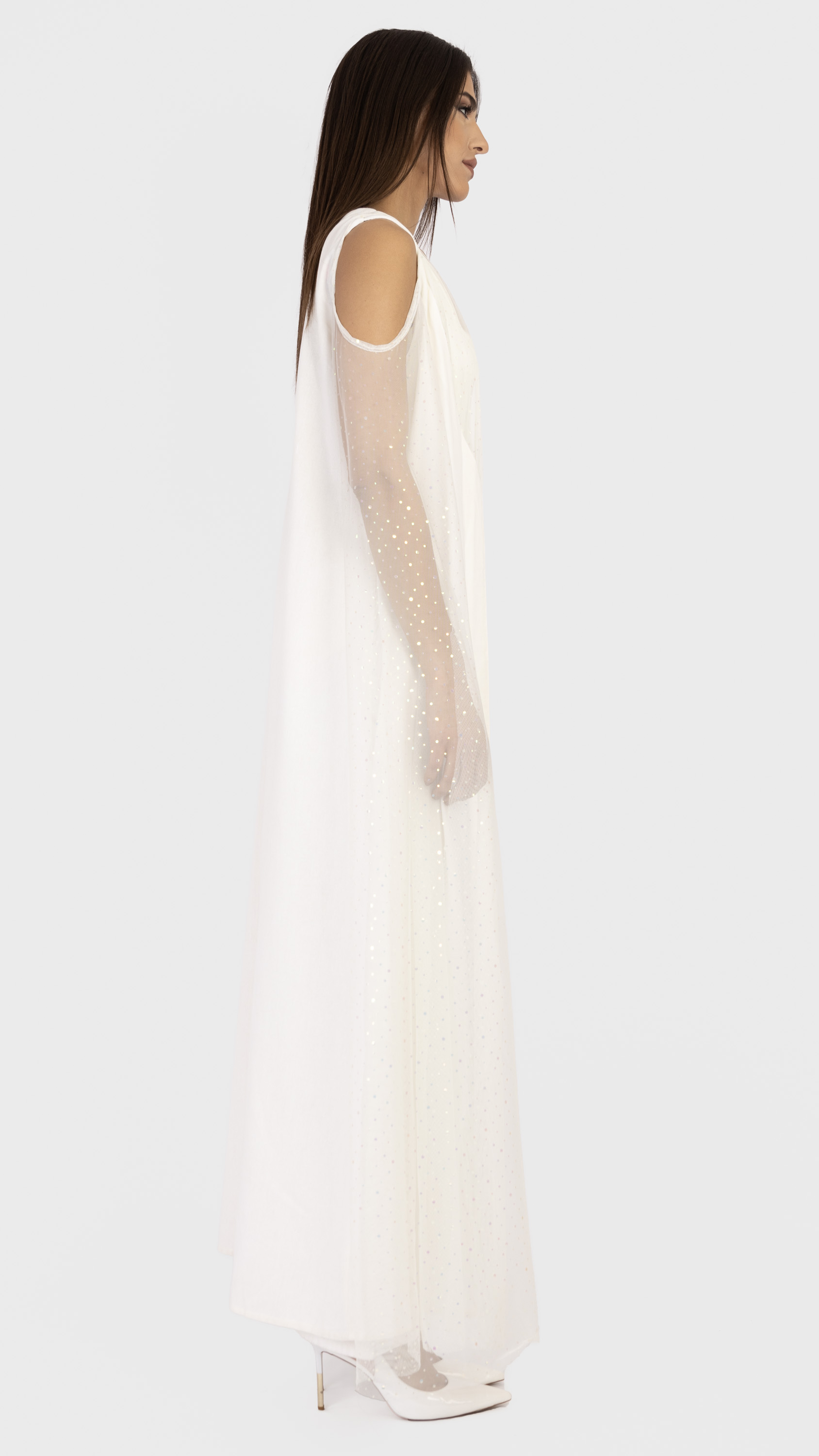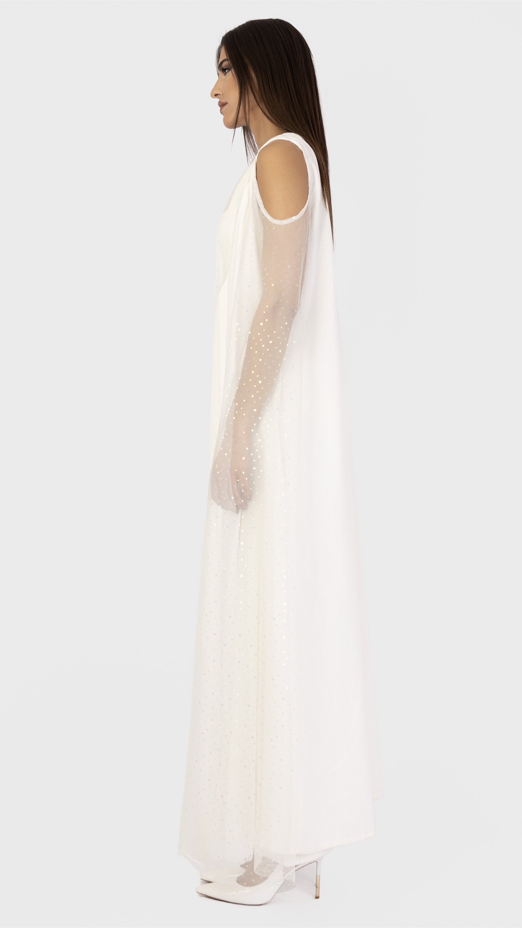 Linen tulle sleeve maxi abaya