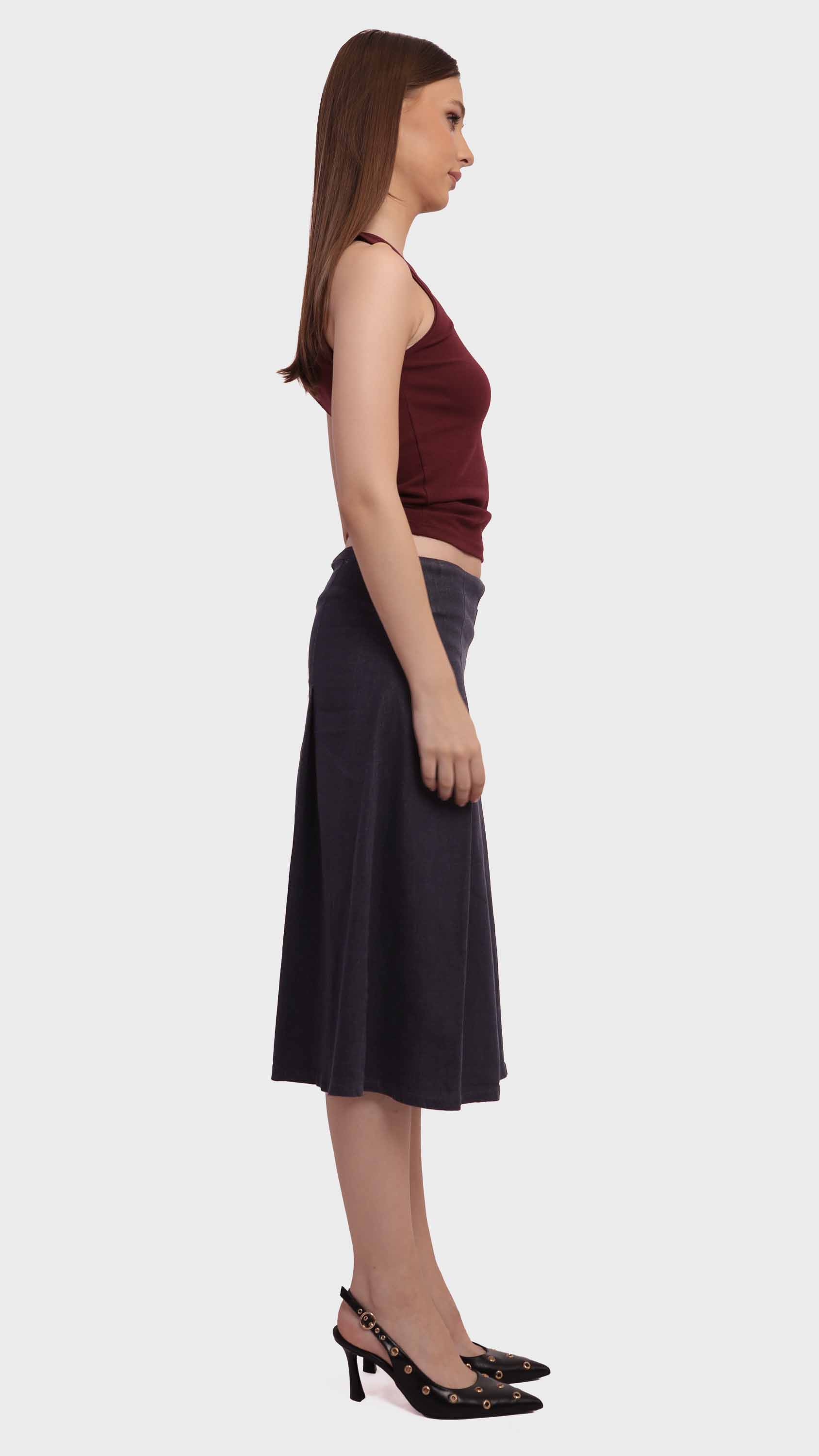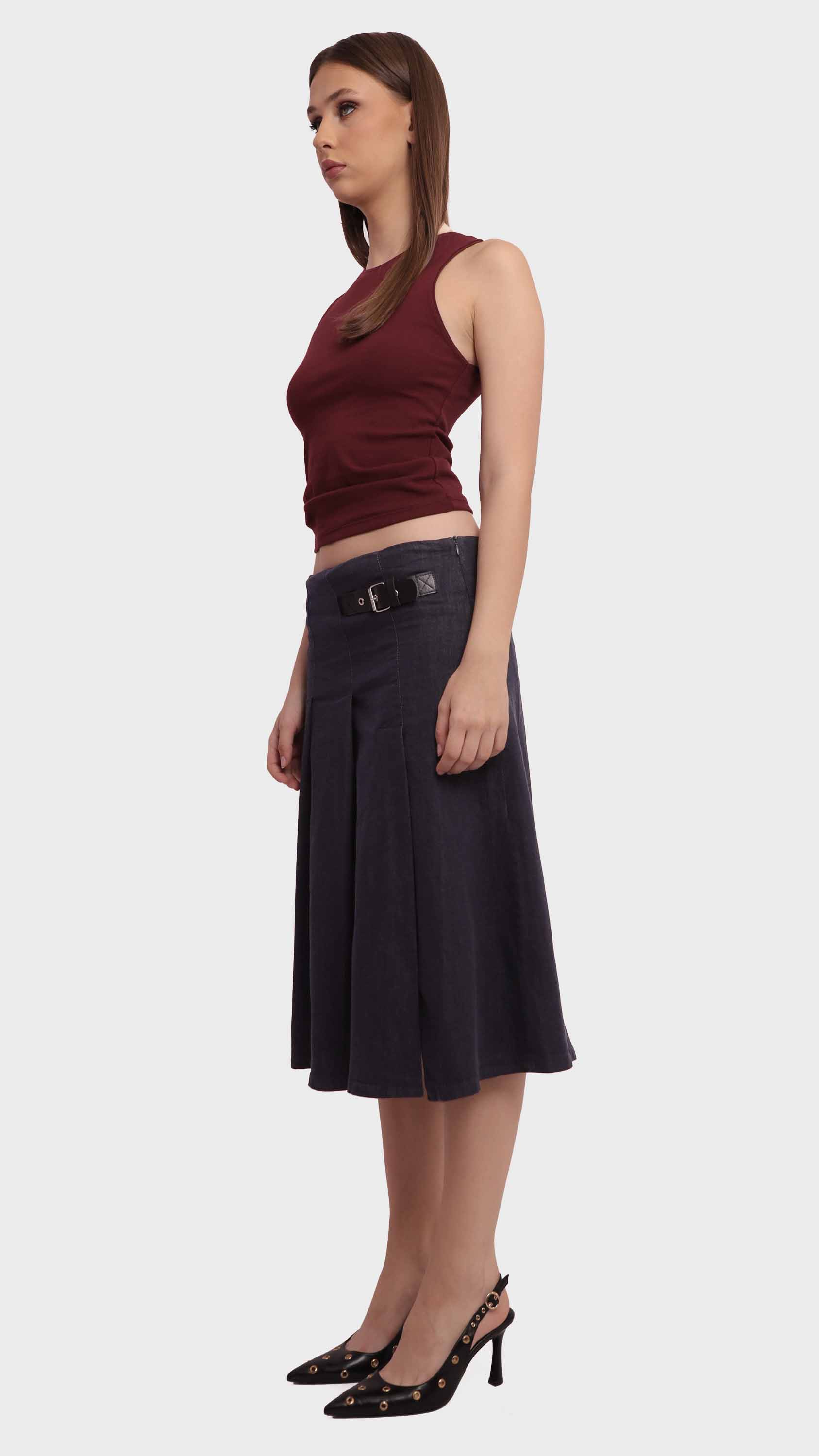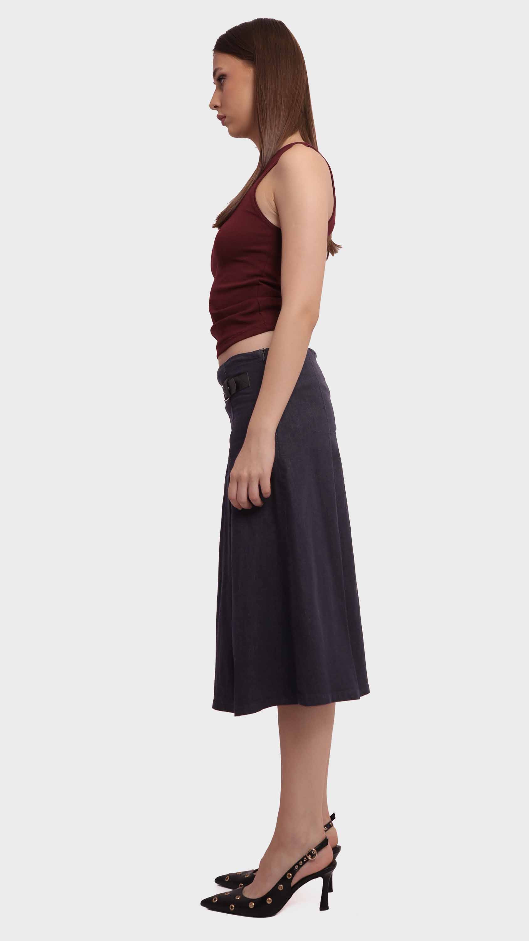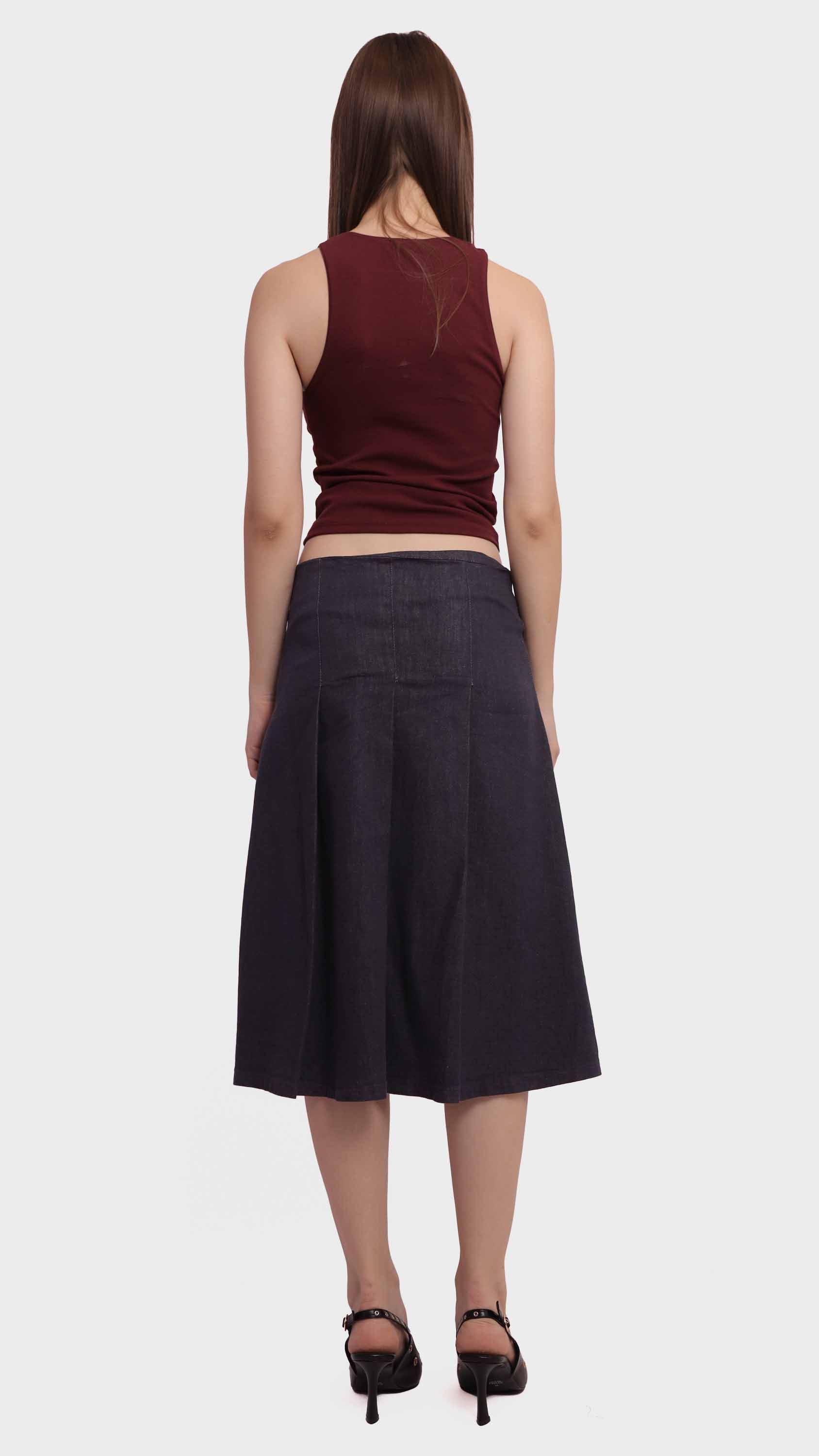 Elevate your everyday look with this dark denim wrap midi skirt, designed with a flattering belted waist and a sleek silhouette