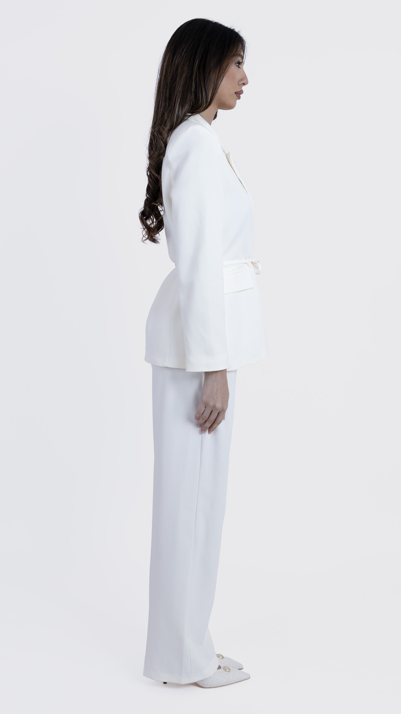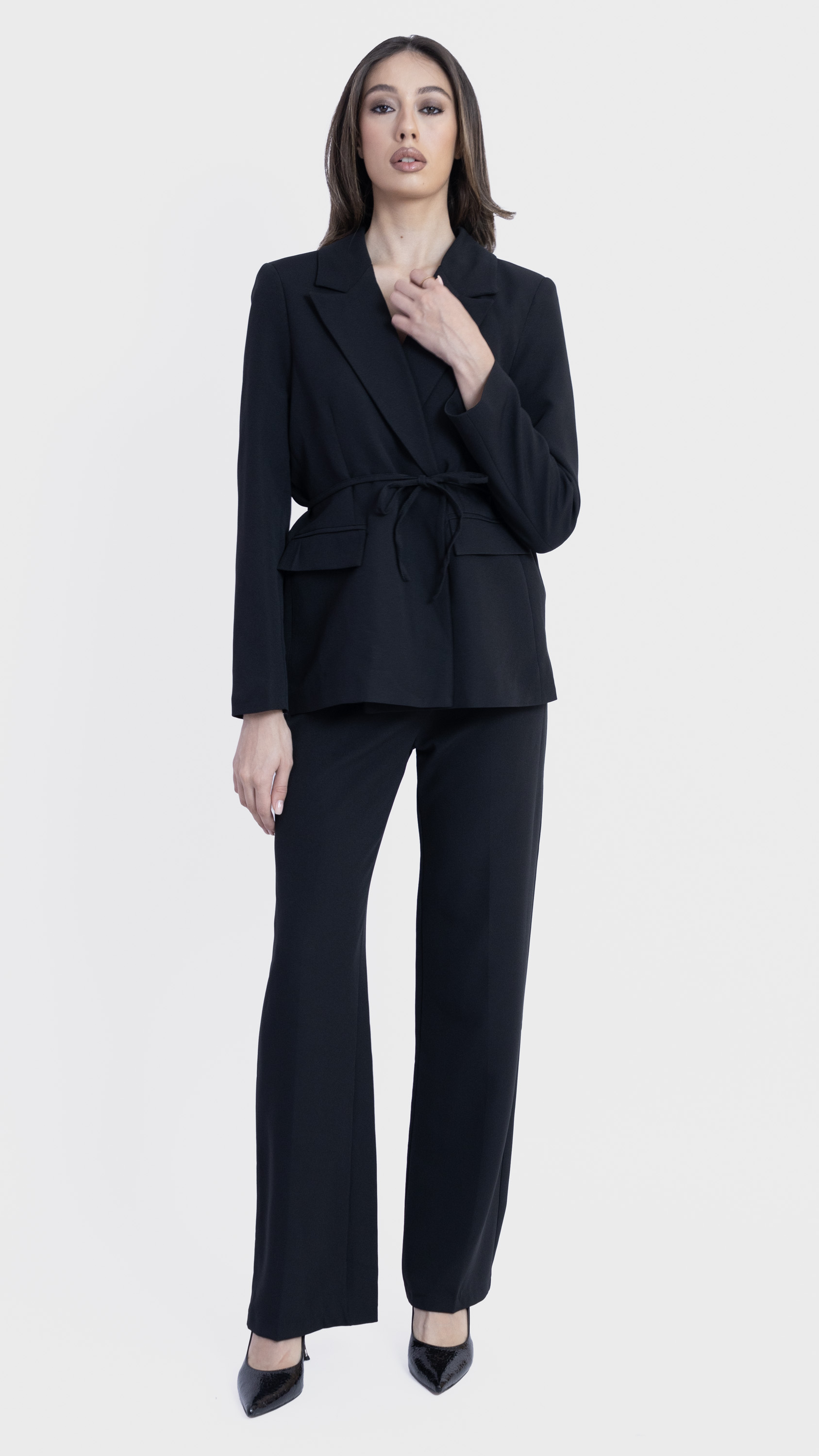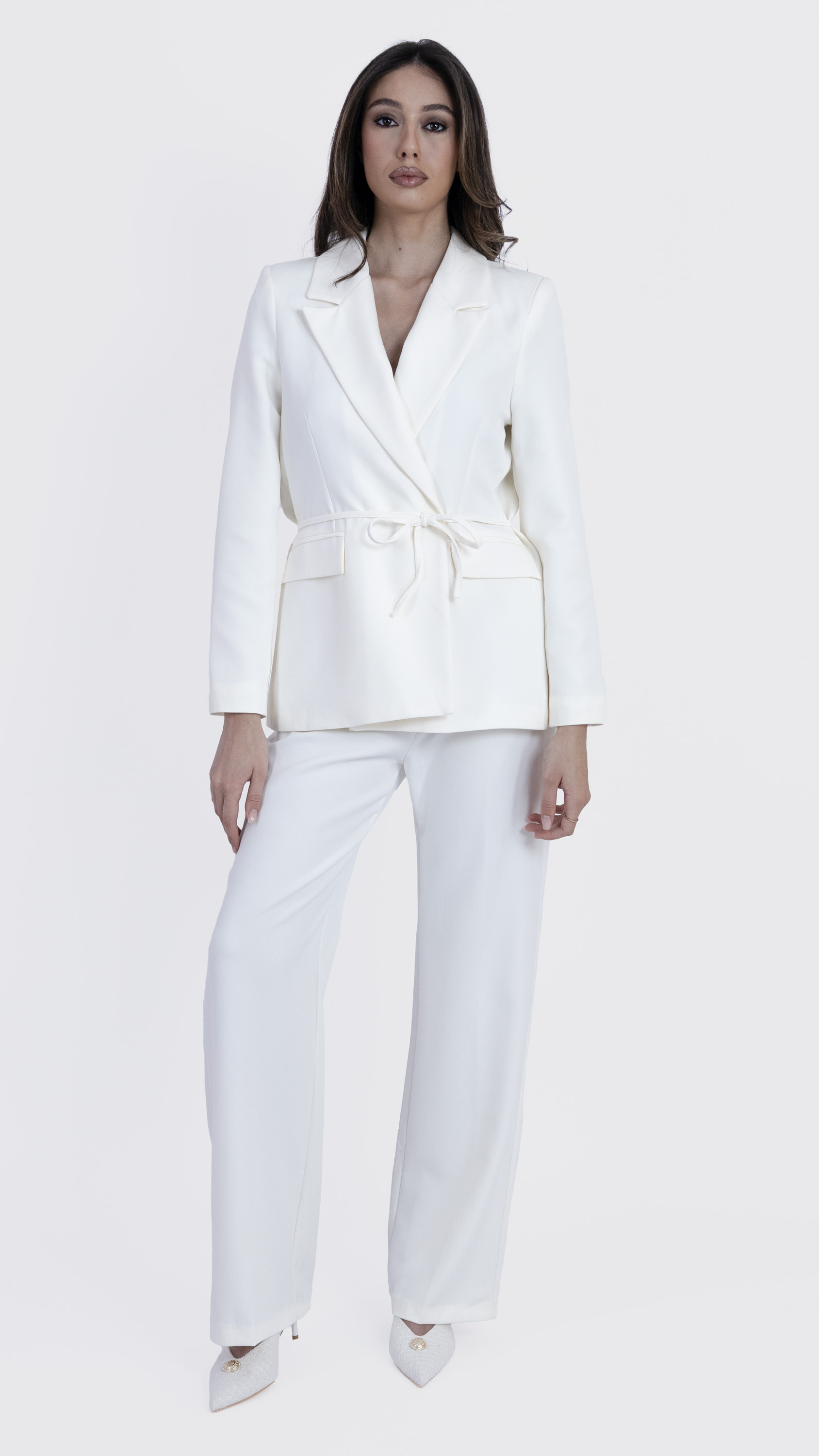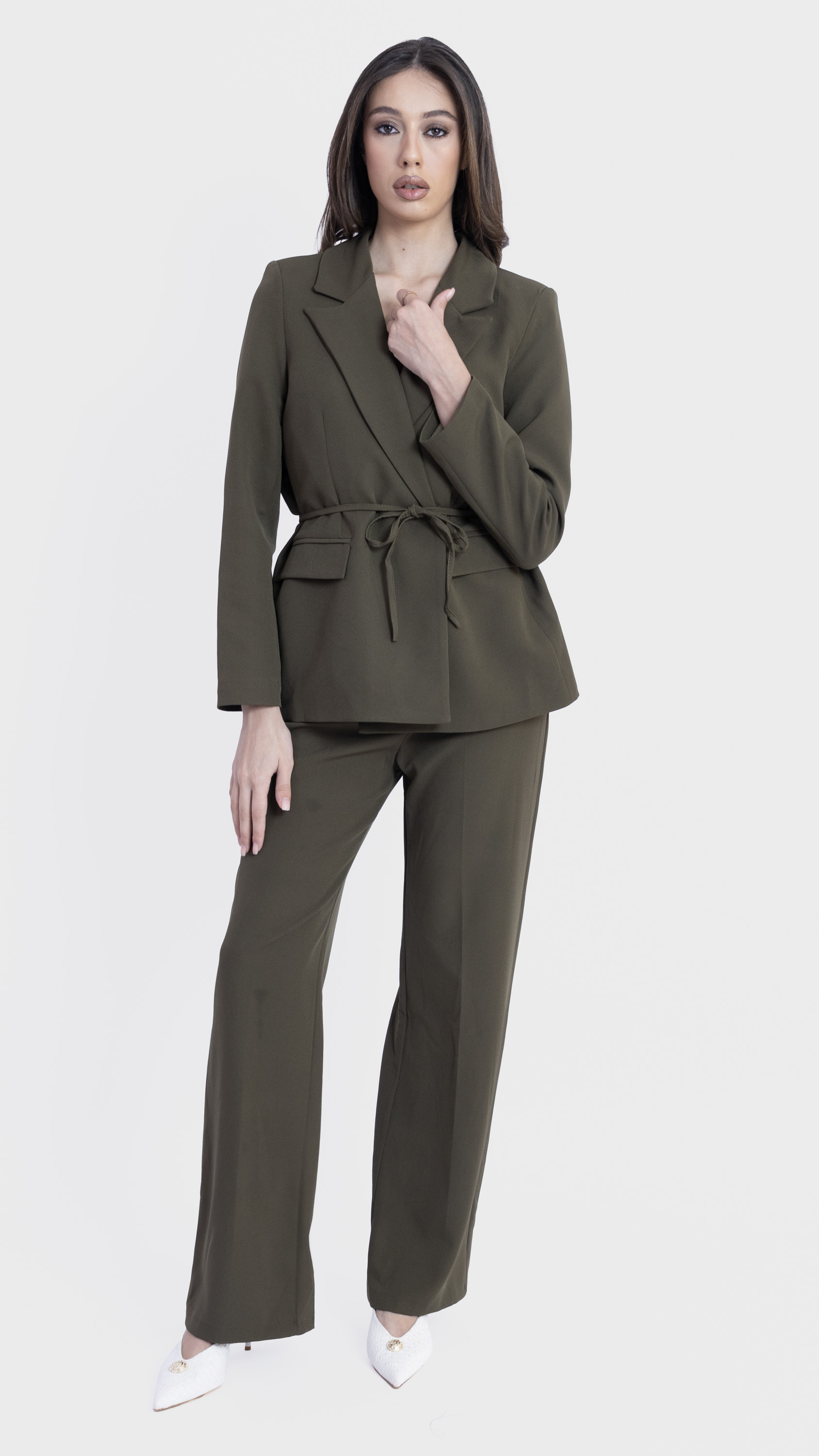 Command attention with this elegant Co-Ord Set, featuring a belted blazer and wide-leg trousers. The structured yet fluid design brings a perfect blend of power and femininity.
