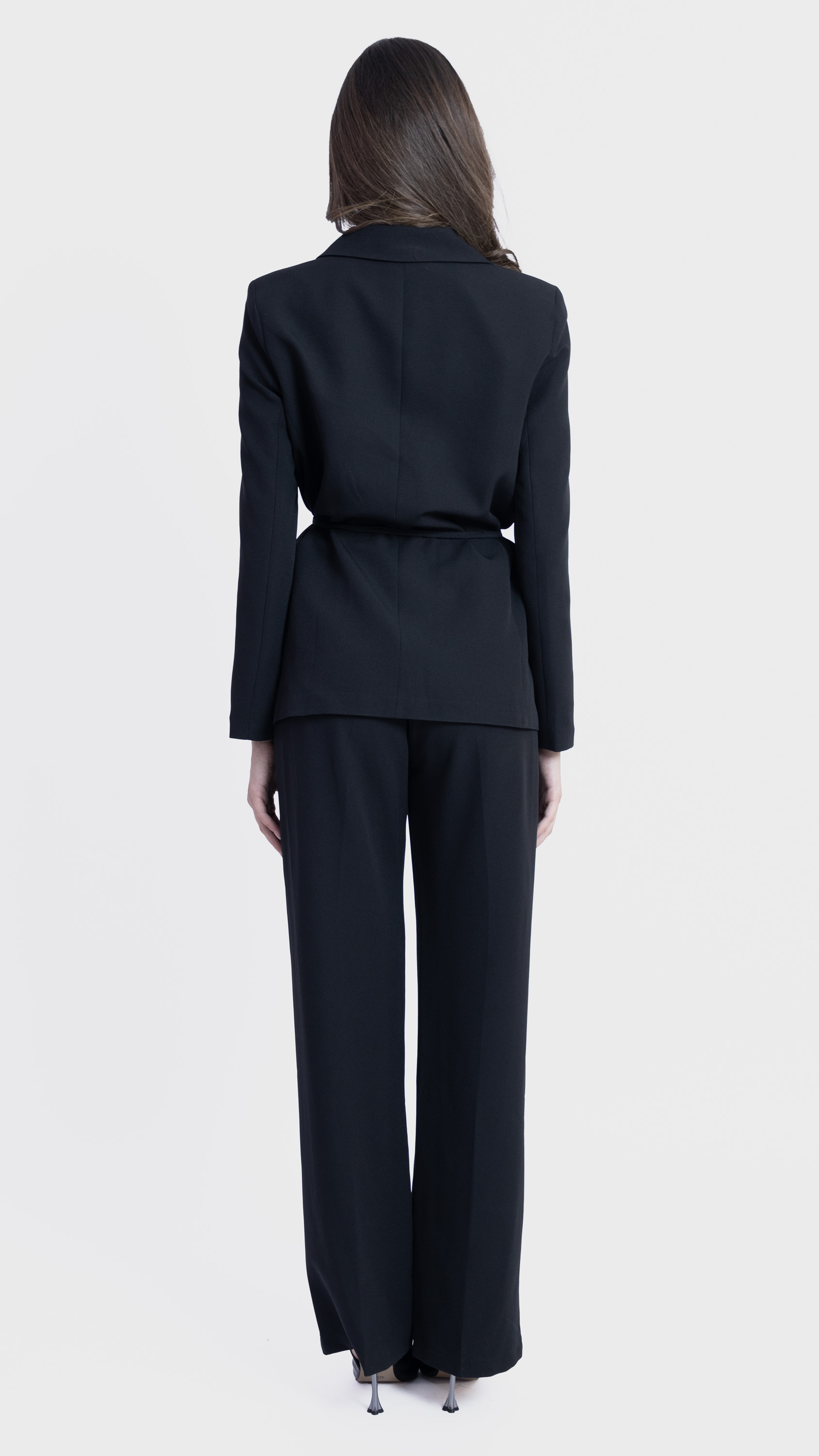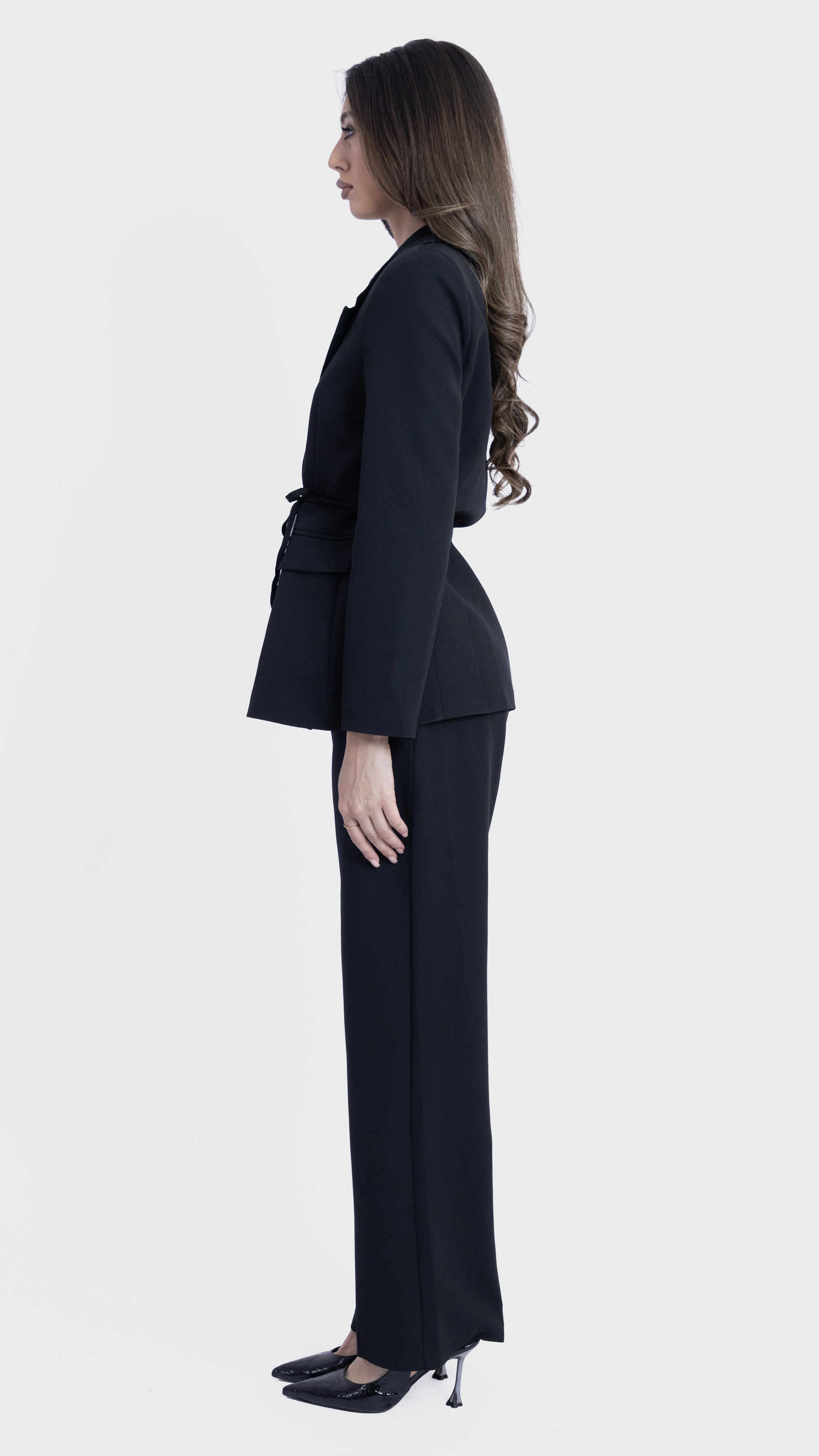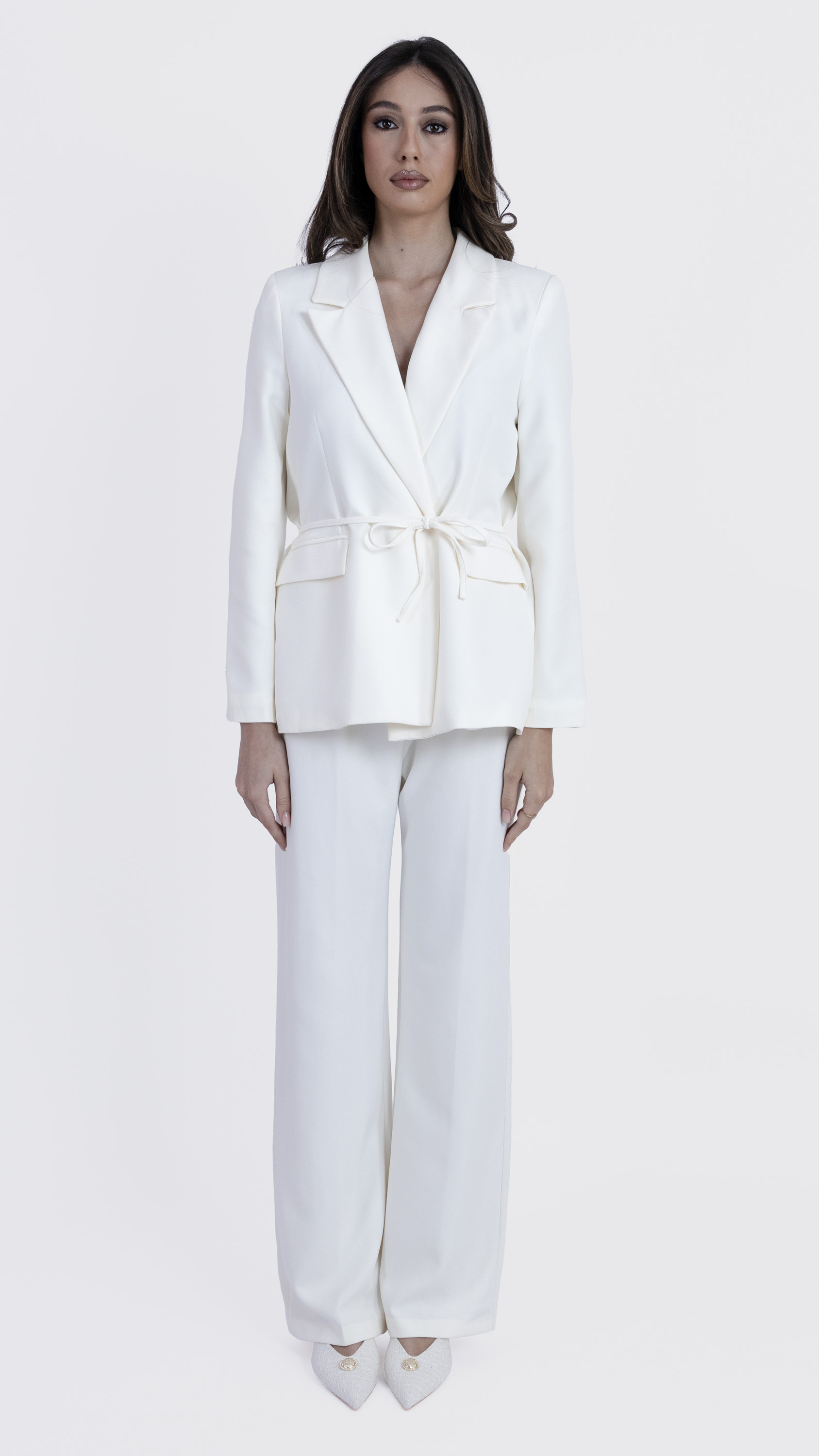 Command attention with this elegant Co-Ord Set, featuring a belted blazer and wide-leg trousers. The structured yet fluid design brings a perfect blend of power and femininity.