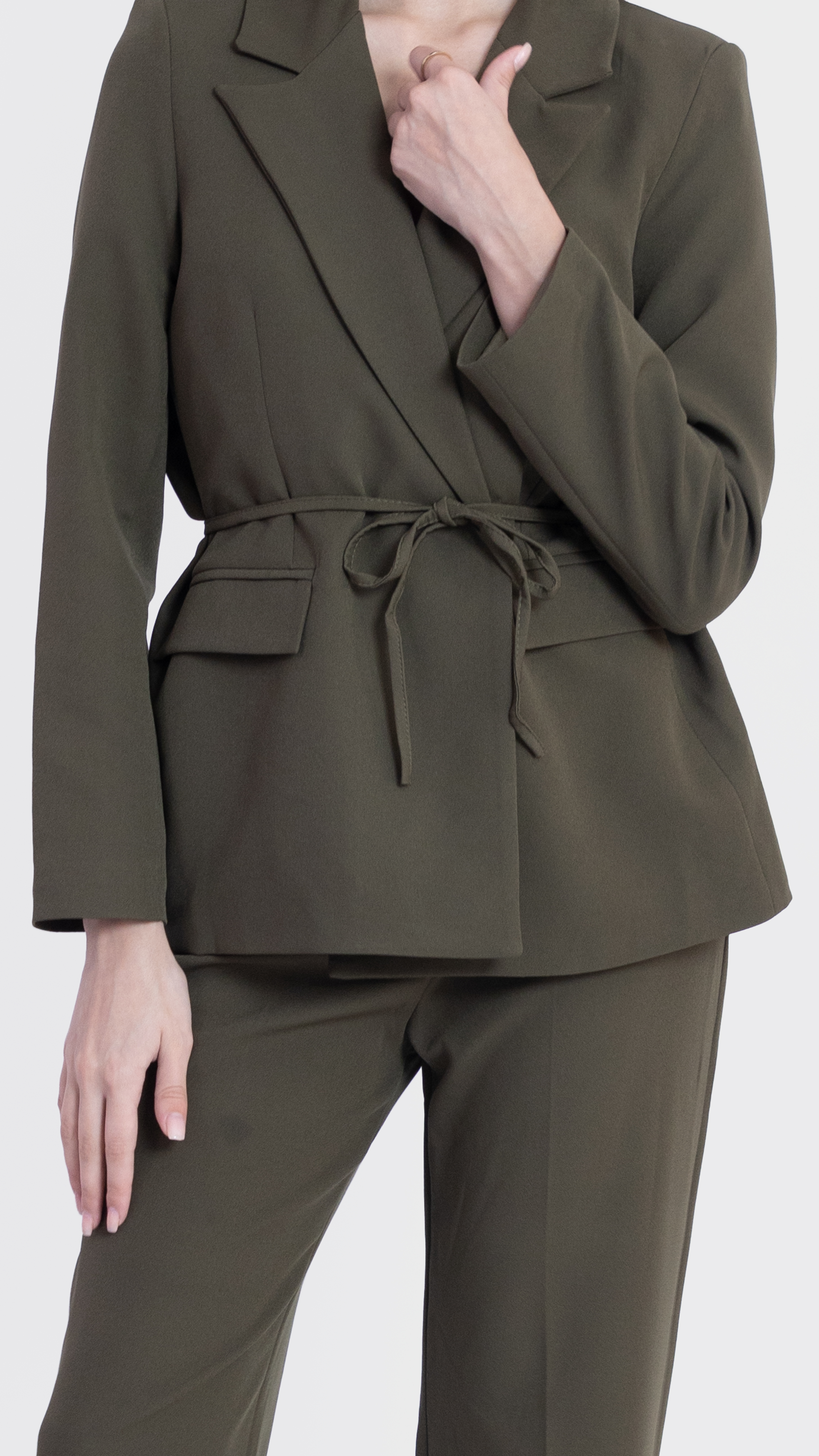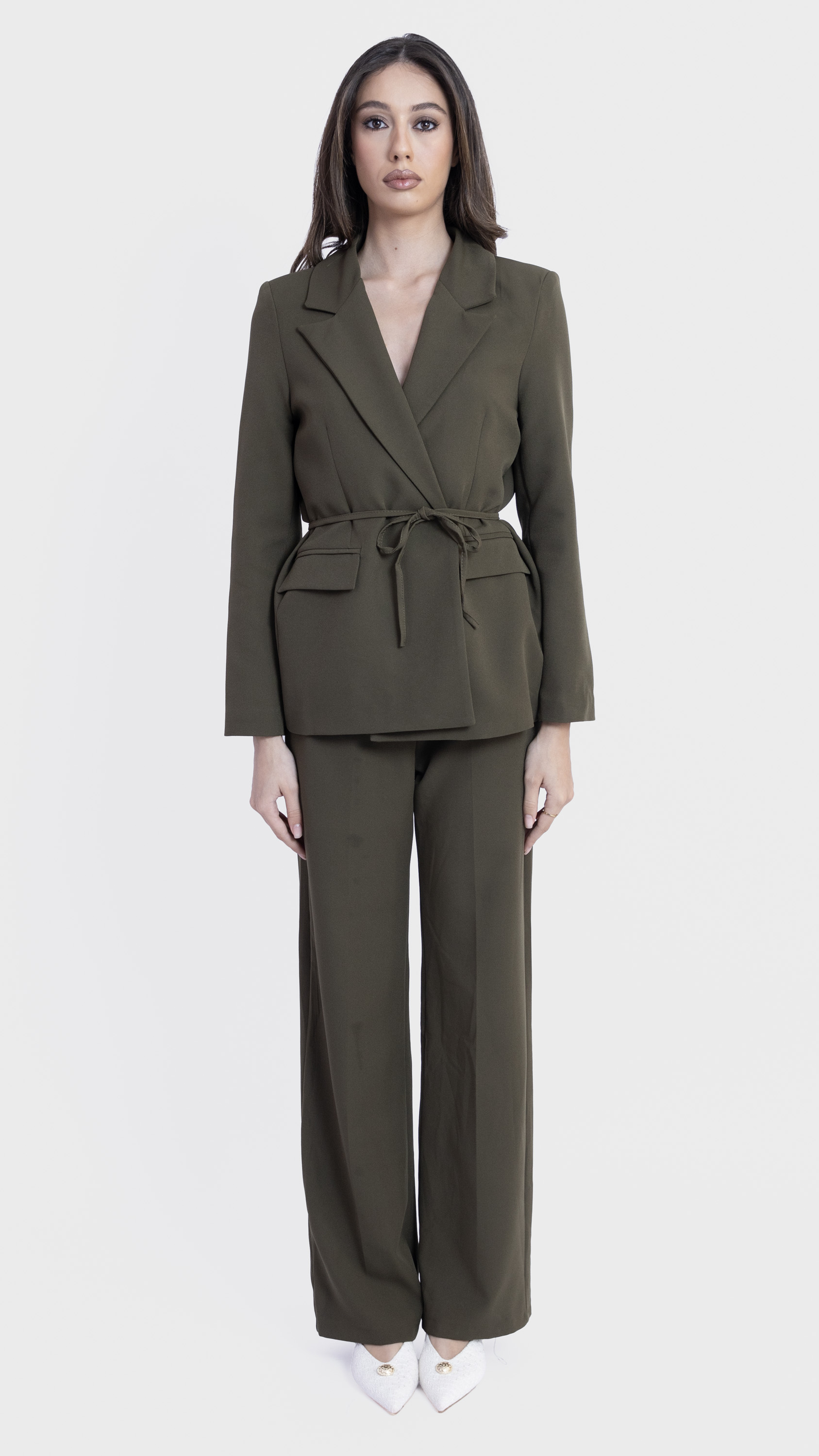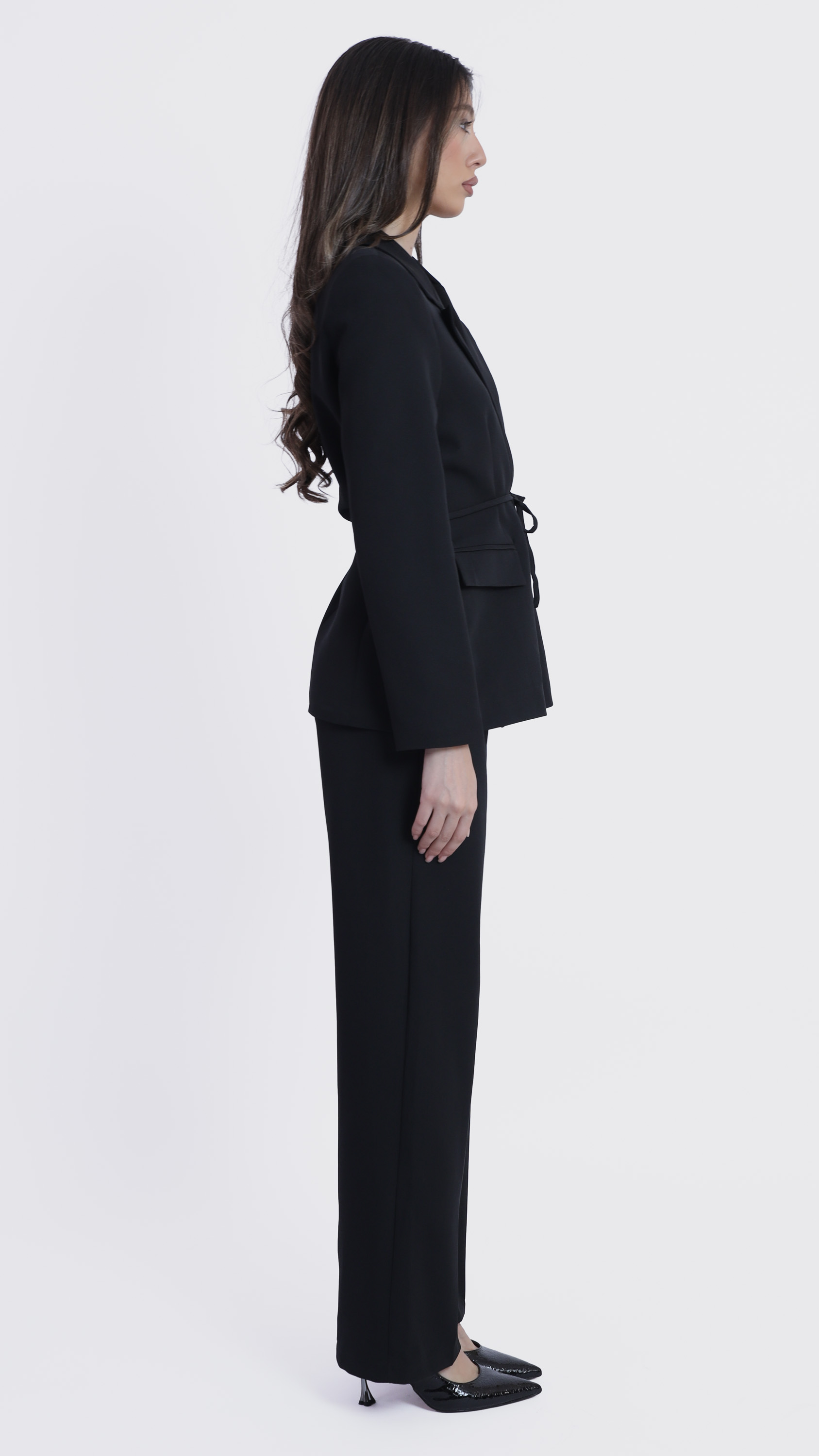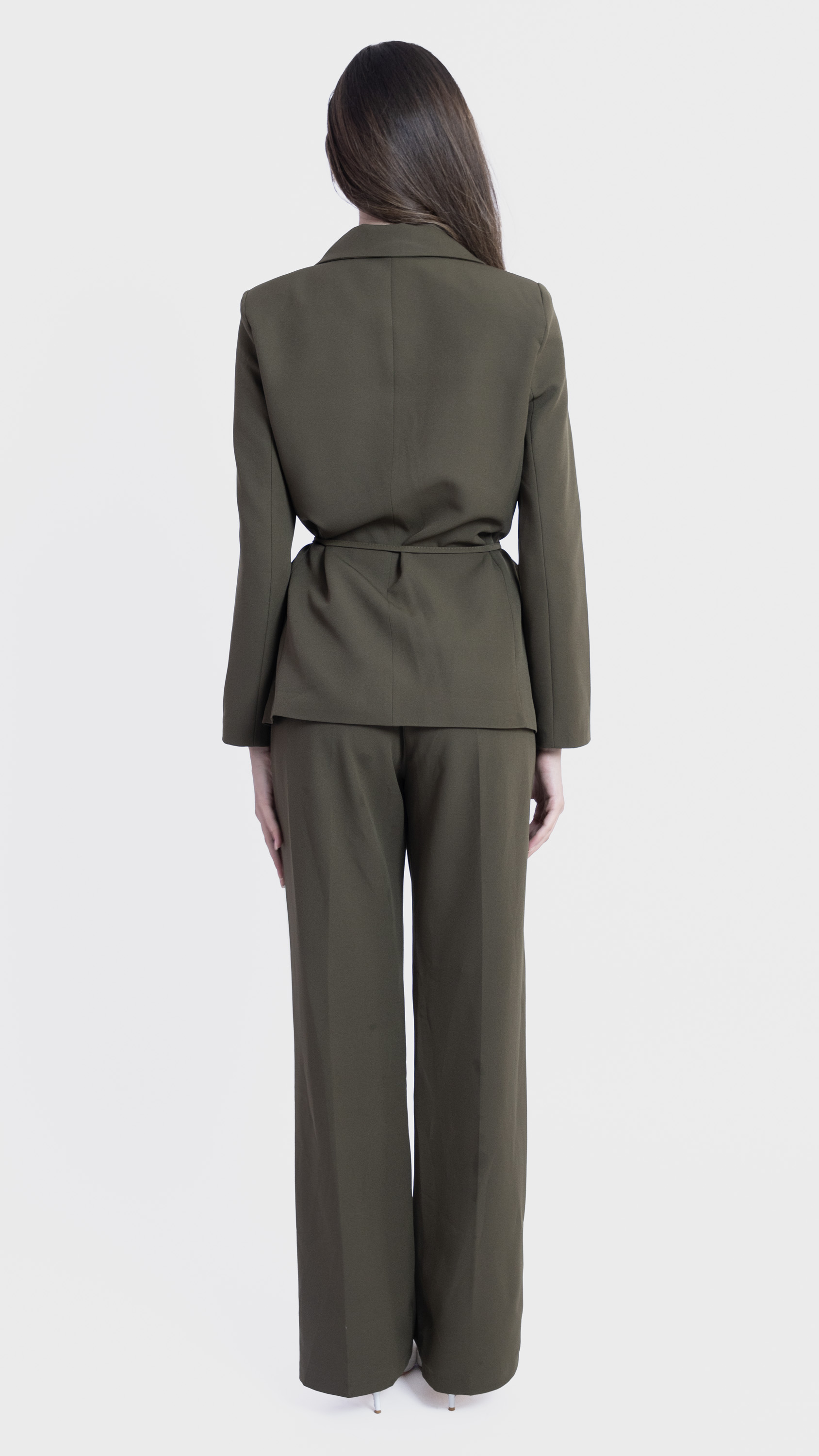 Command attention with this elegant Co-Ord Set, featuring a belted blazer and wide-leg trousers. The structured yet fluid design brings a perfect blend of power and femininity.