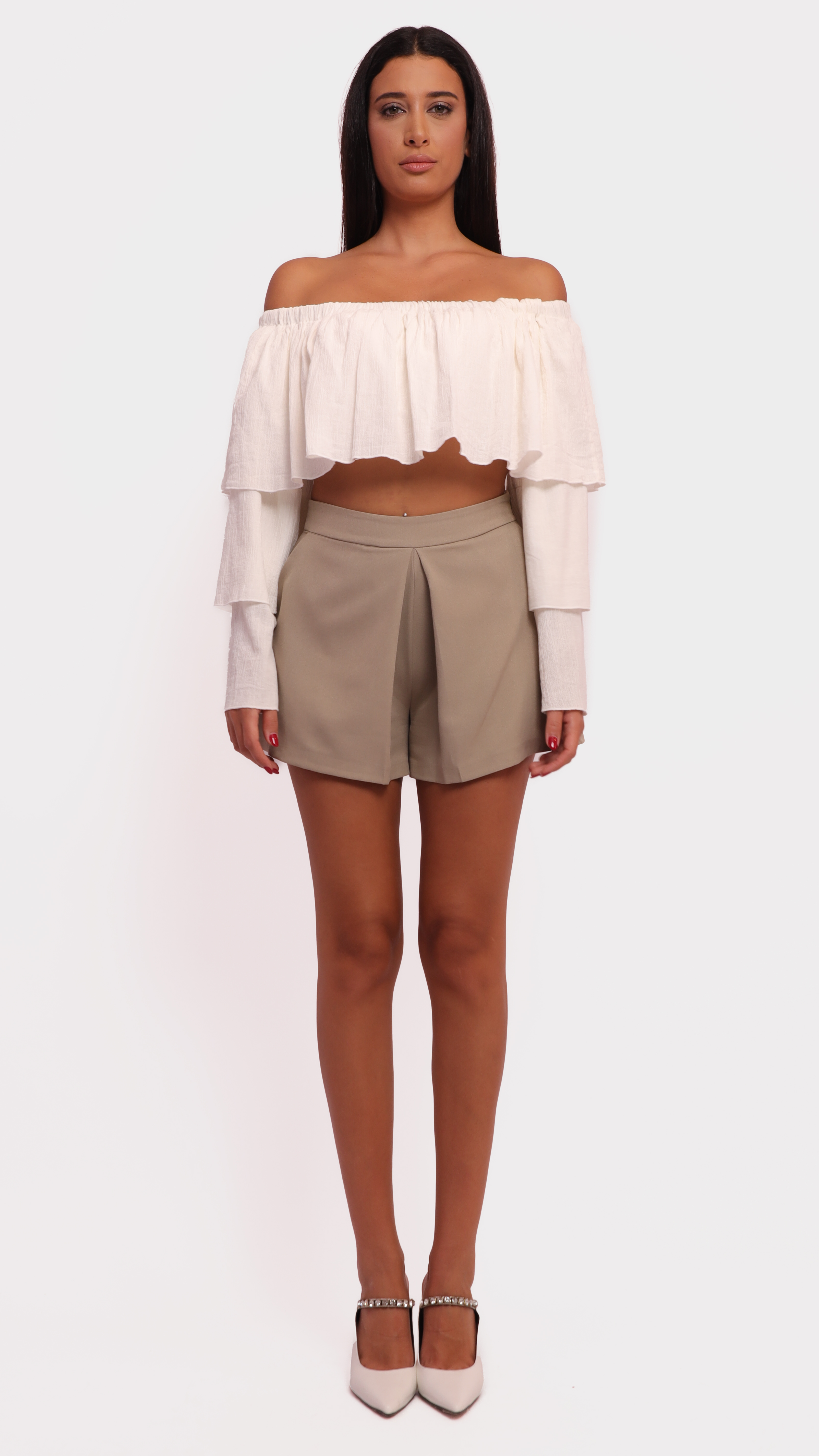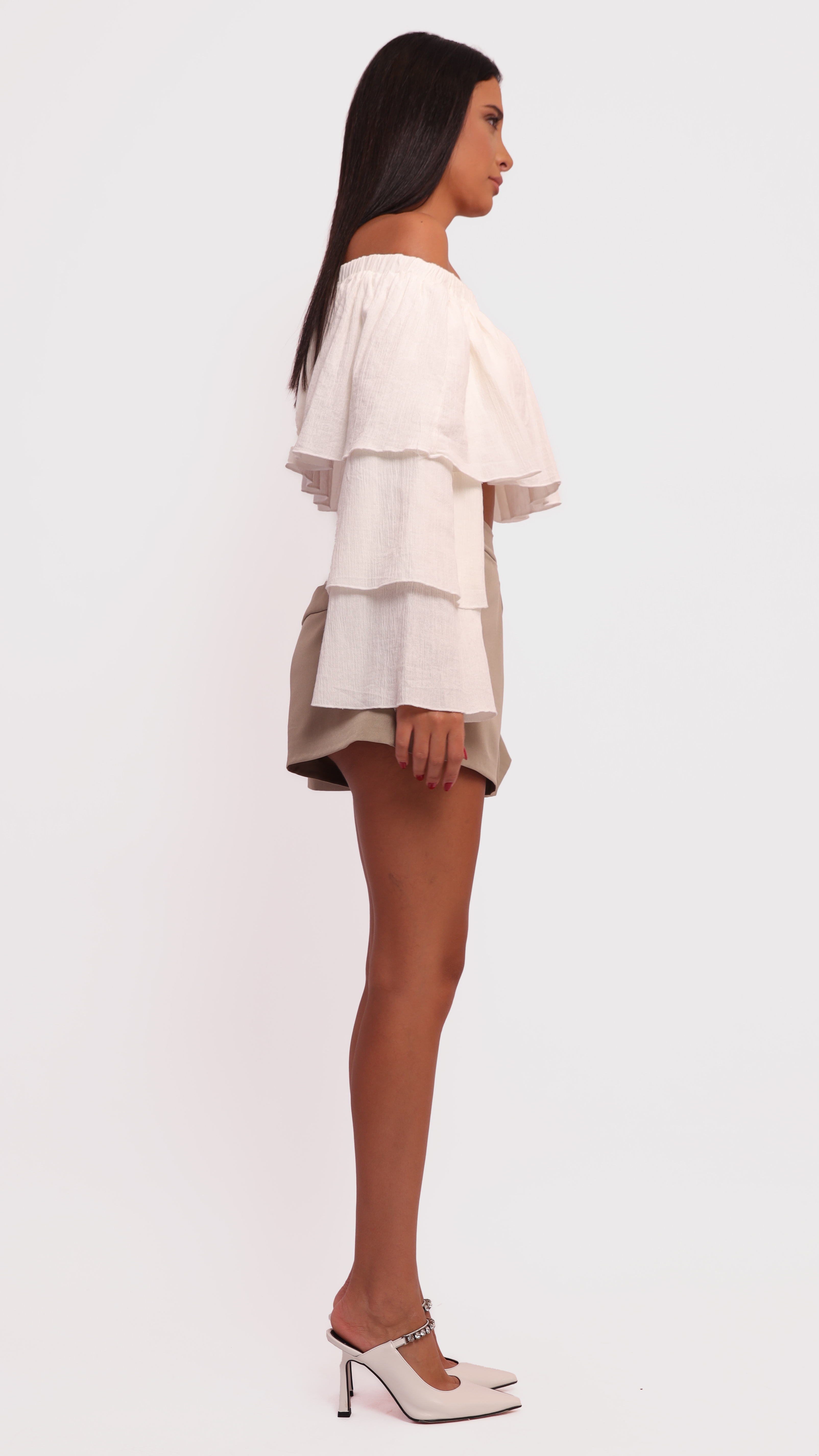Bring playful charm to your wardrobe with these Ruffled Cotton Bloomers. Crafted from lightweight, breathable cotton, they feature an elasticated waistband for maximum comfort, a cropped wide-leg silhouette, and a ruffled overlay detail at the waist for a fun, feminine look. The textured crinkled finish and soft ivory shade make them perfect for laid-back, stylish days.
