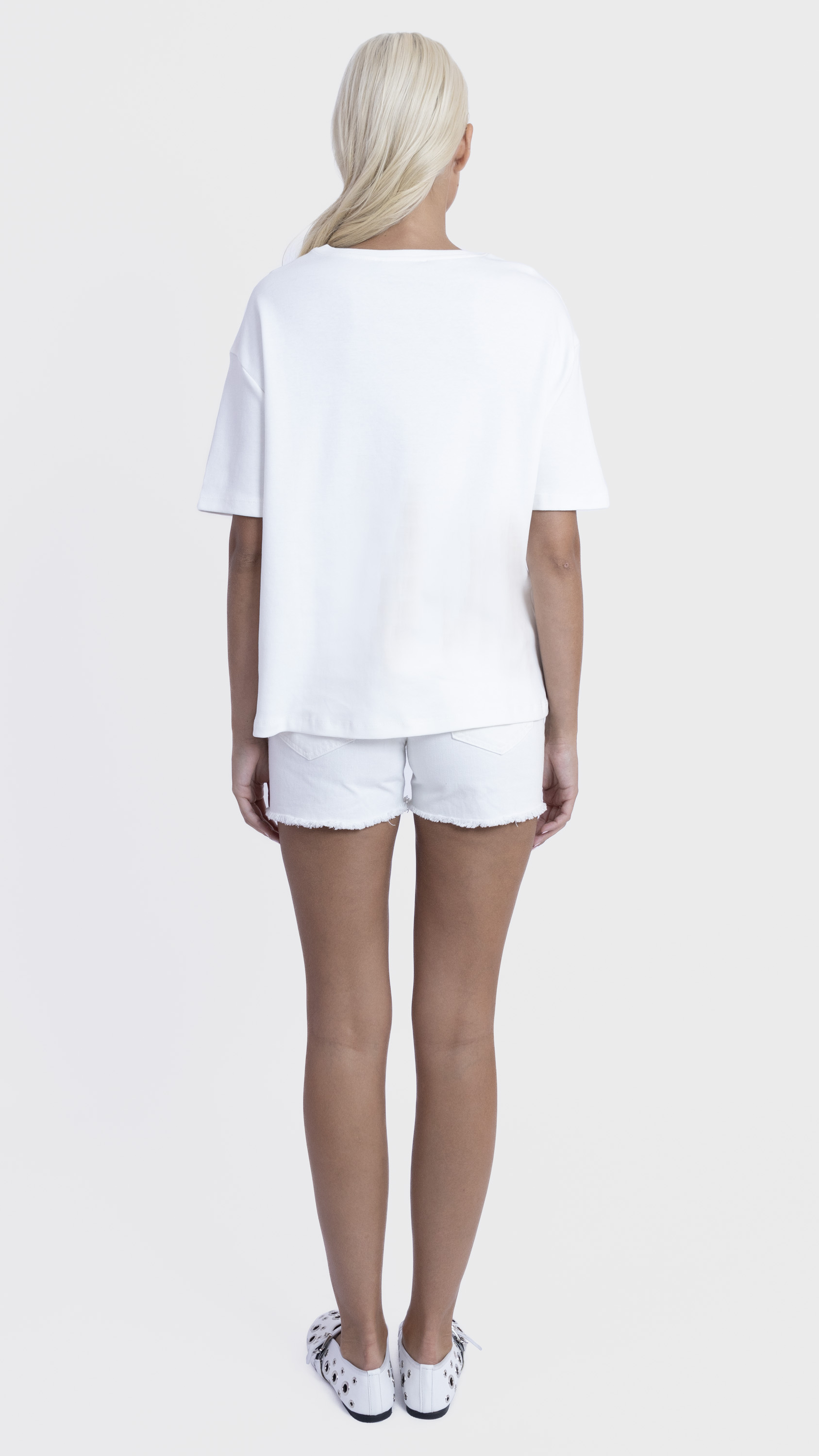 Add a playful yet charming touch to your wardrobe with this Bow Appliqué T-Shirt. Made from soft, breathable cotton, it features a relaxed, straight fit with a classic crew neckline and short sleeves. The standout detail — multiple black 3D bow appliqués — brings a fun and feminine flair, making it a perfect piece for casual yet stylish outfits.