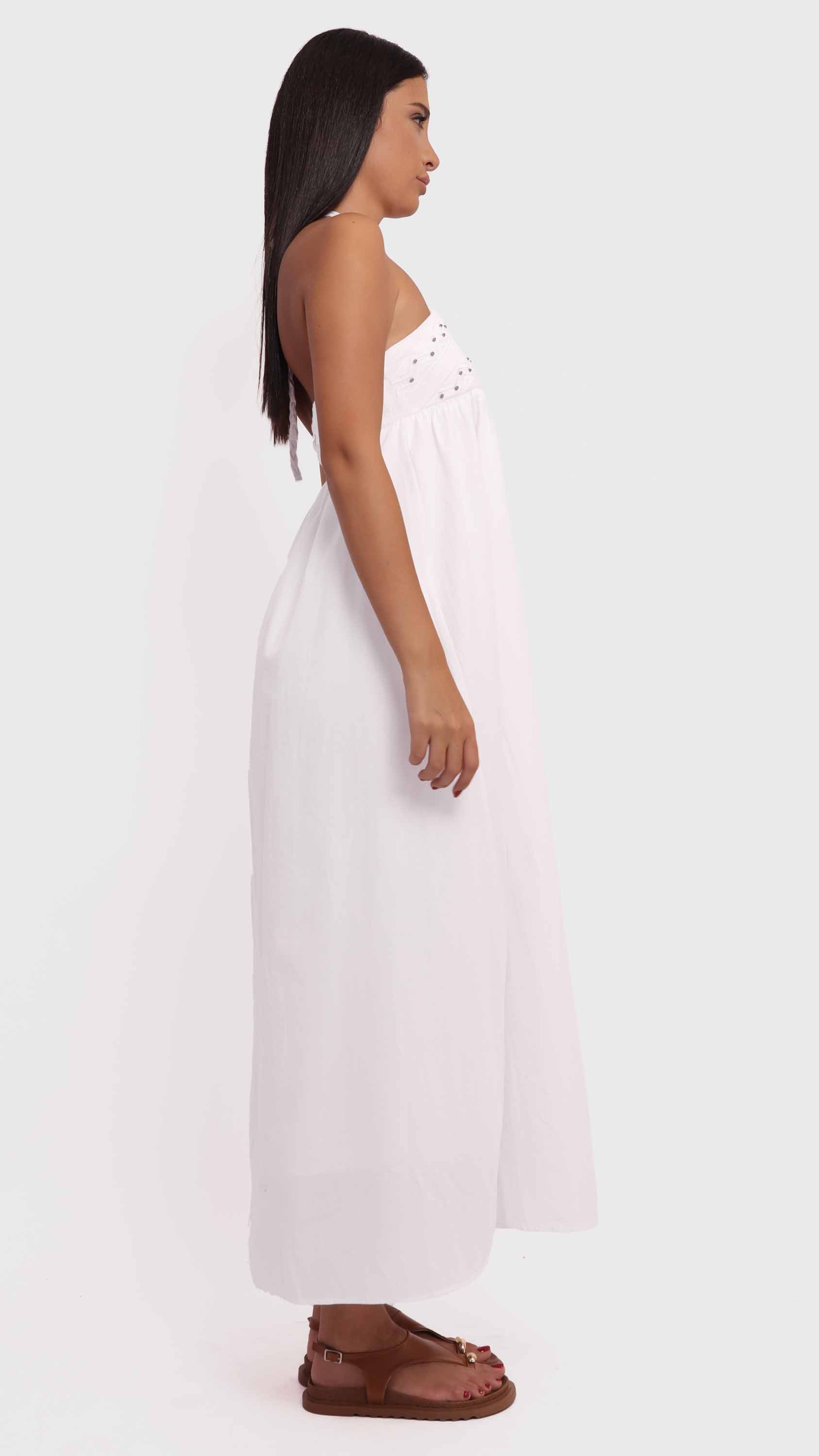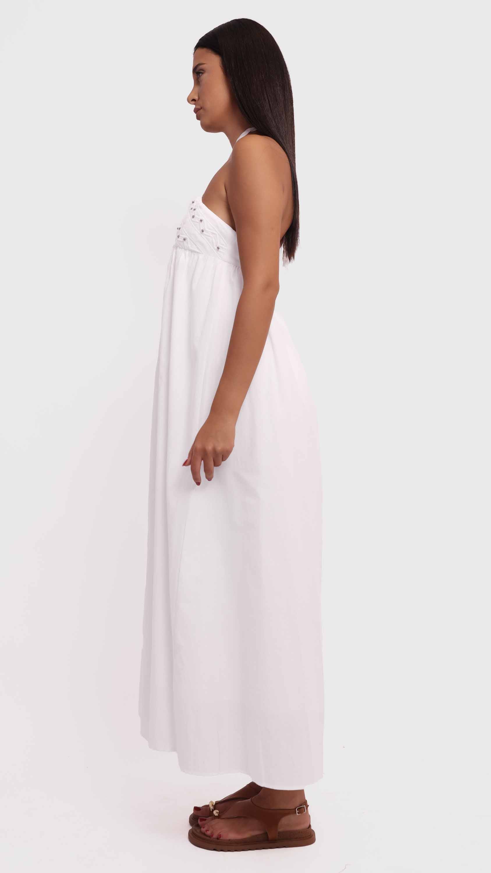 Step into effortless summer charm with this embroidered halter maxi dress, featuring delicate details, a breezy silhouette, and a chic backless design.
