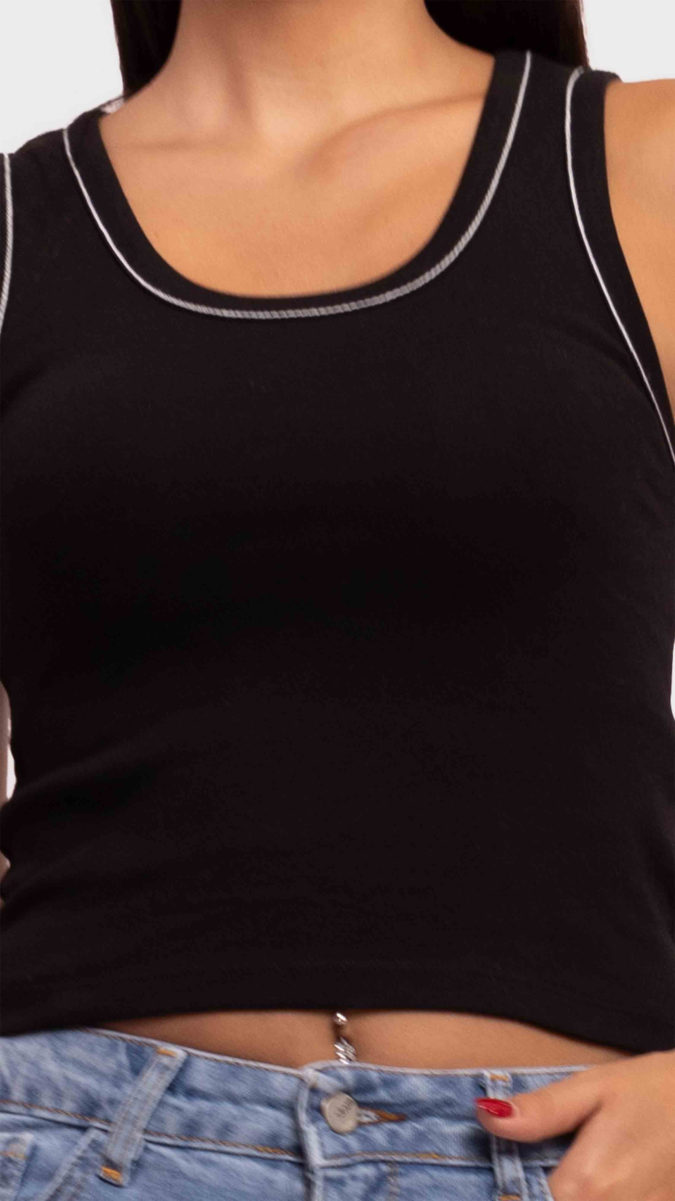 Elevate your everyday essentials with this Contrast Stitch Tank Top. Crafted from a soft, stretchy ribbed cotton-blend fabric, it features a slim fit and a classic scoop neckline. The white contrast stitching along the neckline, armholes, and sides adds a bold, stylish detail, making it a standout piece for casual layering or solo wear.