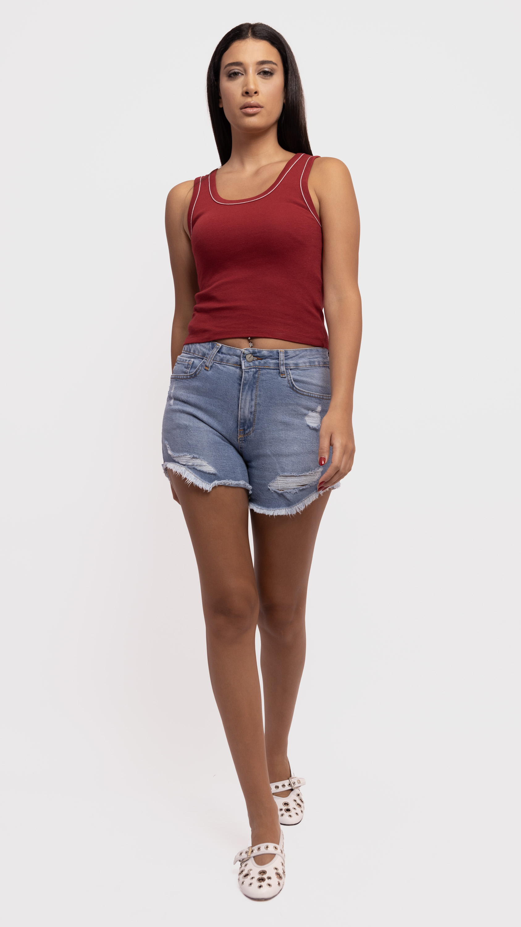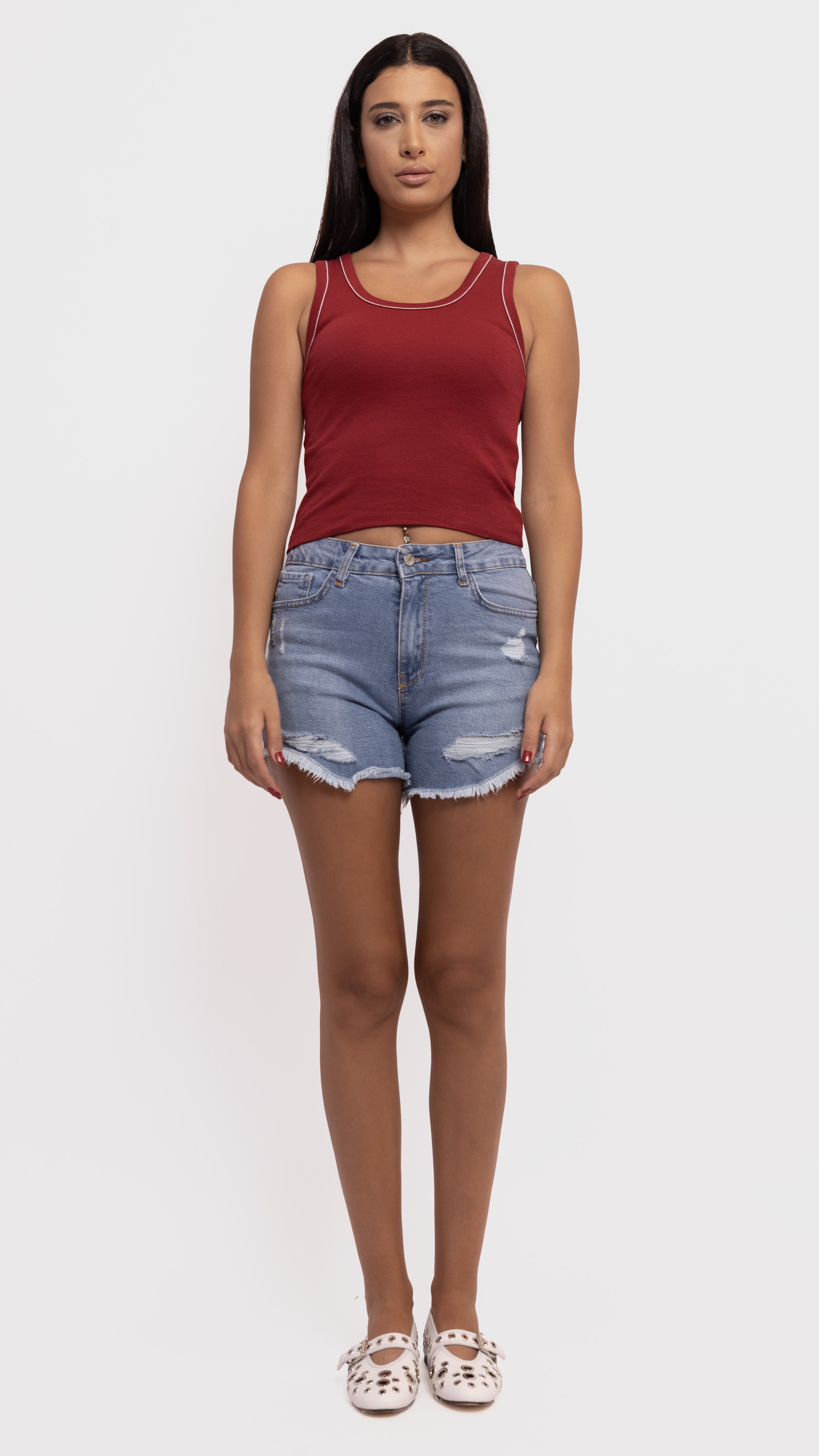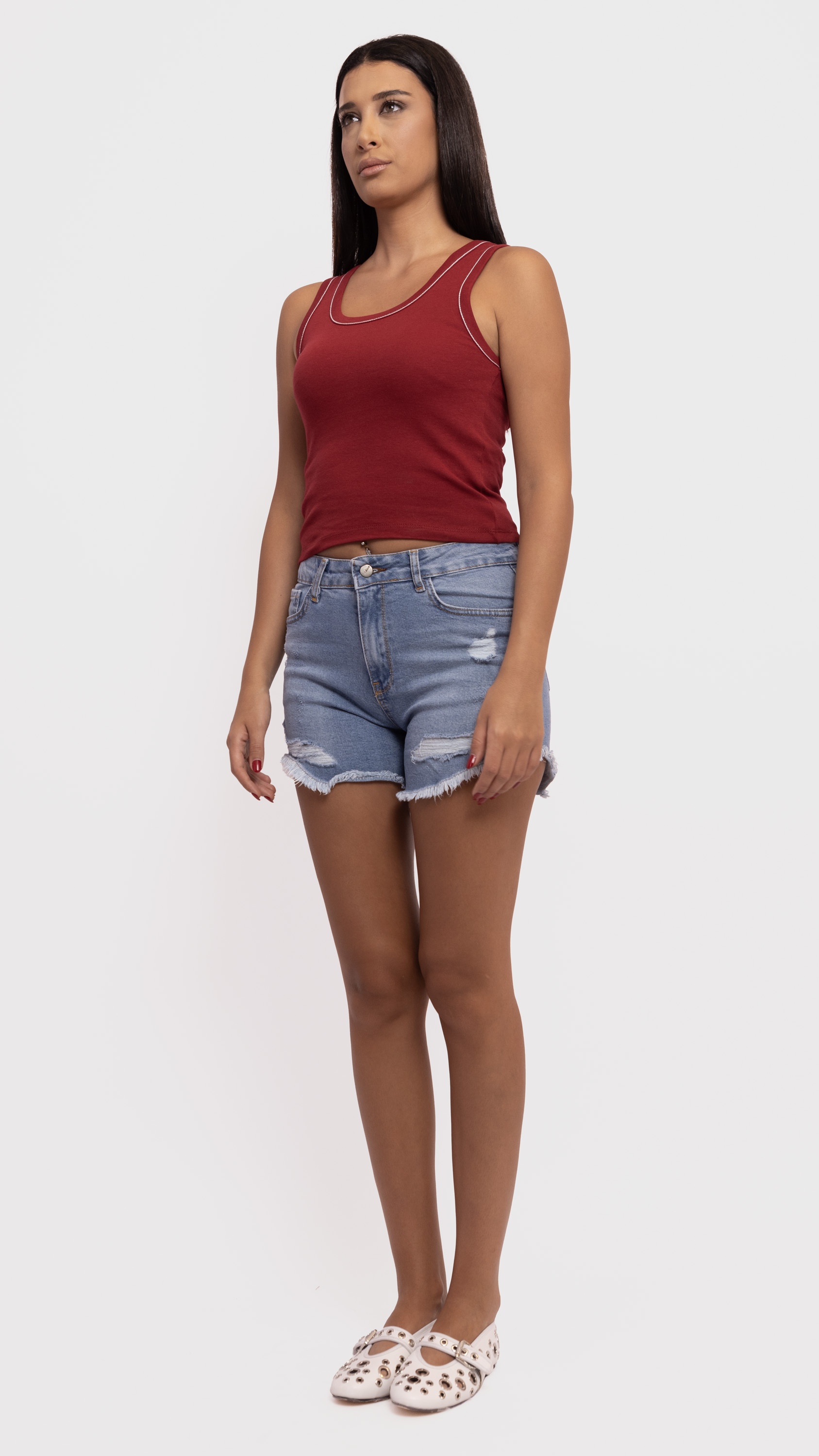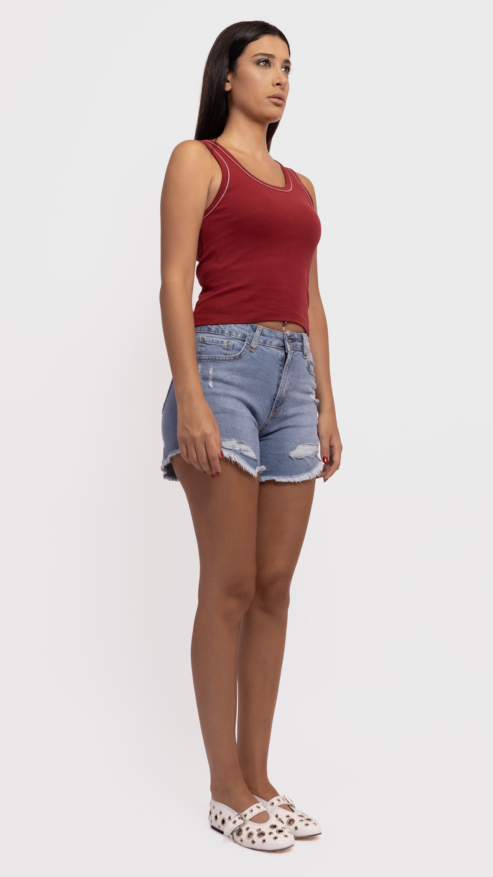 Add an elevated edge to your basics with this Contrast Stitch Tank Top, designed with bold stitching details for a modern twist.