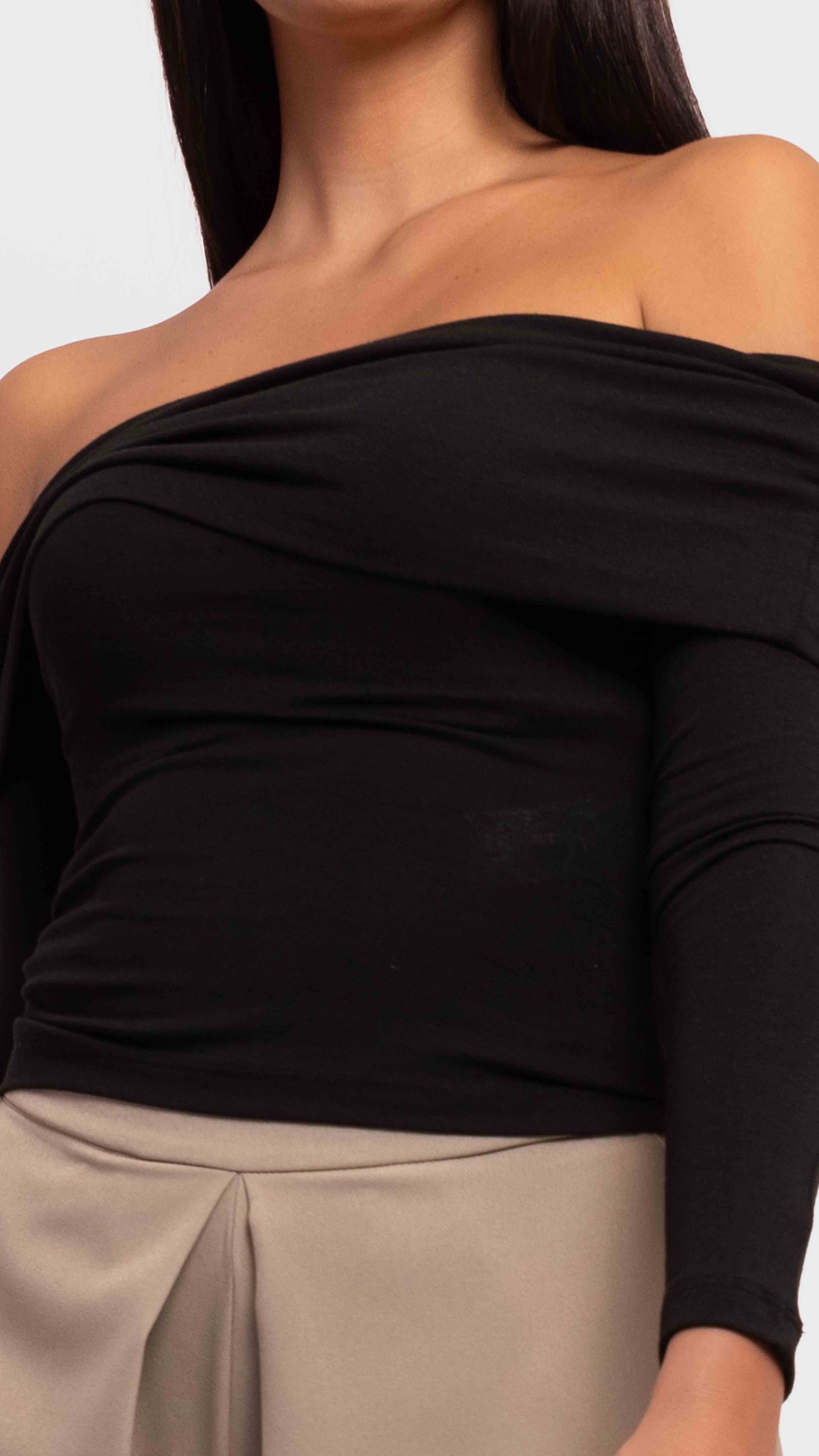 Add a chic edge to your everyday look with this off-shoulder long sleeve top, designed for a sleek and flattering fit.