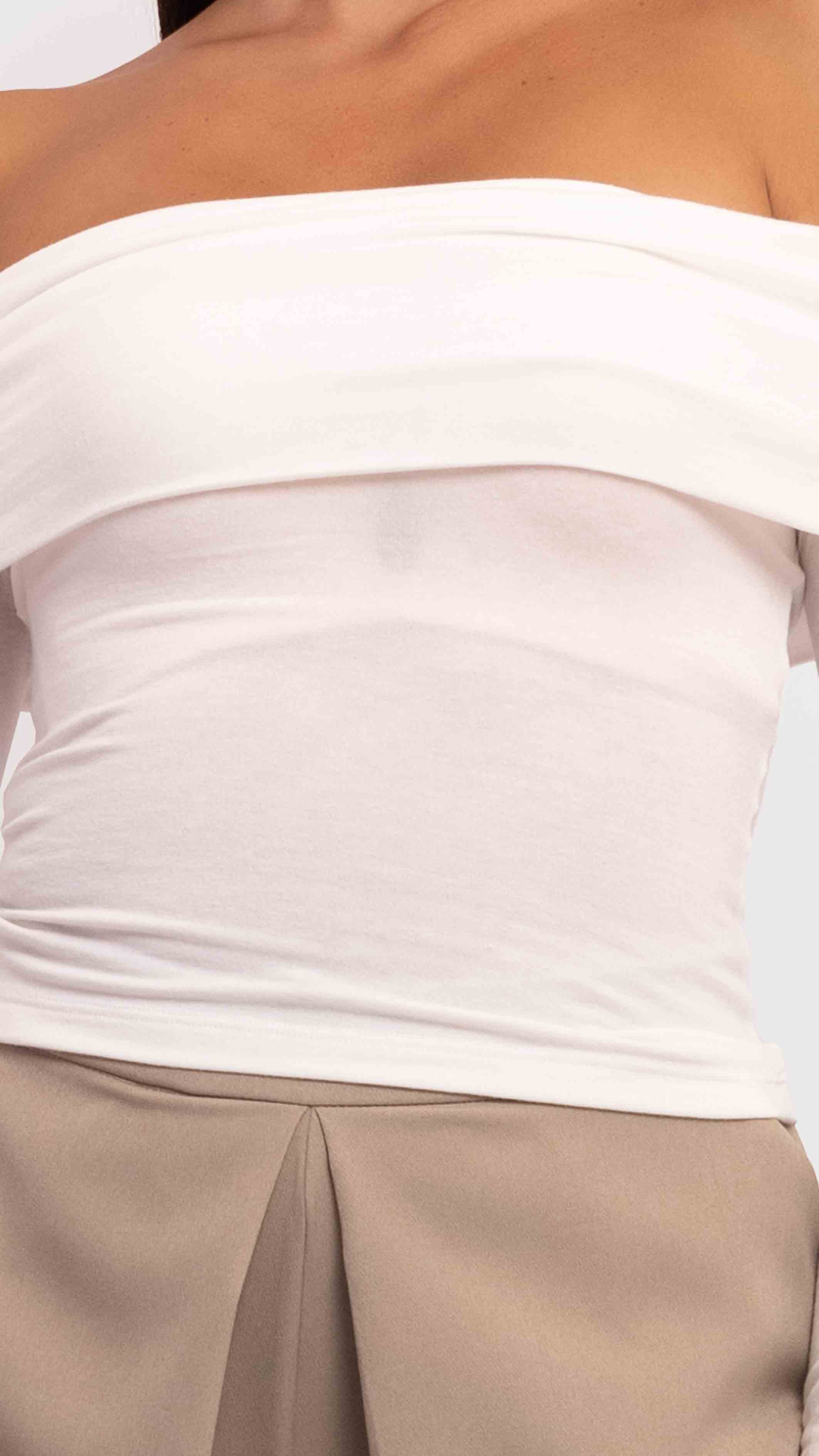 Add a modern twist to your wardrobe with this Off-Shoulder Long Sleeve Ribbed Top. Designed with a fold-over off-shoulder neckline and a flattering fitted silhouette, it’s crafted from soft ribbed stretch cotton fabric for breathable comfort. The slightly cropped or waist-length design makes it perfect for pairing with high-waisted jeans, skirts, or tailored pants for an effortlessly chic look.