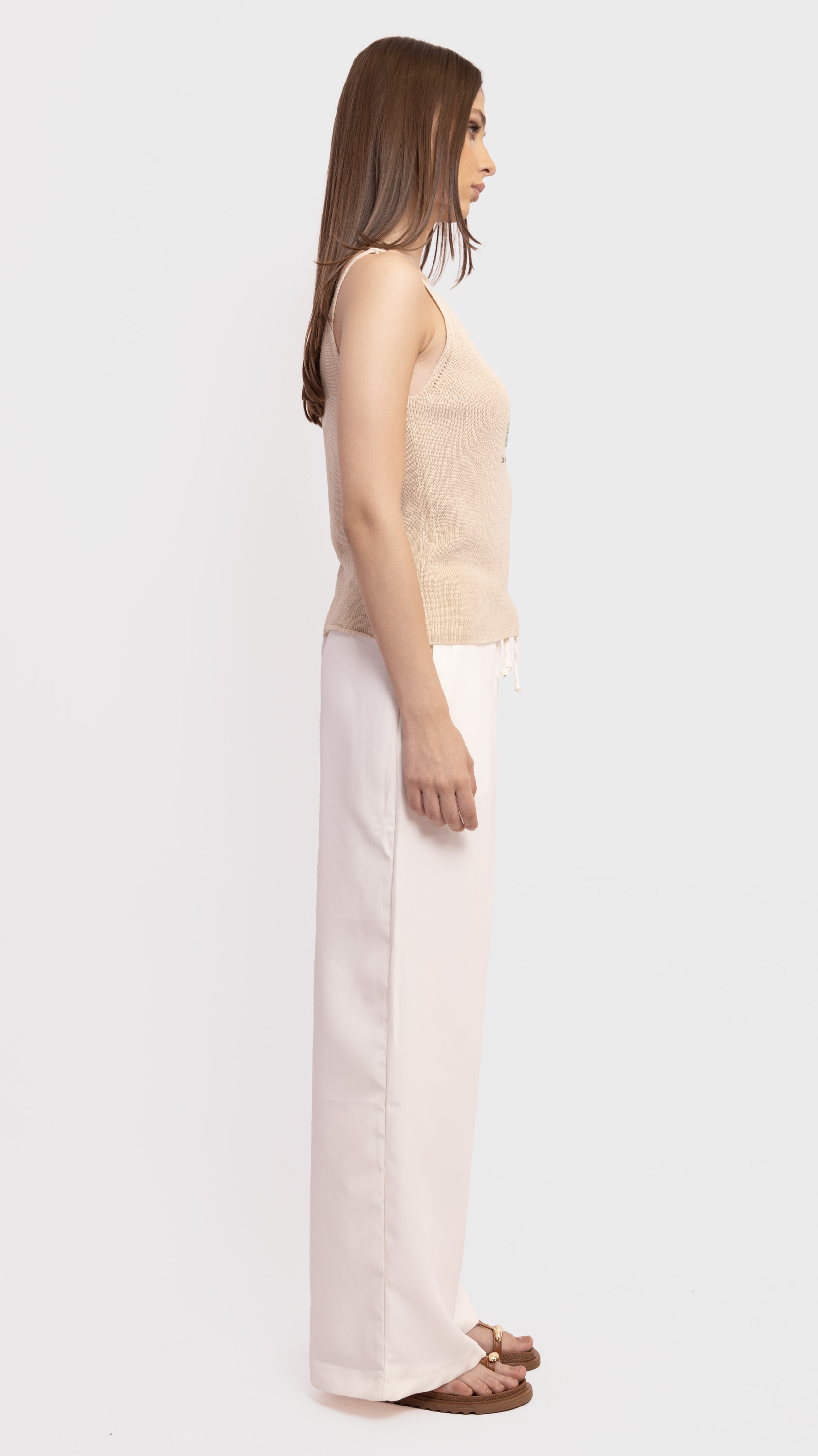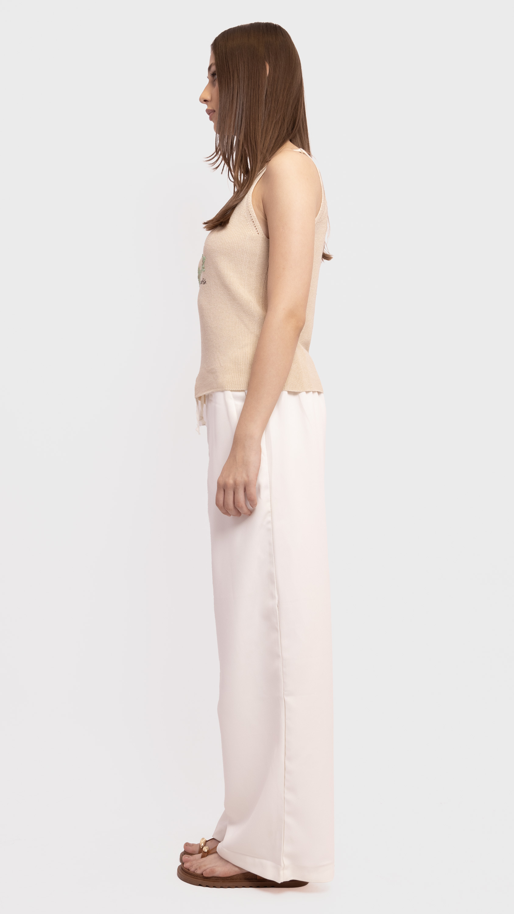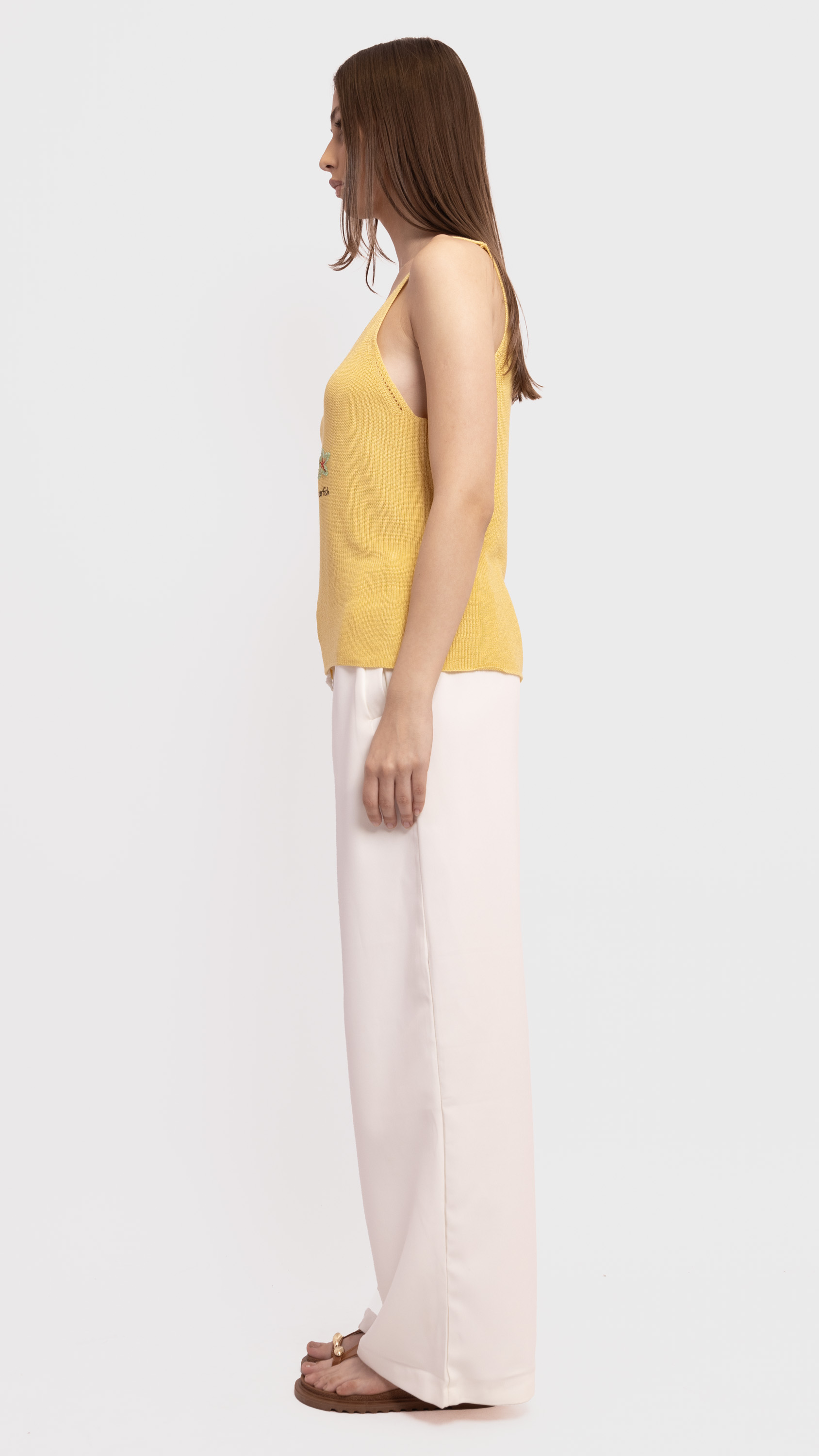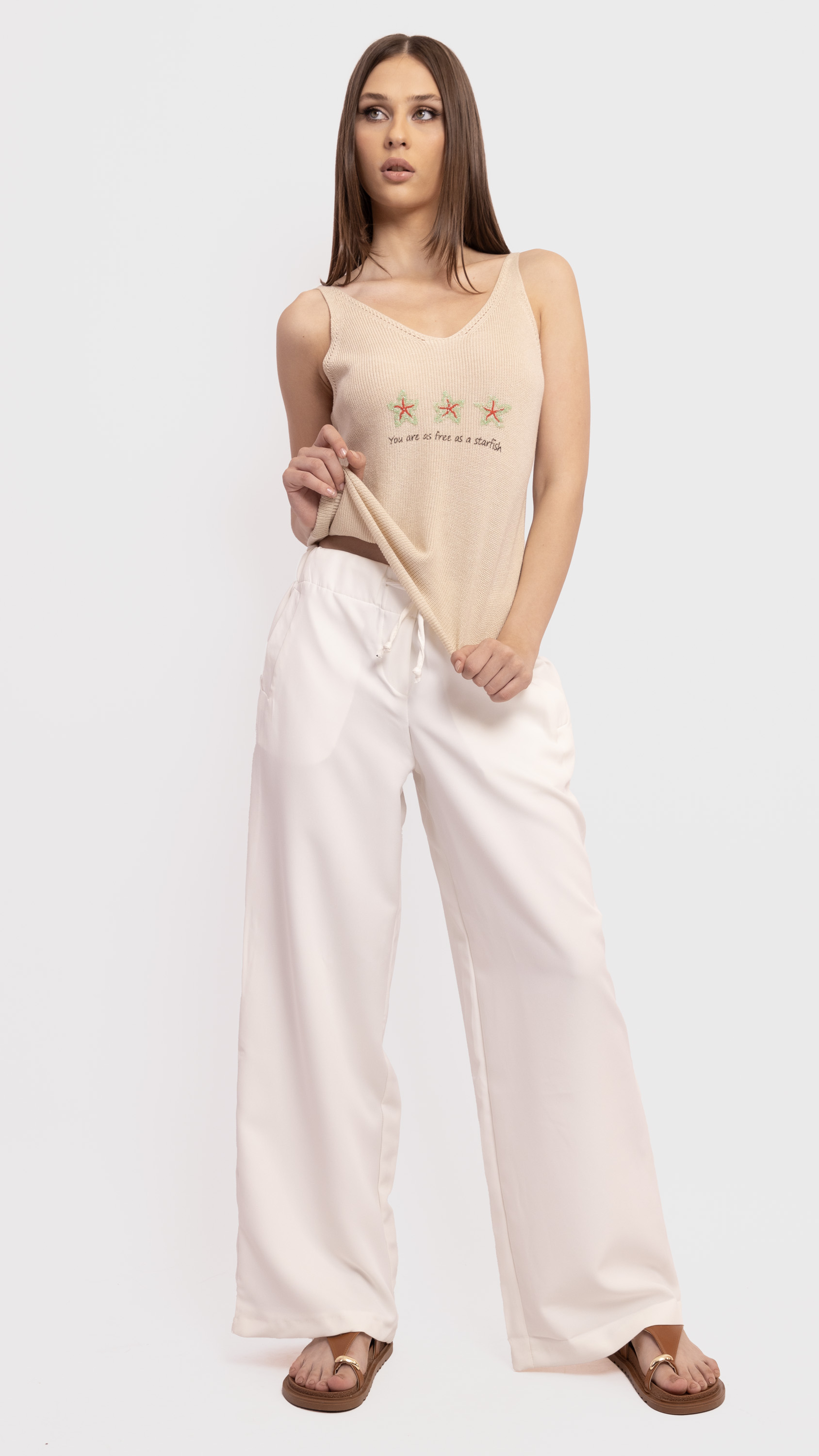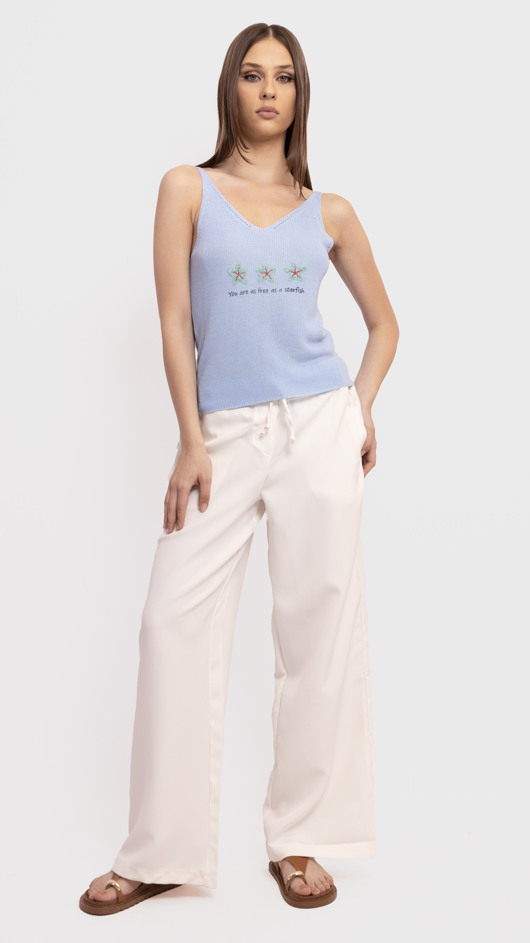 Add a whimsical touch to your summer wardrobe with this embroidered knit tank, featuring playful starfish and inspiring text.