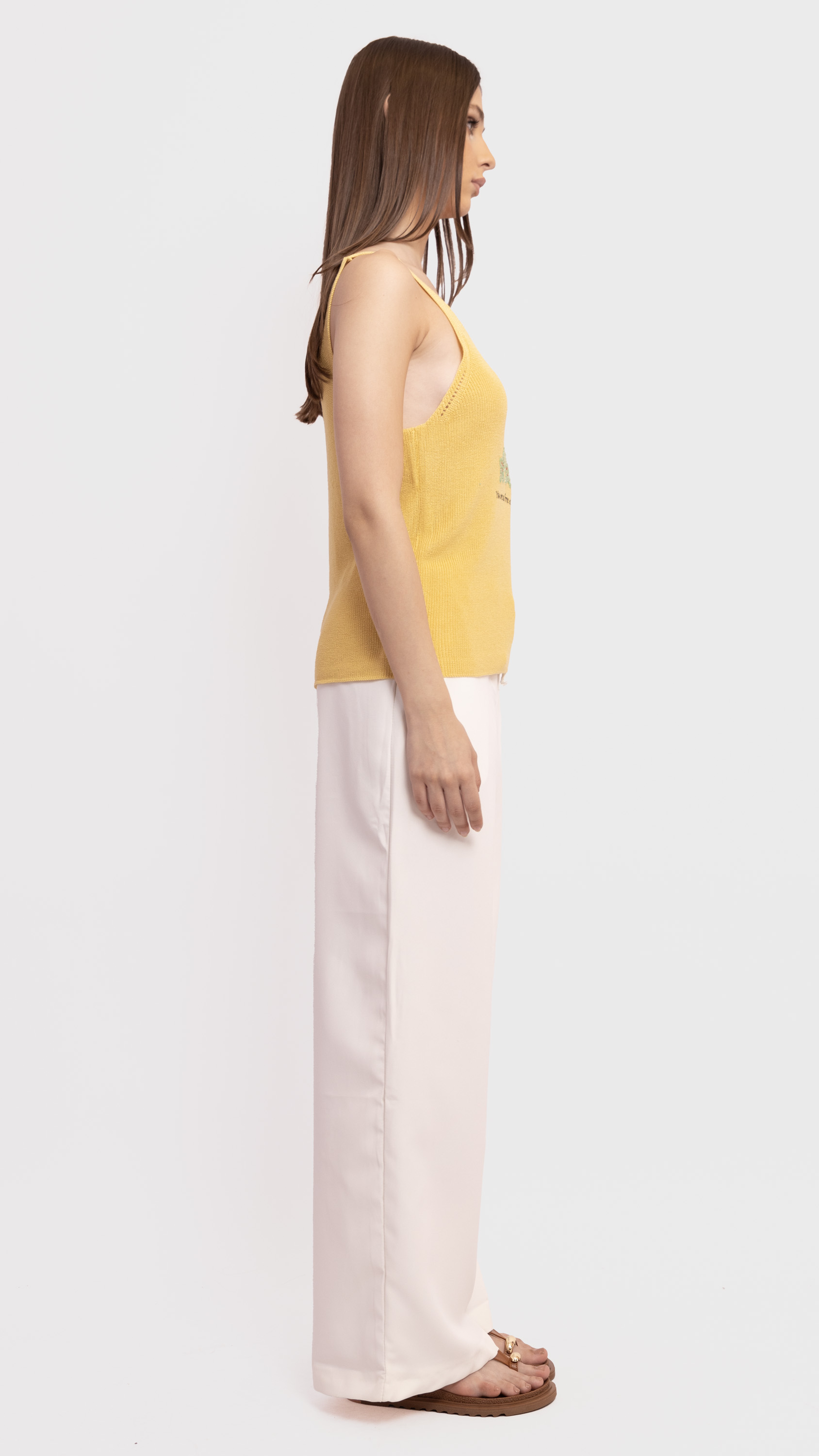 Bring a playful and free-spirited vibe to your wardrobe with this Embroidered Starfish Knit Tank. Crafted from lightweight knit fabric, it features thin spaghetti straps, a flattering V-neckline, and a relaxed straight cut. Embellished with whimsical green starfish embroidery and an inspiring text detail, this top is perfect for casual summer days and seaside escapes.