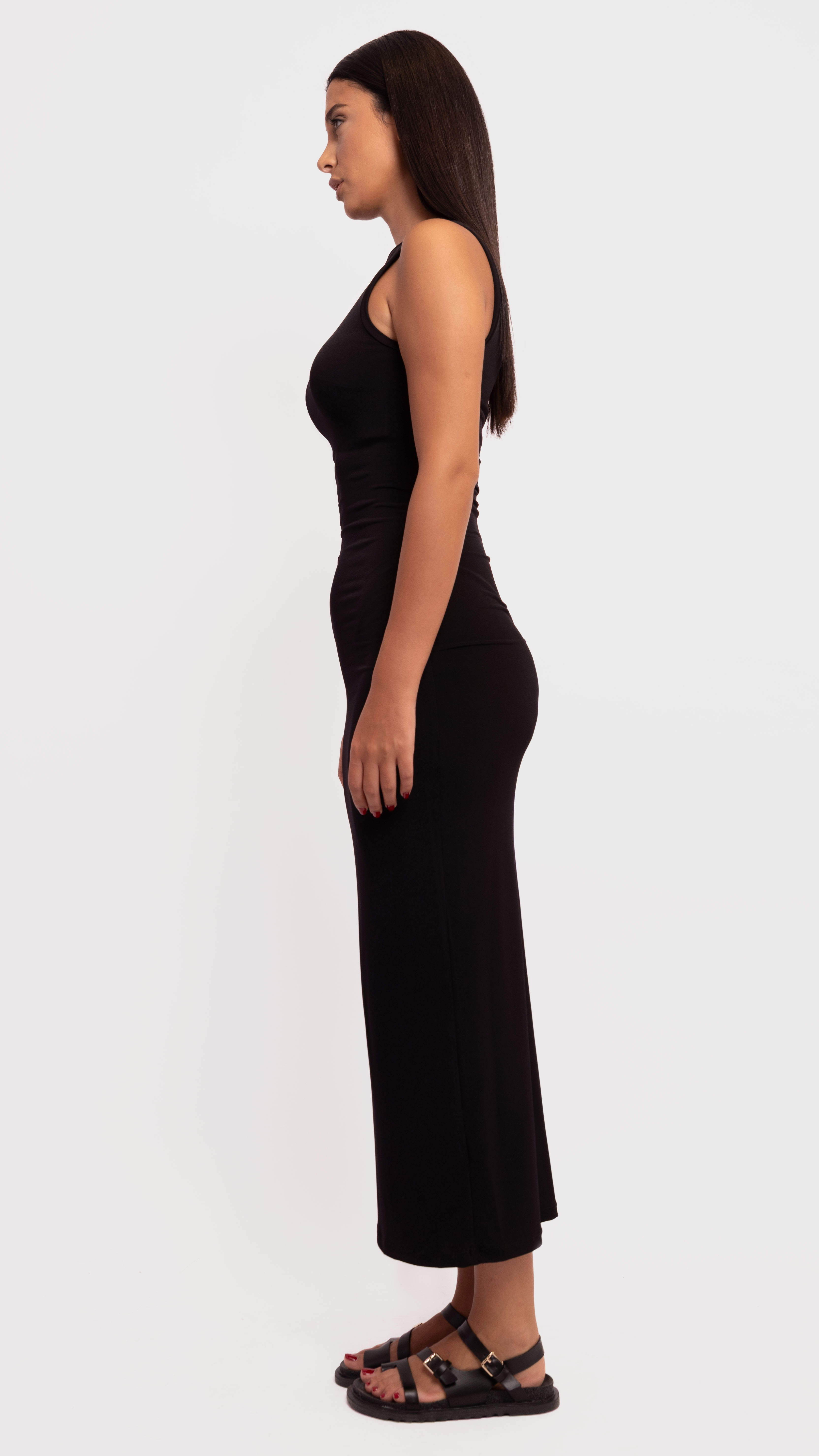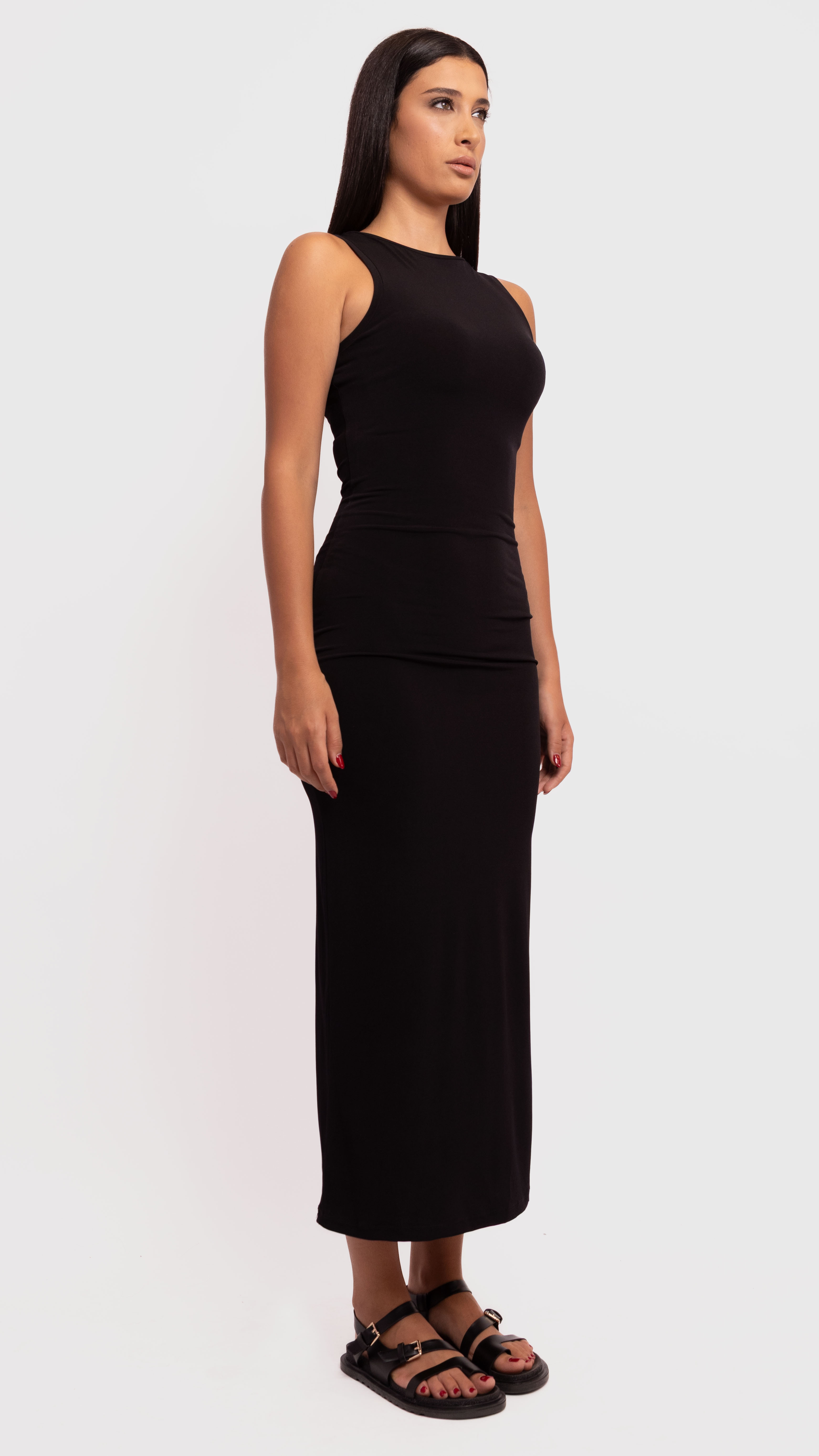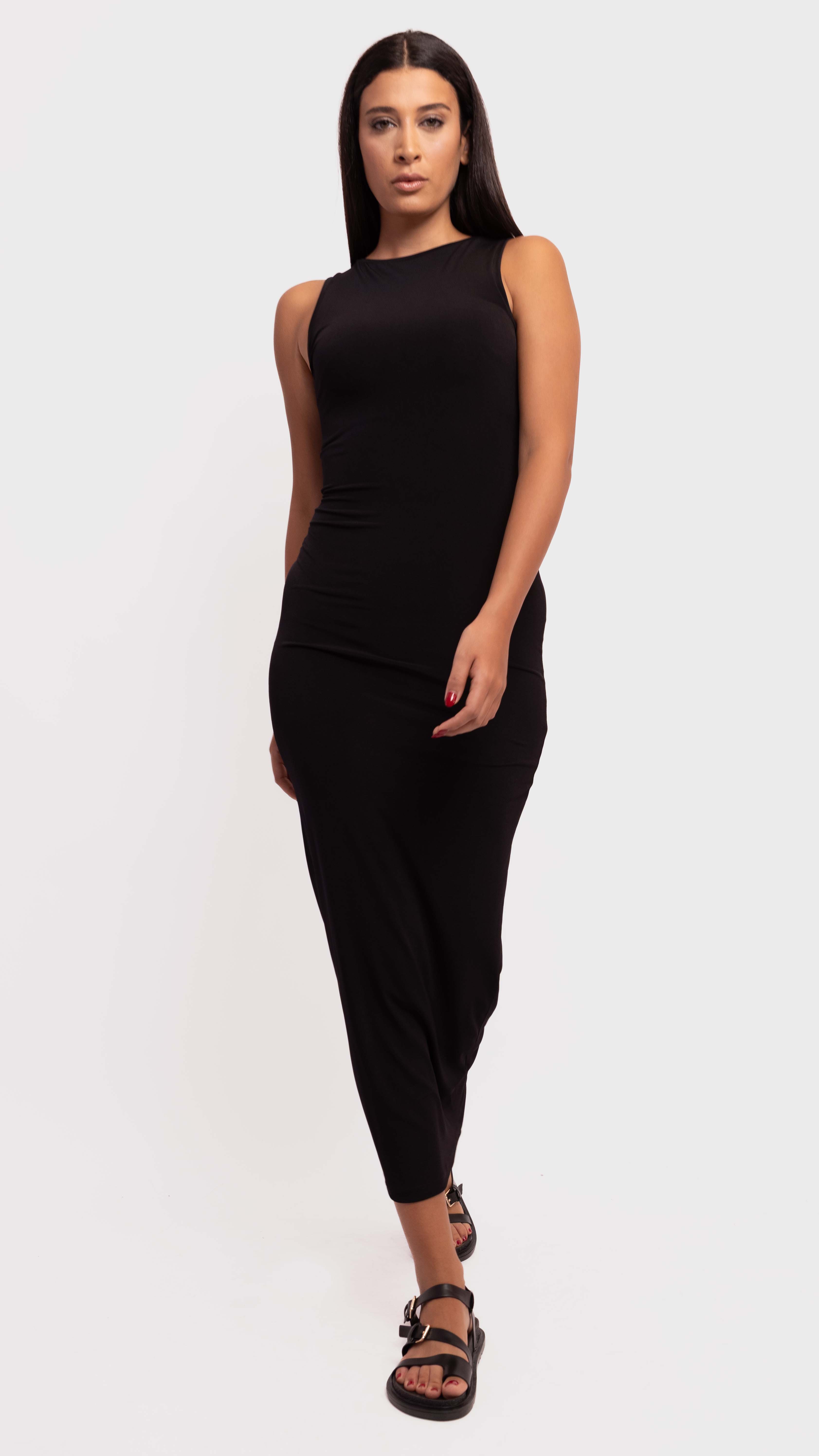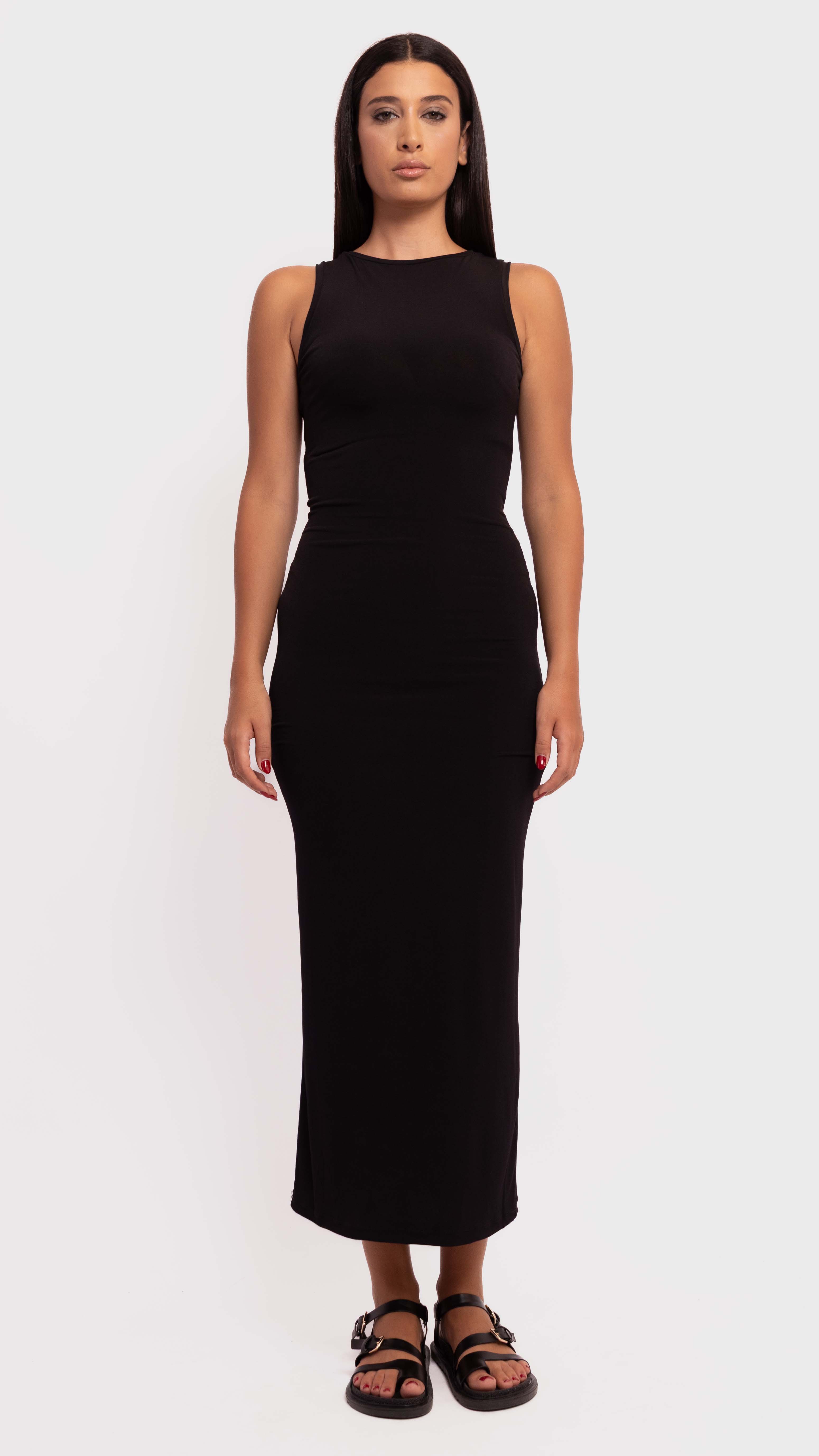 Keep it effortlessly sleek with this sleeveless bodycon maxi dress, a minimalist staple perfect for everyday ease or styled layering.