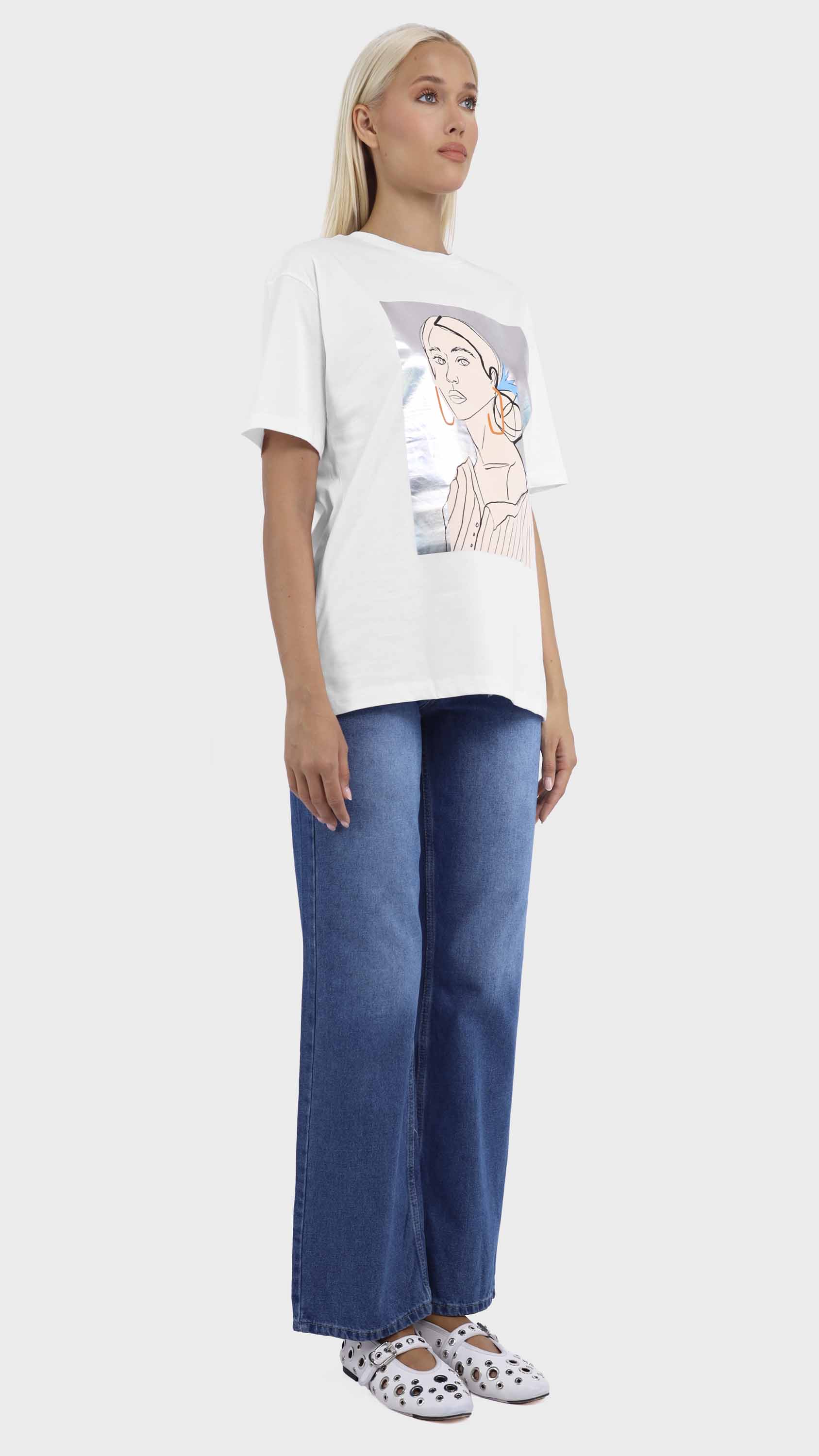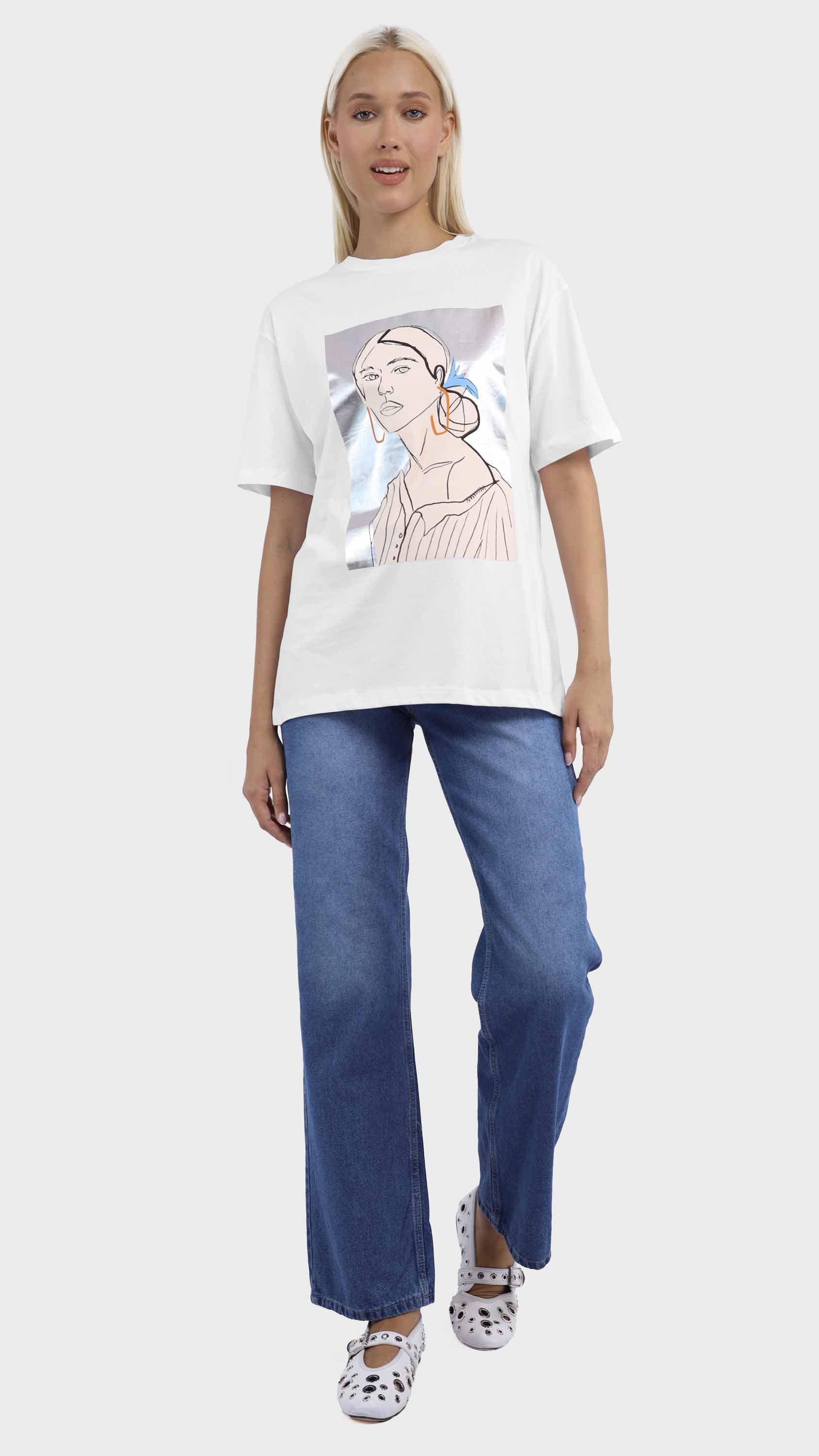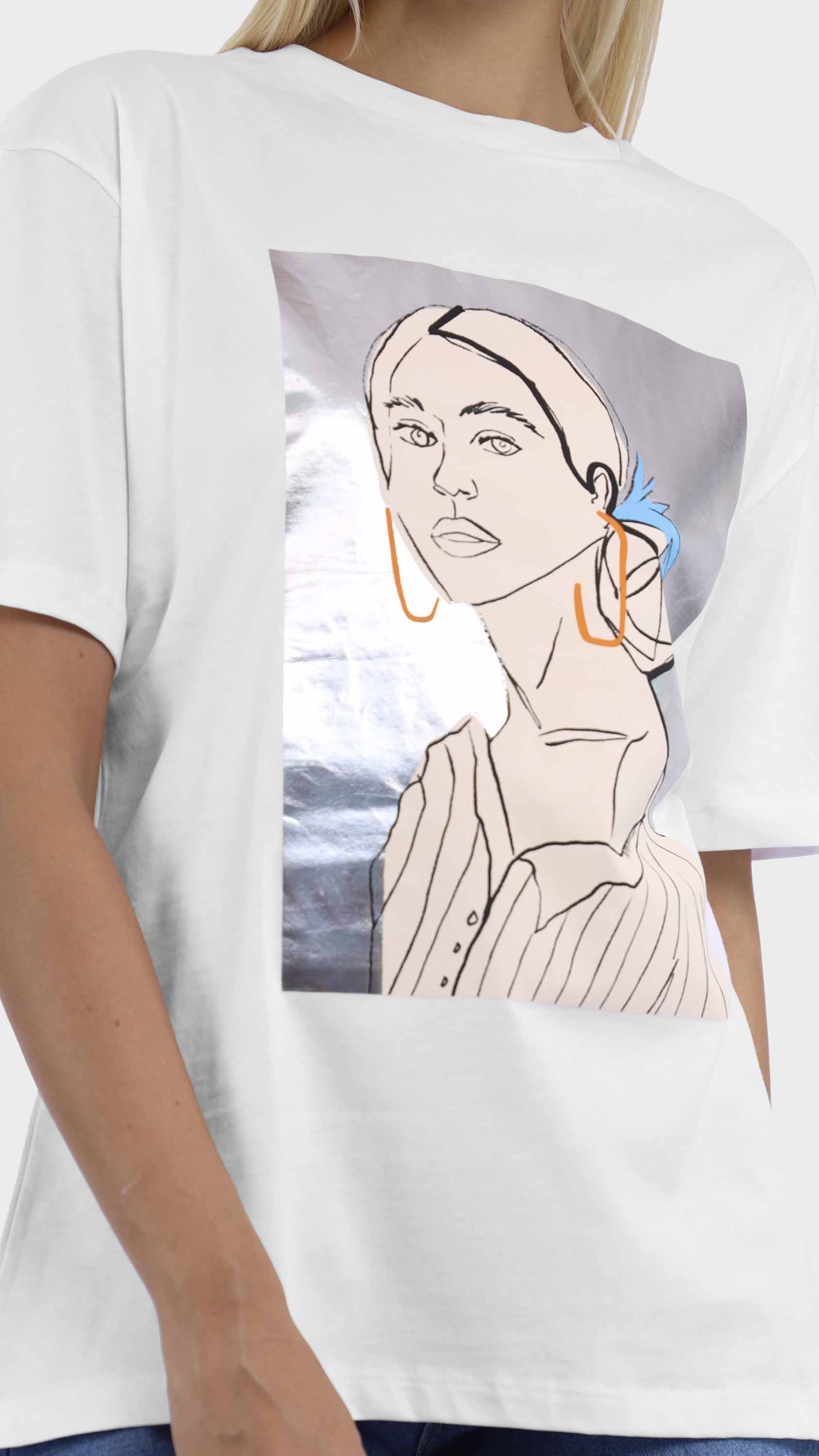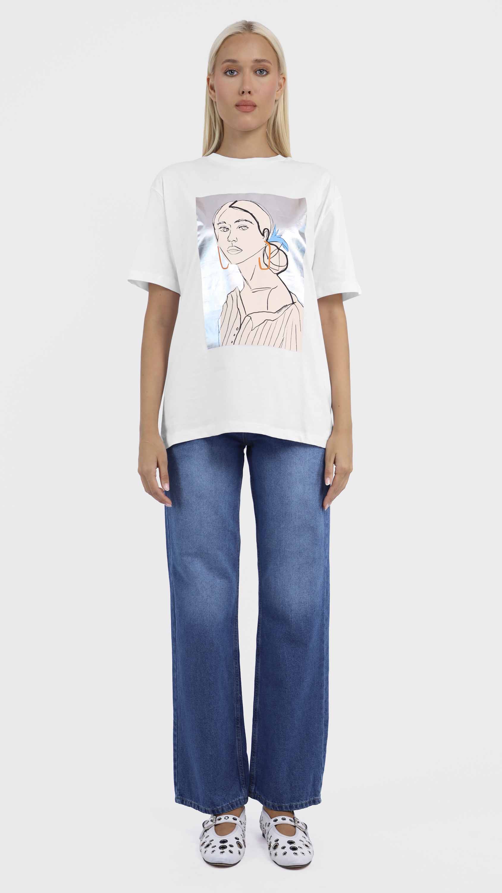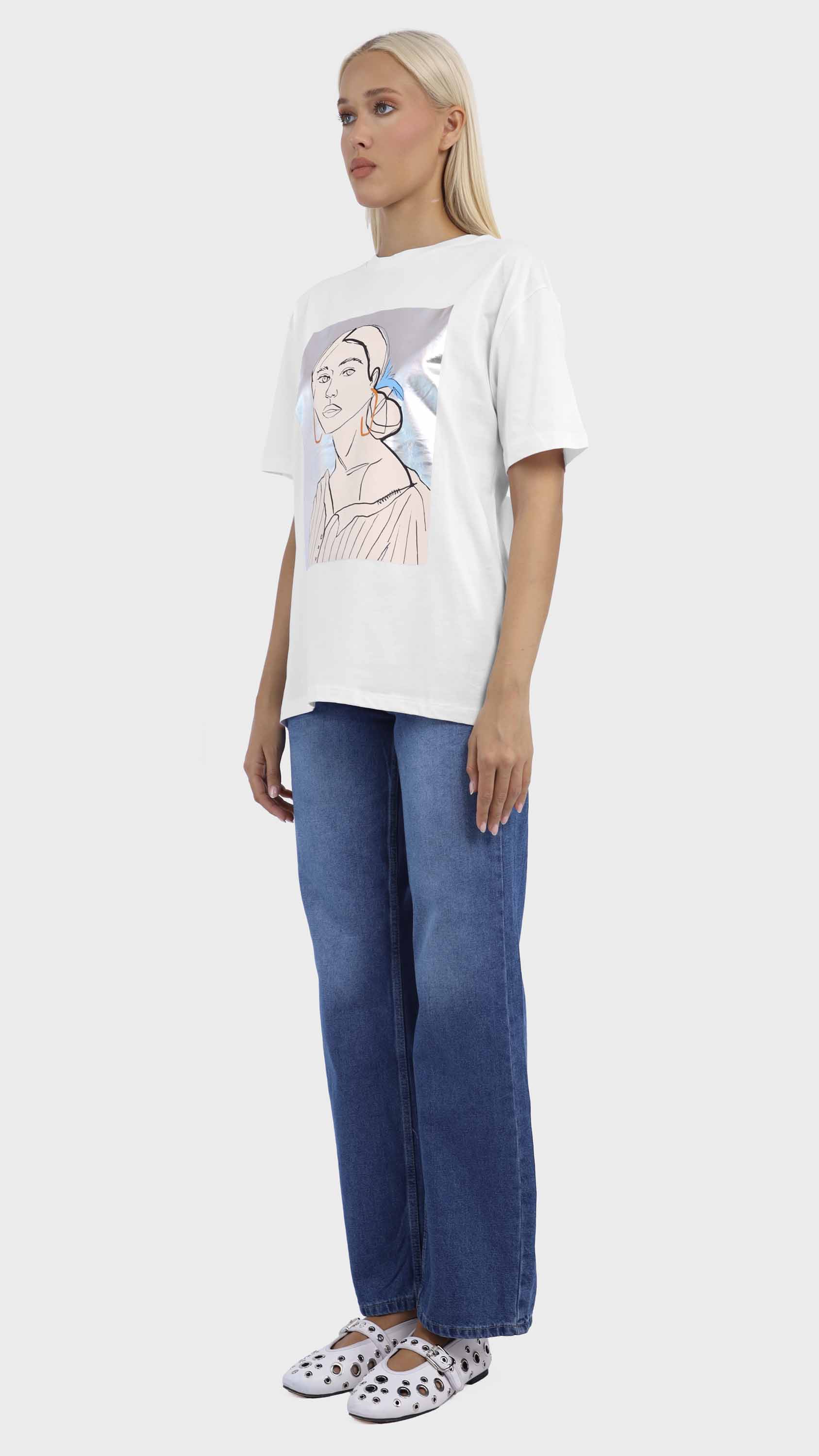 Graphic Tee with Abstract Woman Illustration