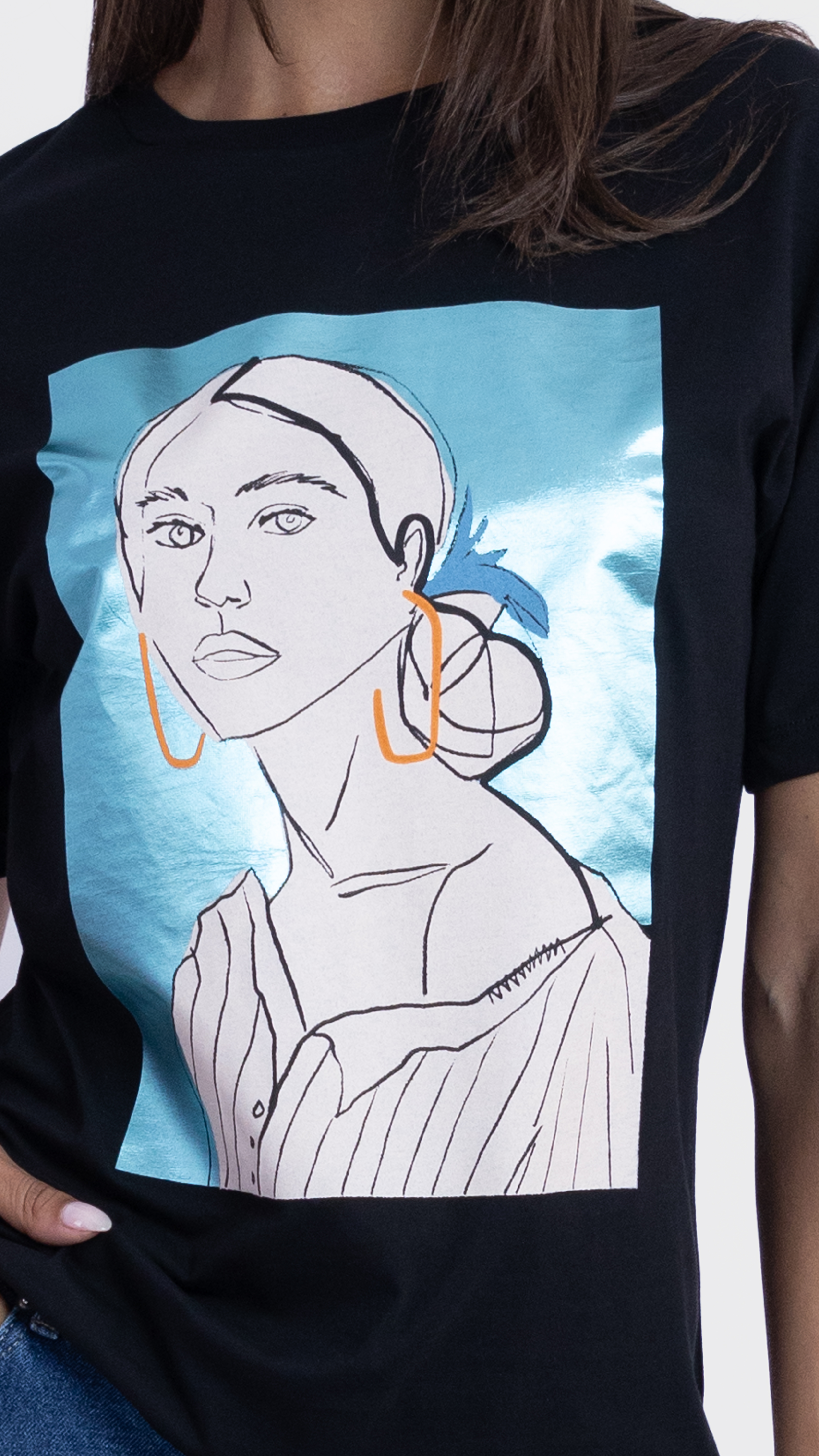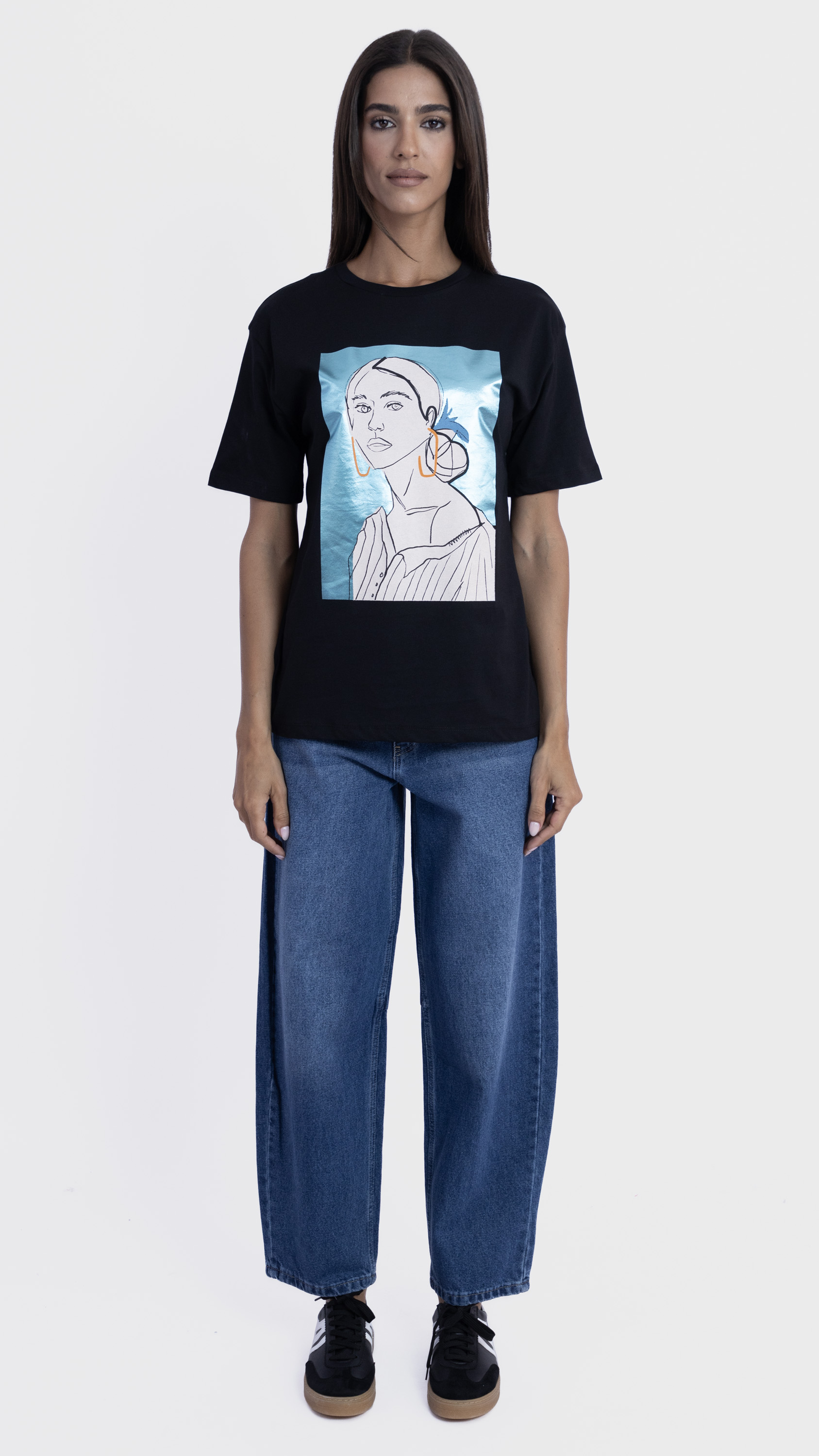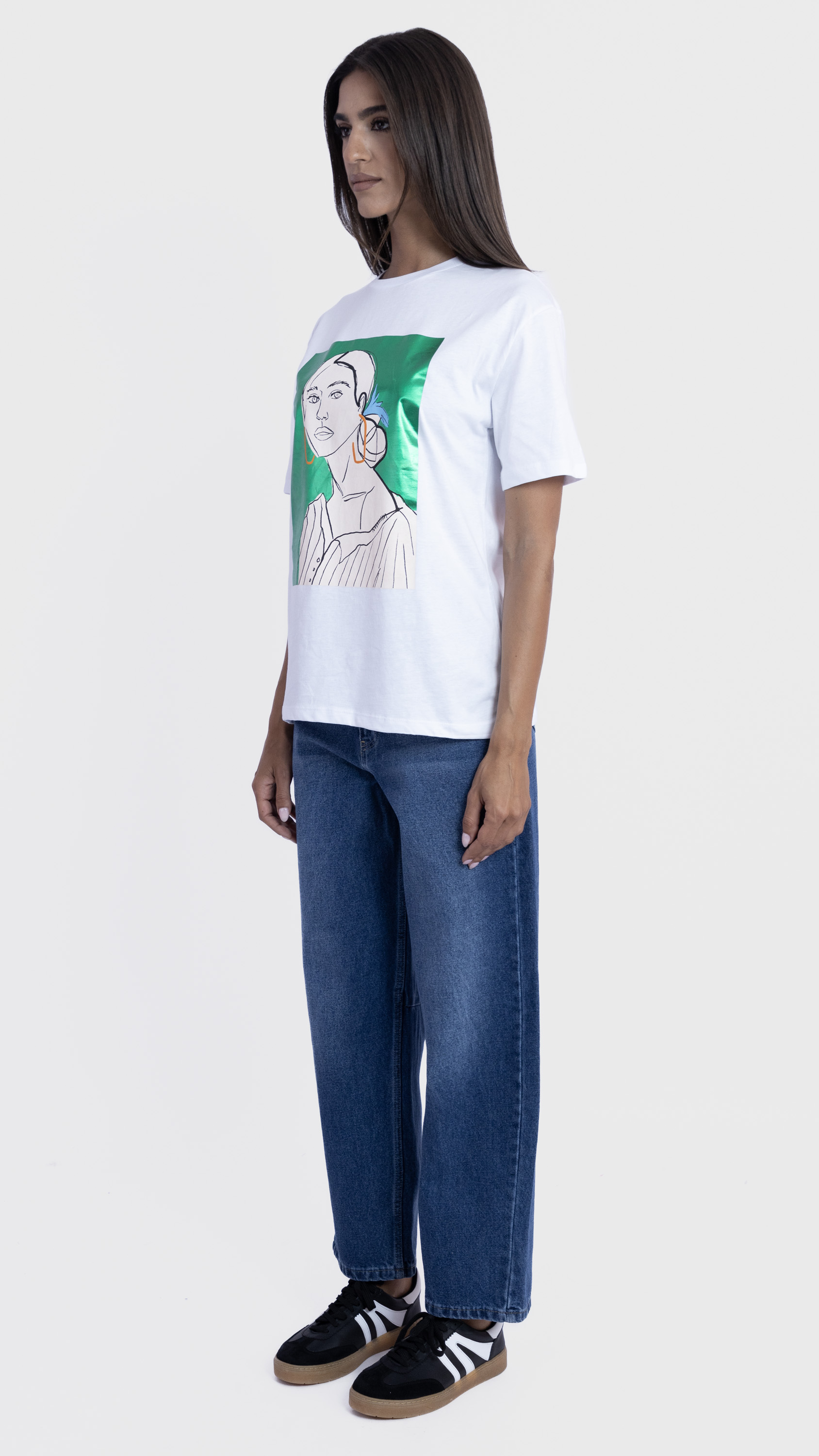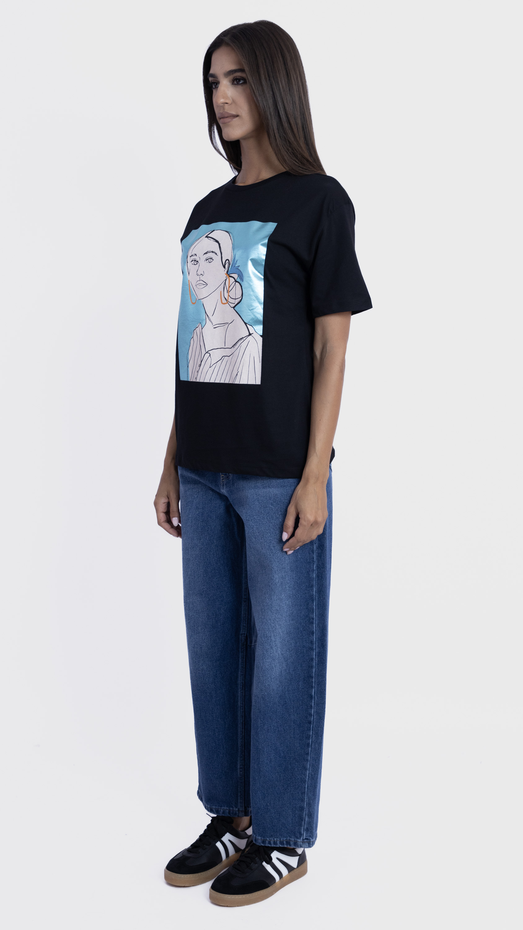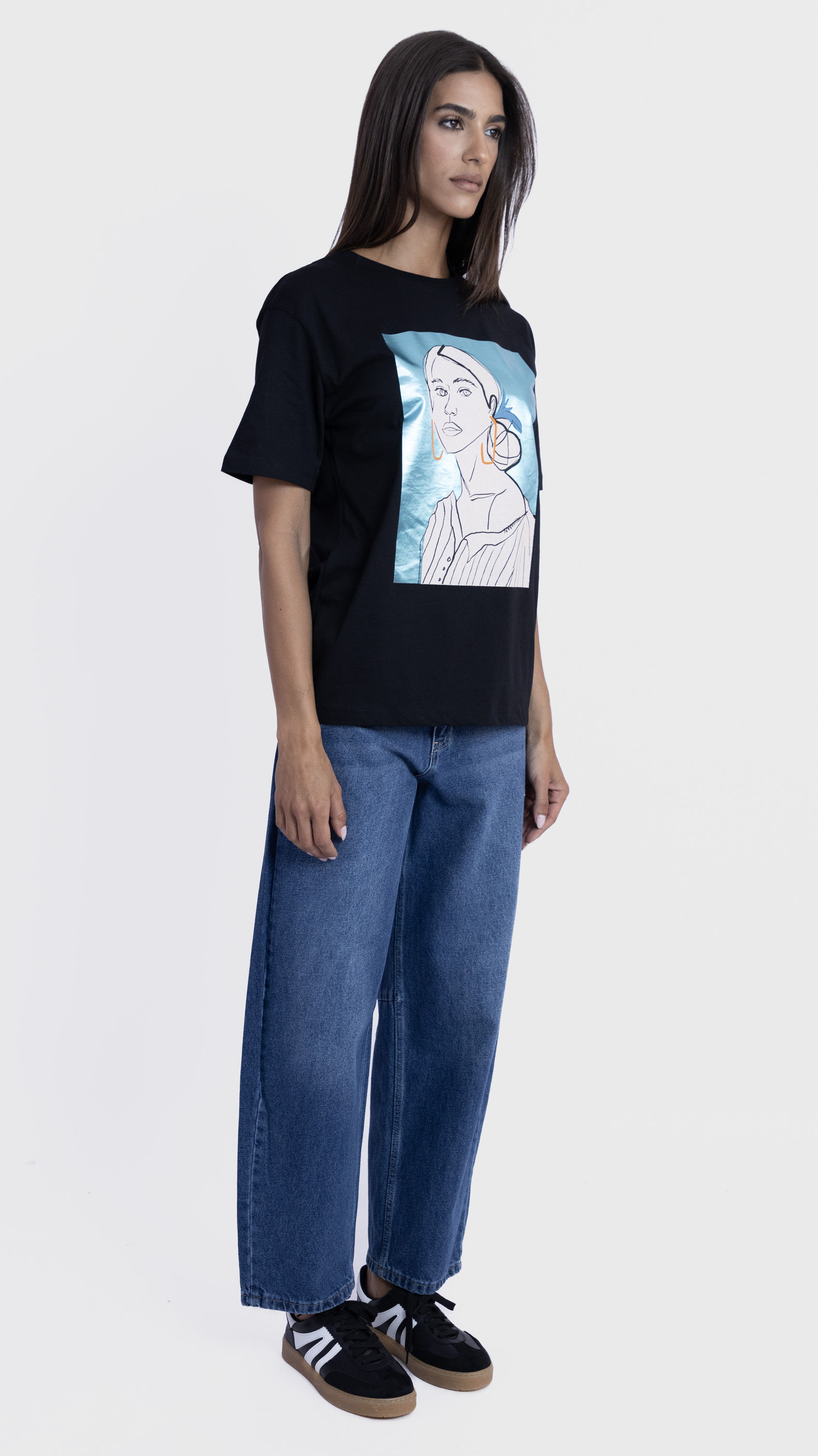 Graphic Tee with Abstract Woman Illustration