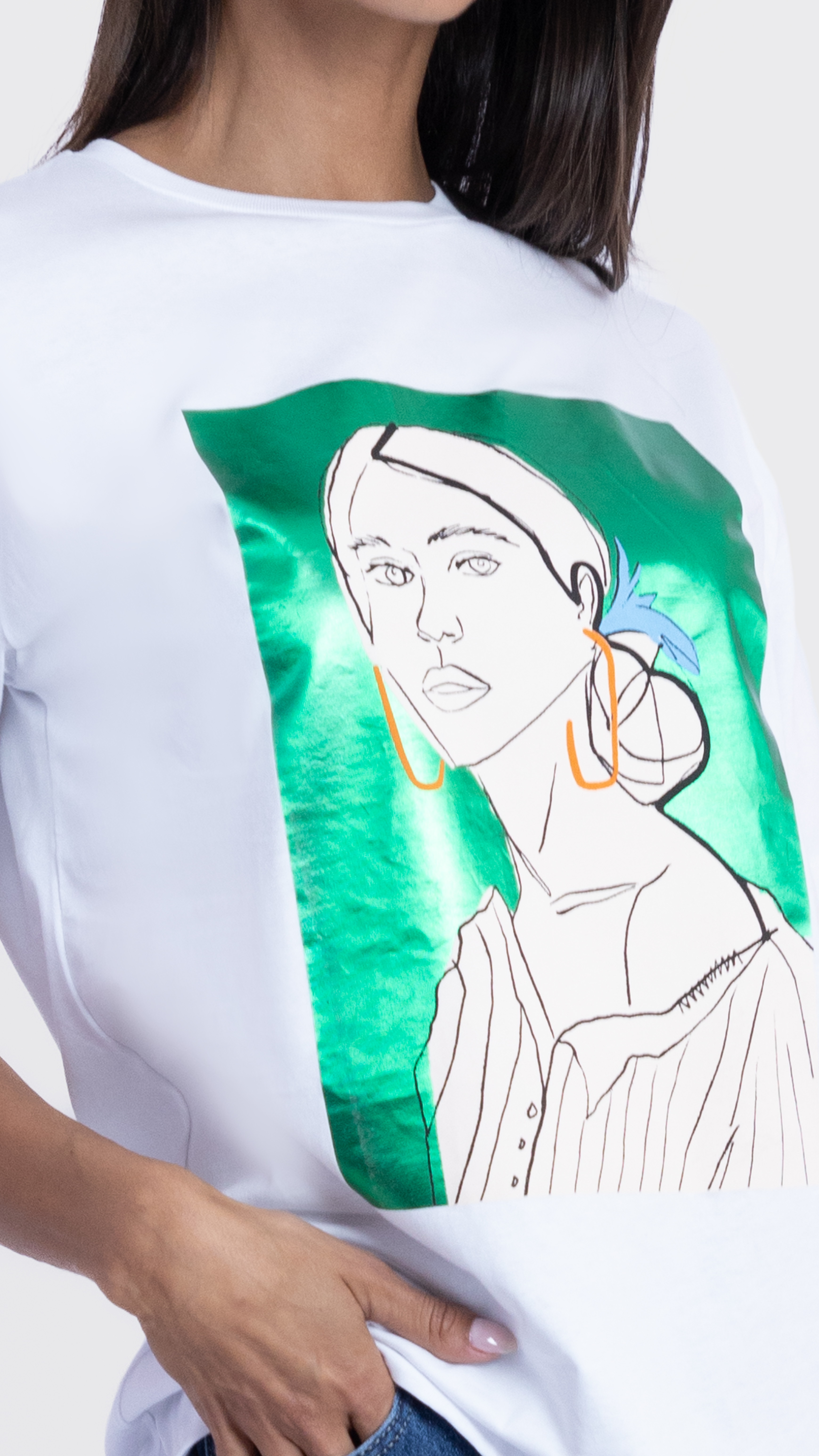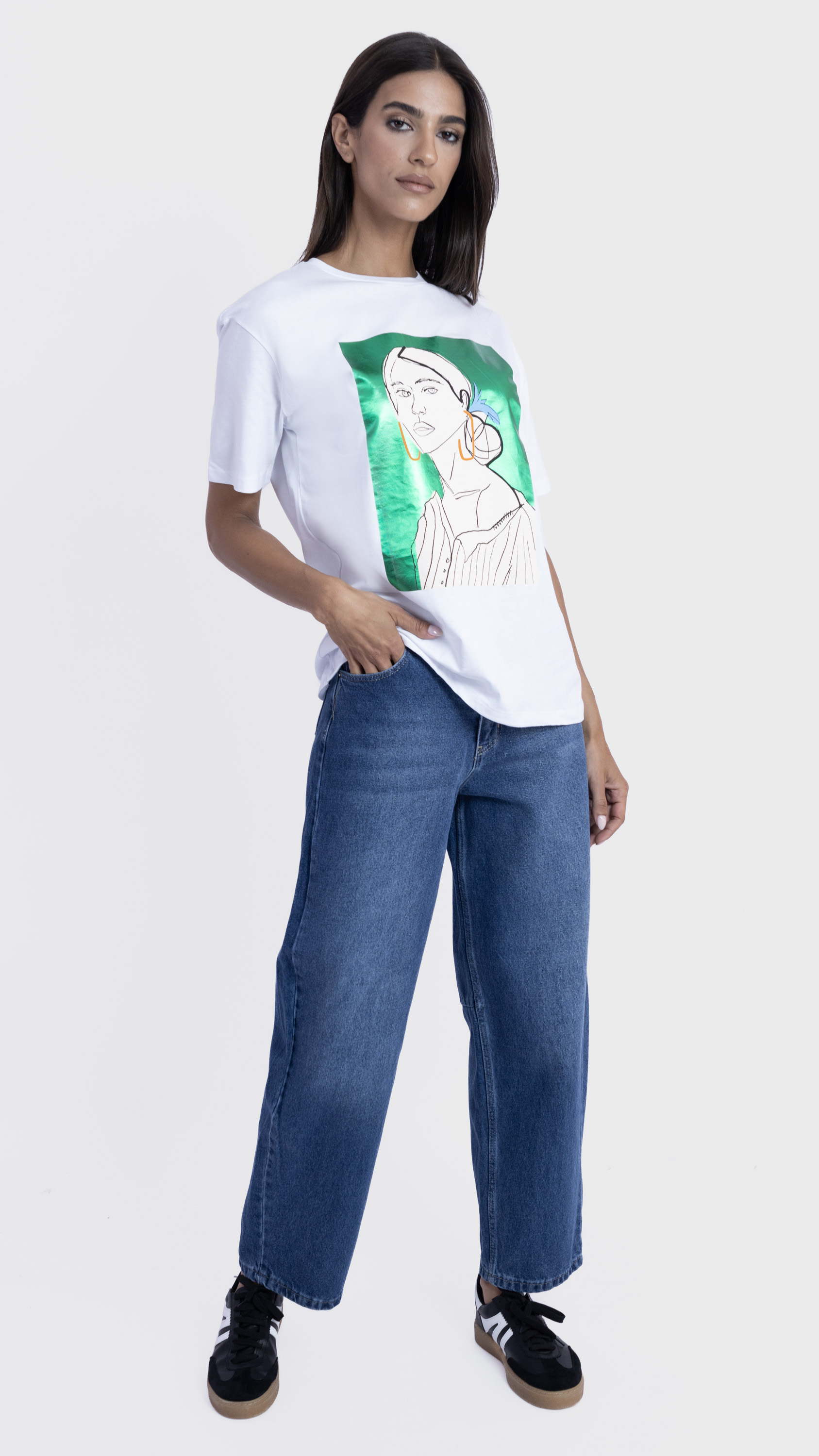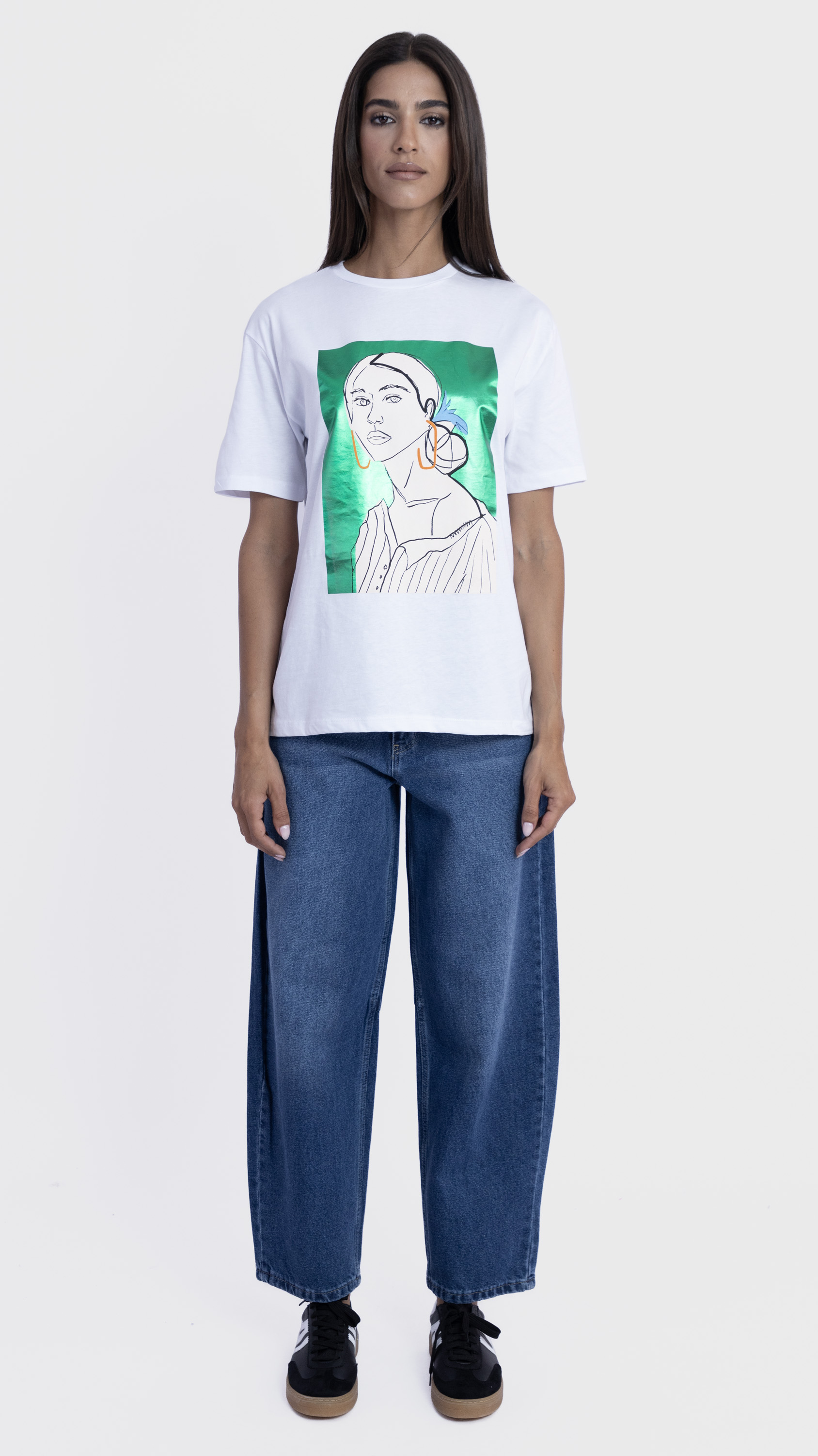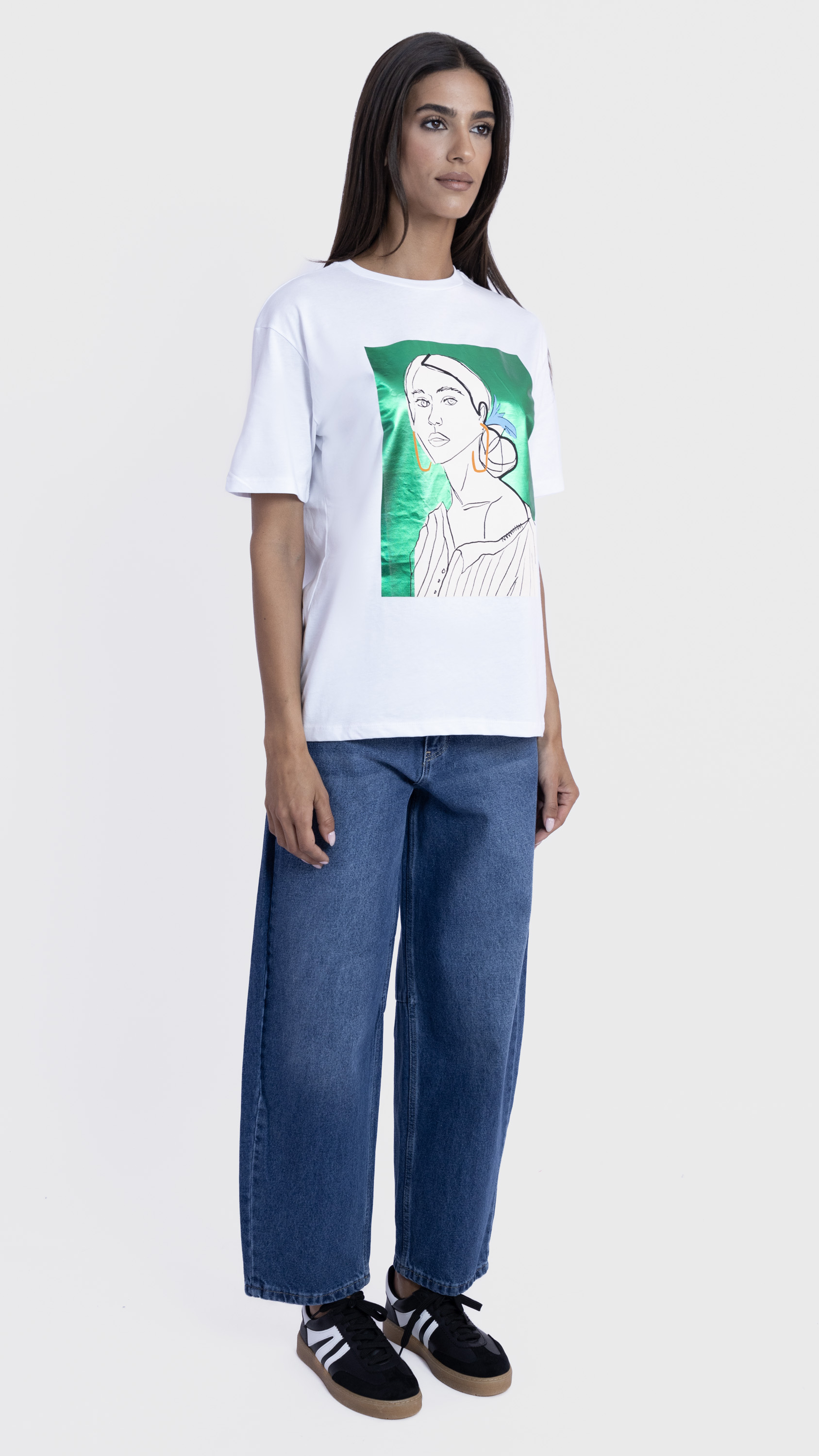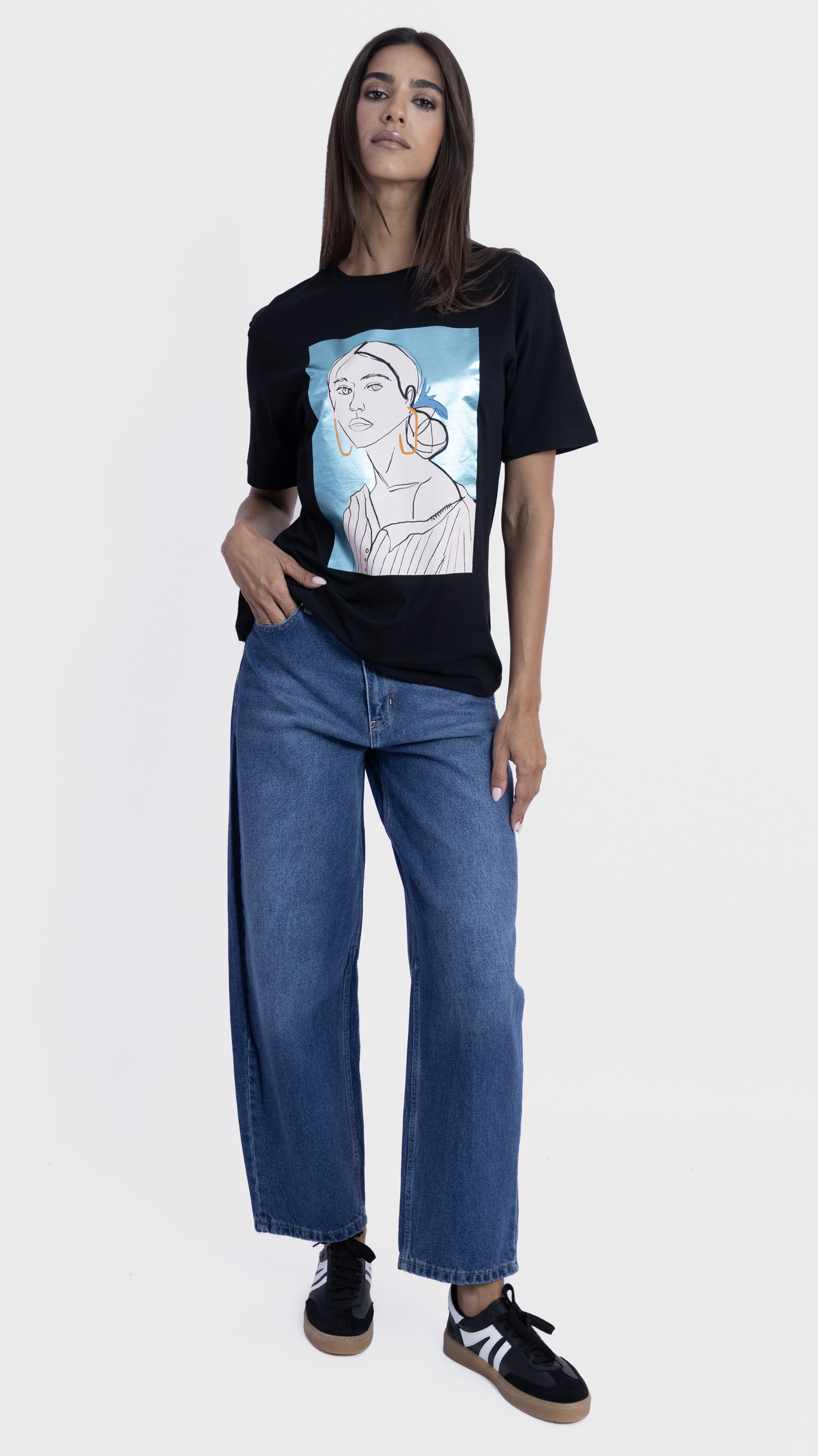 Graphic Tee with Abstract Woman Illustration