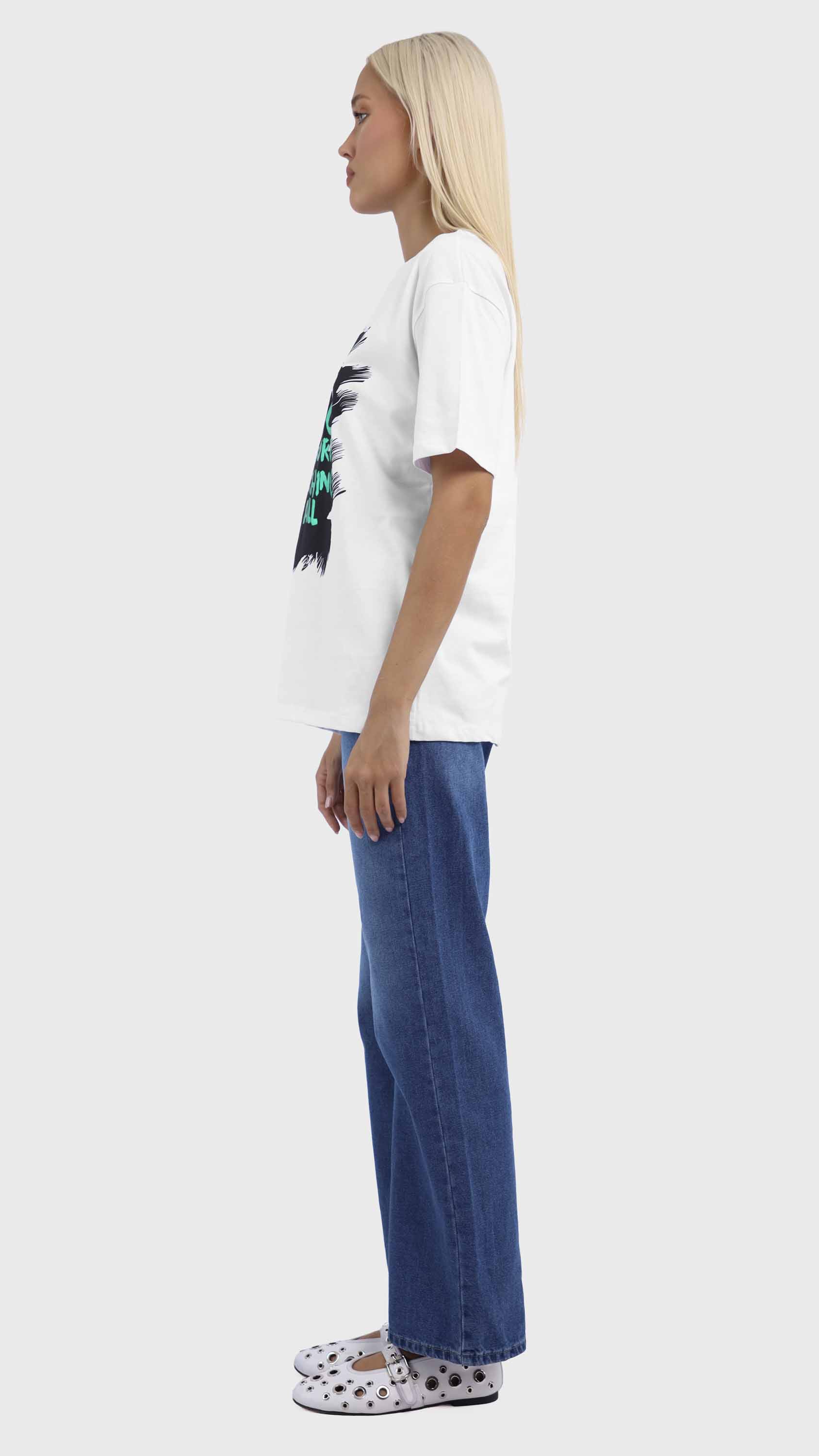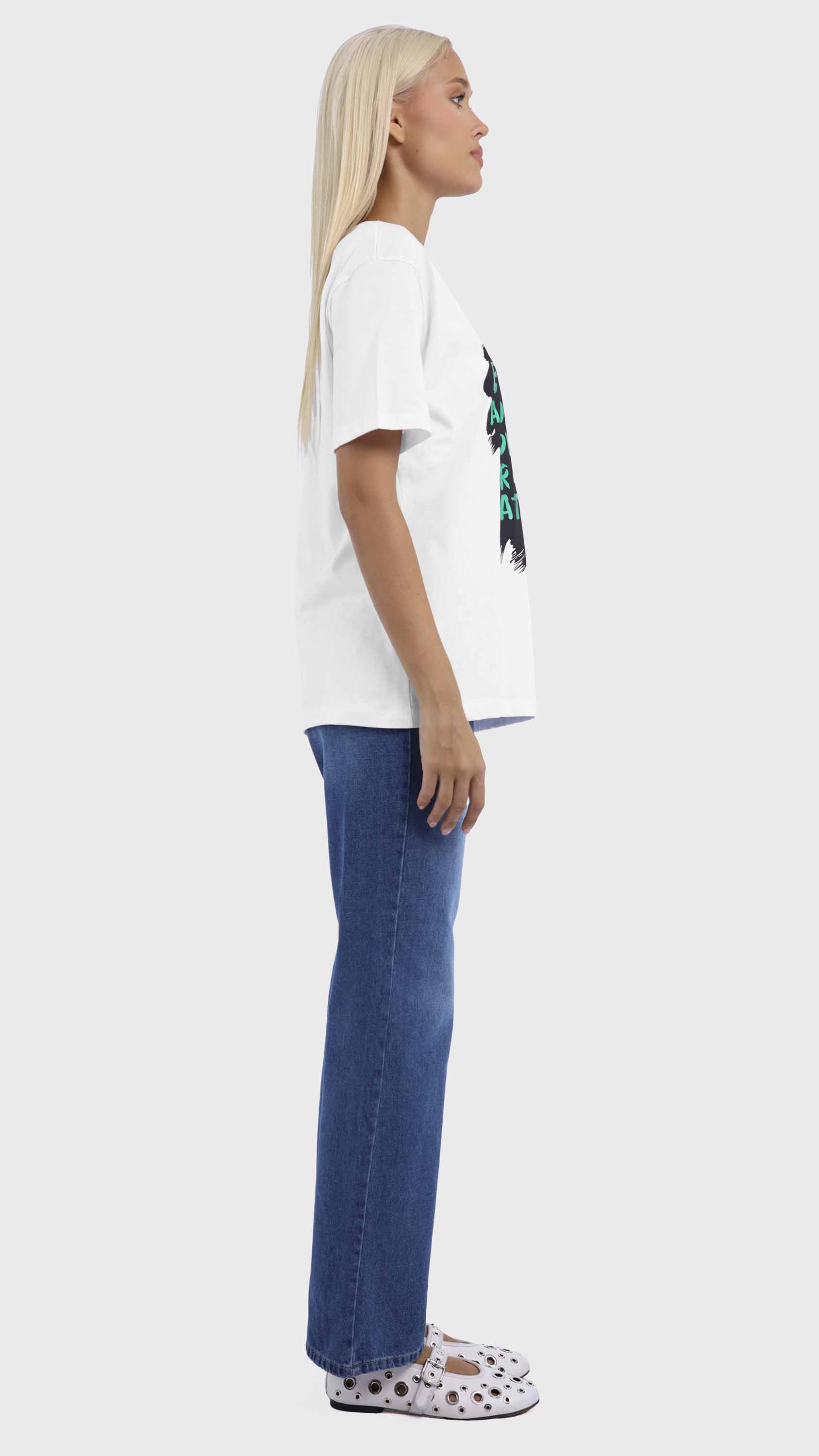 Make a bold statement with this Graphic Slogan Tee featuring an eye-catching green print and an inspiring message.