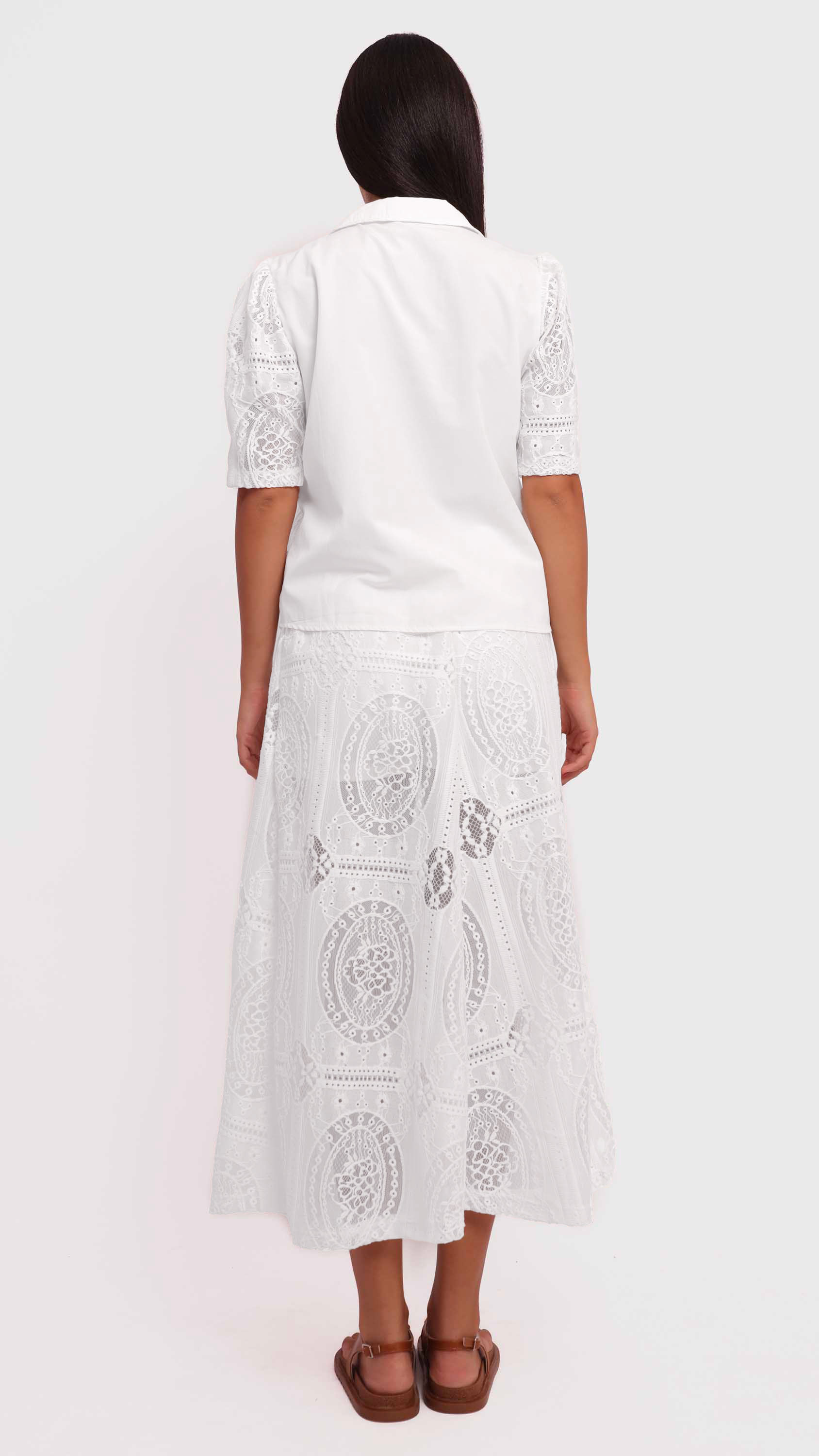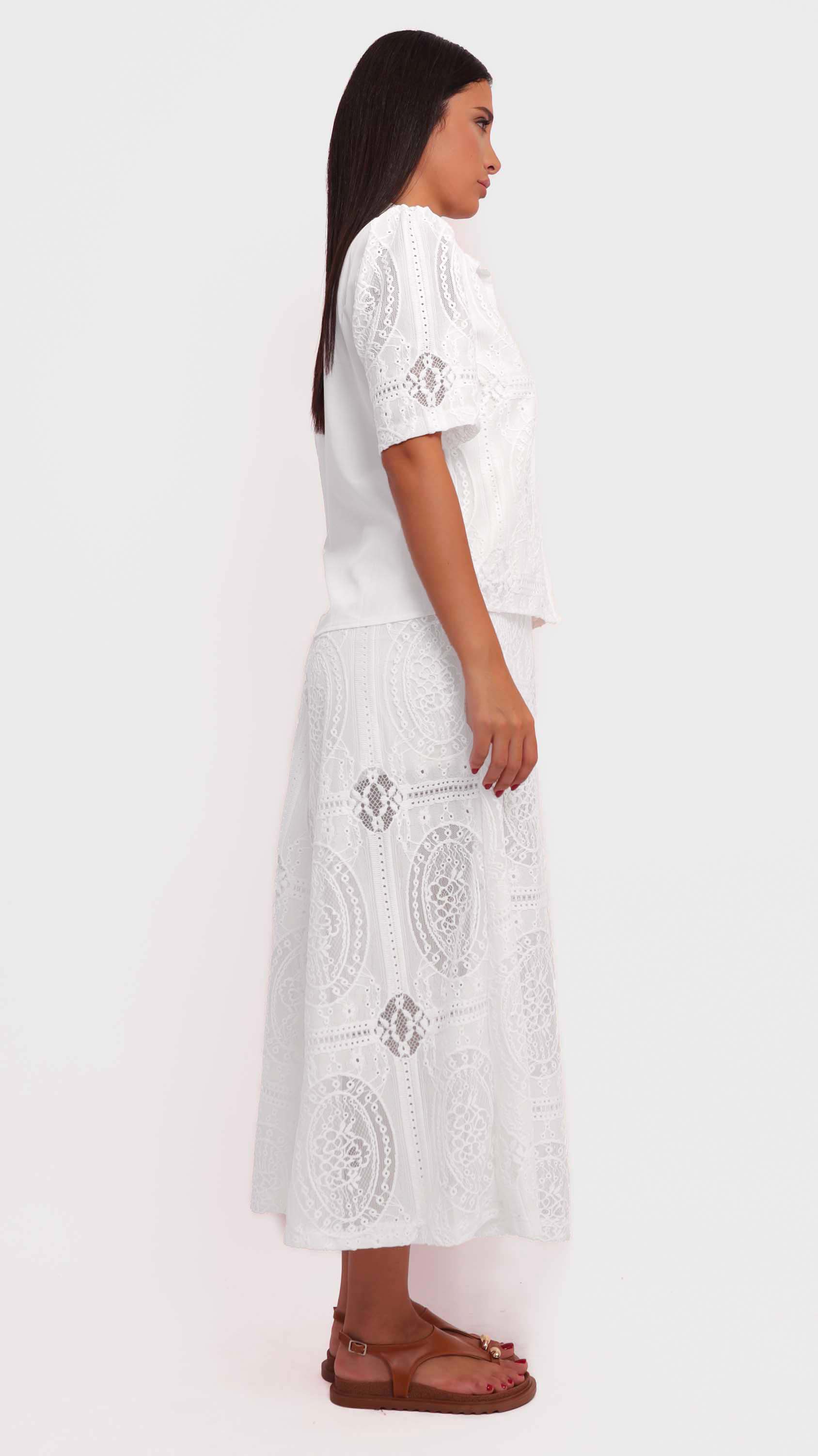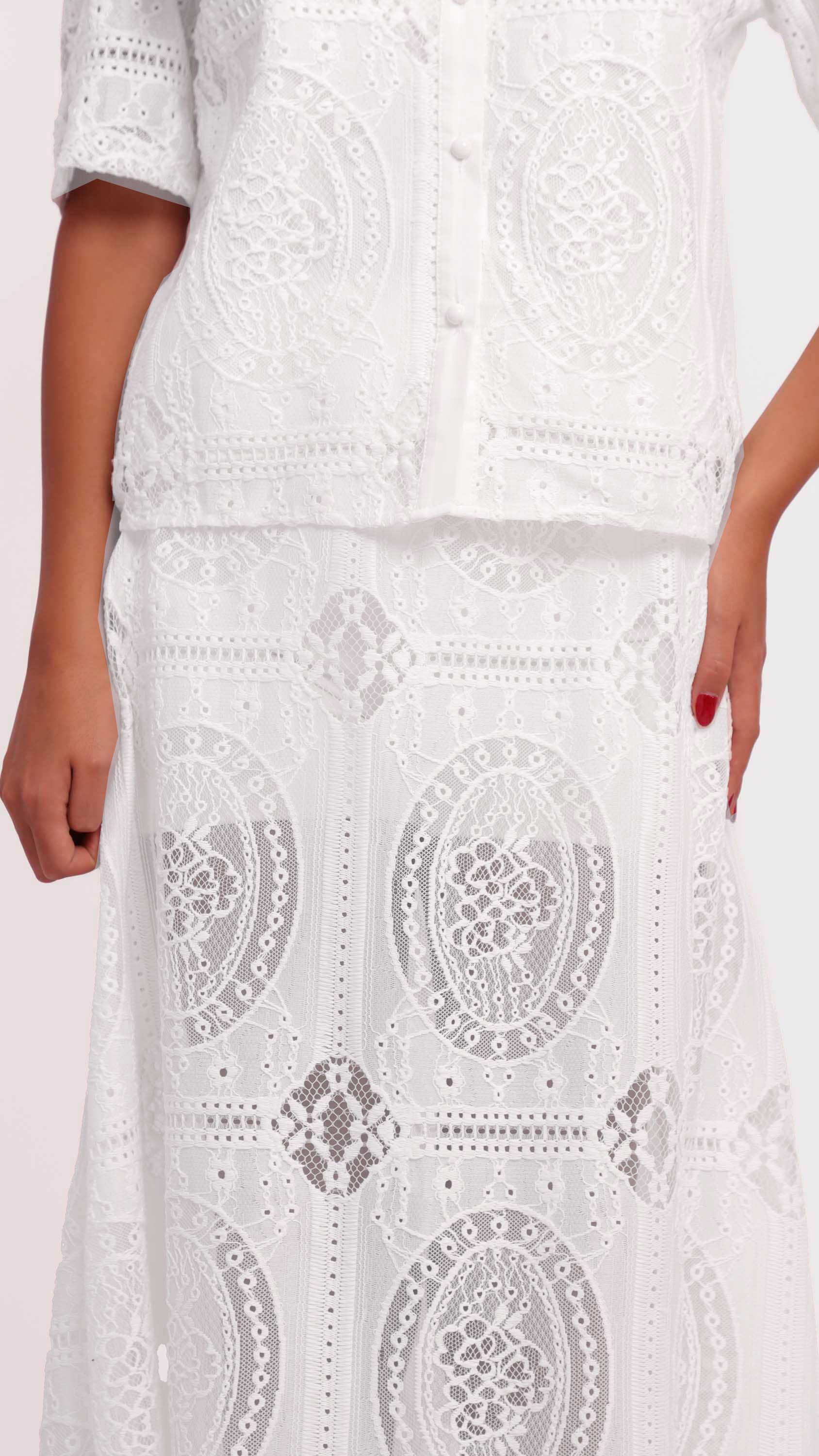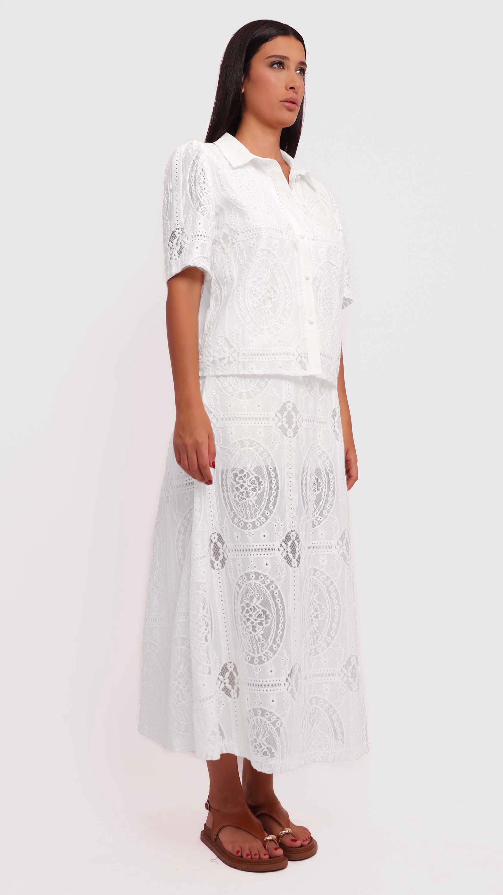 Step into effortless elegance with this white lace embroidered two-piece set.