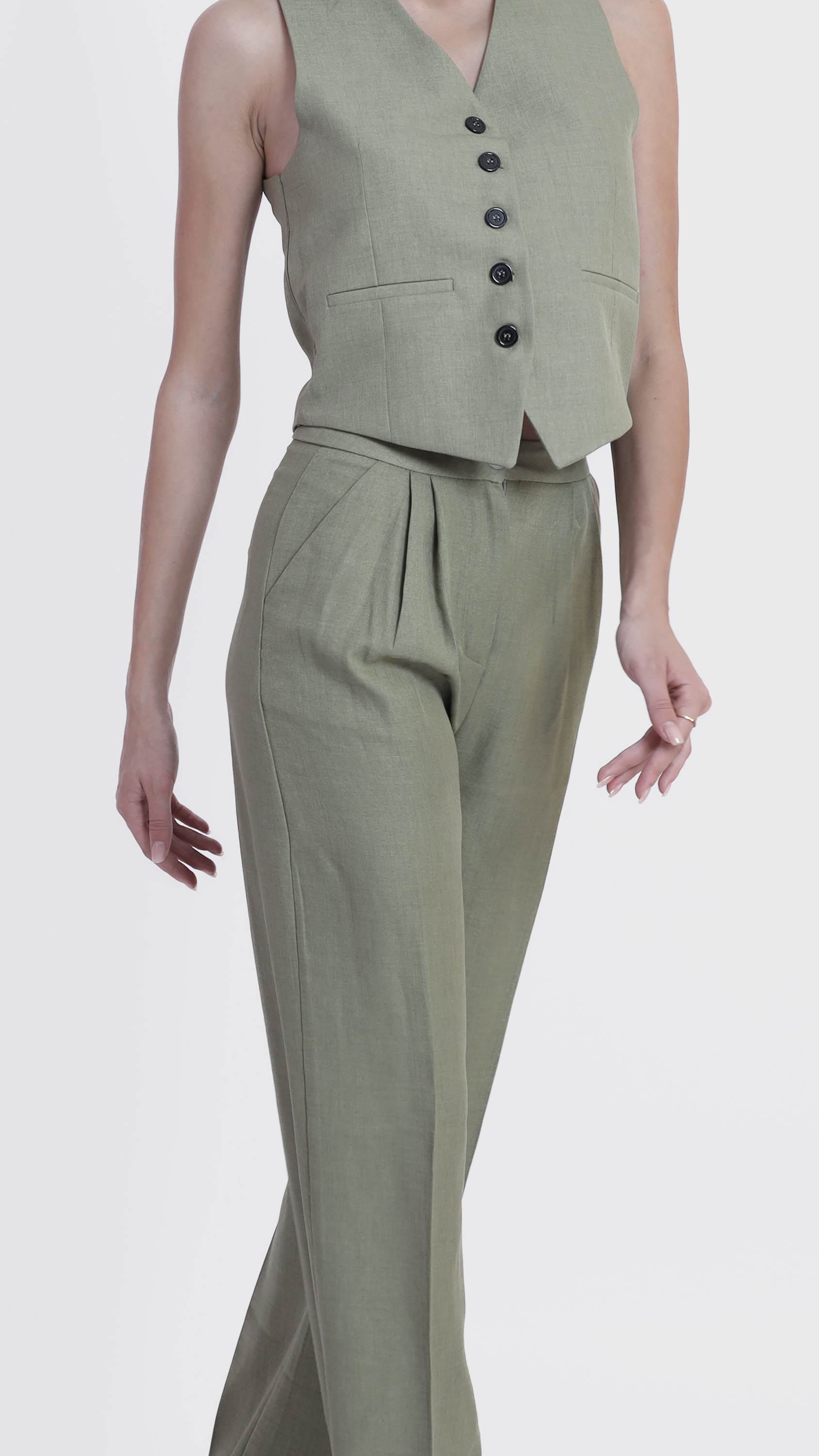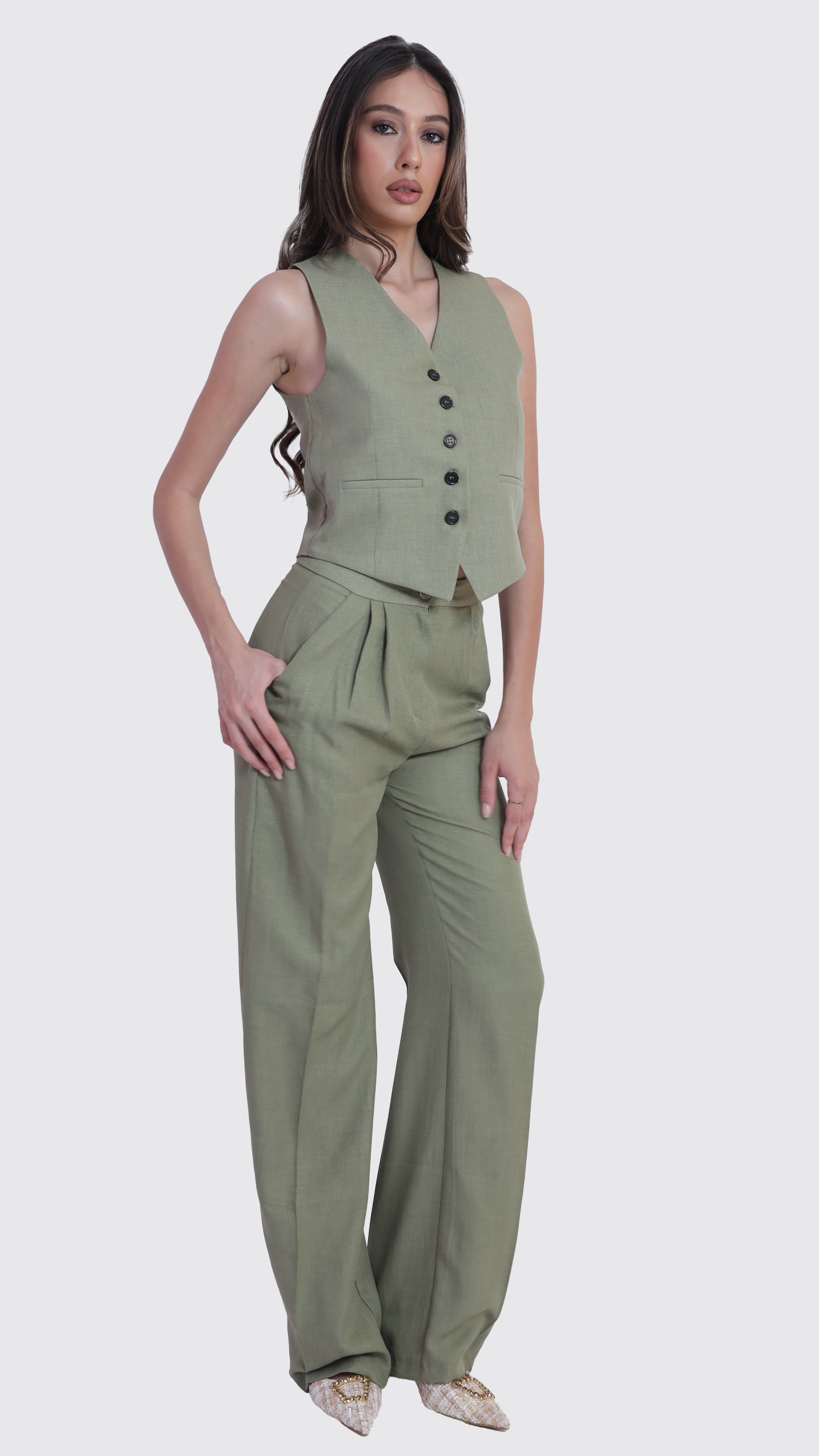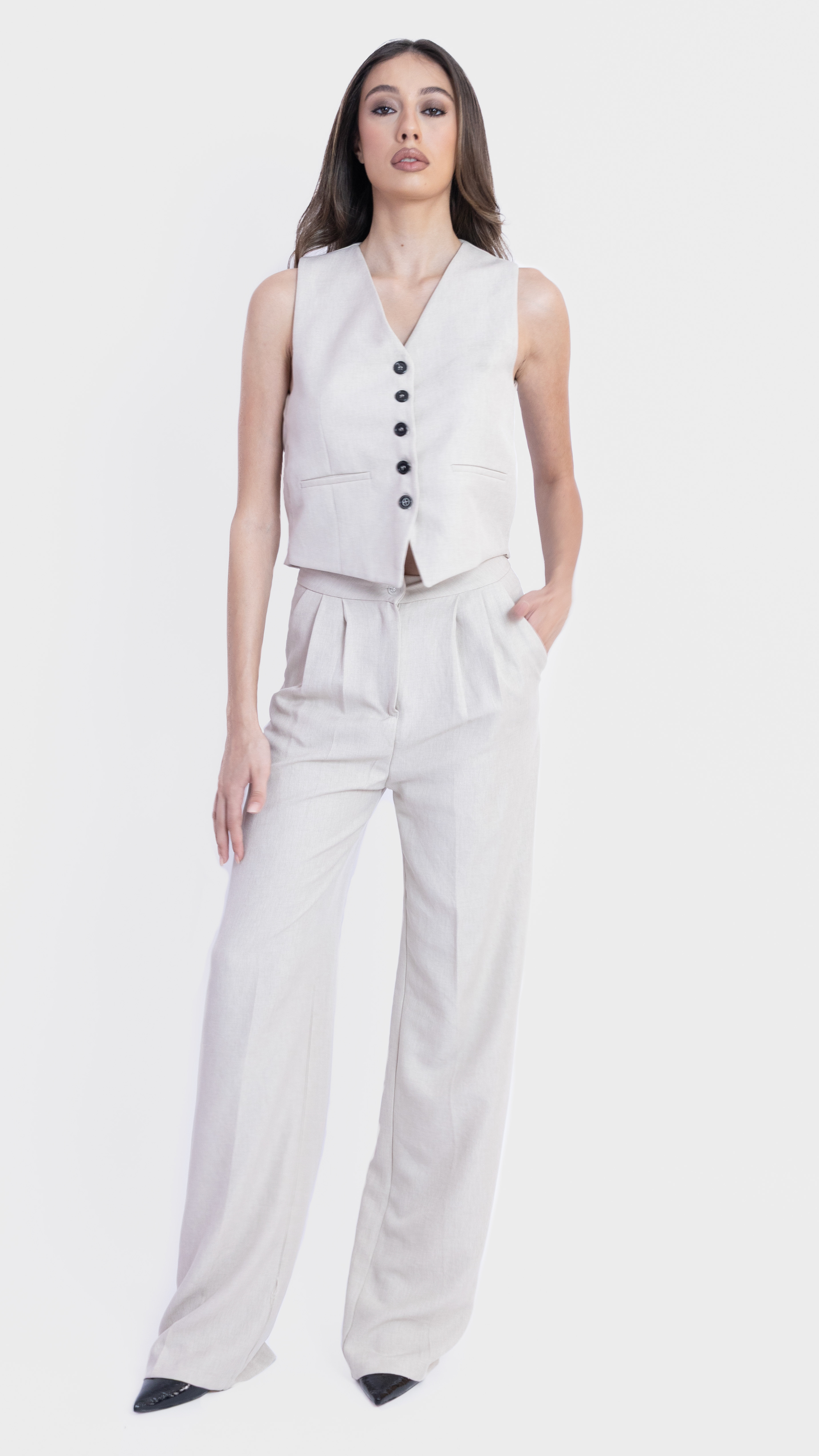Step into refined elegance with this Sleeveless Vest & Wide-Leg Trousers Set—perfect for elevated daytime or office-ready looks.