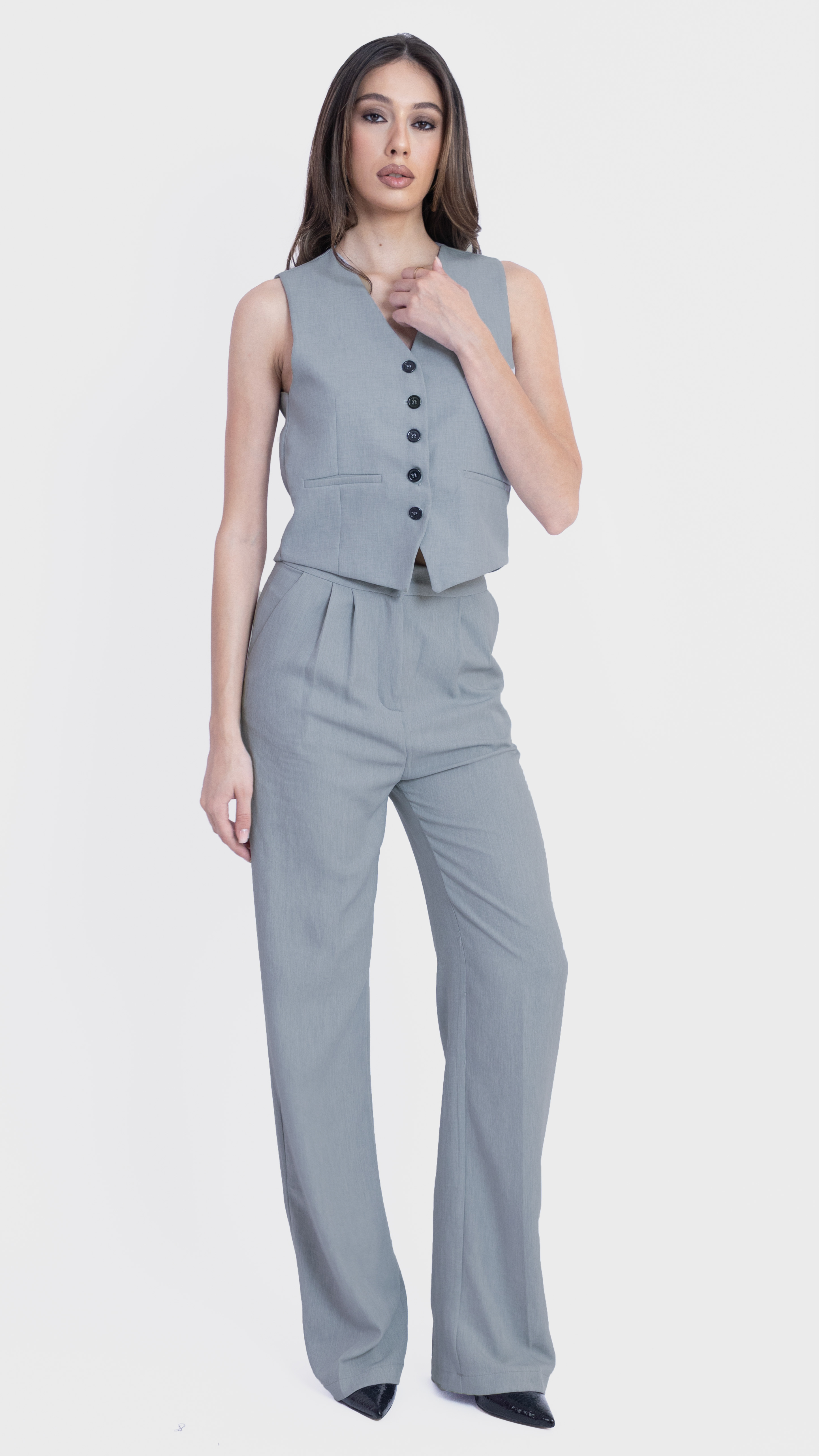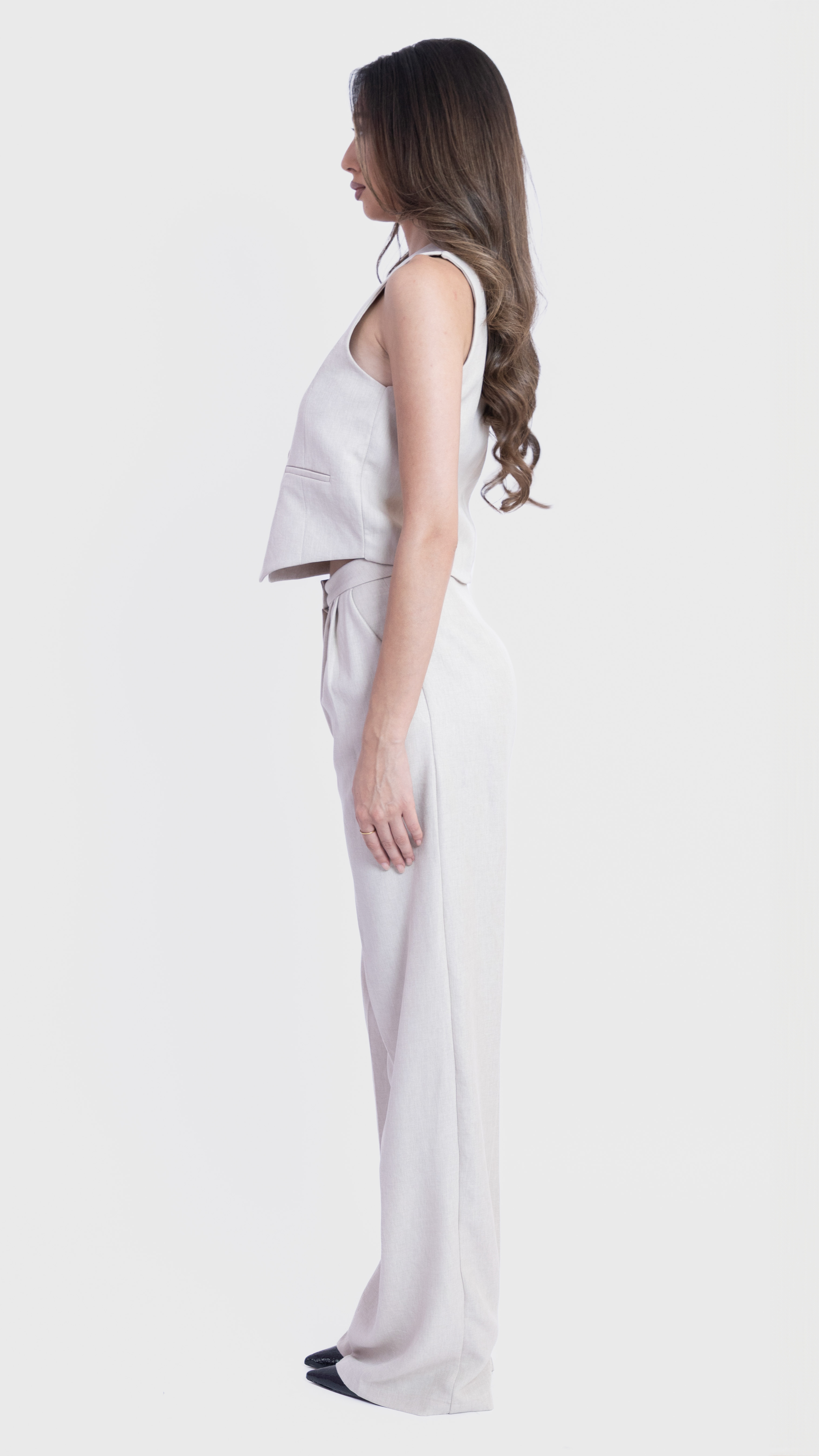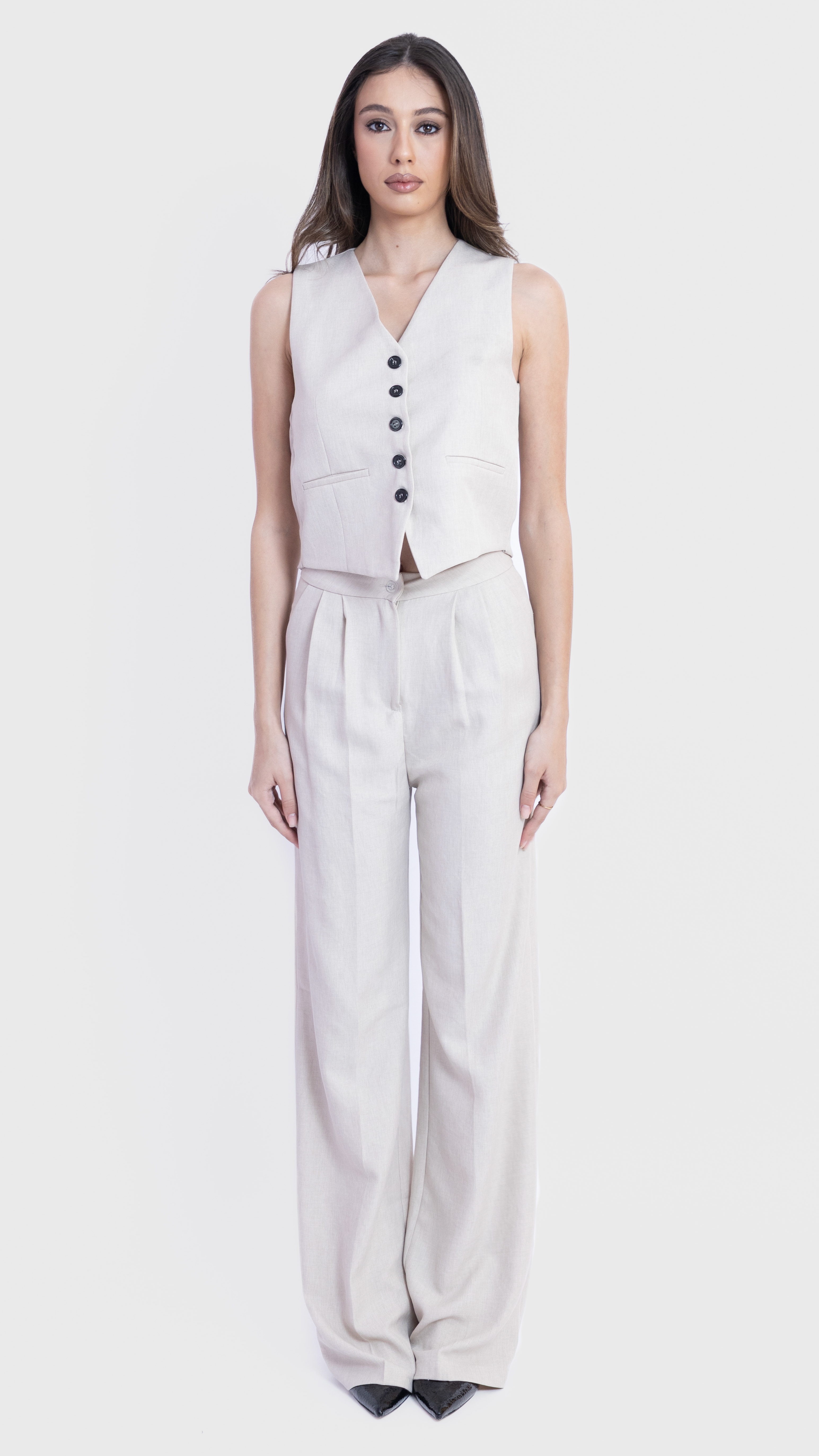 Sleeveless Vest & Wide-Leg Trousers Co-Ord Set