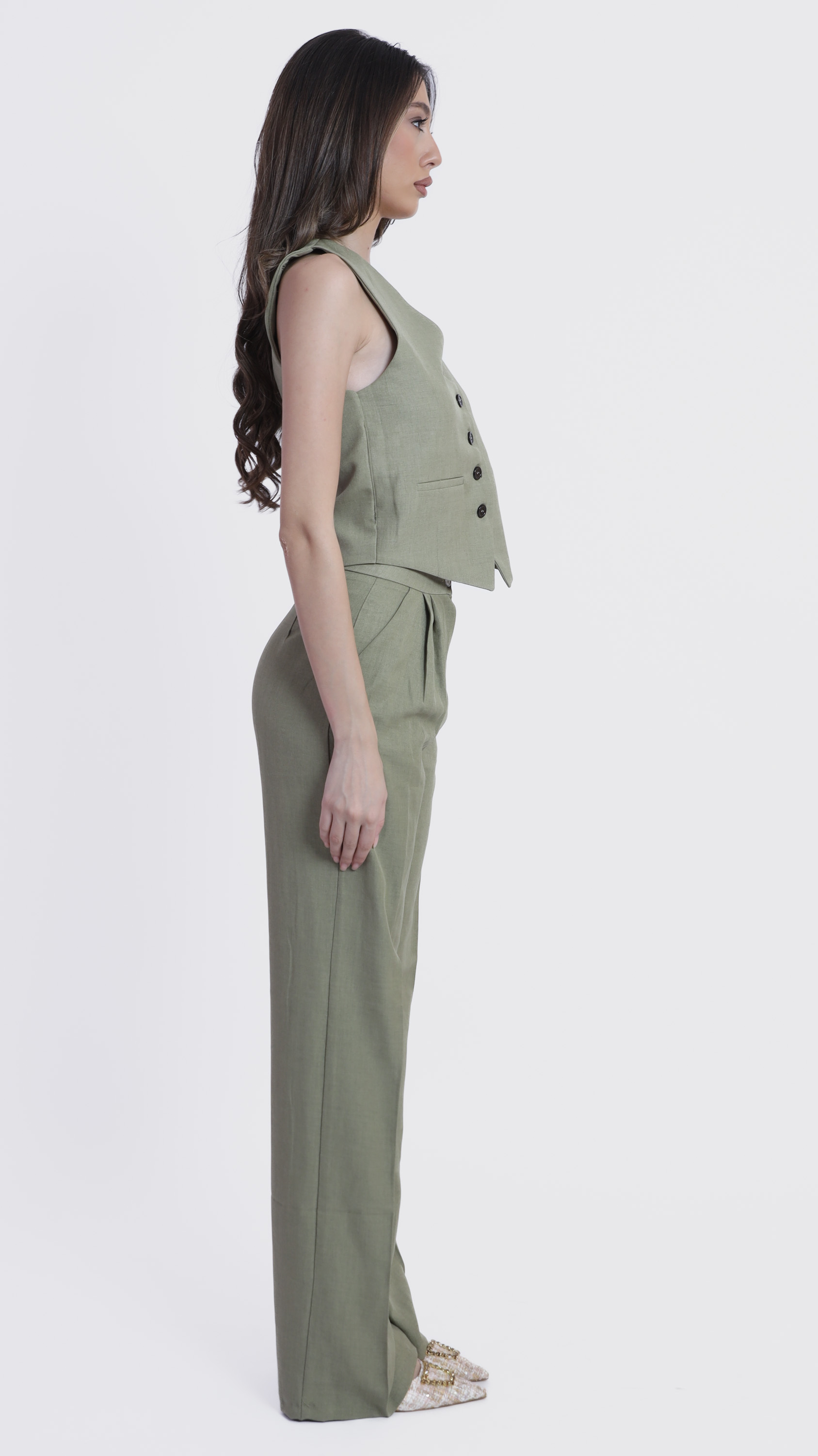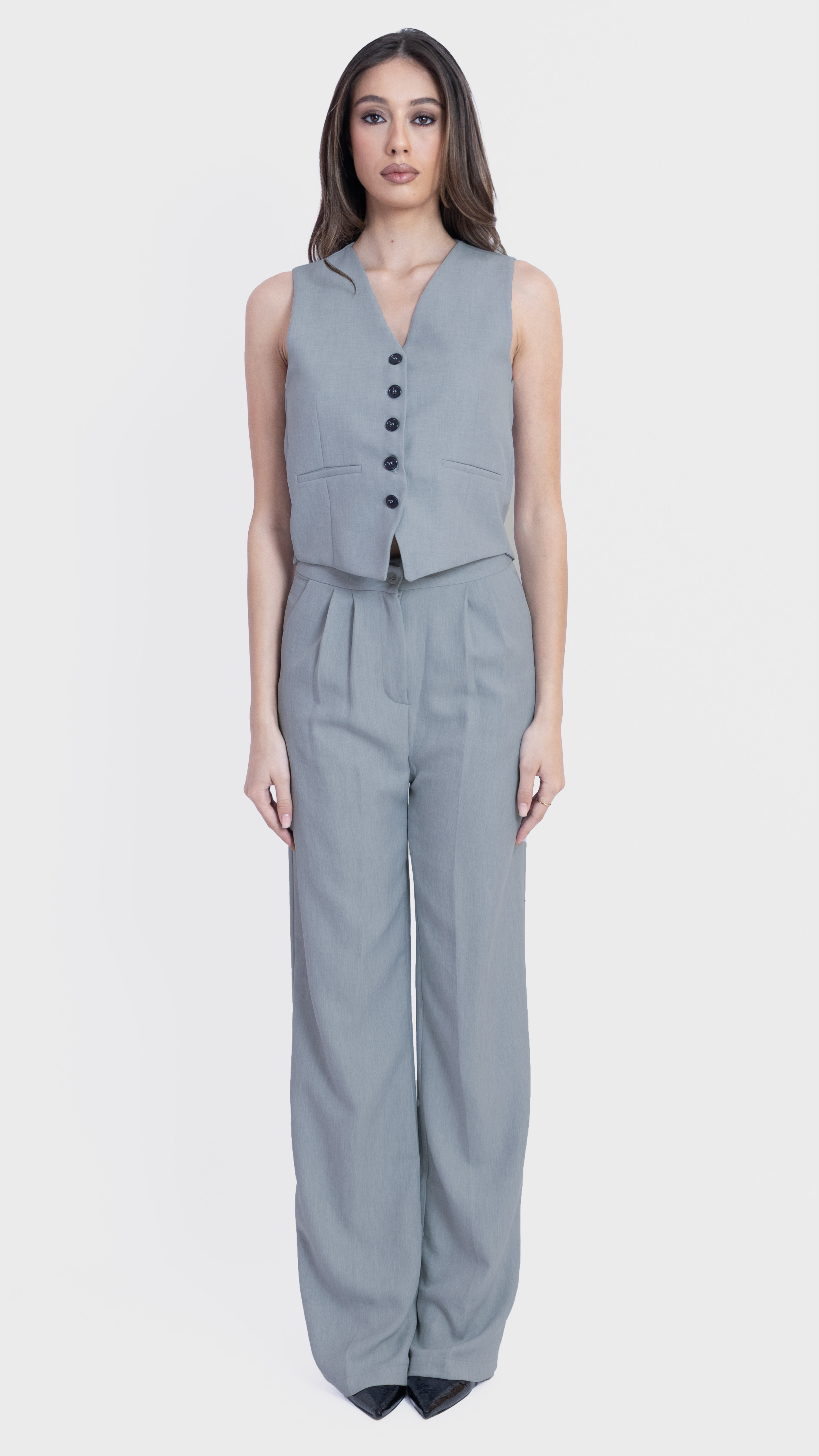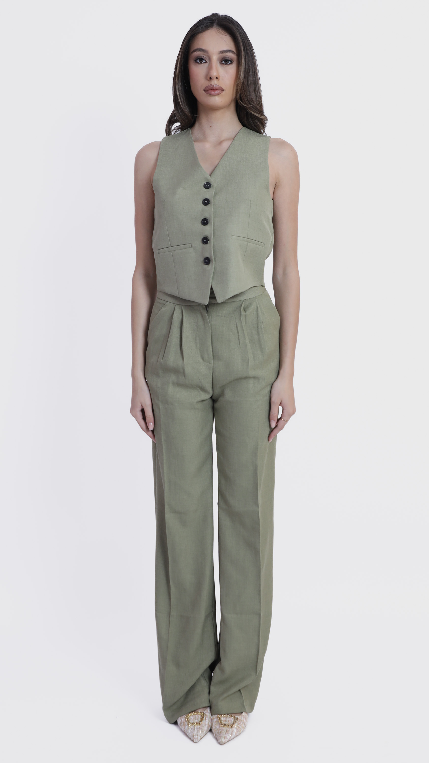Sleeveless Vest & Wide-Leg Trousers Co-Ord Set