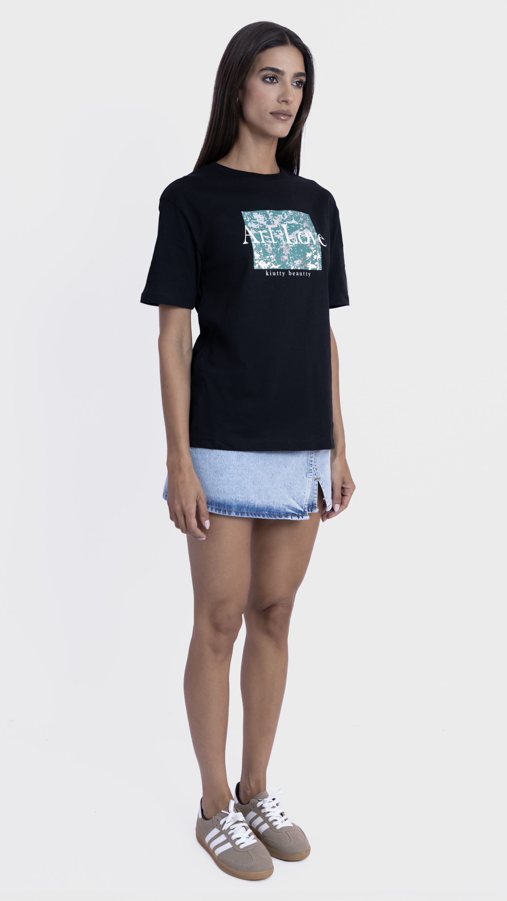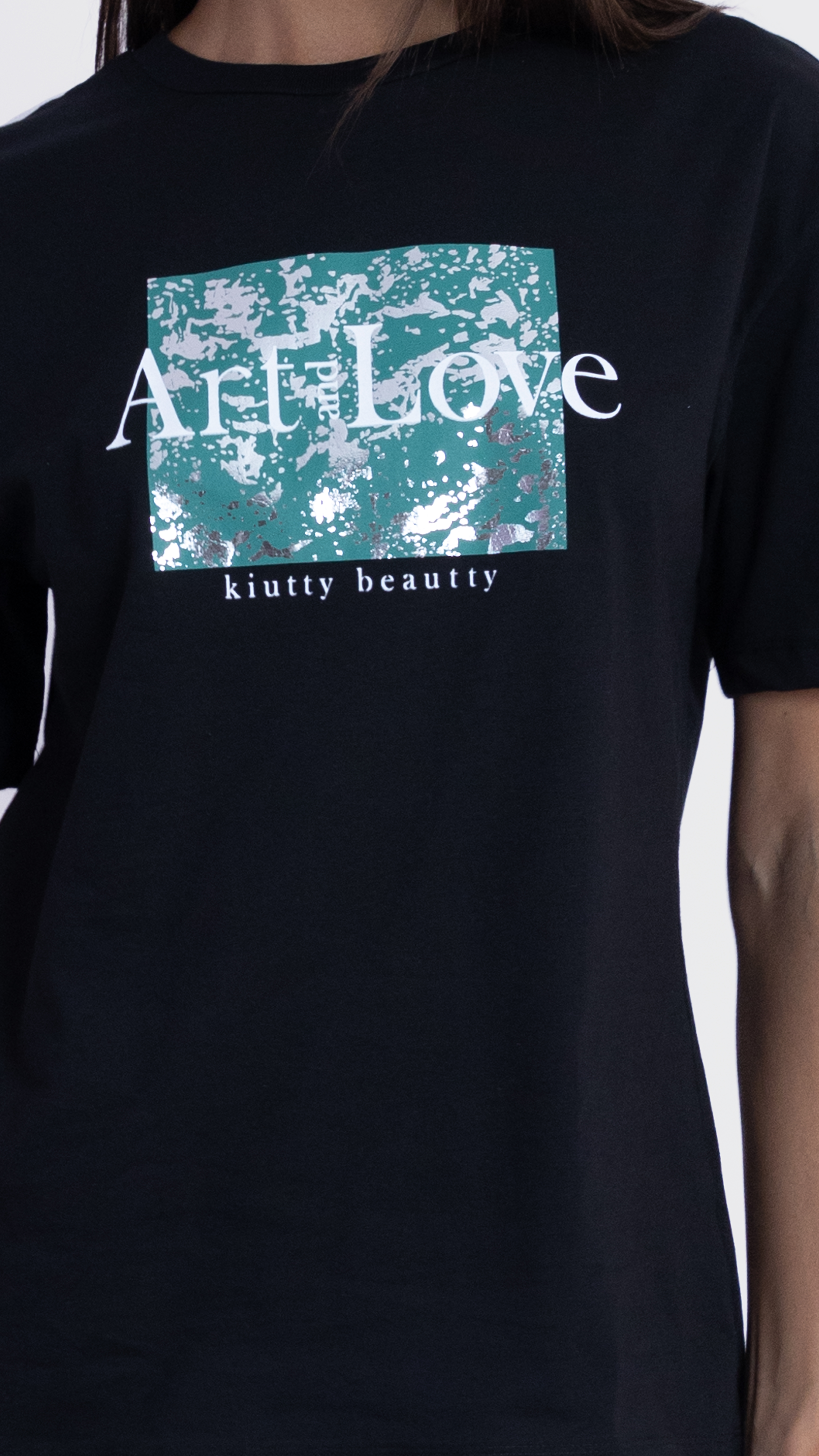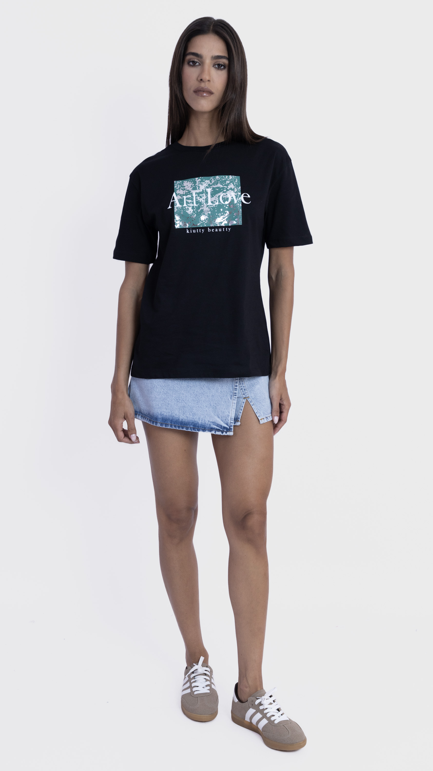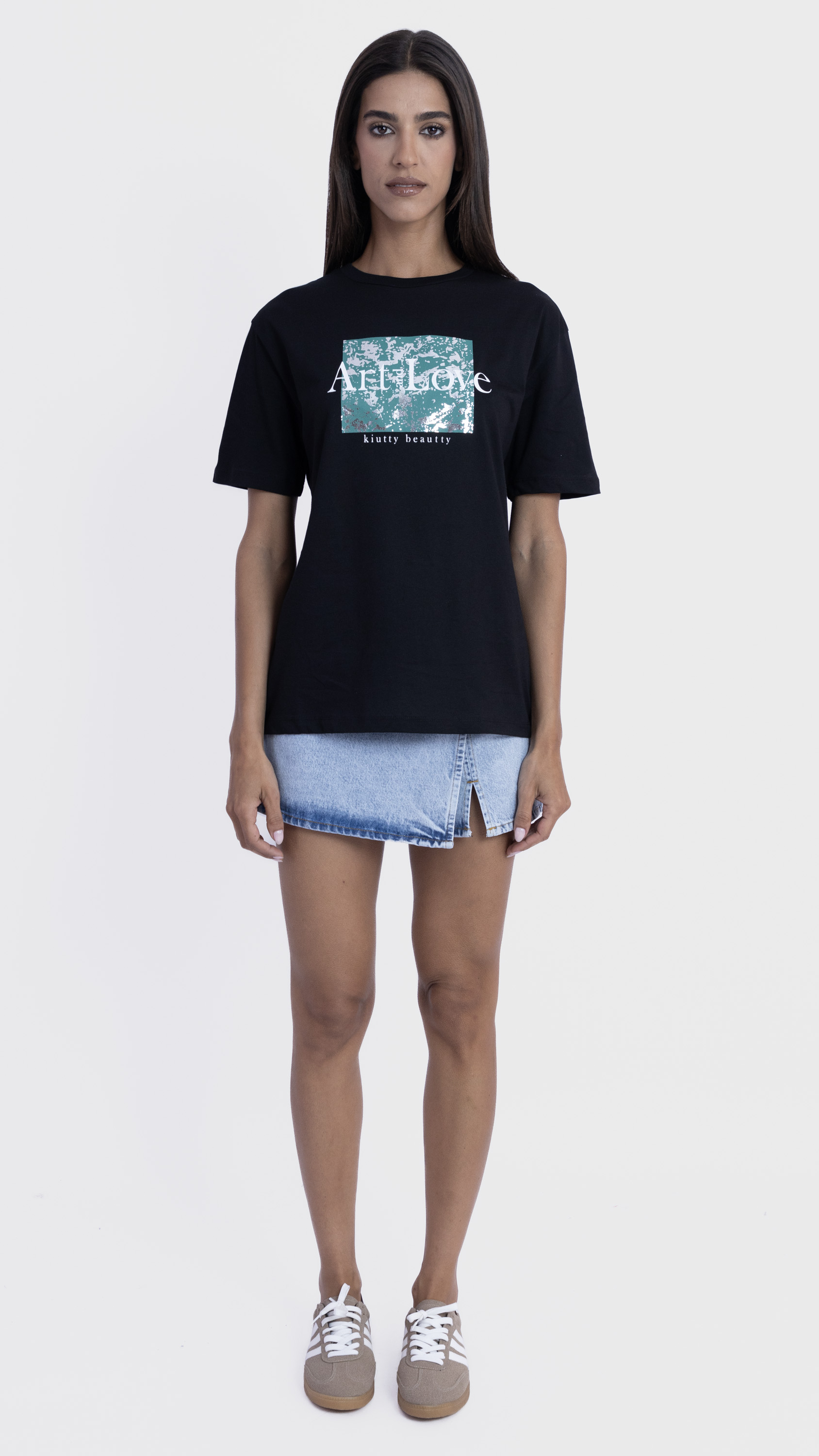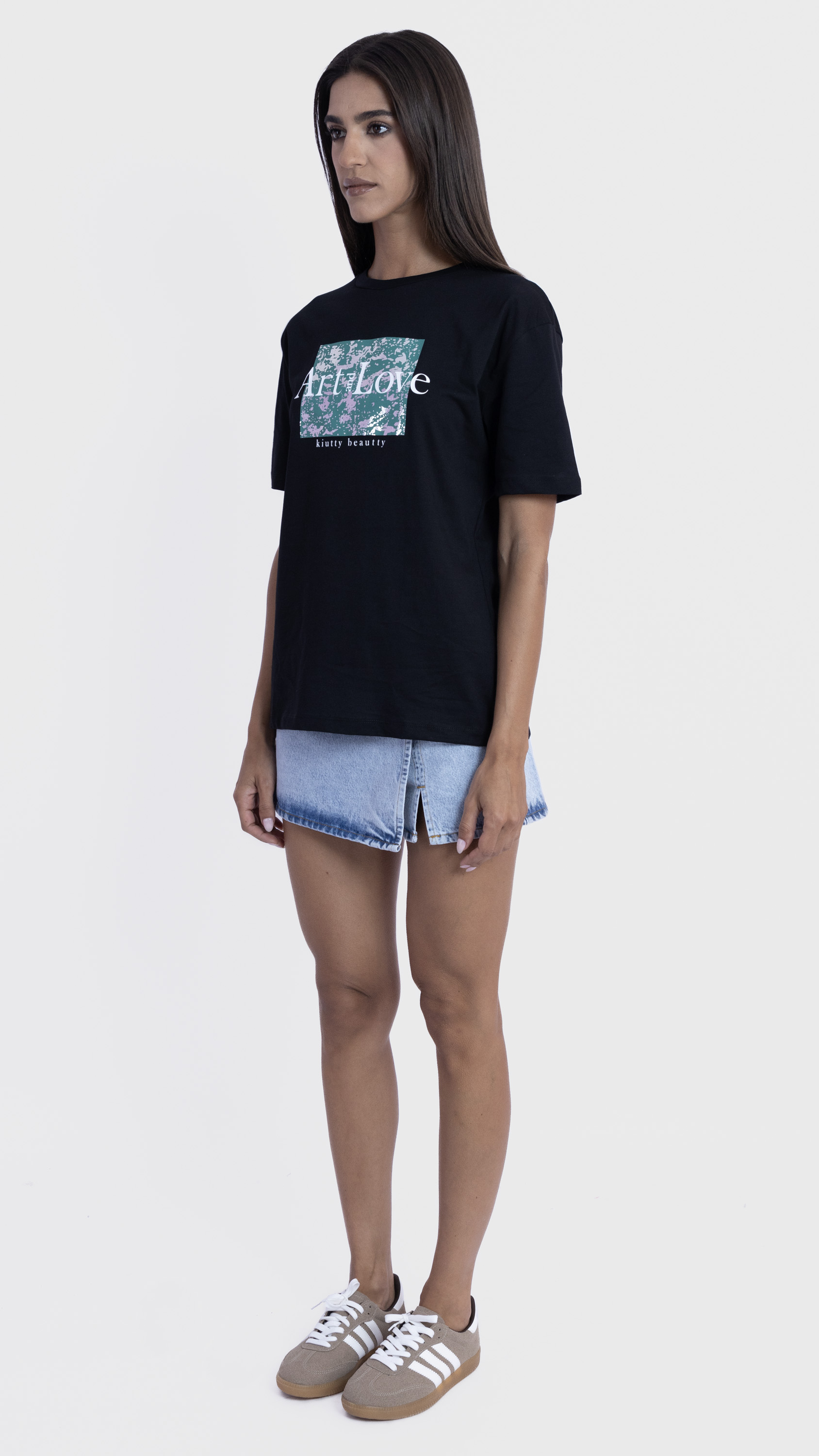 Express your creativity in this Graphic Print Tee featuring an abstract pink artwork with the bold statement “Art Love.”