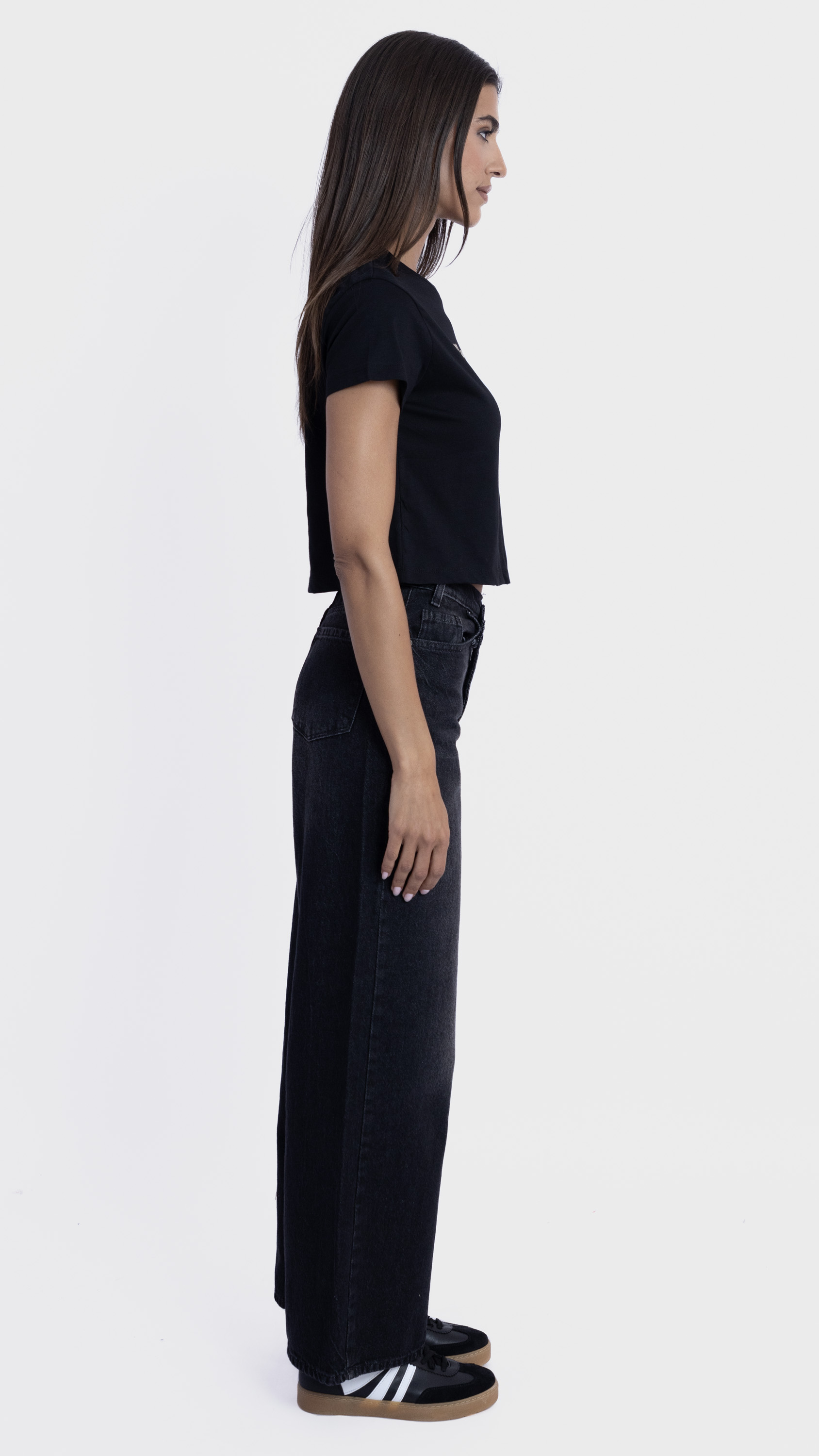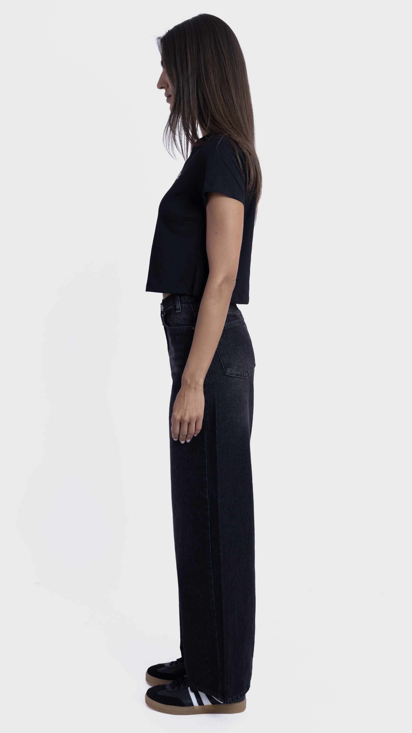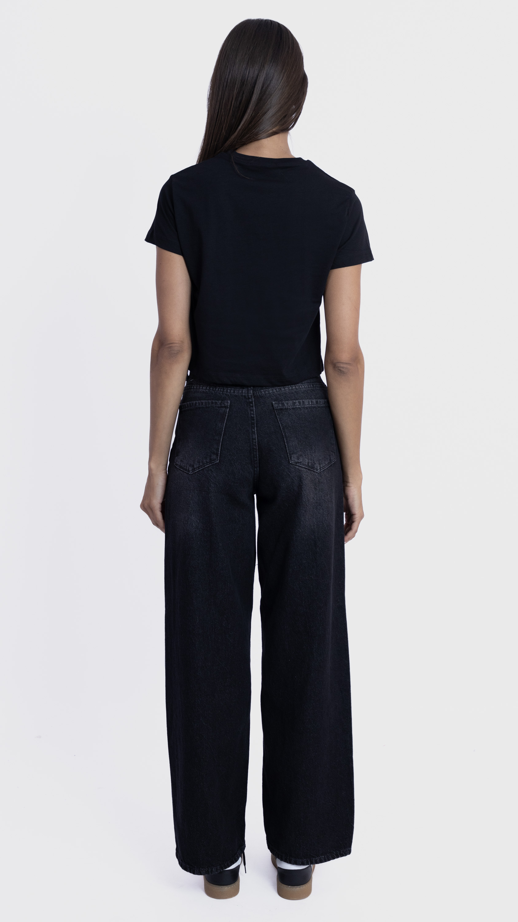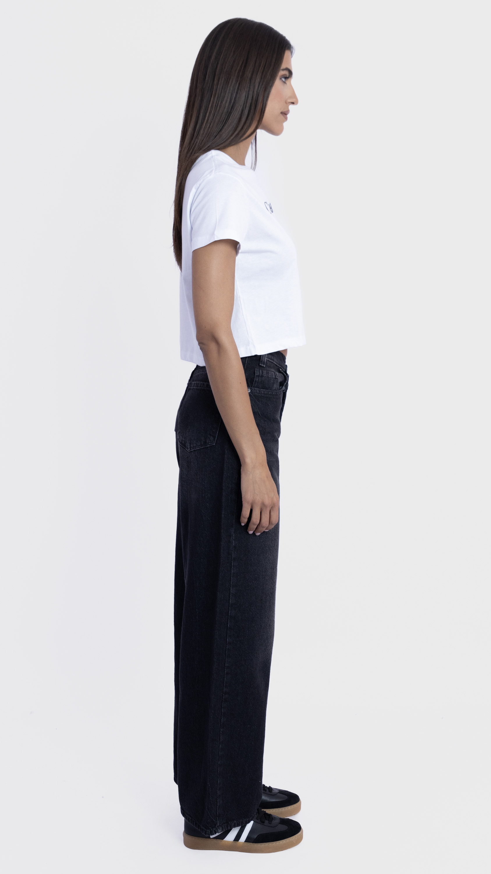Make a statement with this black cropped tee featuring the iconic “C’est la vie.” slogan — a sleek and modern essential for your casual collection.