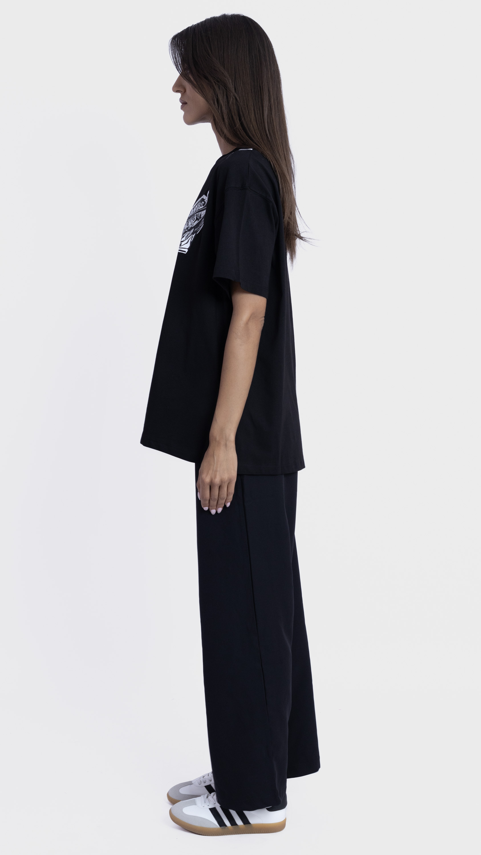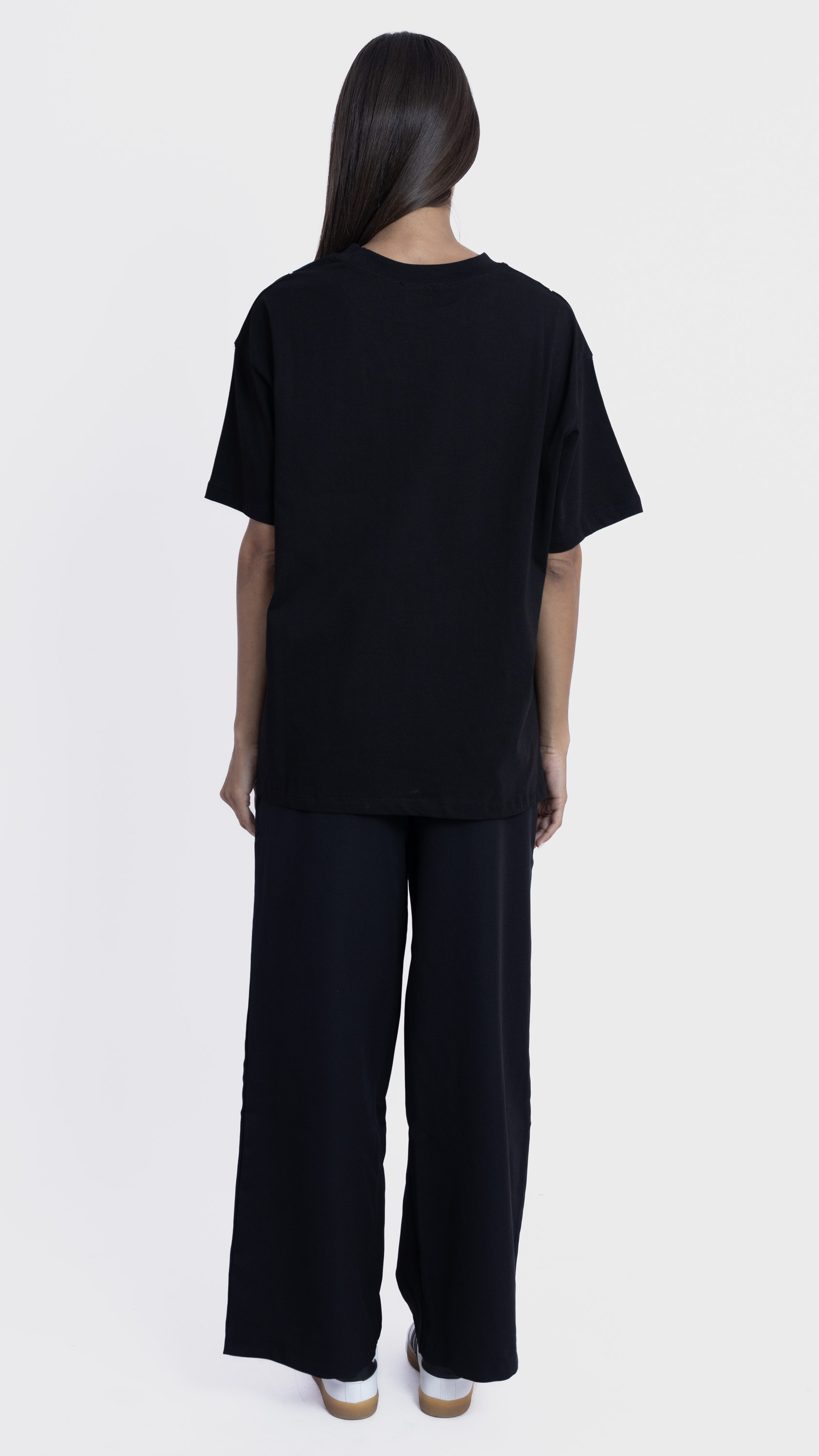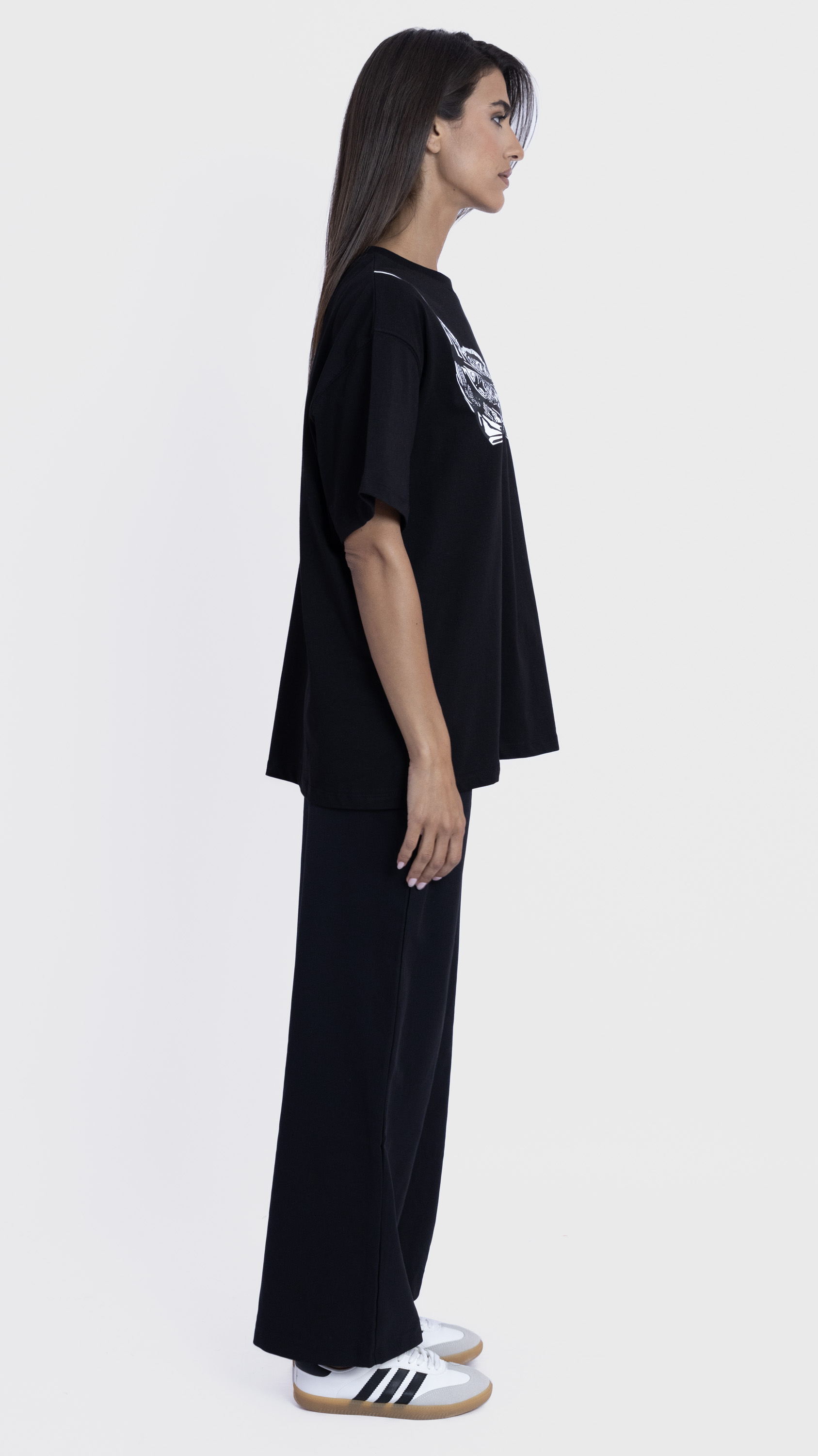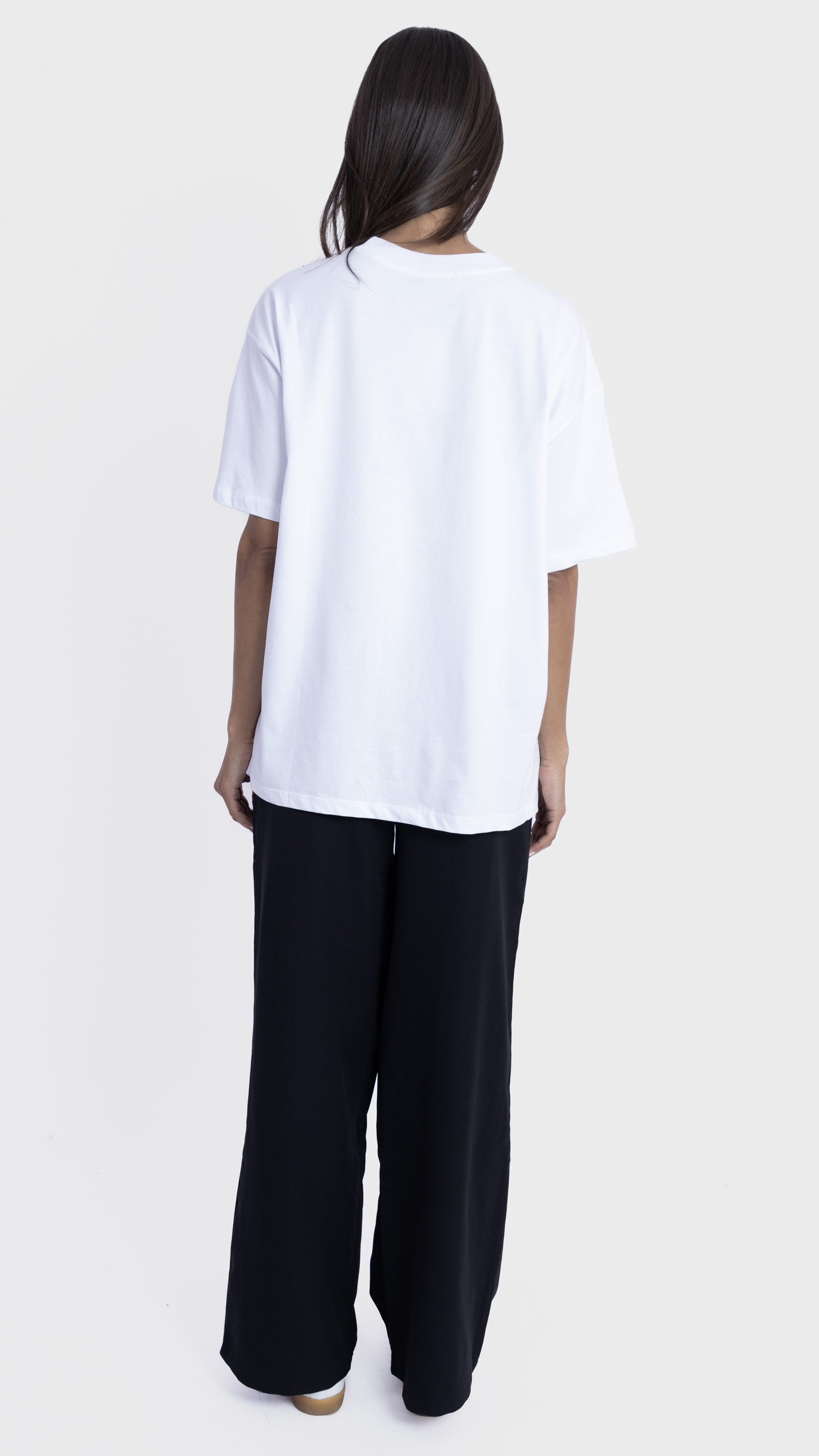 Bold and fashion-forward, this oversized white tee features a playful front print that mimics the outline of a detailed bra. The black graphic creates a trompe-l’œil effect, adding a touch of cheeky attitude to a relaxed, streetwear-inspired silhouette. Made from soft, breathable cotton, this statement piece is perfect for trendsetters who love to stand out with confidence and humor.