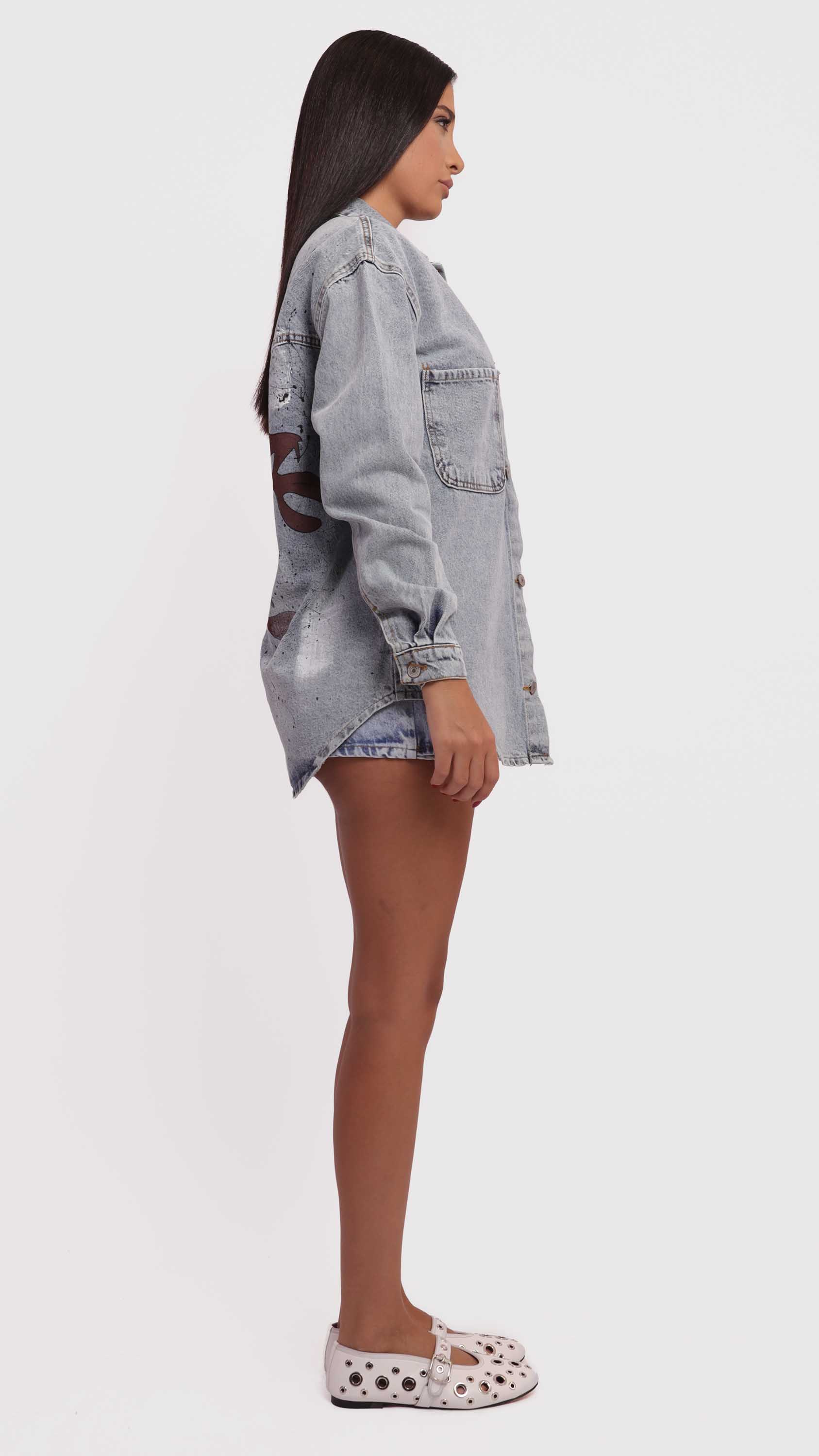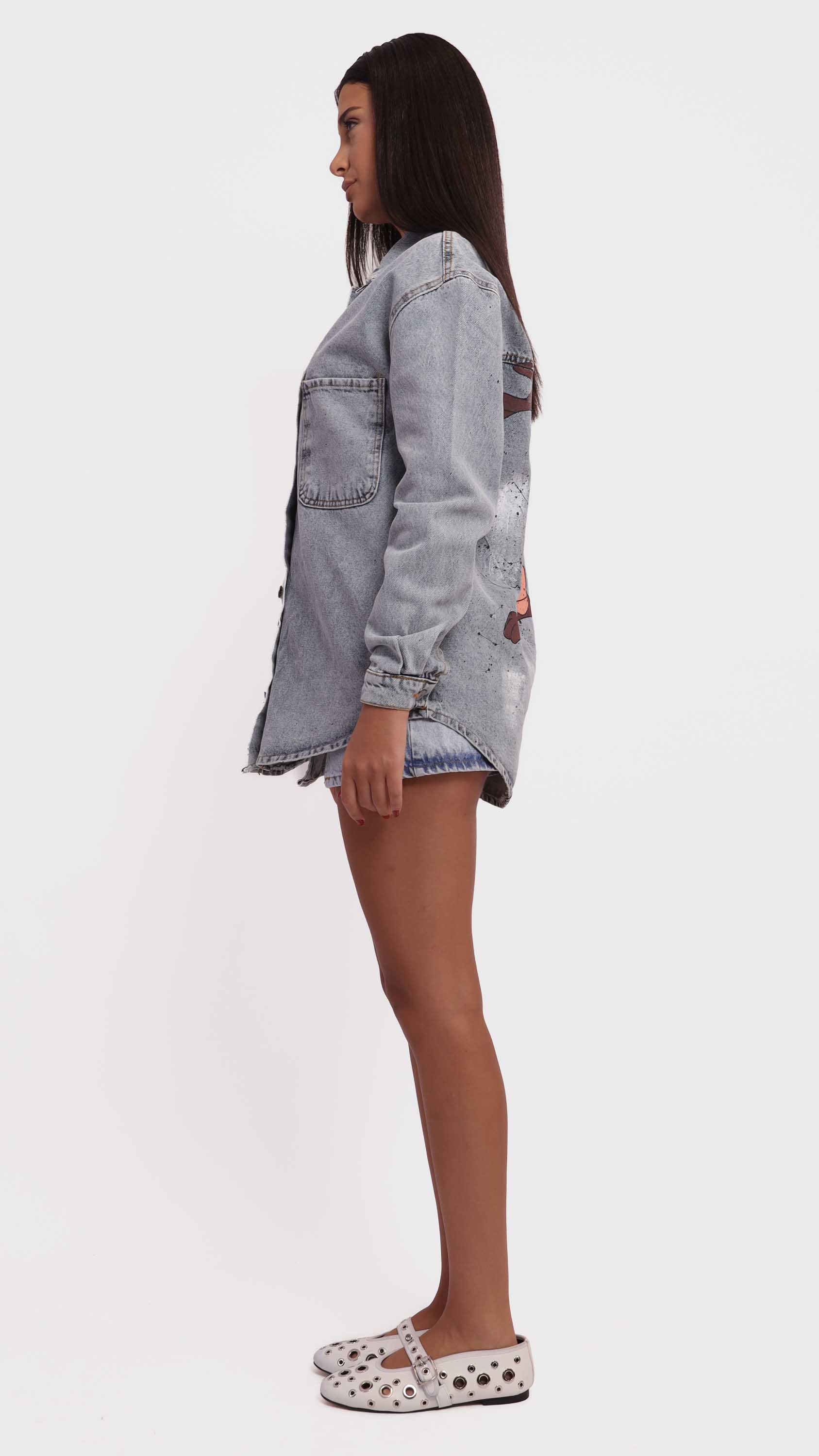 Channel cartoon nostalgia with this oversized denim jacket, showcasing a bold Taz graphic on the back. Designed in a light blue wash with a distressed paint-splatter effect, it blends playful character with urban edge for standout streetwear style.