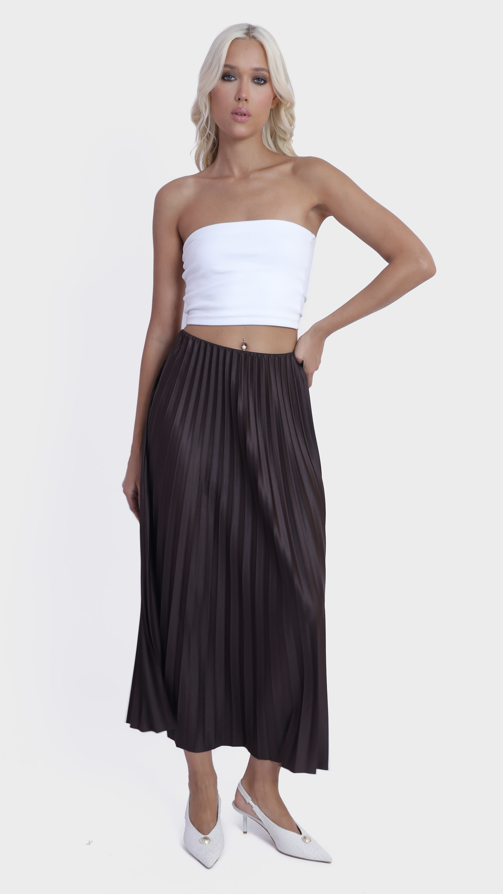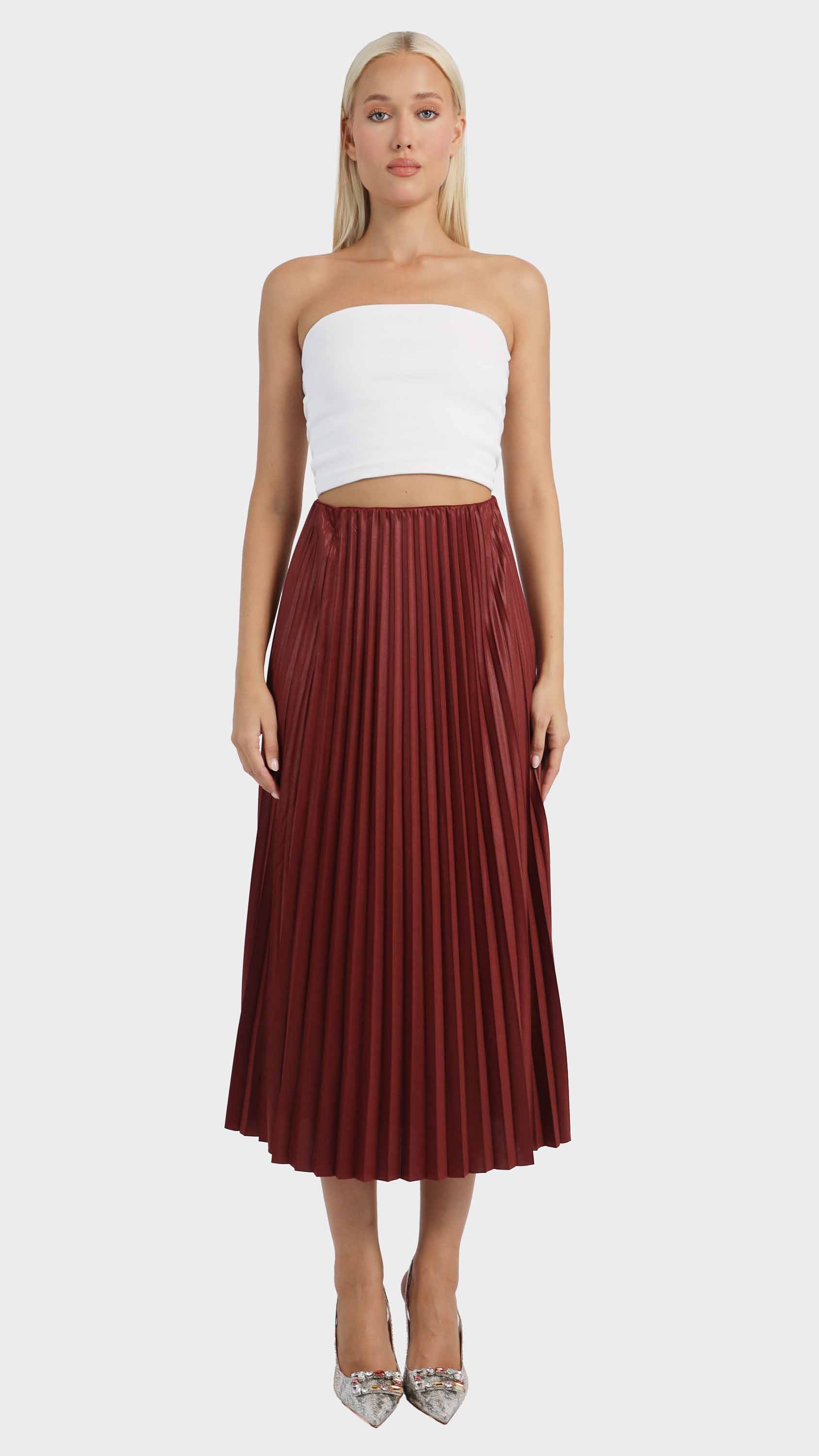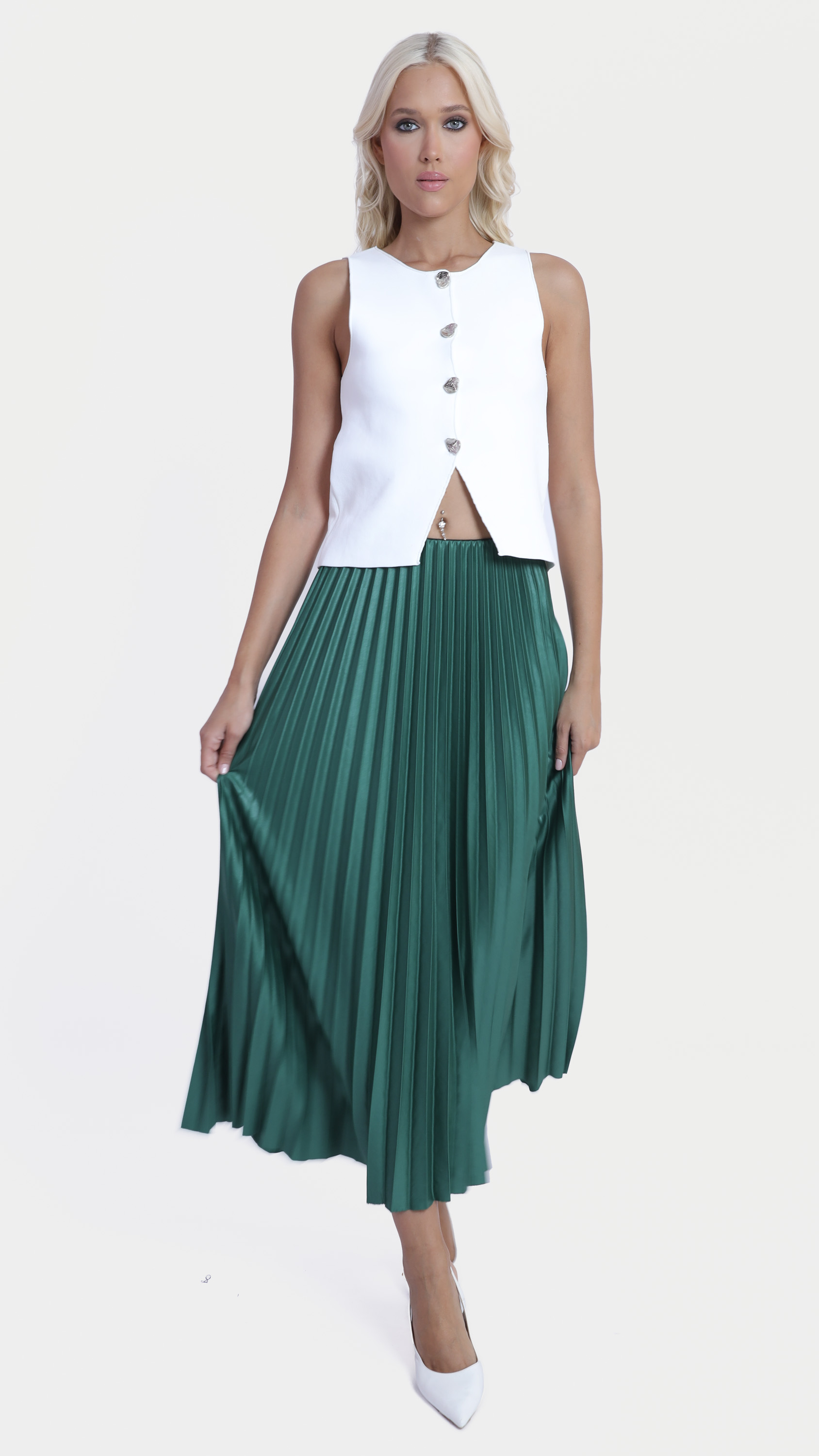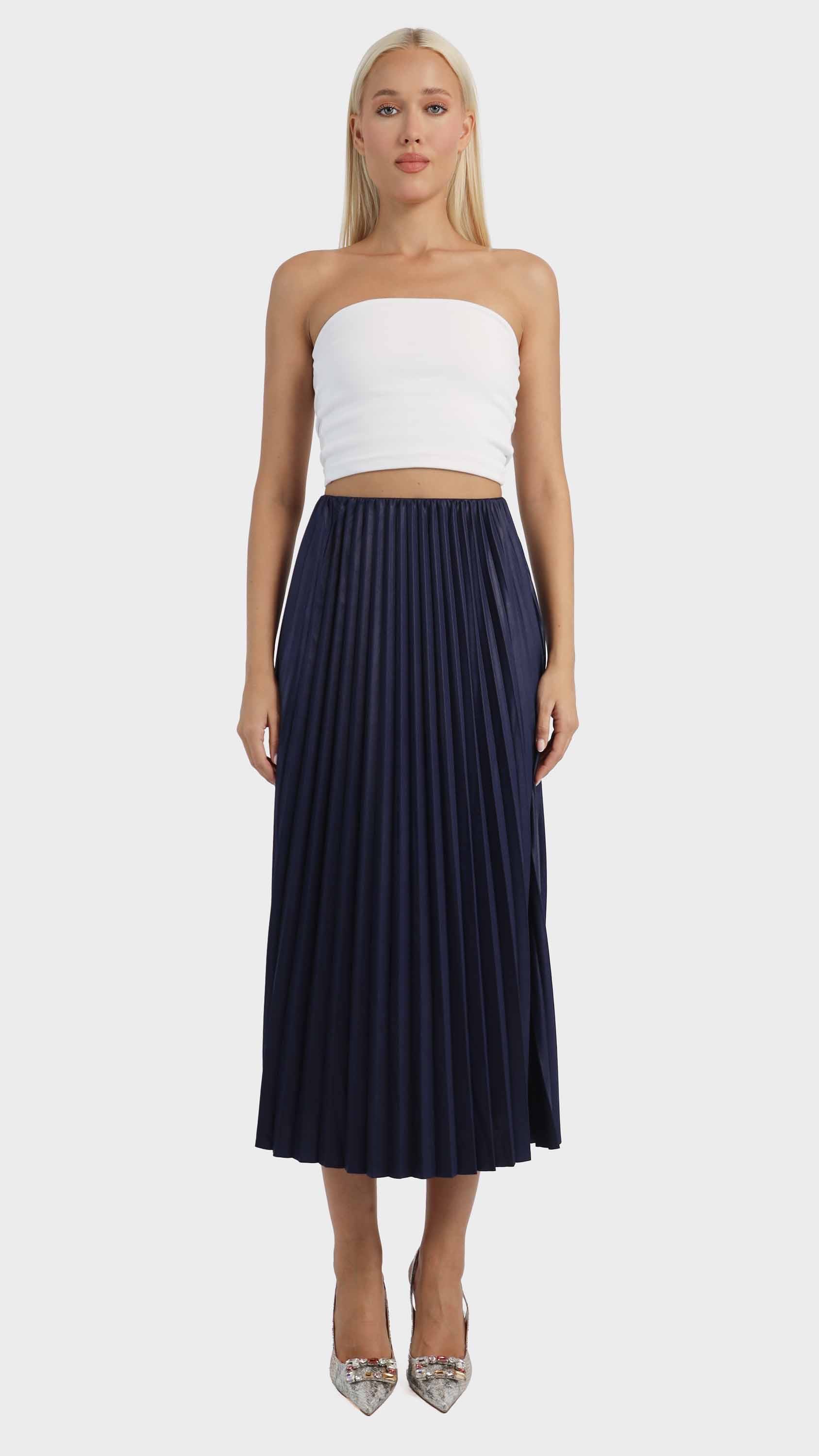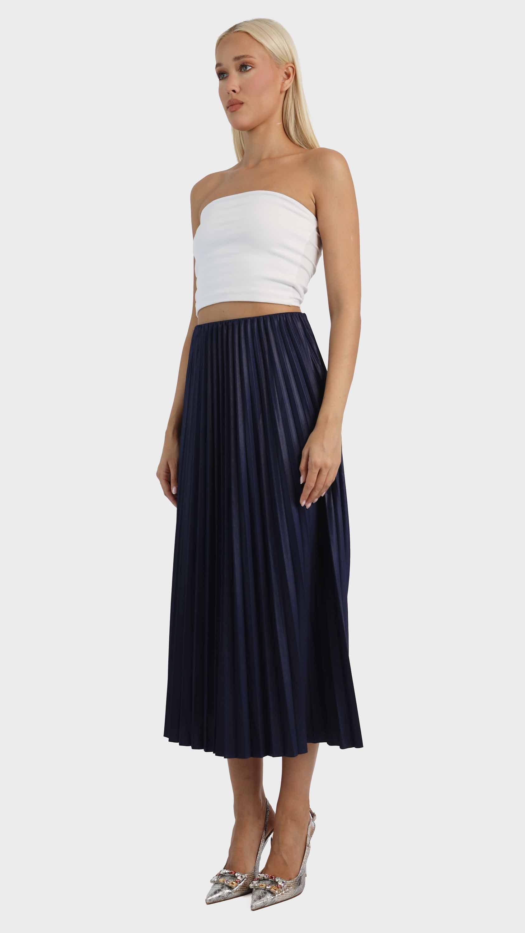 Add timeless elegance to your wardrobe with this pleated midi skirt.