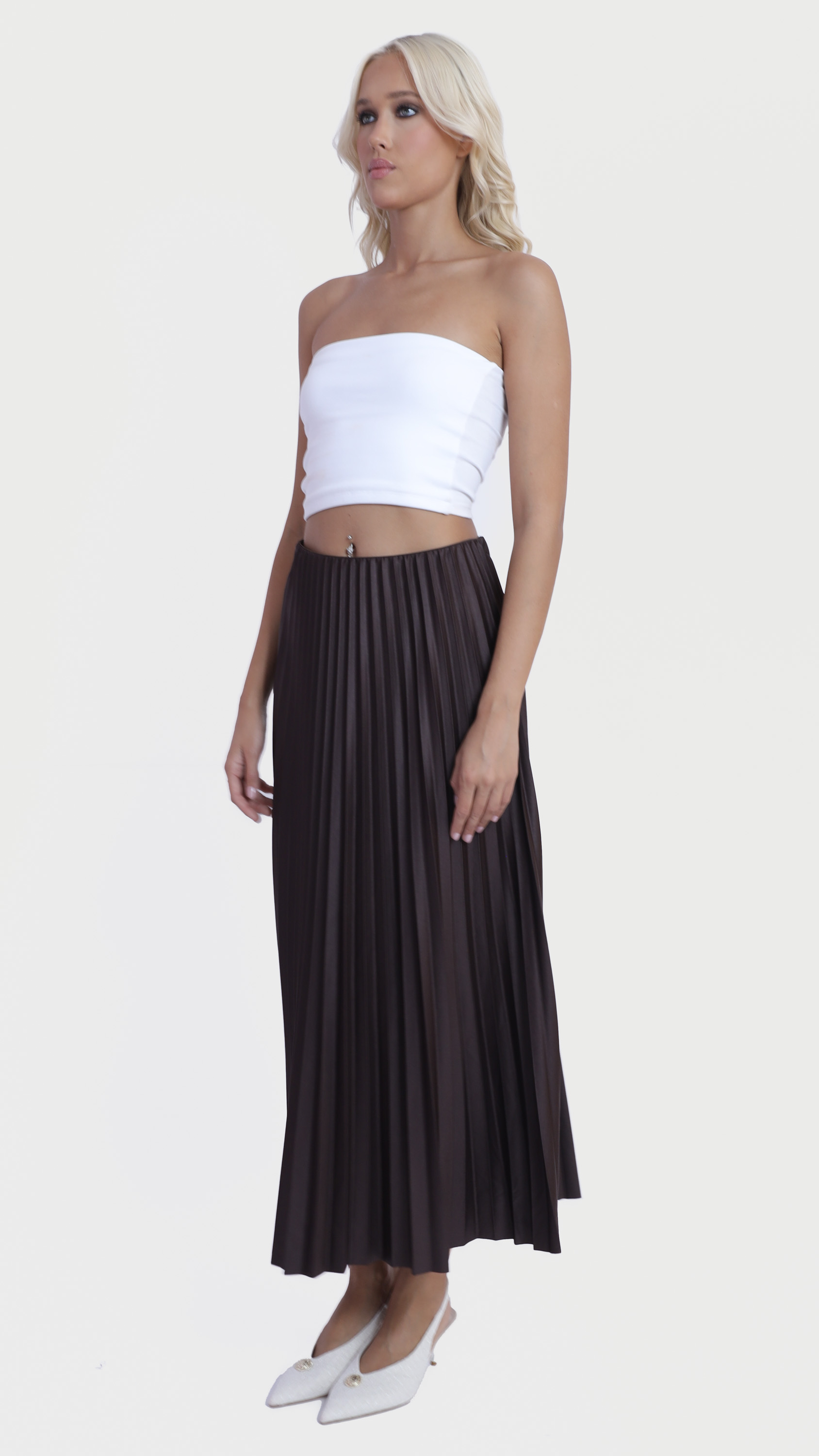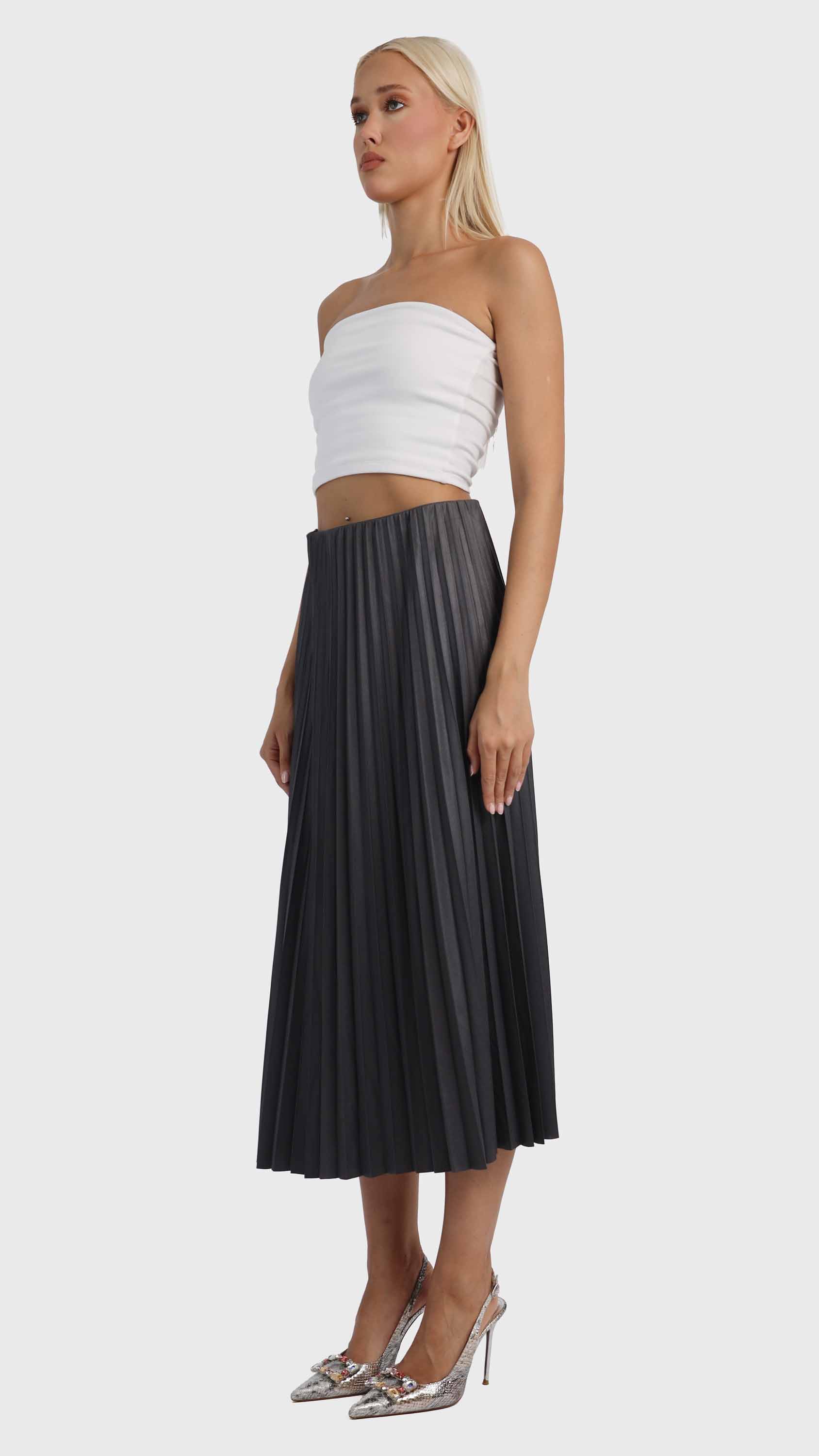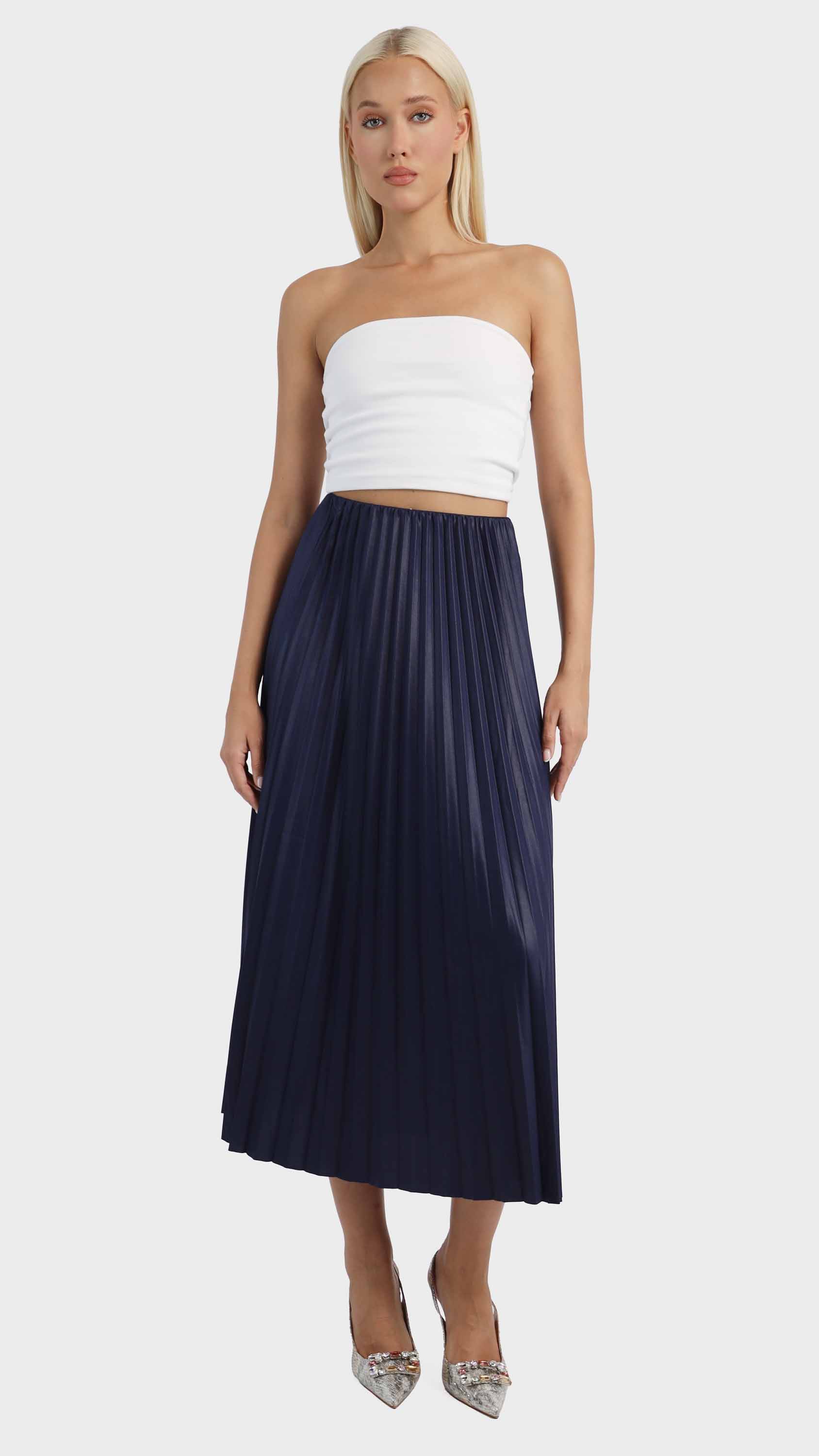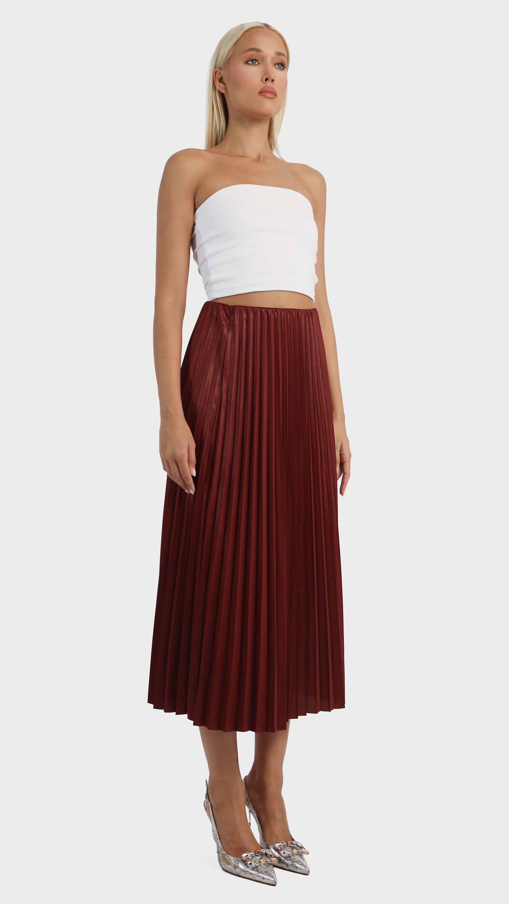 Add timeless elegance to your wardrobe with this pleated midi skirt.