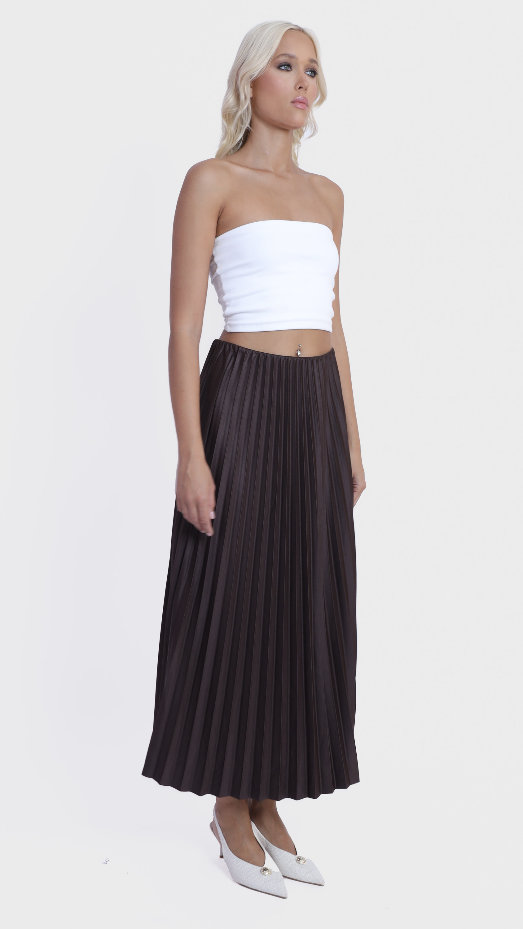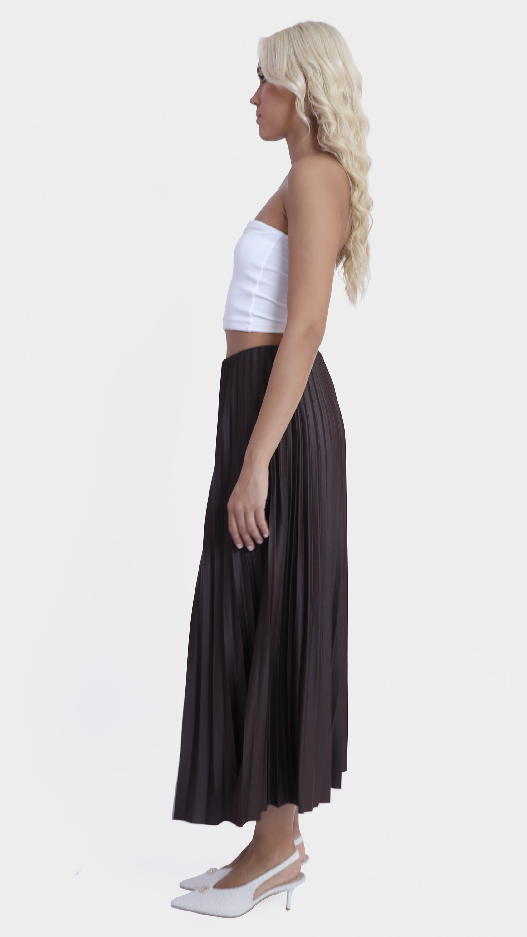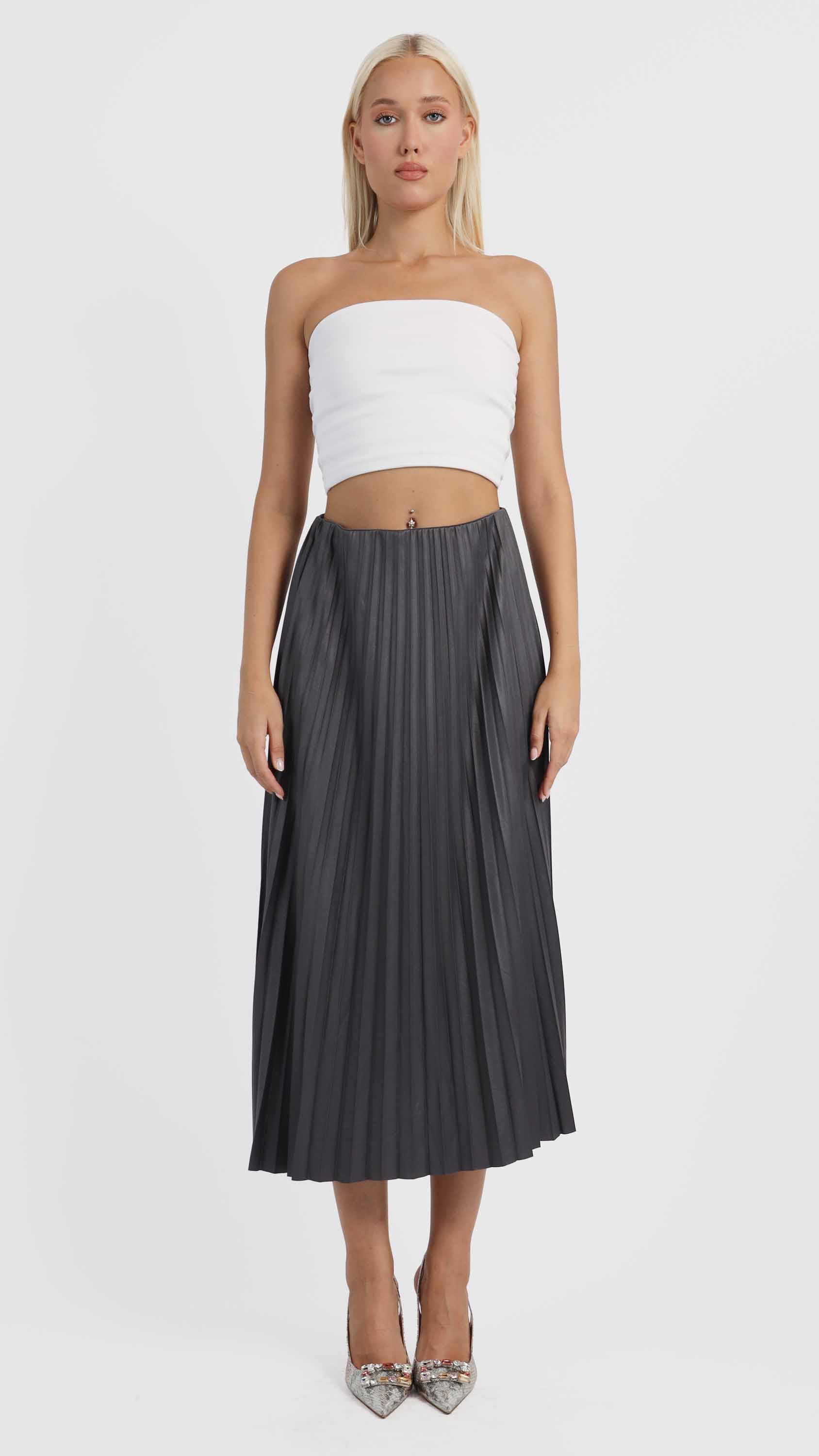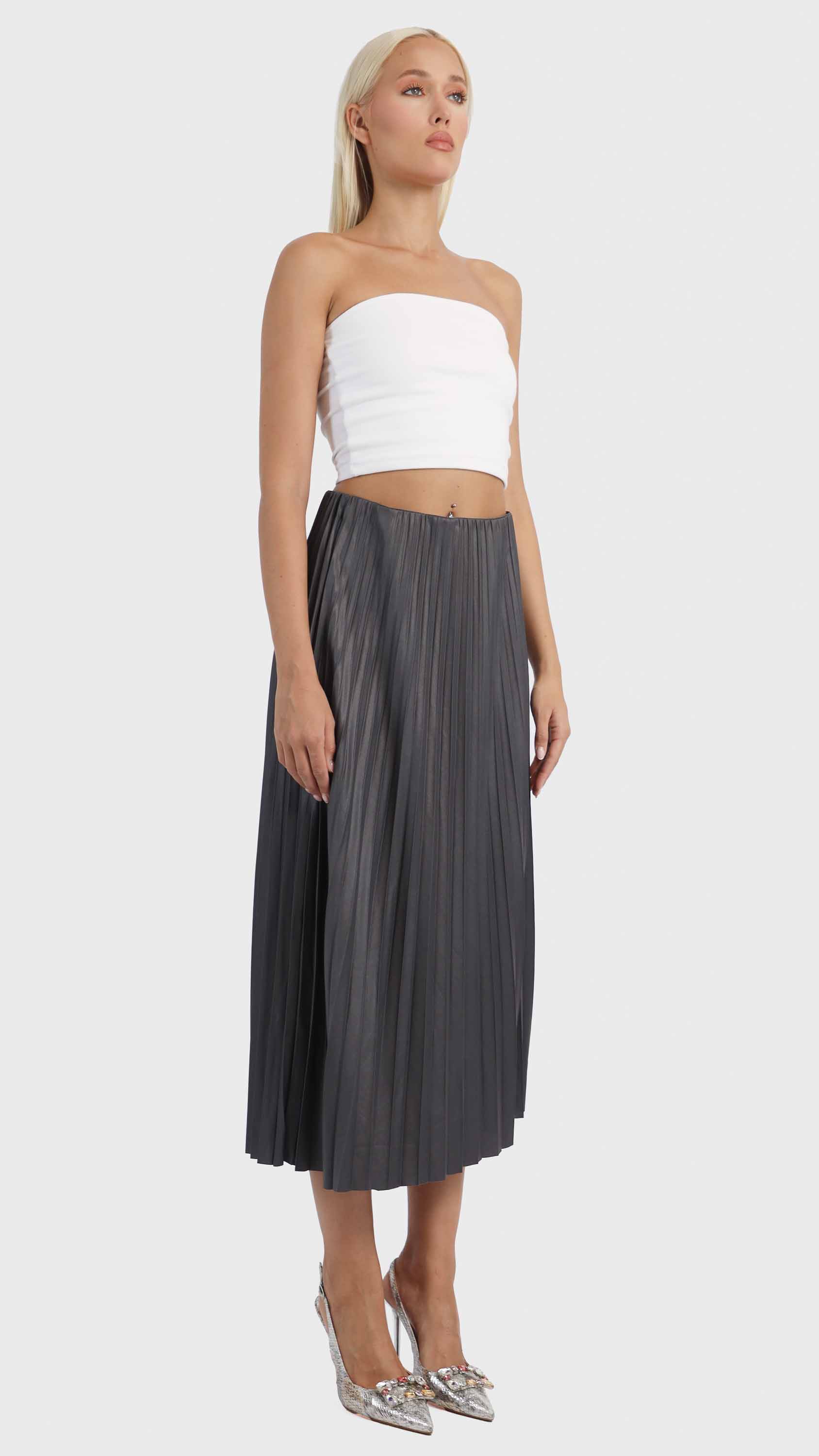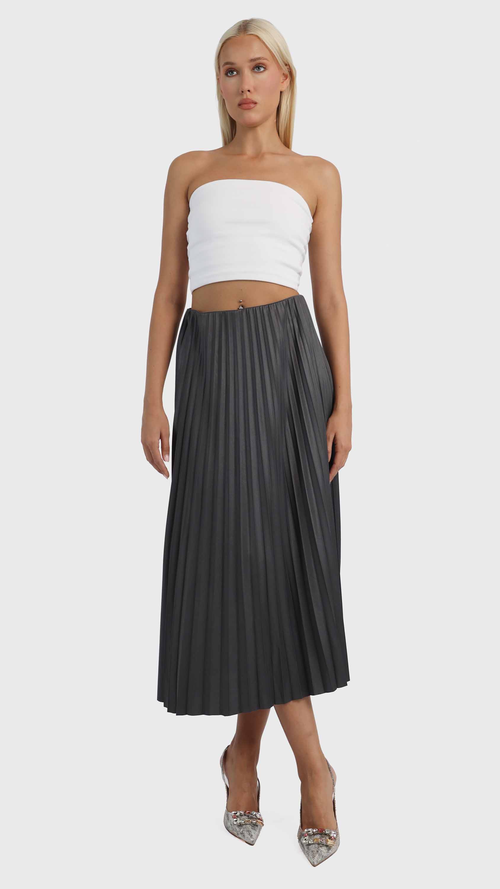 Add timeless elegance to your wardrobe with this pleated midi skirt.