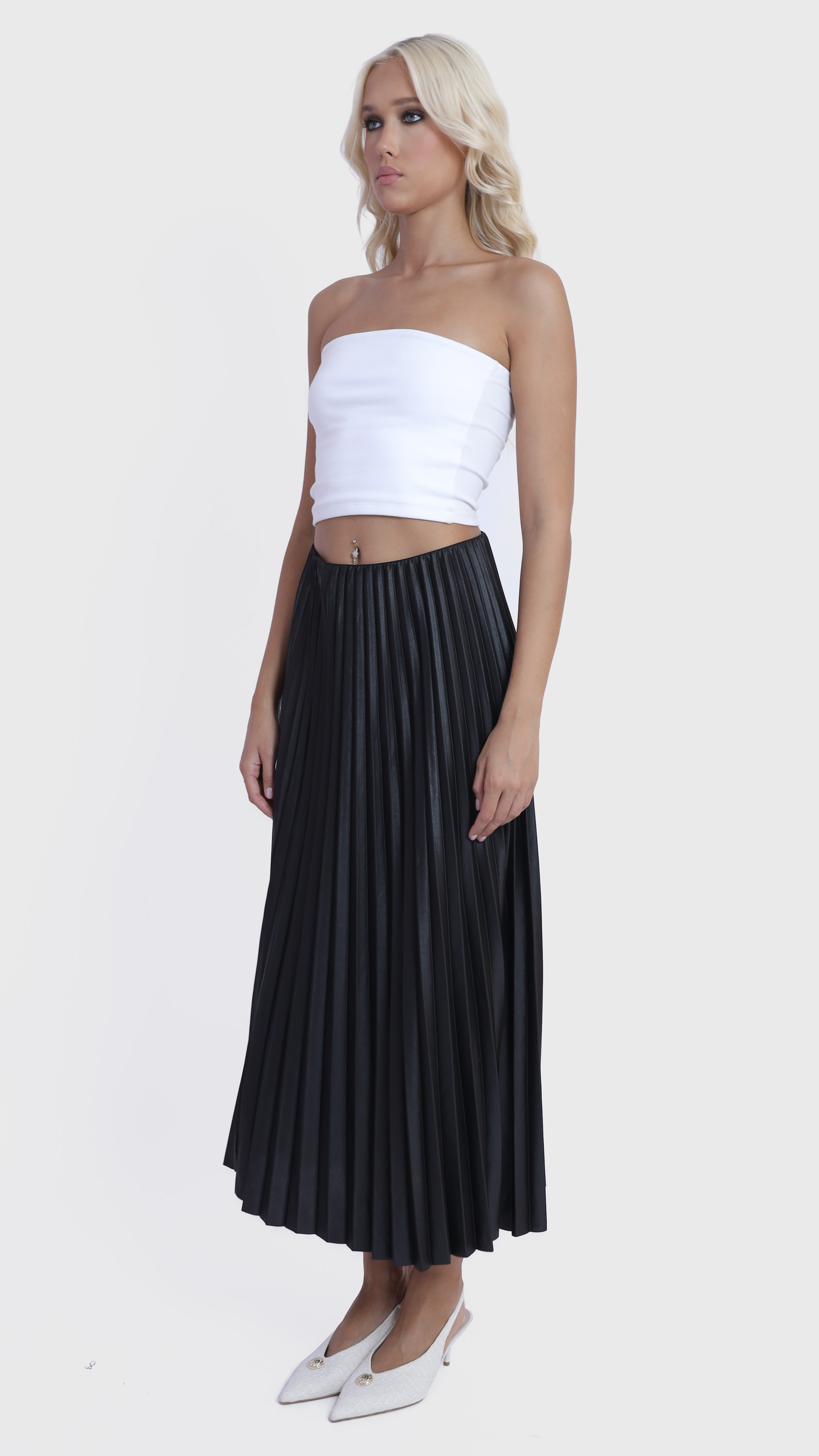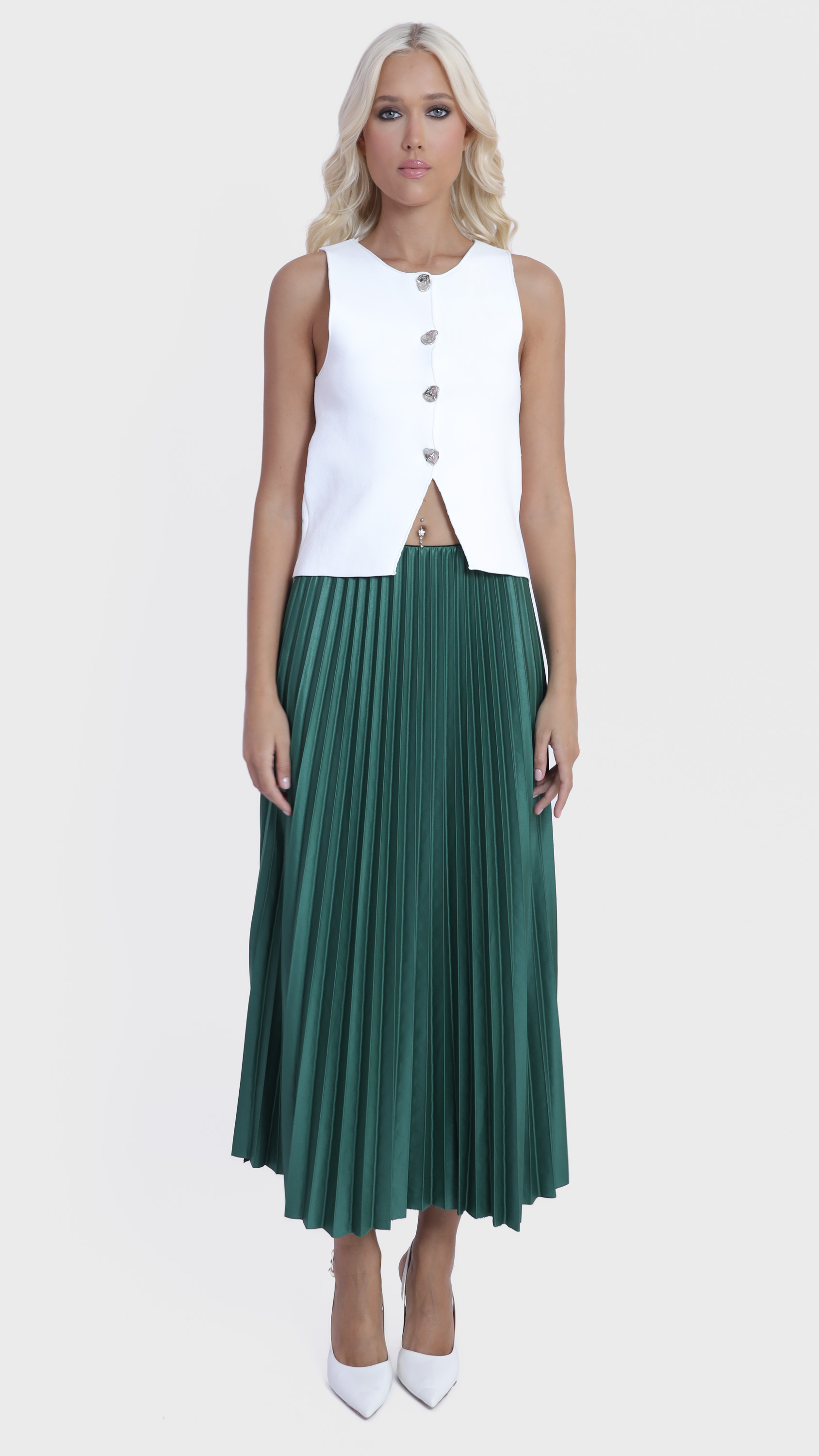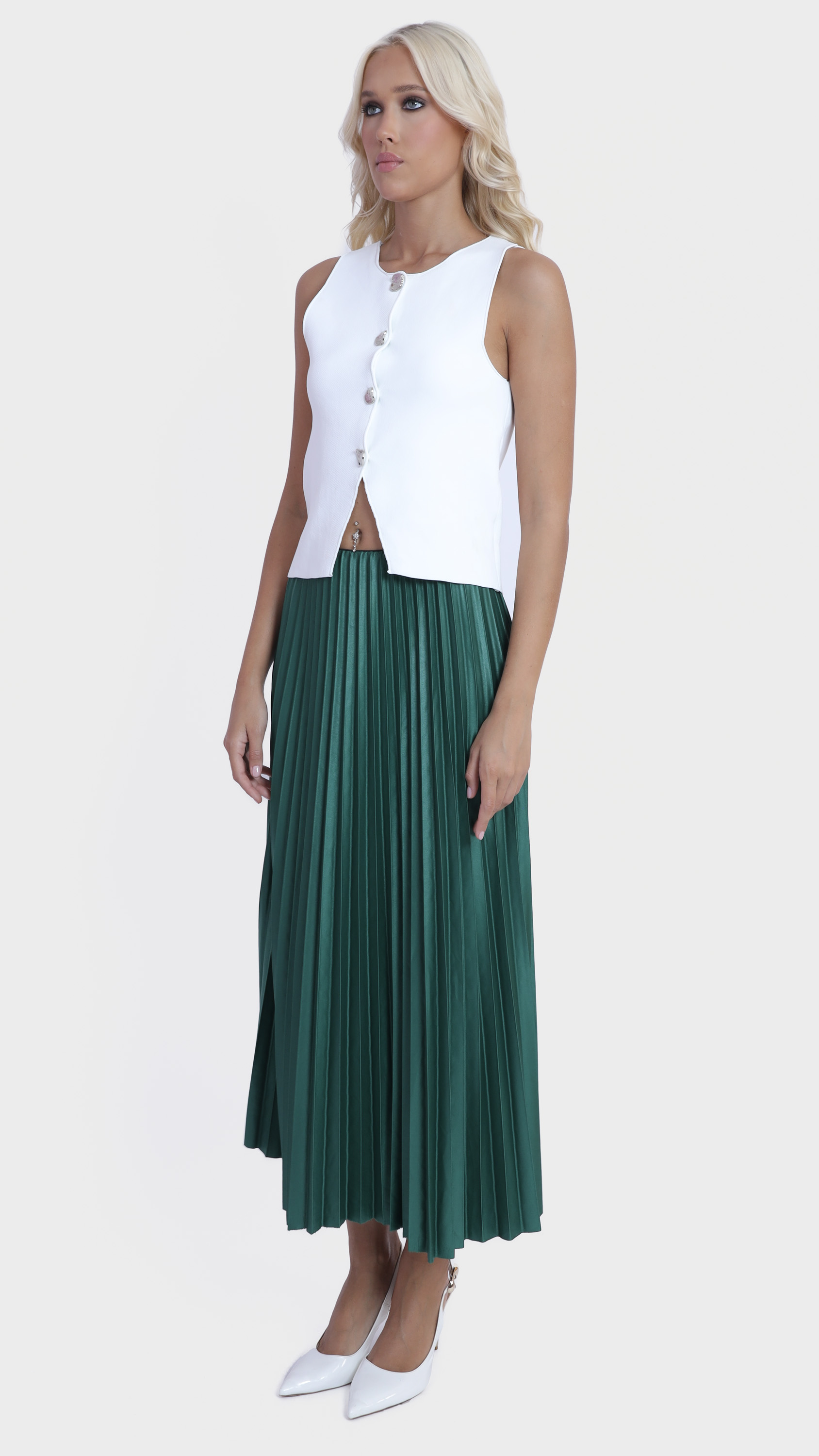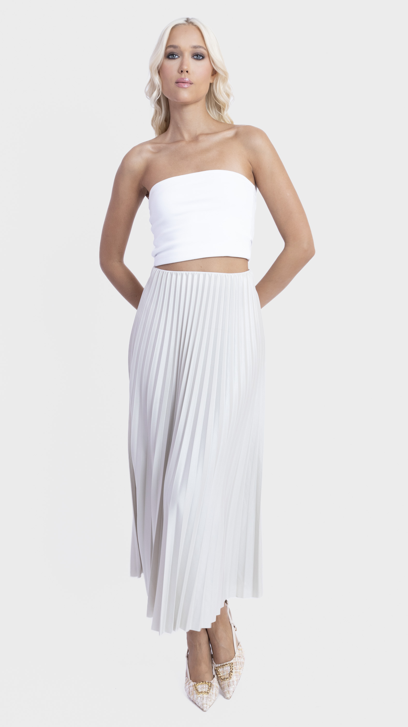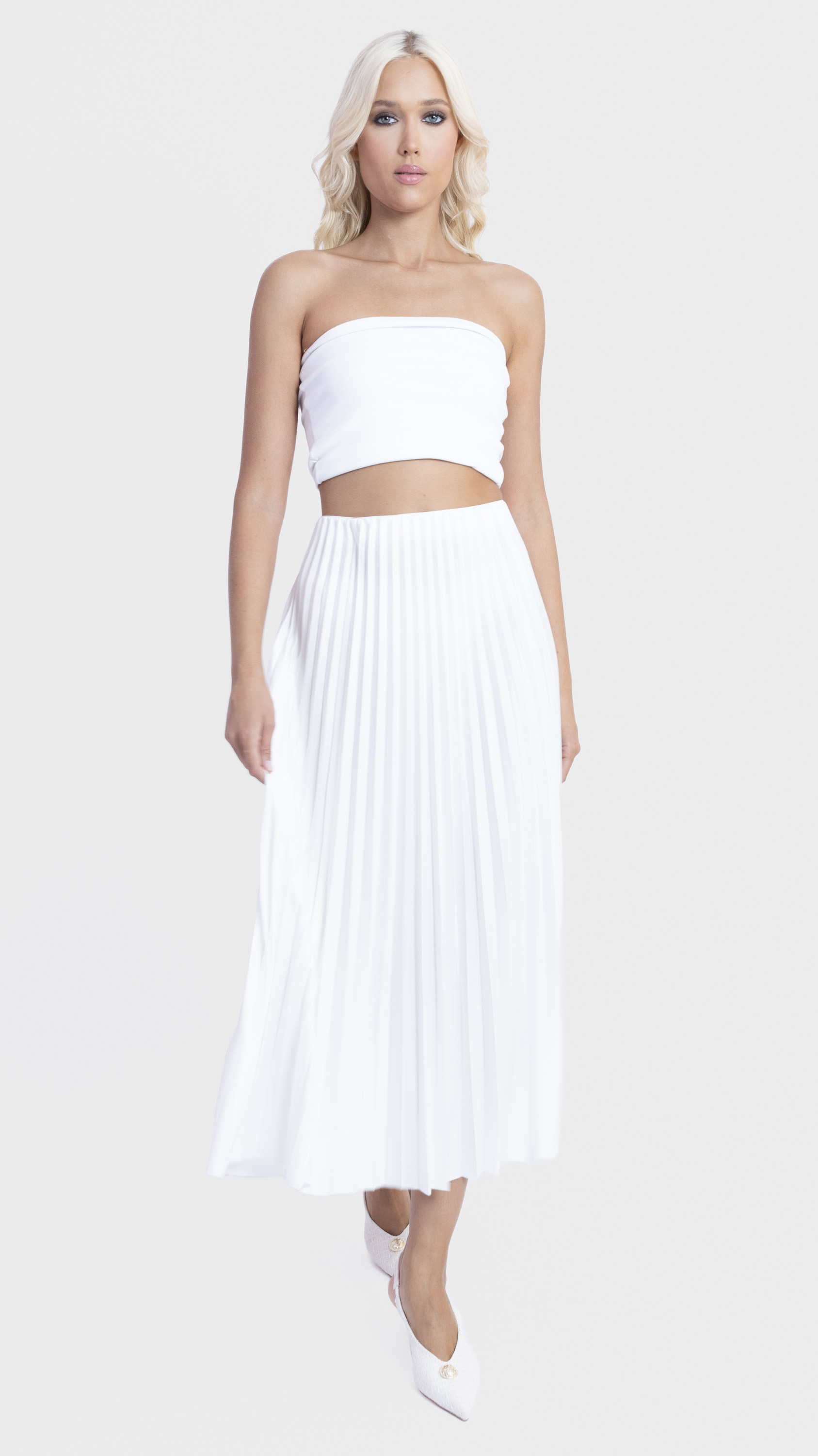 Add timeless elegance to your wardrobe with this pleated midi skirt.