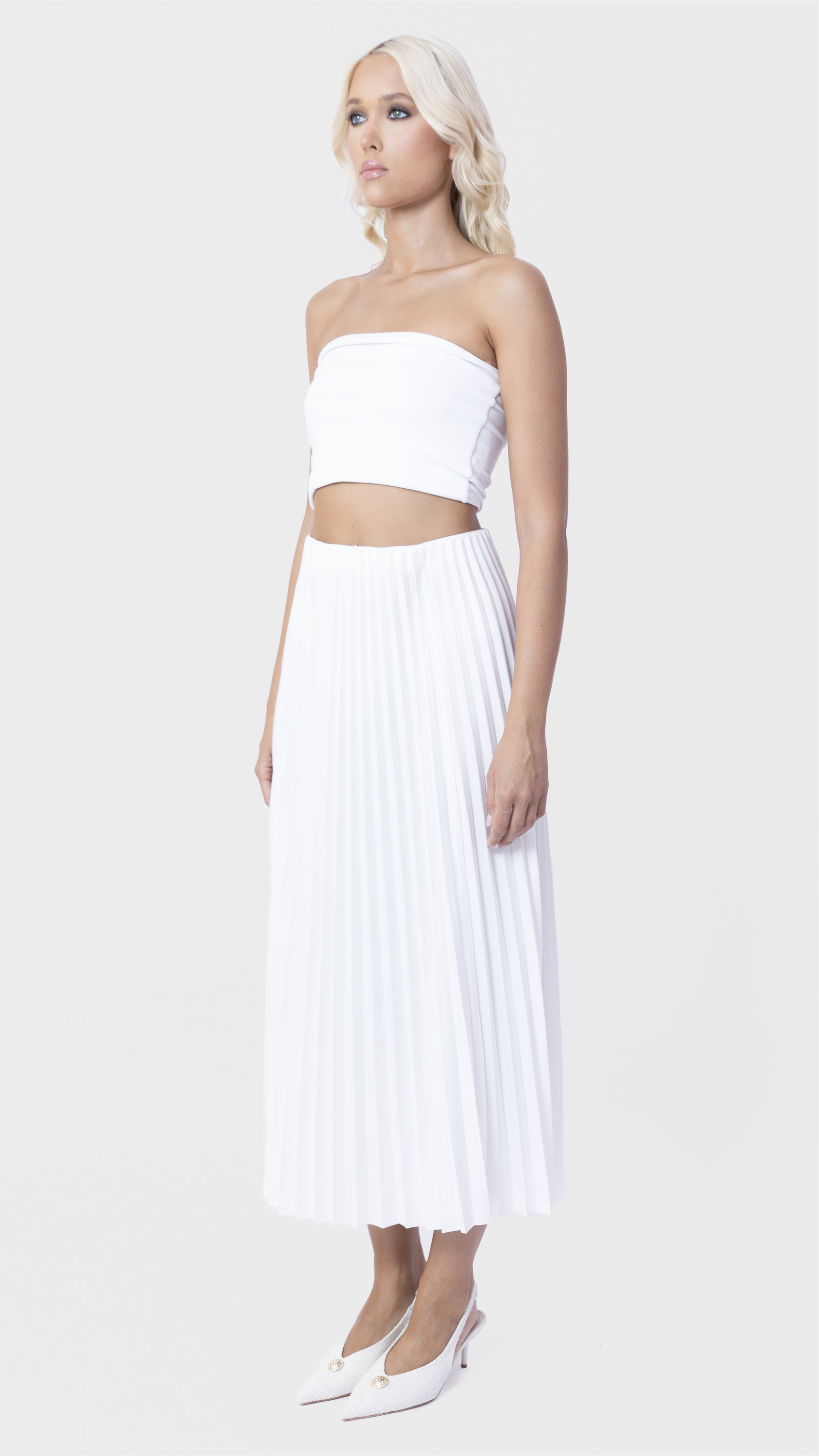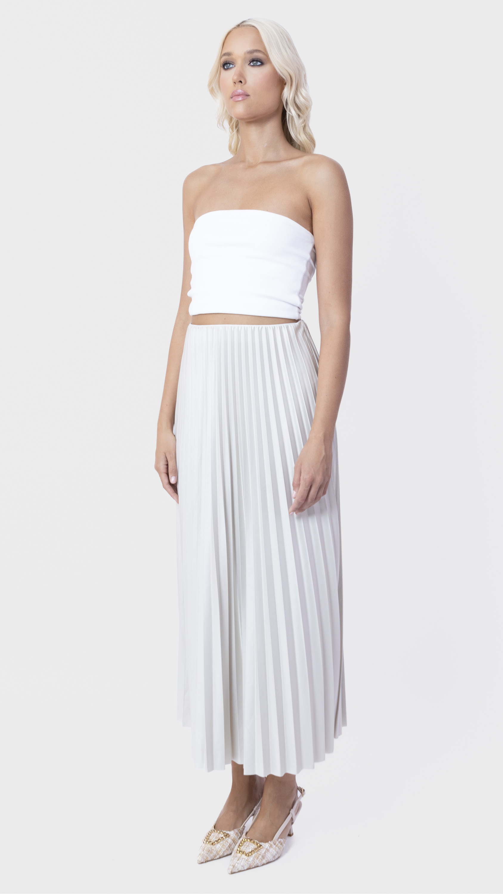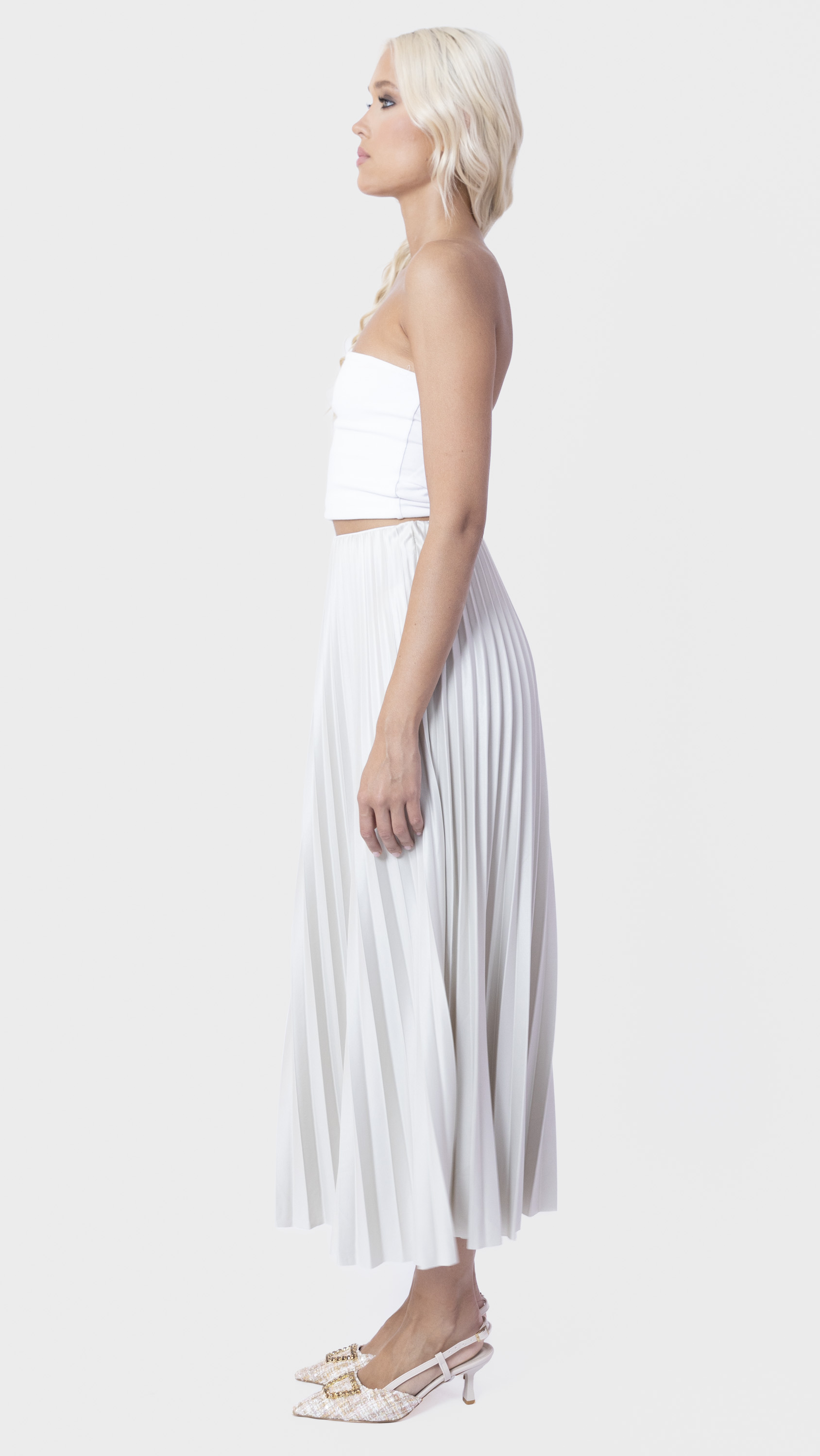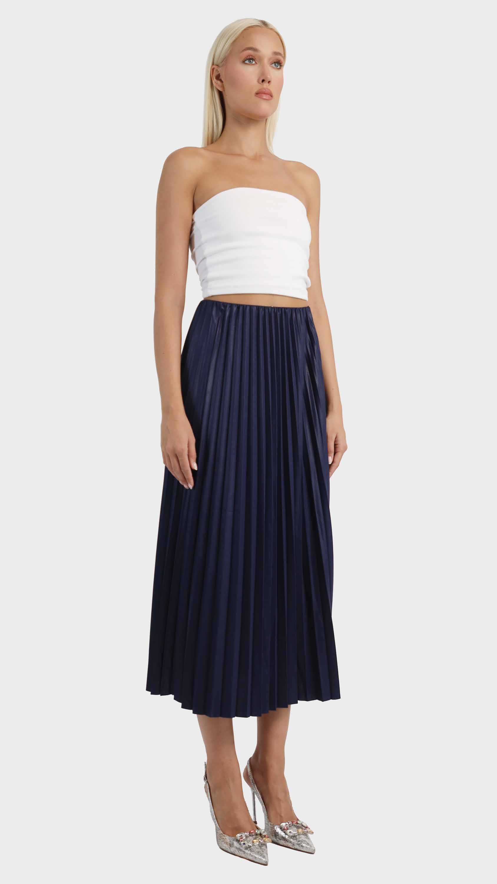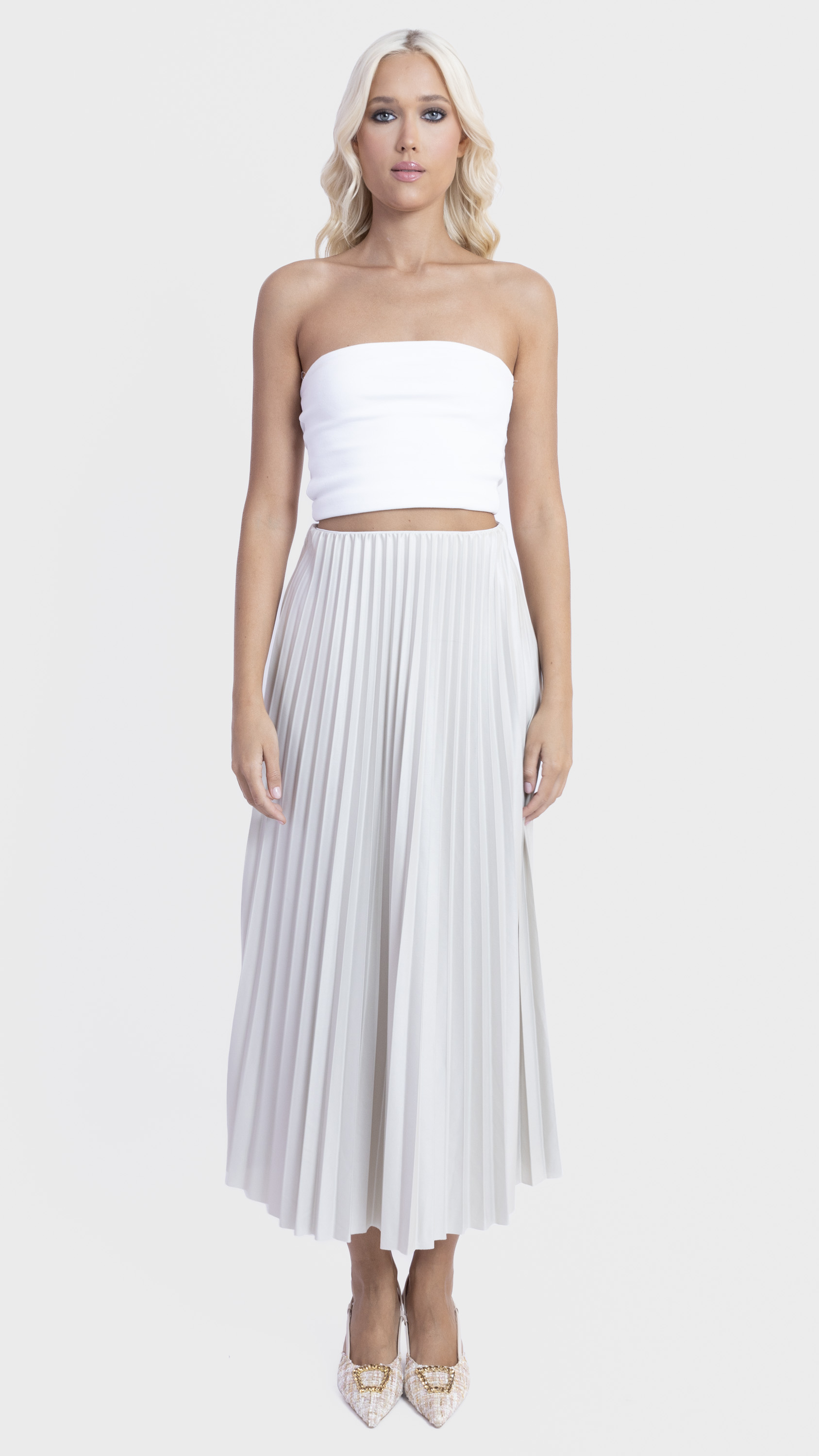 Add timeless elegance to your wardrobe with this pleated midi skirt.