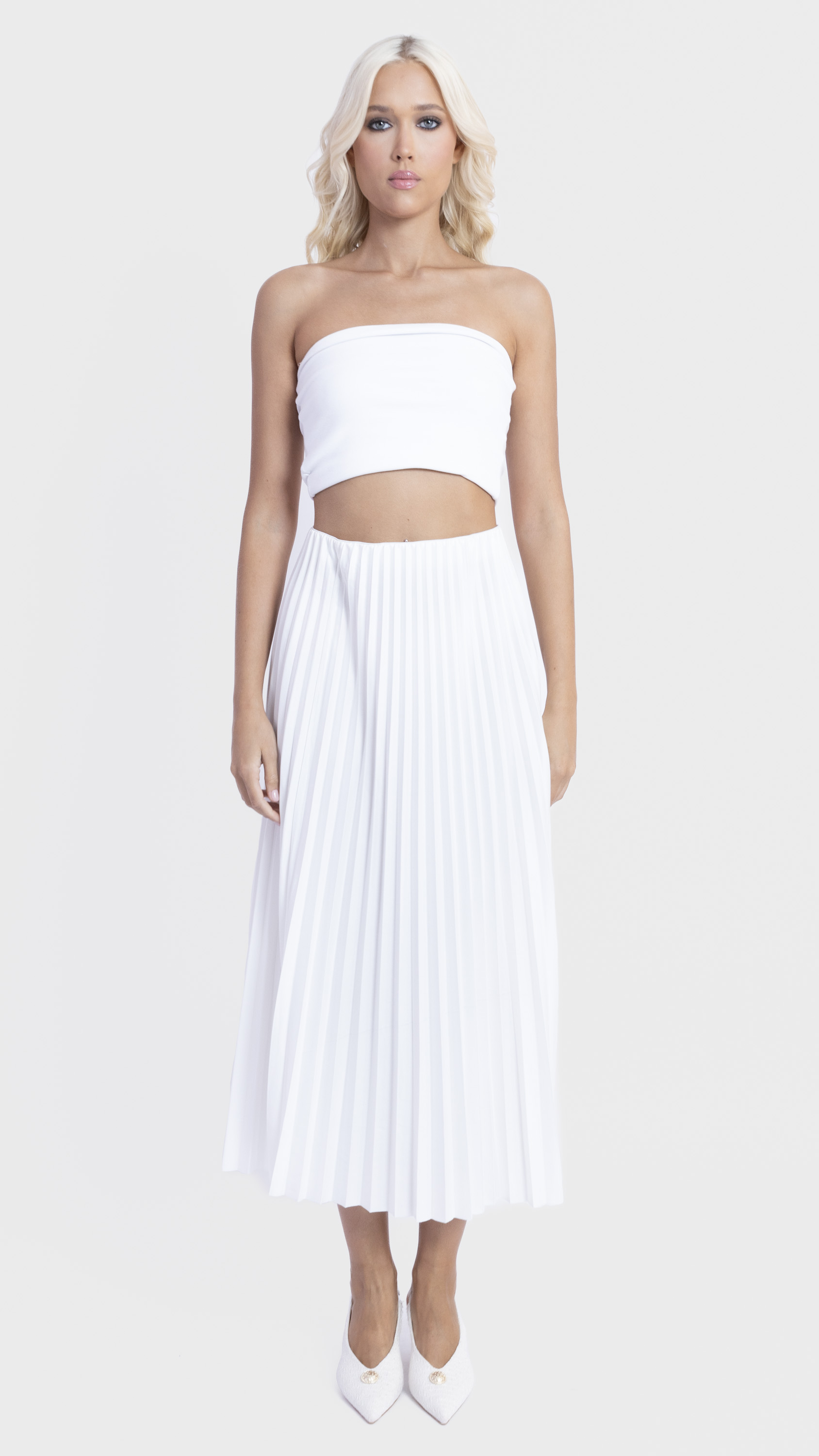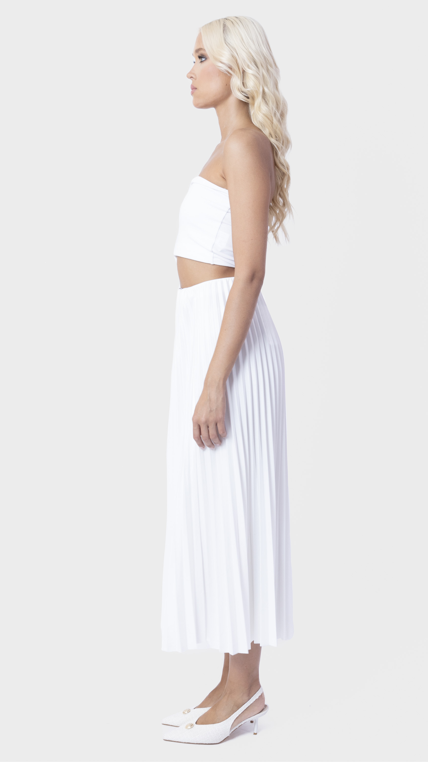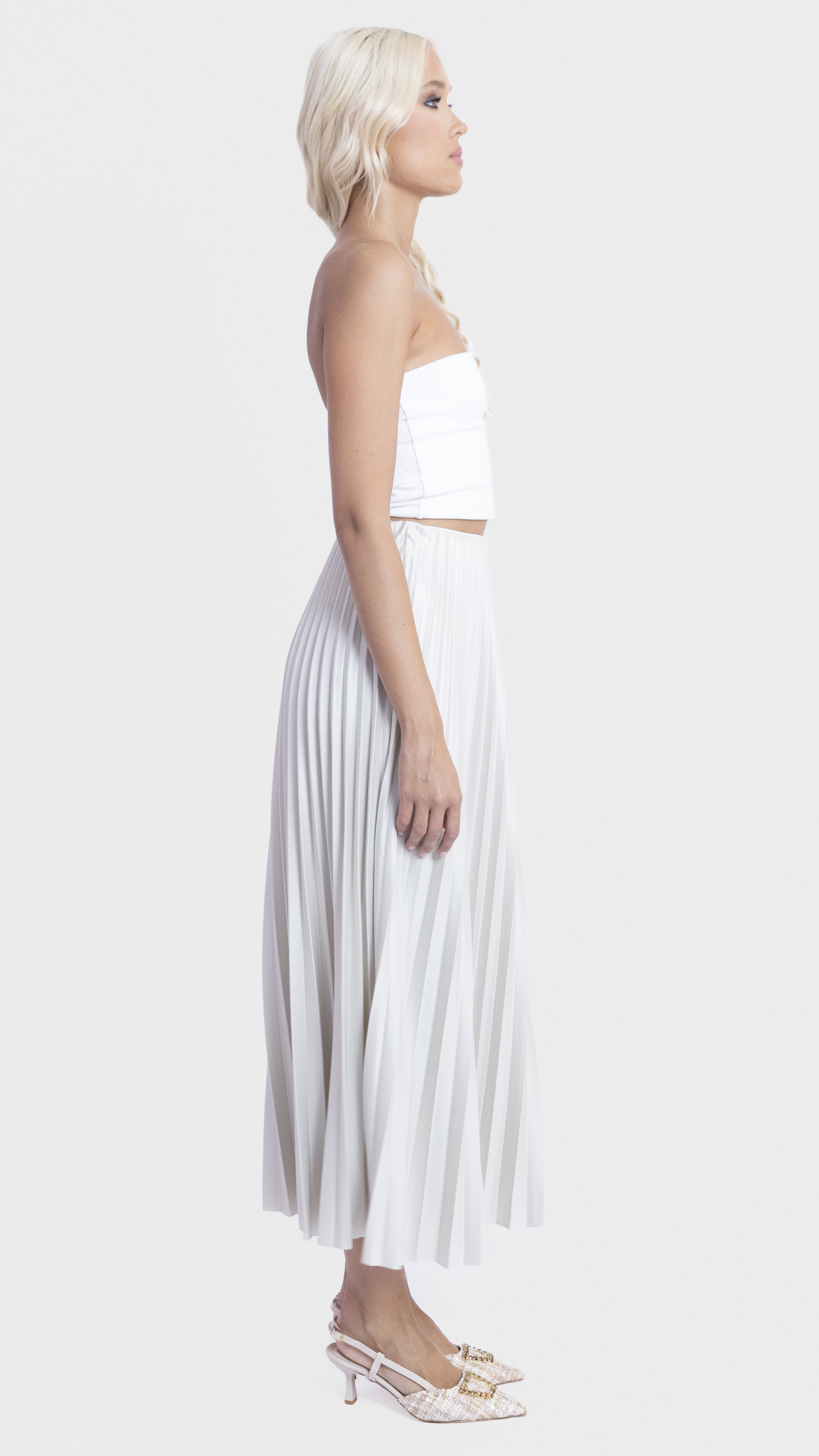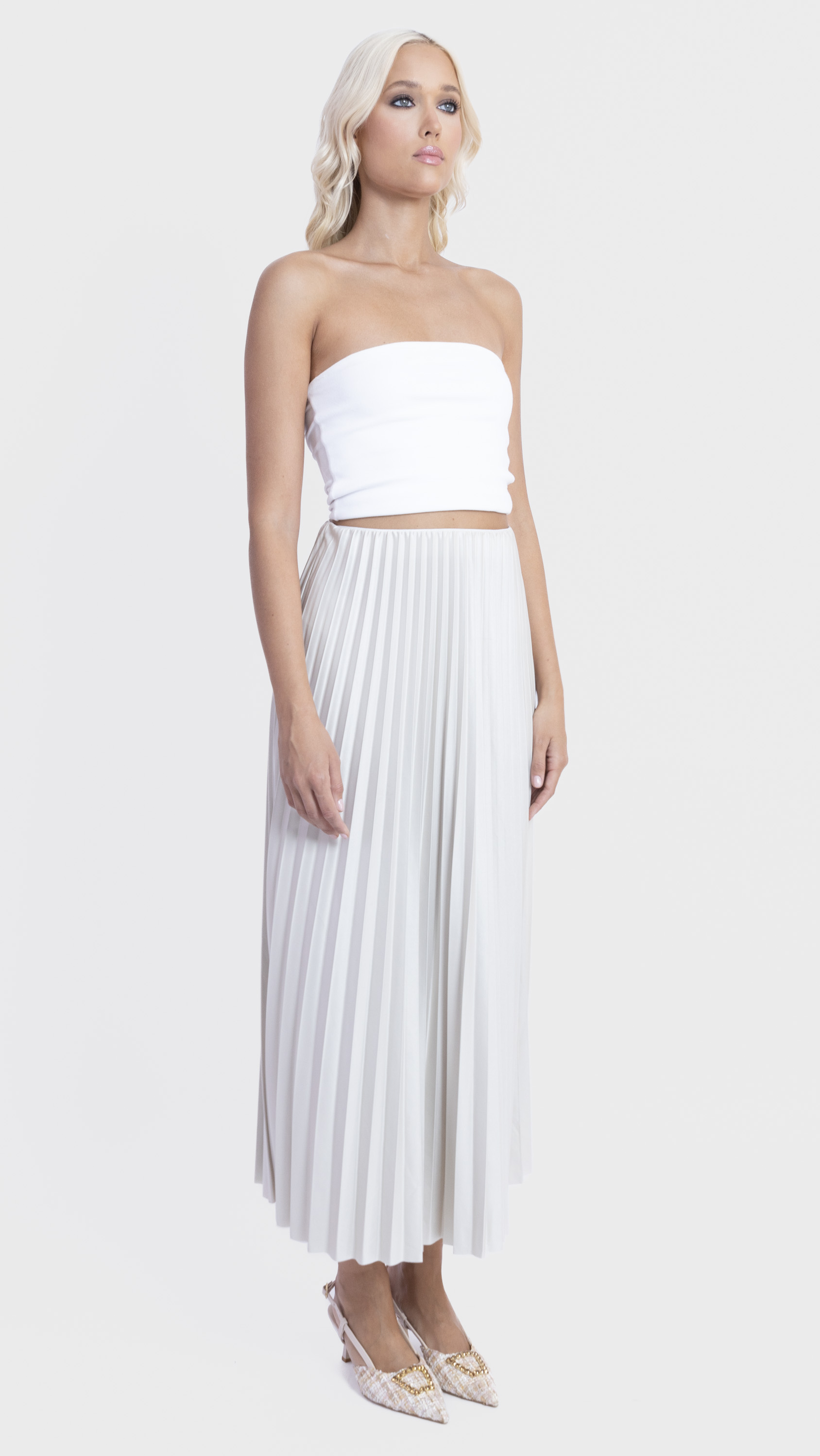 Add timeless elegance to your wardrobe with this pleated midi skirt.